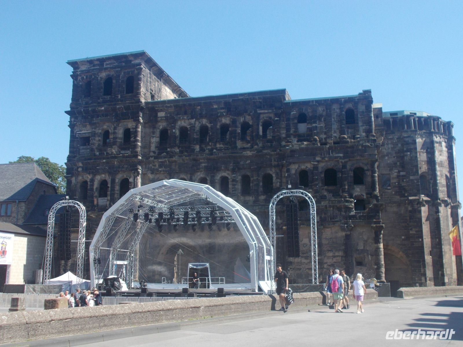 Heute liegen wir am zweiten Bogen der Moselschleife , etwas ländlich, in der Nähe des Mehringer Campingplatzes. Ein Bus steht für unseren Ausflug nach Trier bereit. Es ist die älteste Stadt Deutschlands und auch das älteste Weinbaugebiet, Mosel- Saar - Ruwer. Seit fast 2000 Jahren wird hier in den flachen Lagen und Steillagen, der Mittelmosel, dieses Gewerbe betrieben und perfektioniert. Das Wahrzeichen der einstigen römischen Kaiserresidenz ist die Porta Nigra. Aus ehemals hellem Sandstein erbaut, diente sie als Stadttor ( Marstor ).Viele der römischen Bauten sind heute wieder zu besichtigen und stehen seit 1986 unter UNESCO Weltkulturerbe. Bei einer Stadtrundfahrt und anschließendem Rundgang wurde darüber berichtet.