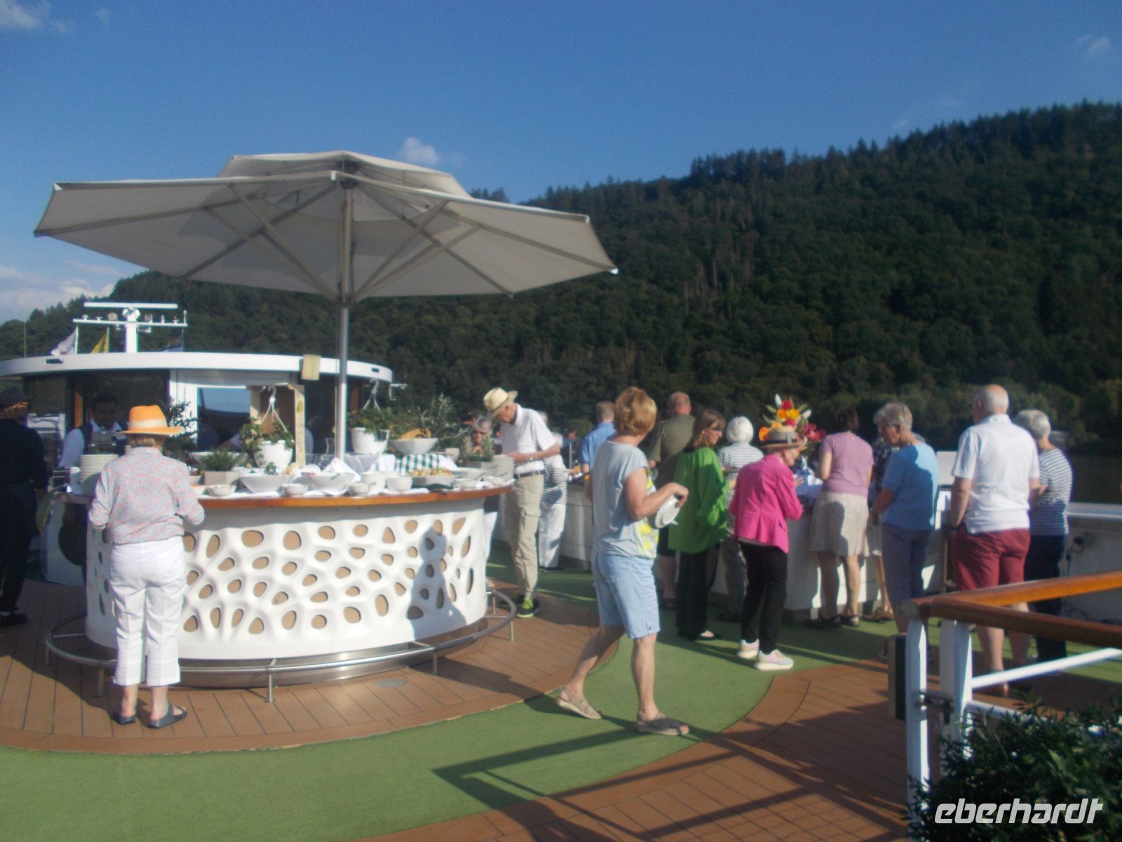 Den Nachmittag konnte jeder Gast selbst gestalten. Bei dem Sonnenschein waren die Liegen im Schatten,an Bord, sehr gefragt und eine Abkühlung im Pool willkommen.