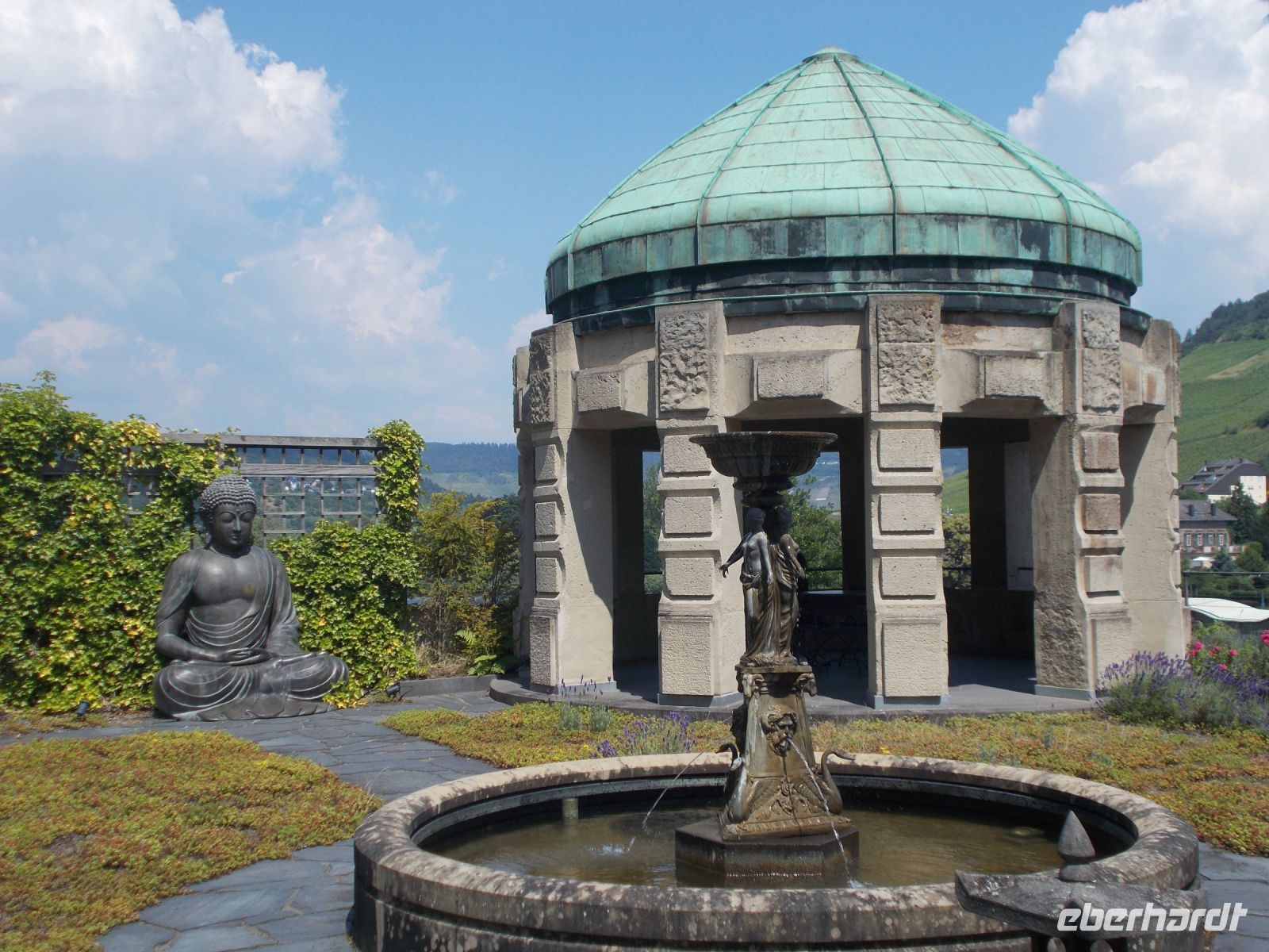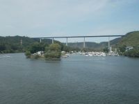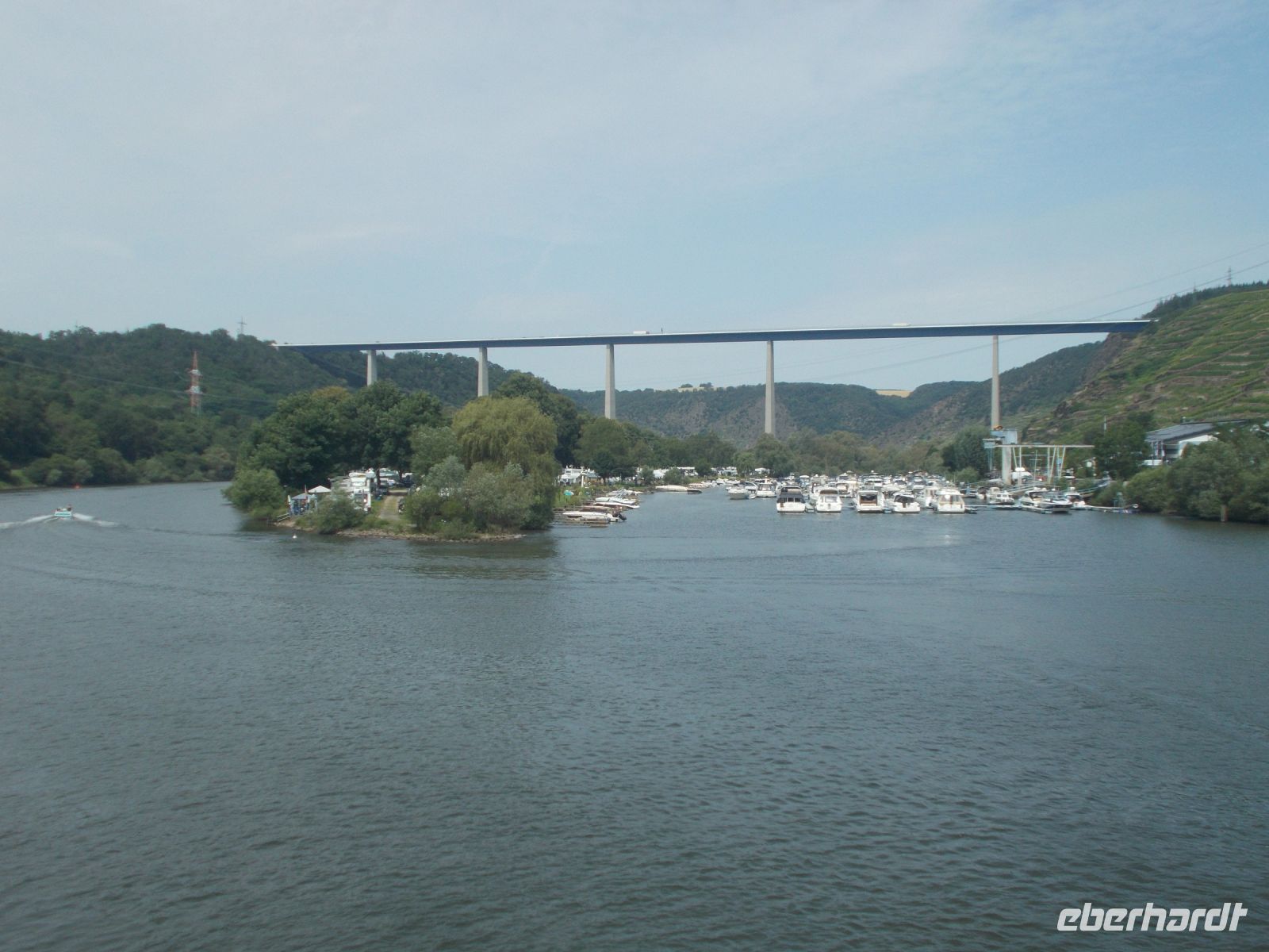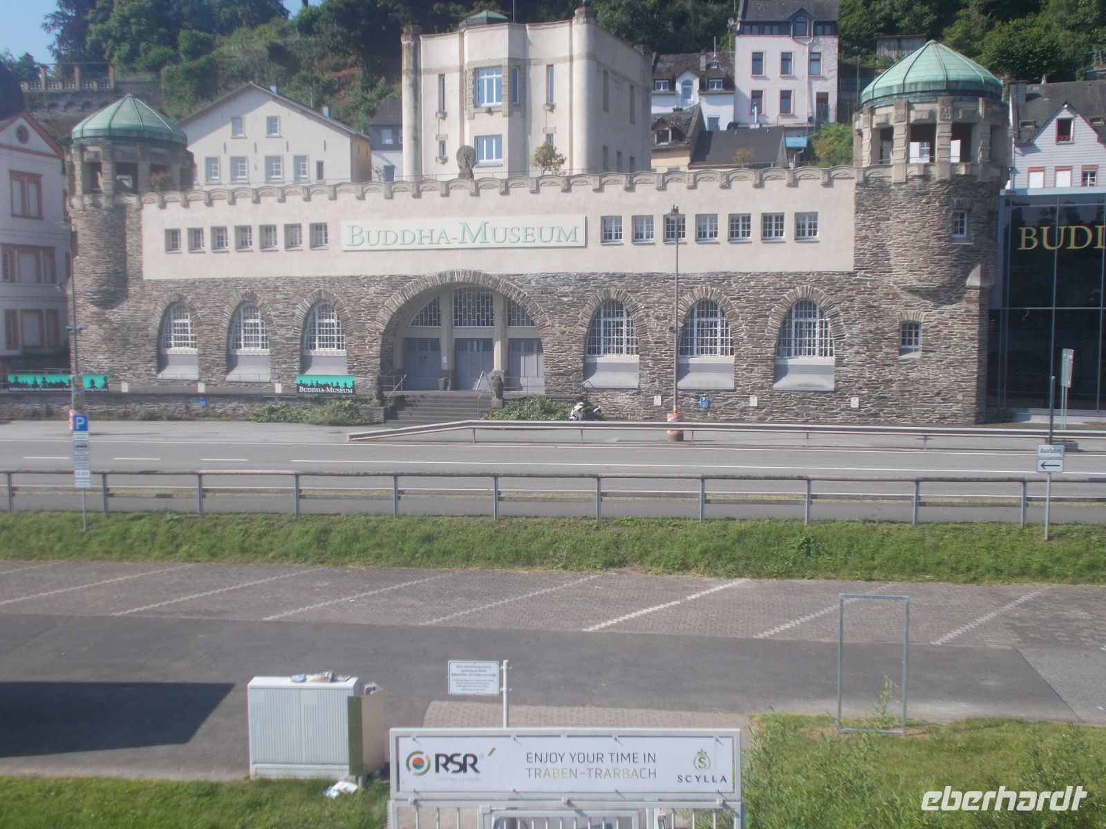 Leider befinden wir uns schon auf der Rückstrecke , Flussabwärts. Somit hatten wir allerdings einen wunderbaren Blick auf die neue Hochmoselbrücke bei Zeltingen-Rachtig, die sich über uns befand. Auch heute legten wir wieder an einer Doppelstadt an. Traben- Trarbach, mit einer sehr schönen Brücke miteinander verbunden.Bei einem Bummel sahen wir die vielen prachtvollen Jugendstil Gebäude der Kellereibesitzer. Durch den Anbau und Verkauf der Rieslingweine gelang sehr viel Geld in die Stadt .So konnten sich die Weinhändler diese prachtvollen Villen bauen lassen. Die meisten der Bauten tragen die Handschrift des Berliner Architekten Bruno Möhring. So auch ein einzigartiges Museum welches in einer ehemaligen Weinkellerei untergebracht ist. Es handelt sich um das Buddha Museum, mit seinen zahlreichen Ausstellungsstücken und Informationen zu dieser fremden Kultur.