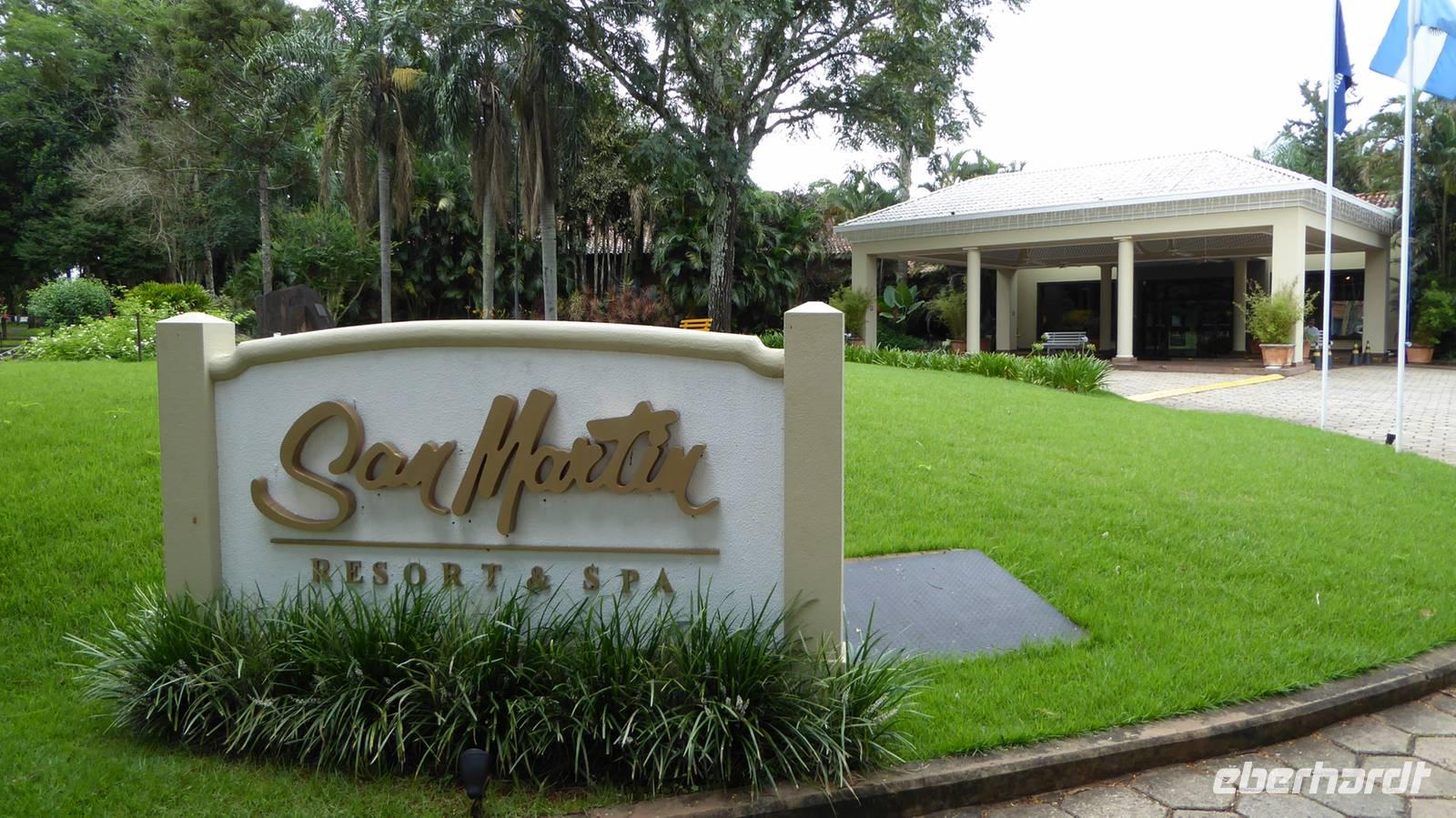 Heute heißt es endgültig Abschied nehmen von Rio. Nach dem Frühstück im Hotel und der Fahrt zum Flughafen nahmen wir alle herzlich Abschied von Carlos. Wir fliegen von Rio nach Foz de Iguazu. Wir landeten gegen 12.30 Uhr in Iguazu. Das weitere Eberhardt-Programm setzt sich fort. Nun erwartet uns Egon am Flughafen. Er könne zwar nicht so gut singen wie Carlos, aber wir haben gleich einen guten Draht zu ihm. Wir fahren in die Hotelanlage San Martin. Sie ist sehr schön mit Garten und Pool, etwas außerhalb der Stadt, aber unmittelbar vor dem Nationalpark gelegen.