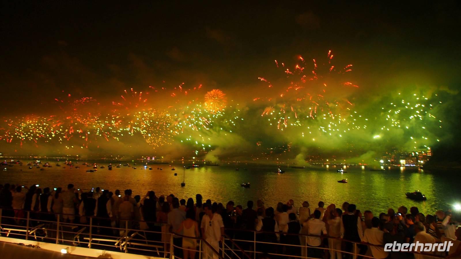 Am Morgen erreichen wir gegen 8.00 Uhr Cabo Frio. Heute ist Tendern angesagt. Alle freuen sich auf den Ausflug "Cabo Frio entdecken und einkaufen in der „Bikinistraße". Ein deutschsprachiger Mitarbeiter der Rezeption von MSC hat uns alles ins Deutsche übersetzt. Wir erleben eine Busrundfahrt zu wundervollen Aussichtspunkten der Stadt und erleben die Vorbereitungen der dortigen Silvester-Strandparty. In Cabo Frio leben ca. 200.000 Menschen. Der Badeort begrüßt zu Silvester aber ca. 1.5 Mio Gäste am Strand. Die Stadt wurde 1615 am östlichen Ende der Lagune Araruama gegründet. Diese Stadt gehört zu den meistbesuchten Städten Brasiliens.Wir steigen auf den Guia-Hügel und besuchen die Kapelle Nossa Senhora de Guia aus dem Jahr 1740. Das die Küste beherrschende Forte SaoMateus ist eines der Wahrzeichen von Cabo Frio. Im Bikini-Einkaufszentrum gab es wieder eines der beliebten Shoppingmöglichkeiten. Leider hatten wir auch ein unschönes Erlebnis, denn am letzten Tag des Jahres wurde auf unserem MSC Ausflug ein Steinanschlag auf den Bus verübt. Das Fenster wurde per Steinschlag zerstört, niemand wurde verletzt, da wir auf Stadtrundgang waren. Die MSC Agentur hat professionell reagiert. Eine kleine süße Entschuldigung gab es auf die Kabine. Wir reisen nun noch 75 Seemeilen von Cabo Frio bis an die Cobacabana. Nun kommt einer der Höhepunkte unserer Reise - Silvester vor der Copacabana. Eine unvergessliche Nacht mitten unter den lebenslustigen Brasilianern an Bord. Ab 18.30 lag die MSC Lirica vor der Copacabana auf Reede. Es gab einen einzigartigen Blick auf den berühmtesten Strand der Welt. Die Kleiderempfehlung an Bord für den Abend war „weiß". Die Brasilianer begrüßen traditionell das Neue Jahr in Weiß, denn die Farbe steht für Reinheit und Frieden. Kurz vor 24.00 Uhr begrüßte der Kapitän der MSC Lirica mit einem mehrmaligen Schiffssignal das neue Jahr und wünschte allen Passagieren ein glückliches, neues Jahr. Kurz nach Mitternacht gibt es einen phantastischen Blick auf eines der imposantesten Feuerwerke der Welt. Von elf Stationen vor der Küste aus sprühen Fontänen aus gleißendem, bonbonfarbenen Licht vom Himmel. Sie ergießen sich über die großen Hotels und Appartementhäuser, die als kilometerlange Perlenkette den mit Sicherheit schönsten Stadtstrand der Welt säumen.Wir erlebten anschließend die MSC Poolparty mit Musik und Tanz. Bis 2.00 Uhr liegt MSC Lirica vor der Copacabana. Ab 2.00 Uhr starten wir in Richtung Ubatuba in 120 Seemeilen Entfernung. Wir erlebten eine einzigartige Silvesternacht, die nicht so gleich wiederkommt.