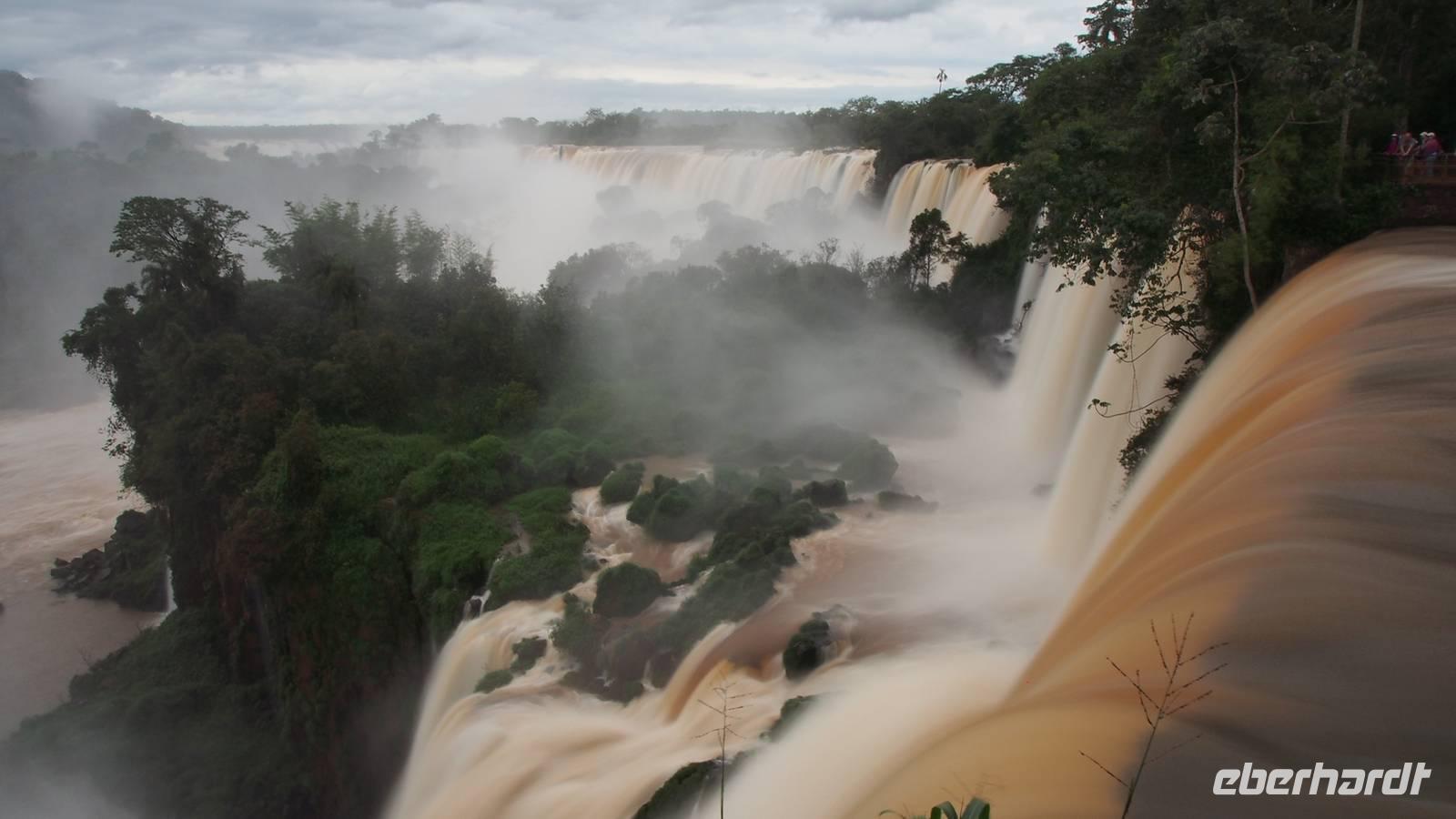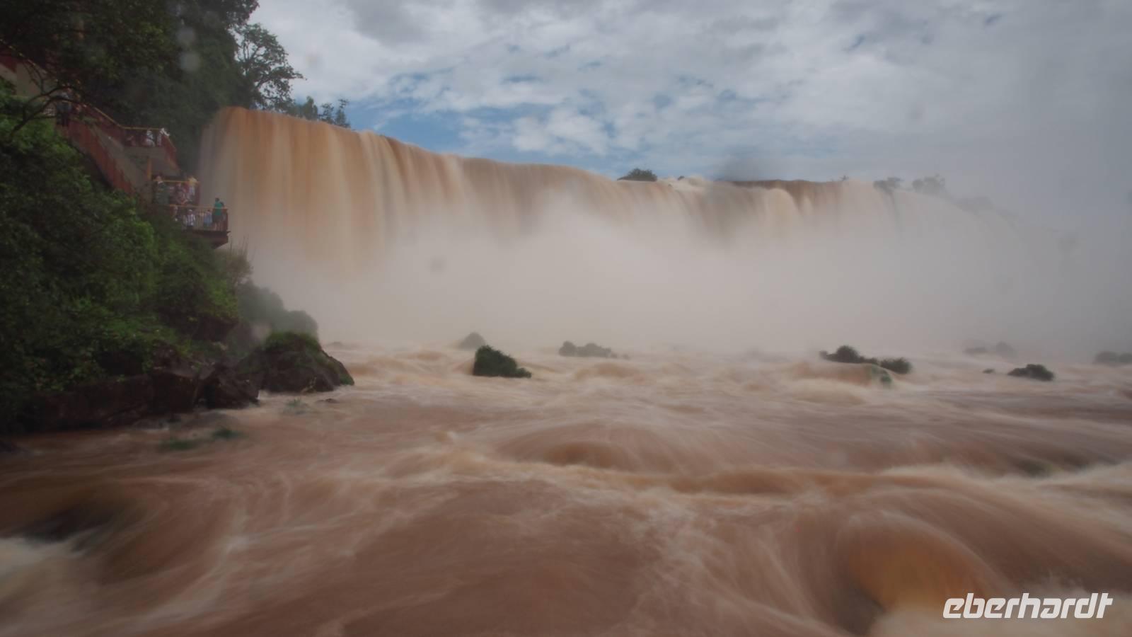 Nun erleben wir die argentinische Seite der Wasserfälle. Nach Passieren der argentinischen Grenze ging es zuerst an das „Teufelsschlund" genannte Wasserfallsystem. Es ist eine U-förmige, 150 Meter breite und 700 Meter lange Schlucht mit tosender Einmaligkeit.