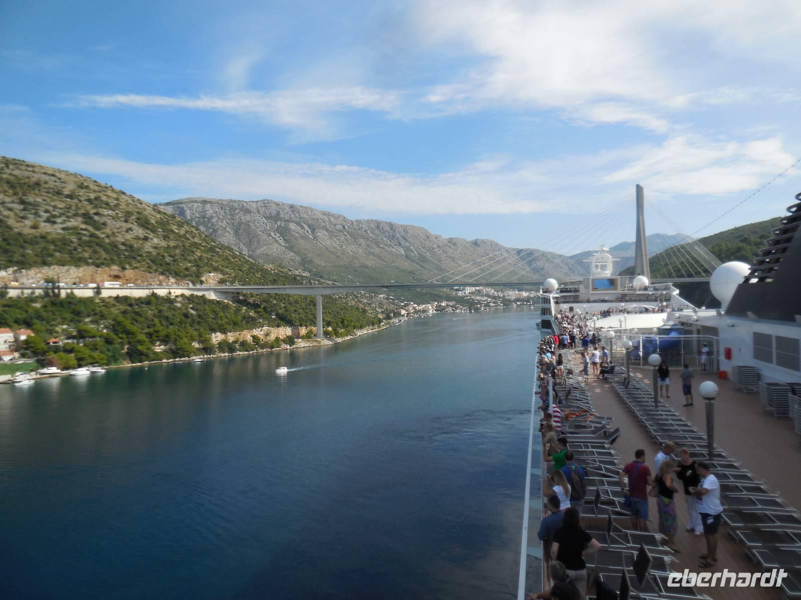 Bei herrlichem Sonnenschein und einer erlebnisreichen Hafeneinfahrt erreichen wir heute Dubrovnik, auch die „Perle der Adria" genannt. Wir sind immer wieder erstaunt, wie sich ein Kreuzfahrtschiff in die Häfen der Städte einparkt. Über das Pile-Tor betreten wir die historische Altstadt und bestaunen die starken Mauern der Festungsanlage. Dubrovnik ist ein belebtes Freilichtmuseum mit vielen historischen Gebäuden innerhalb des Mauerrings. Wir schlendern über die hellen Bodensteinplatten der Hauptpromenade, schauen in die engen Gassen, laufen vorbei an der Franziskanerkirche und 1444 erbauten Glockenturm bis in den historischen Hafen. Einige Gäste erleben die Stadtansicht vom Berg Srd über die südkroatische Hafenstadt an der türkisfarbenen Adriaküste mit seinen zahlreichen vorgelagerten Inseln. Ein letztes Mal genießen wir von der mediterranen Speisekarte die große Auswahl an Speisen und erfreuen uns im Teatro Carlo Felice an den mit viel Hingabe gestalteten Abendshows.