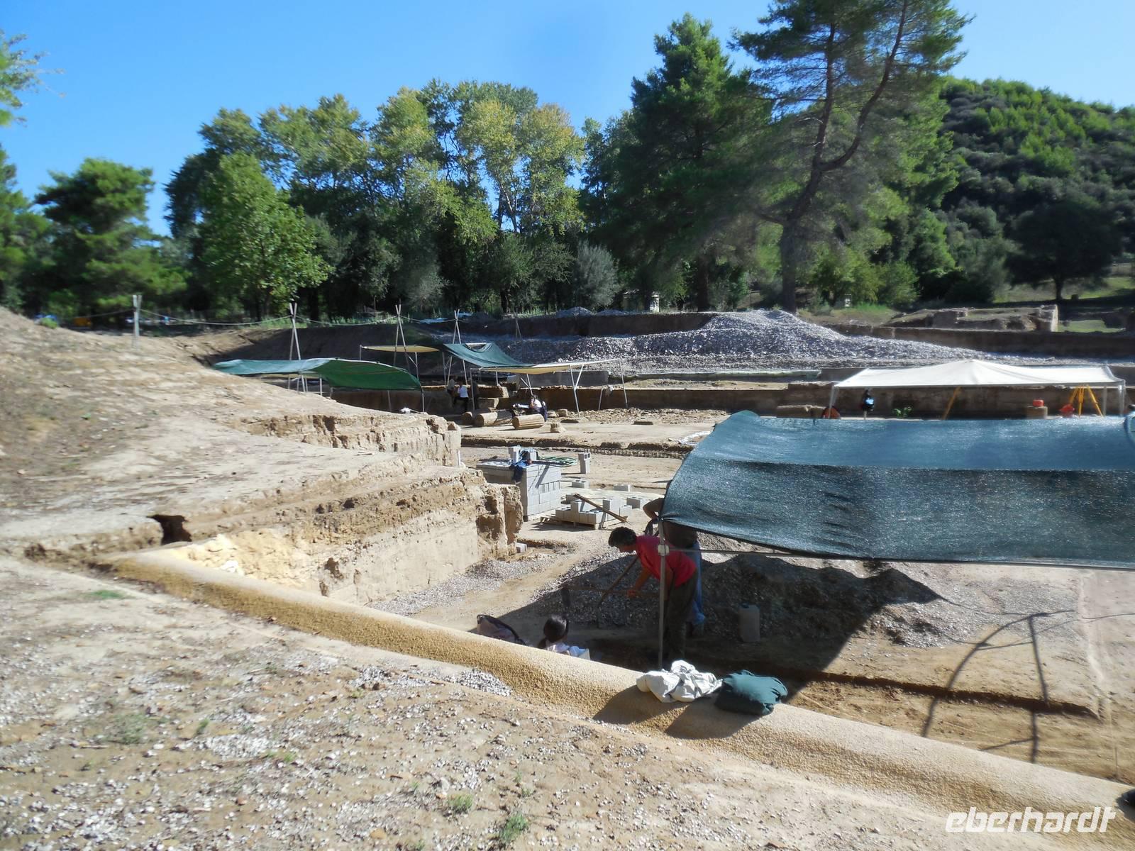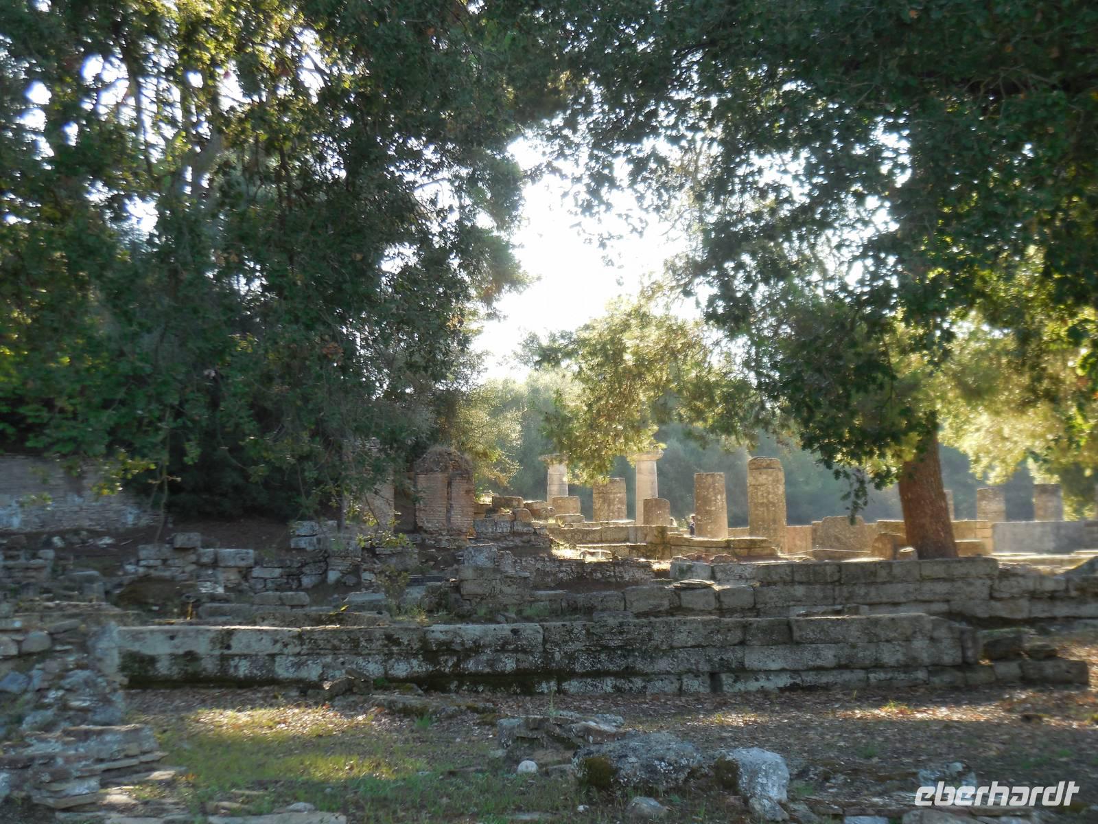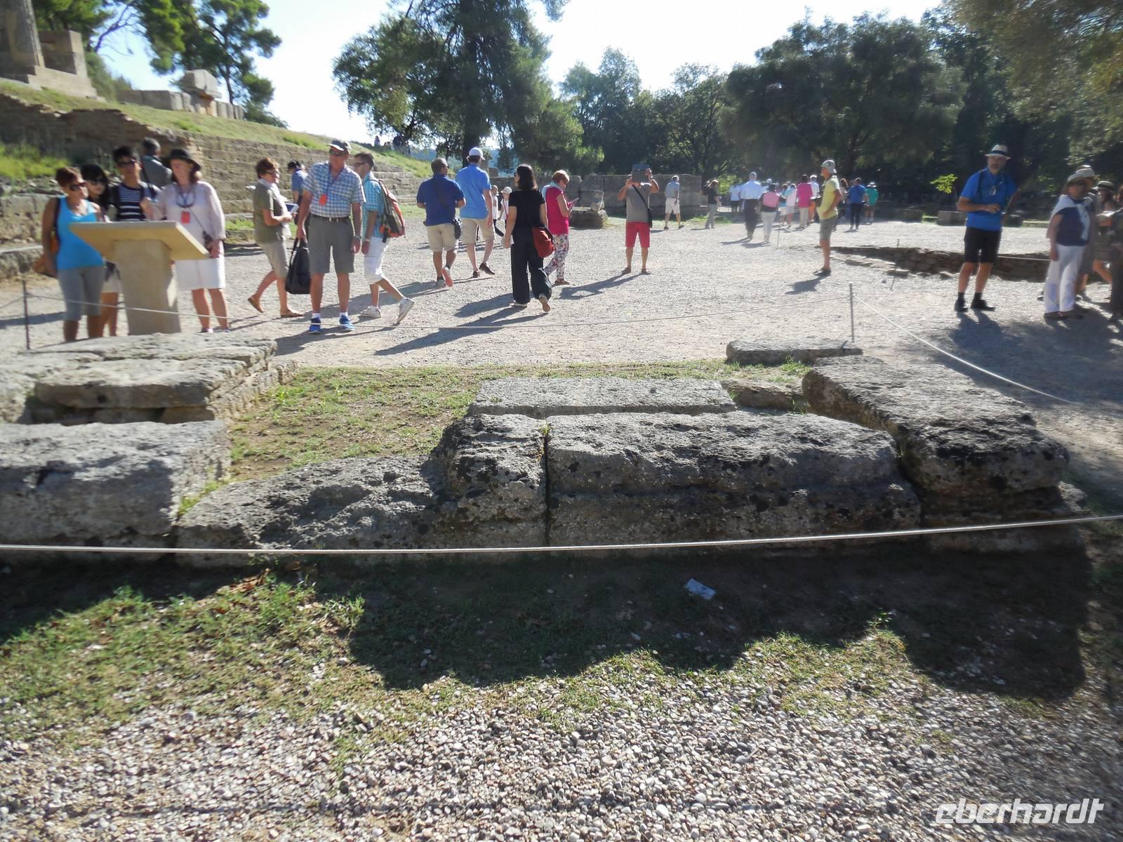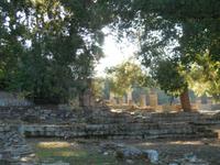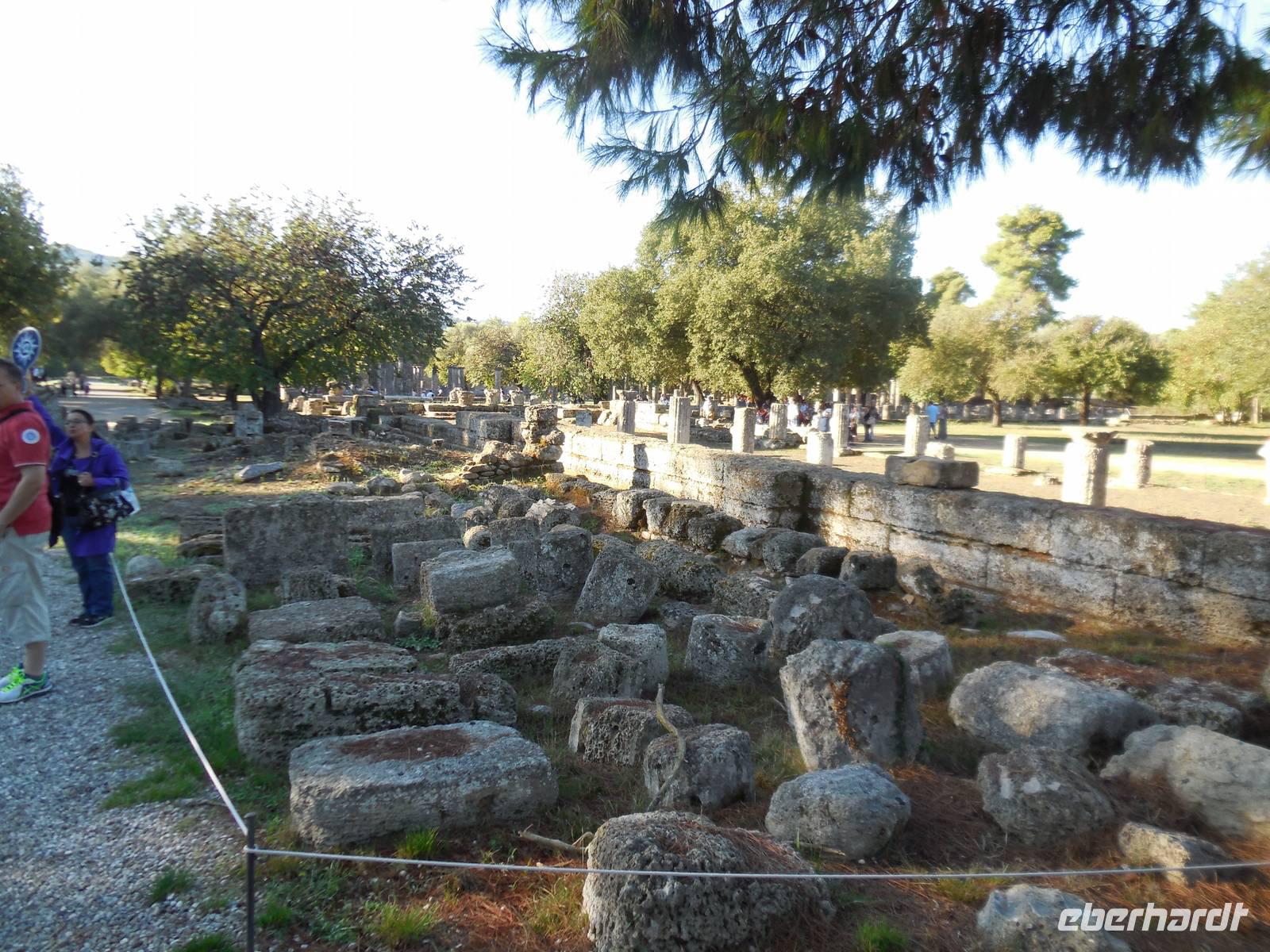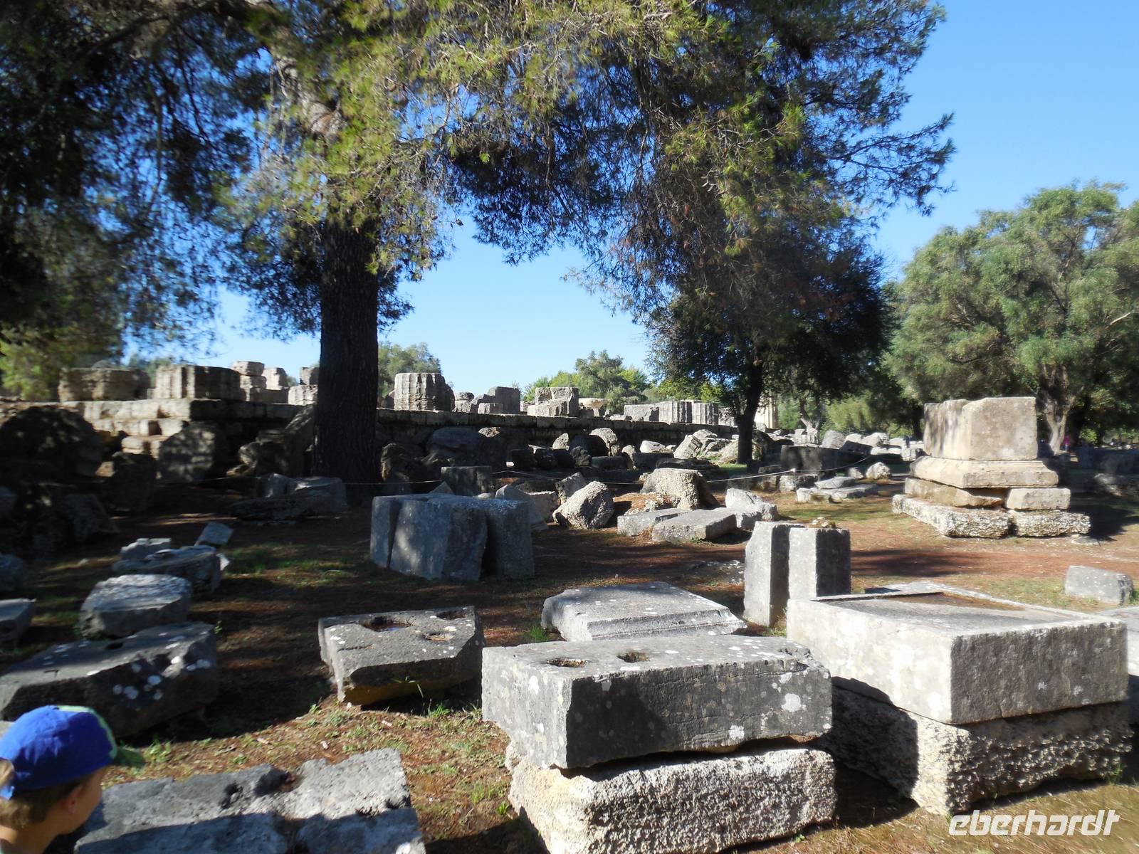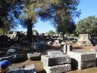 Im Jahre 426 wurde auf Befehl des Kaisers Theodosius II. der Zeustempel niedergebrannt. Das Vernichtungswerk vollendeten zwei Erdbeben in den Jahren 522 und 551. Später begann Schwemmerde der nahegelegenen Flüsse, die Ruinen langsam zu bedecken, sie so zu verbergen und dadurch zu schützen. Obwohl das antike Olympia bereits 1766 wiederentdeckt wurde, begannen die Ausgrabungsarbeiten erst 1829. Bei unserem Rundgang durch dieses UNESCO Welterbestätte sehen wir auch die Überreste des Zeustempel, das Gymnasium, das Hippodrom und das Stadion, das in damaligen Zeiten Platz für bis zu 40.000 ausschließlich männliche Zuschauer bot.