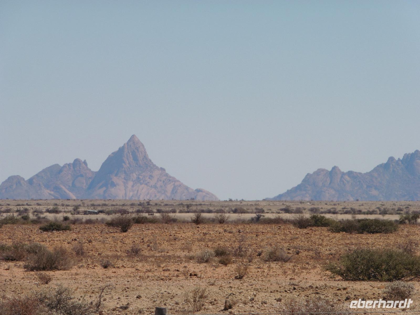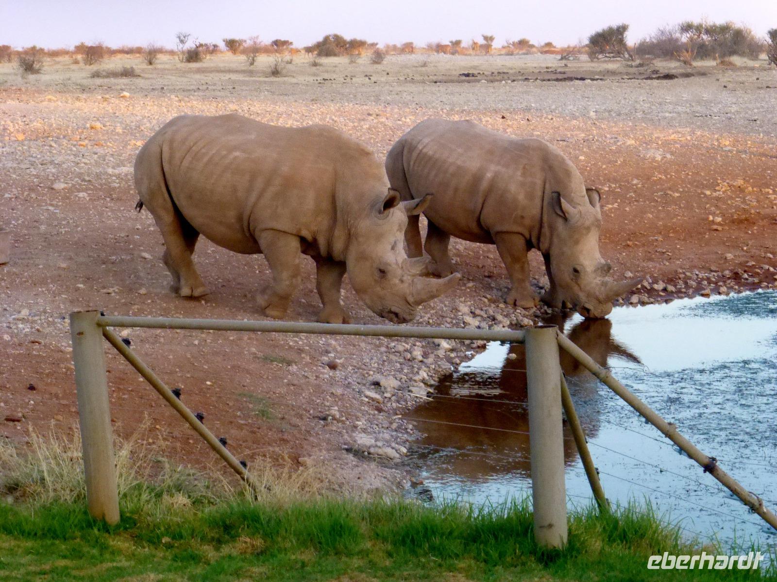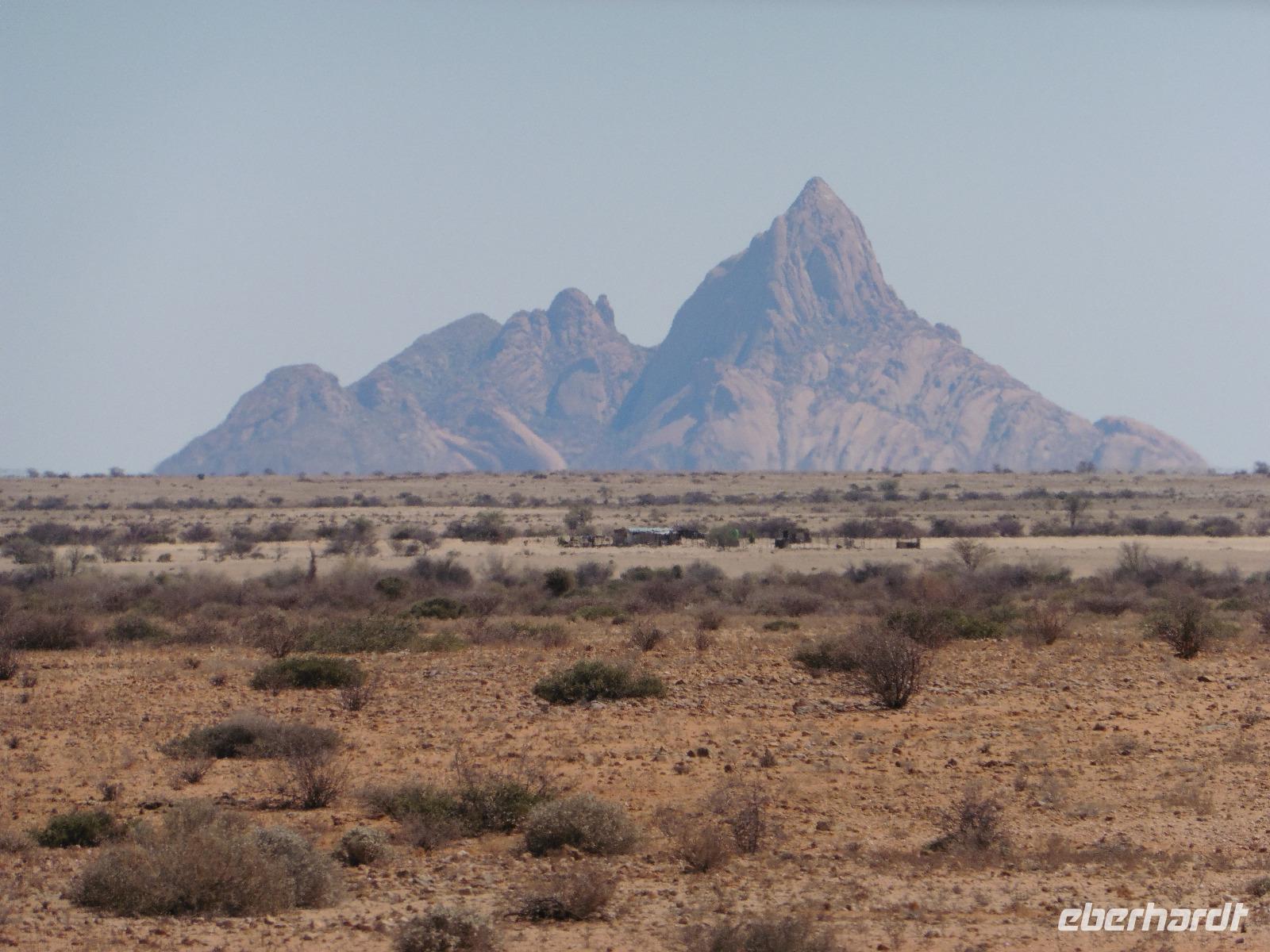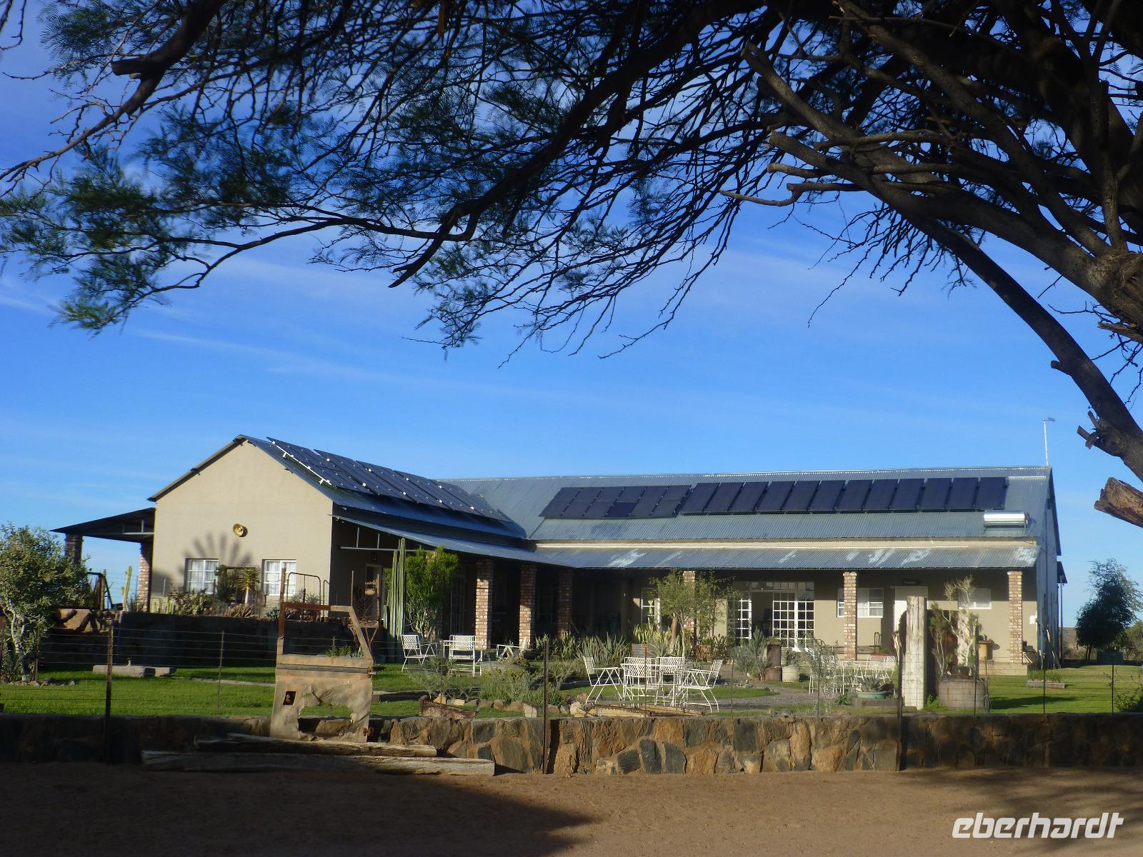 Nach einem Zwischenstopp in Südafrika, landeten wir bei strahlendem Sonnenschein in der Hauptstadt Namibias. Für afrikanische Verhältnisse relativ zügig, brachten wir die Einreiseformalitäten hinter uns. Am Kofferband der Schreck, 10 Koffer von Passagieren fehlten. Bei uns hatte es Andrea erwischt. Nachdem alles gemeldet und notiert war wurden wir von unserem namibischen Reiseleiter Ernst und unserem Truck-Driver Filipo begrüßt. Schnell noch Geld tauschen und schon nahmen wir die ersten 300 km unserer Entdeckungsreise in Angriff. Zunächst auf Asphalt, später auf Schotterpiste fuhren wir Richtung Mariental. In der "Basterstadt" Rehoboth legten wir eine kurze Pause ein. Als Baster wurden damals die unehelichen Kinder zwischen den Holländern und den Khoisan bezeichnet. Am 23. Breitengrad überquerten wir das 1. Mal, auf unserer Reise den südlichen Wendekreis des Steinbocks. Am späten Nachmittag erreichten wir unsere erste Unterkunft, die wunderschöne Lapa Lange Lodge bei Mariental. Ein erster Spaziergang durch die Lodge, das erste namibische Bier, die ersten afrikanischen Tiere. In der Abenddämmerung konnten wir 2 Nashörner und zahlreiche Antilopenarten am Wasserloch der Lodge beobachten. Nach einem tollen Abendessen gingen wir ins Bett mit dem Wissen, morgen geht es richtig los...unsere erste Nacht unter dem traumhaften Sternenhimmel Namibias.