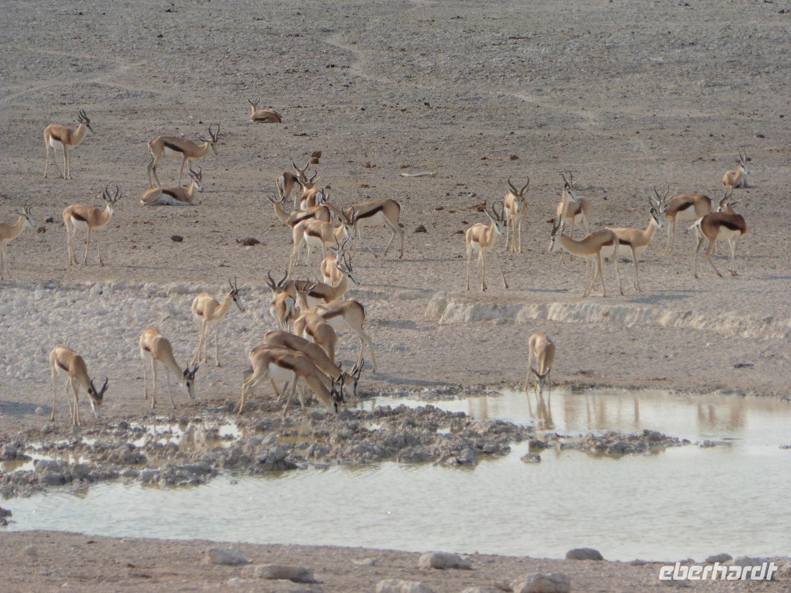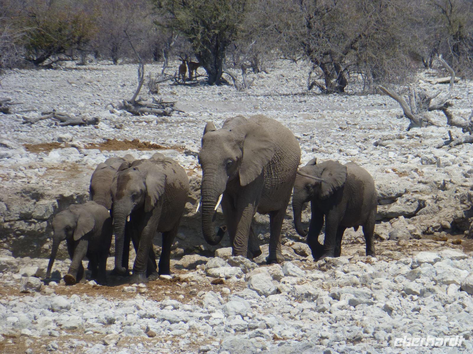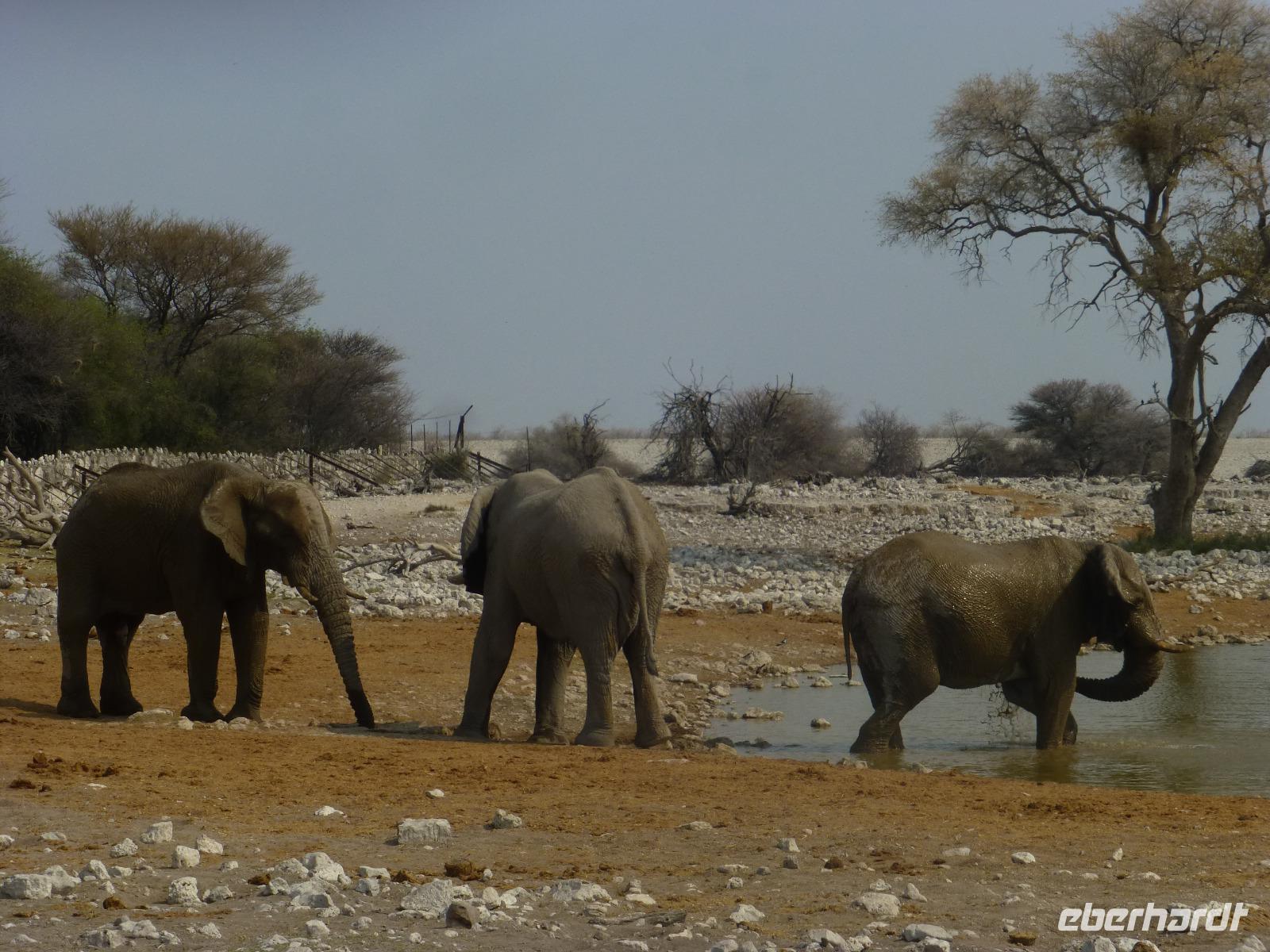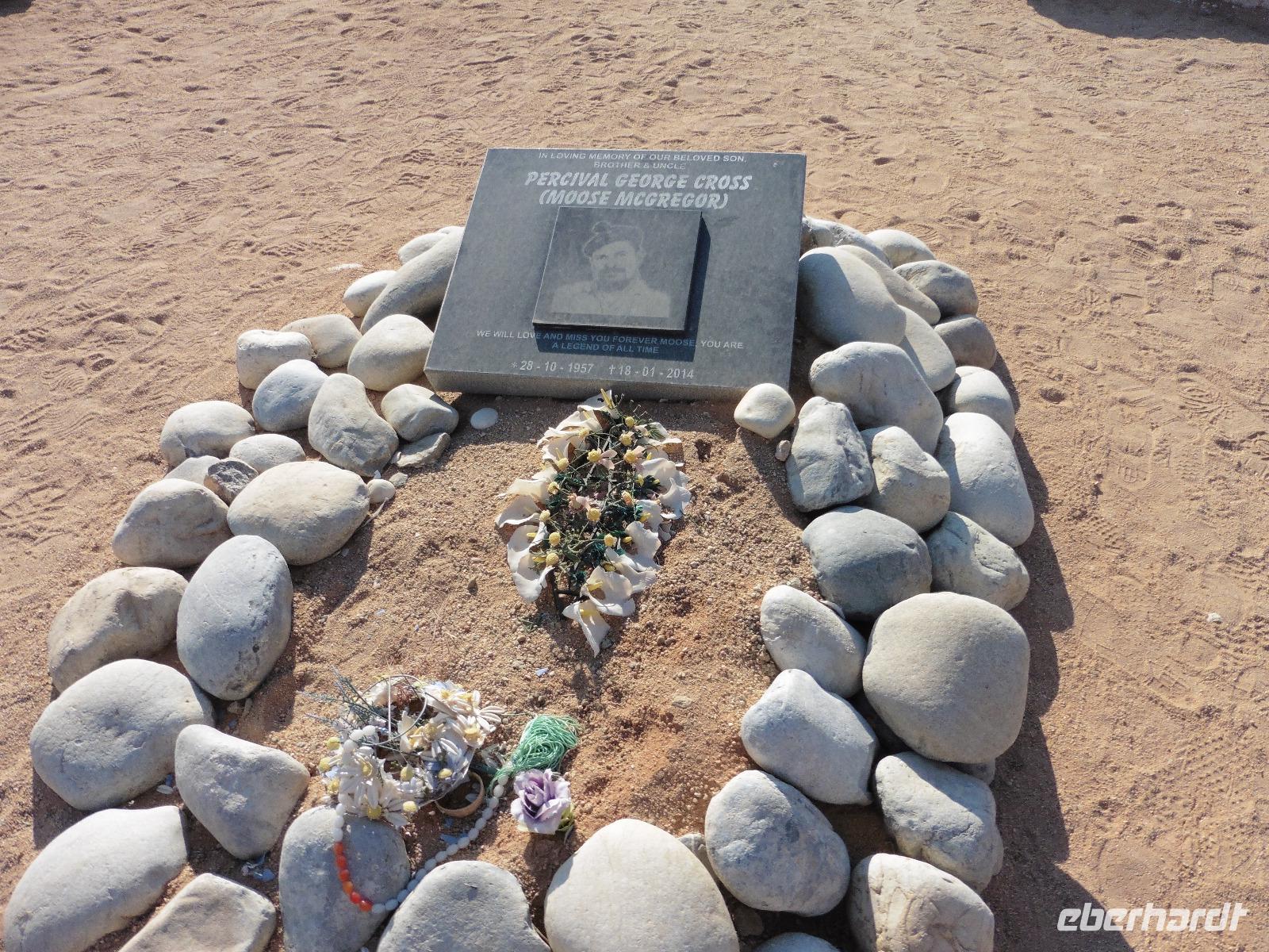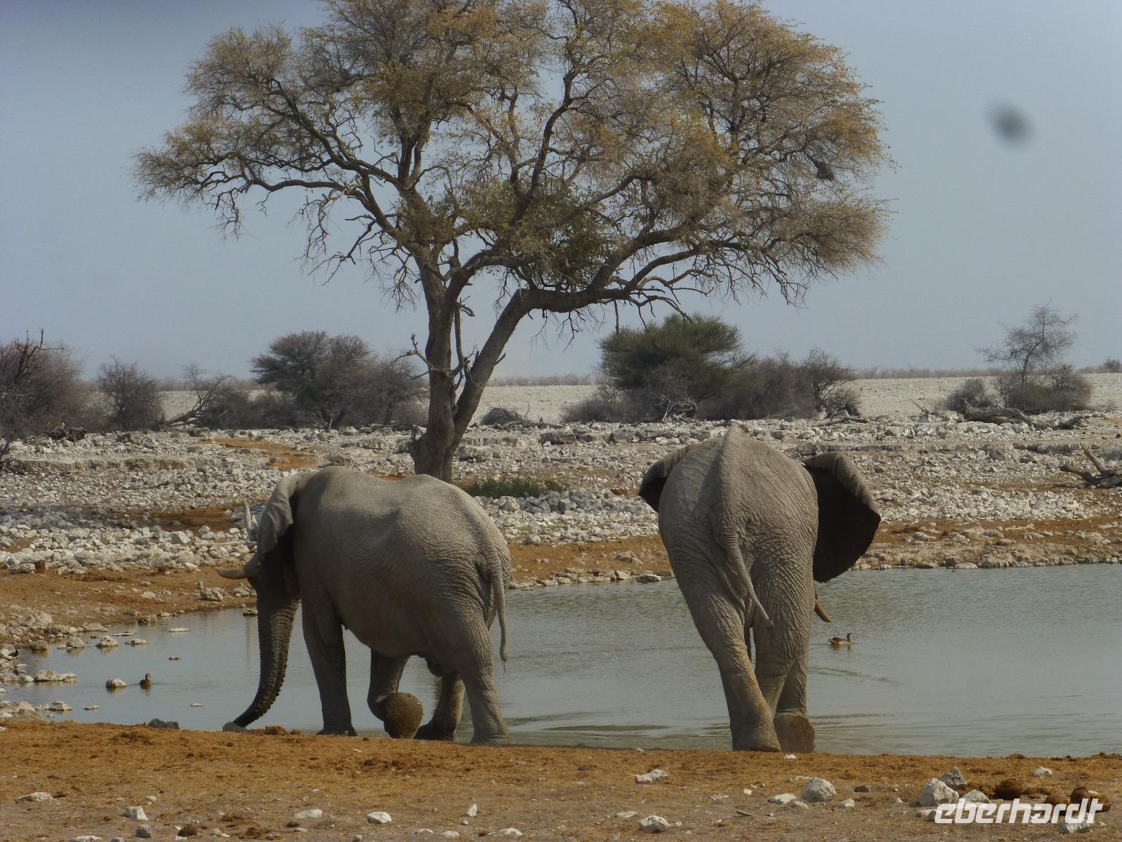 Jetzt haben wir aber Hunger, auf dem Parkplatz Lodge zum Nationalpark Eingang wollten wir picknicken. Der Platz unter einem großen, Schatten spendenden Baum war leider besetzt. Also rauf auf den Campingplatz und schattiges Plätzen suchen. Plötzlich steckte unser Truck im Sand fest. Mit vereinten Kräften schoben wir unser Gefährt aus dem Sandloch. Dann gab es endlich was zu essen. Der selbst gemachte frische Möhrensalat schmeckte bei den heißen Temperaturen besonders gut. Dann fahren wir zurück zu unserem Camp wo sich ein viele erst einmal ein kühles frischgezapftes Bier genießt. Den Nachmittag verbringt jeder nach eigenen Wünschen: das kühle Nass des Pools genießen, schlafen, lesen oder einfach die Stille der Wüste wirken lassen. Am frühen Abend wir wieder gemeinsam gekocht und gegessen. Nachdem die Dunkelheit hereingebrochen ist, erhalten wir von Ernst noch Unterricht in Sternenkunde. Er zeigt uns Milchstraße, Kreuz des Südens, Scorpion und andere Sternenbilder. Traumhaft schön...