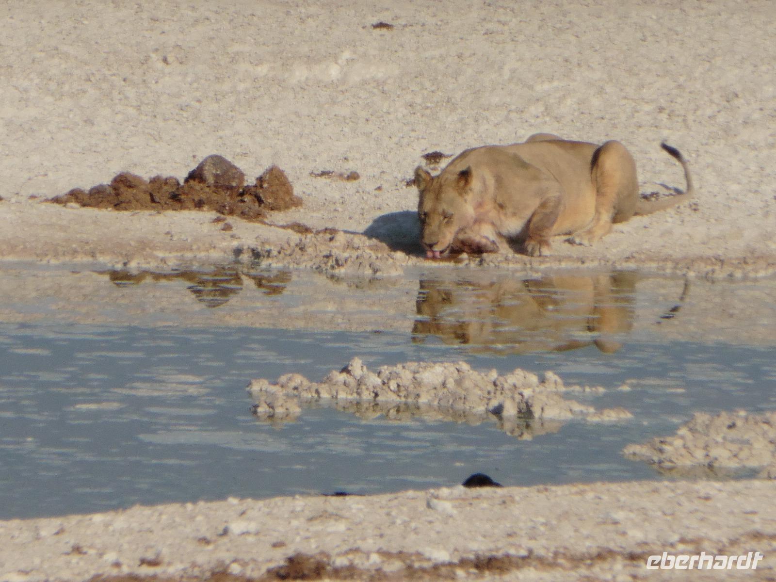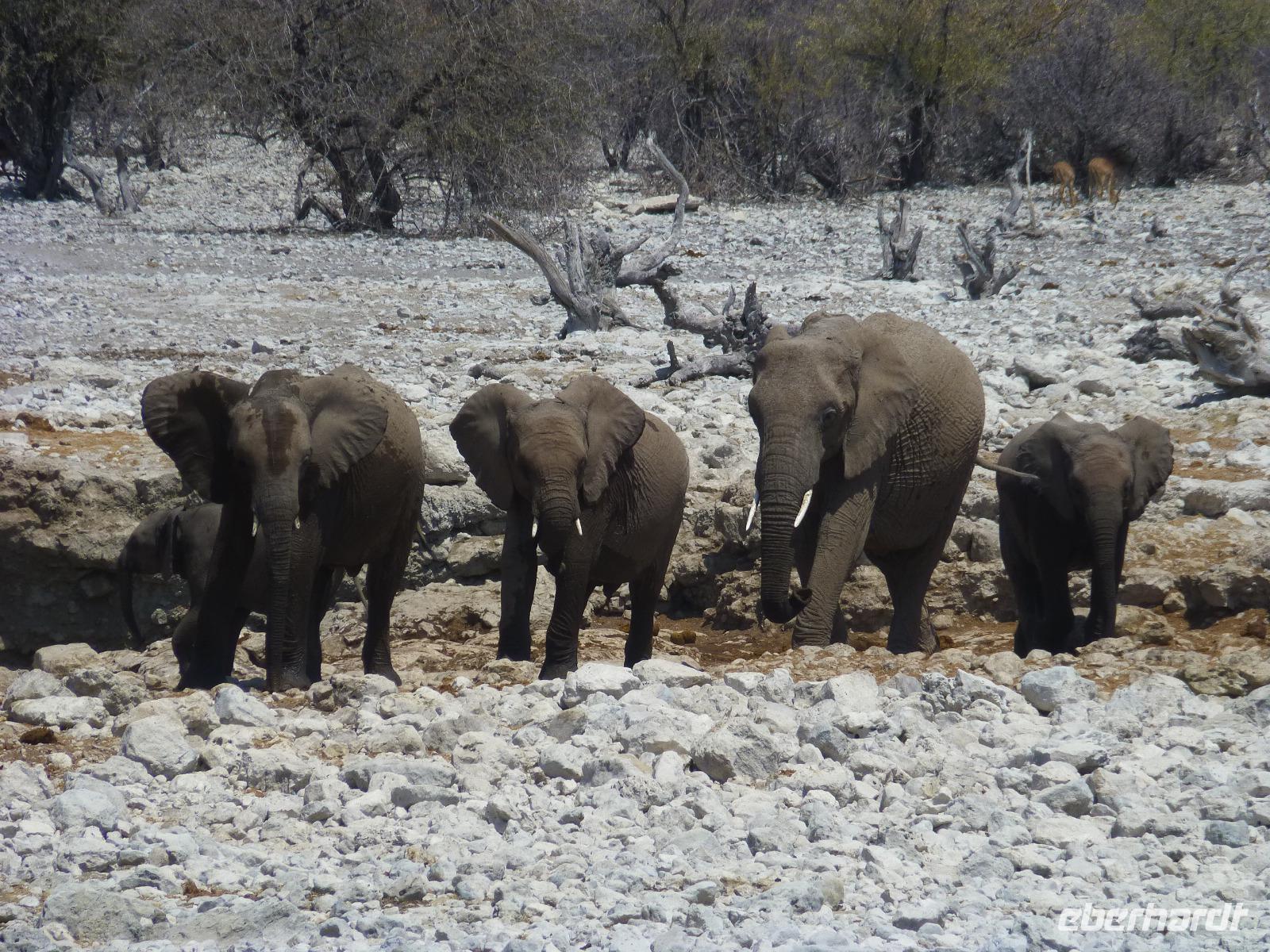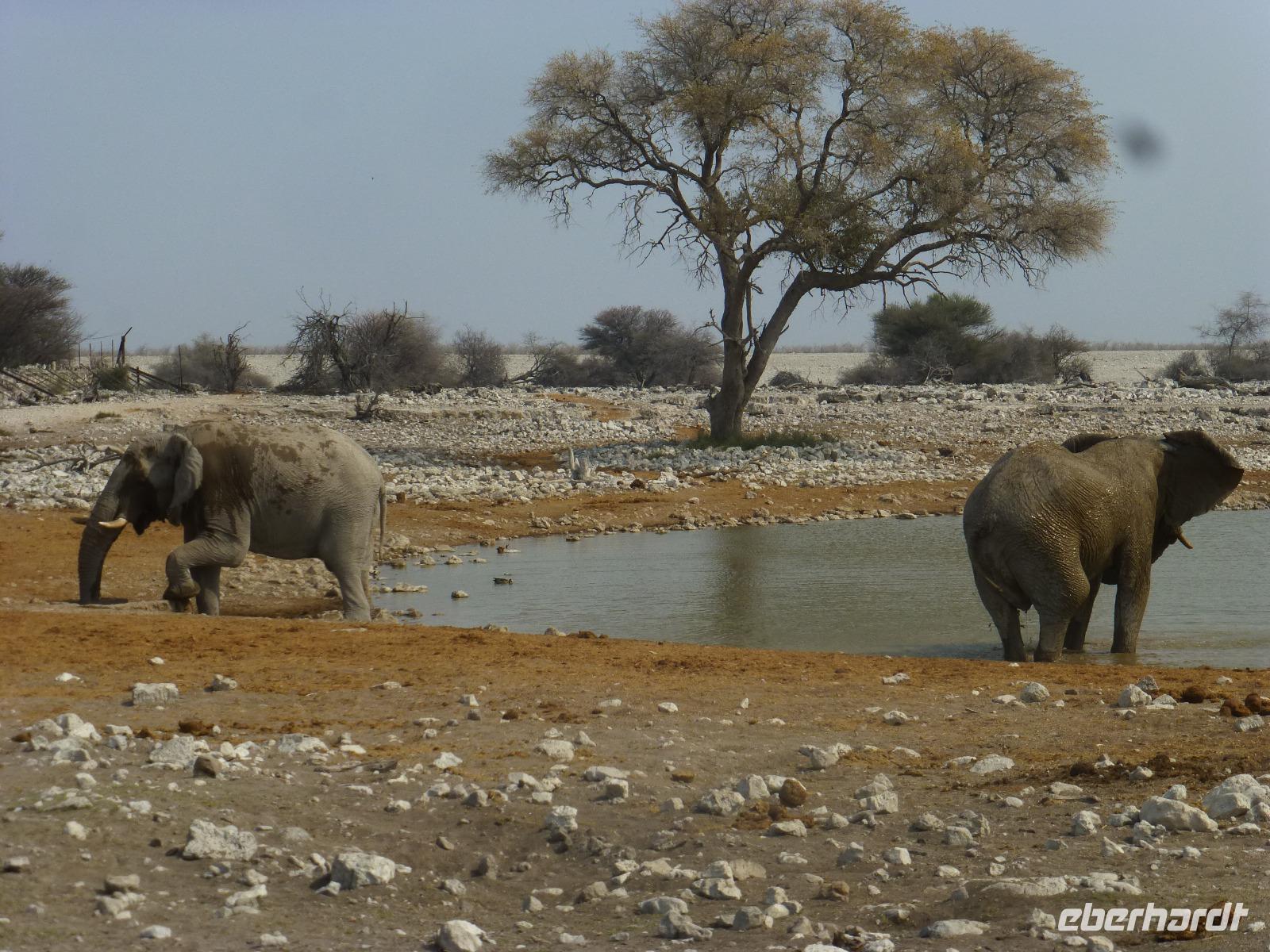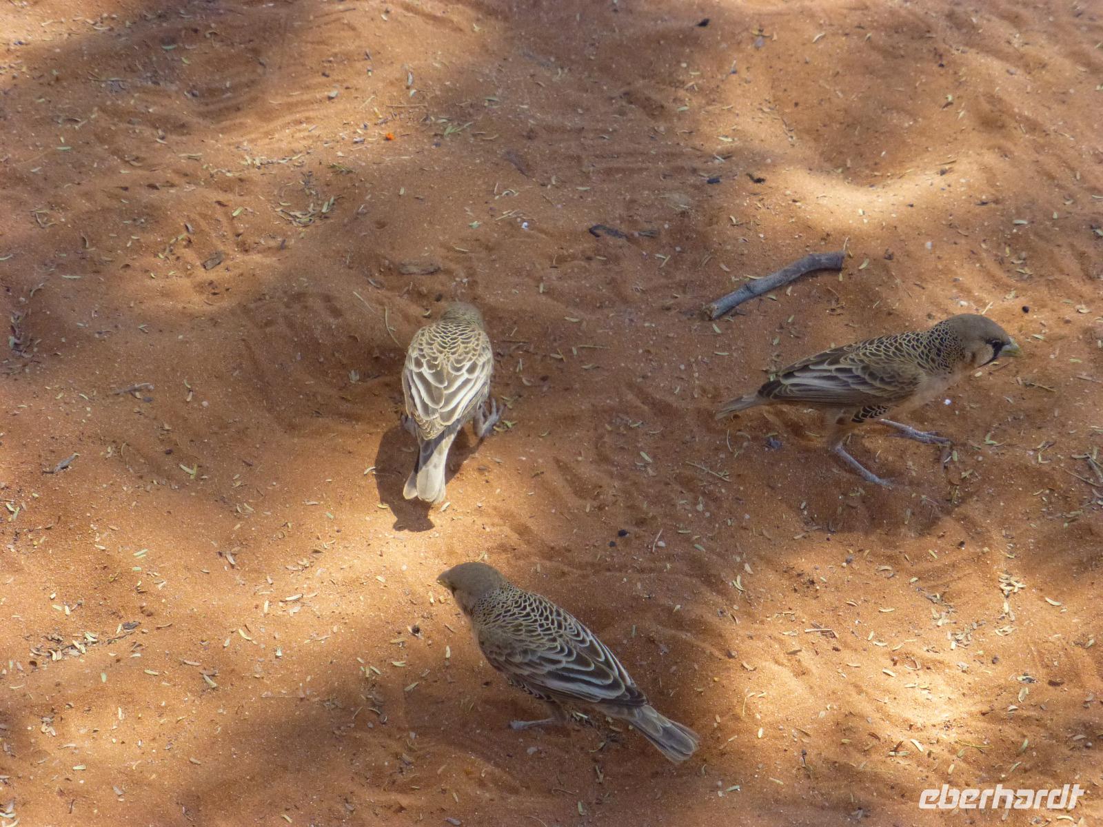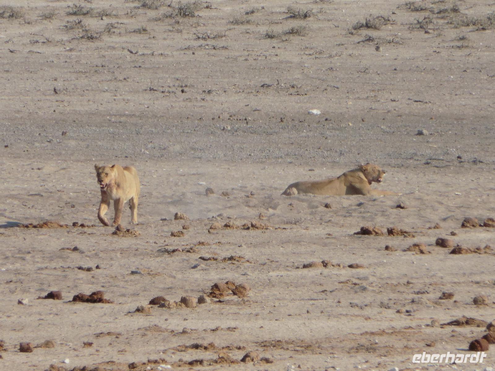 Jetzt haben wir aber Hunger, auf dem Parkplatz Lodge zum Nationalpark Eingang wollten wir picknicken. Der Platz unter einem großen, Schatten spendenden Baum war leider besetzt. Also rauf auf den Campingplatz und schattiges Plätzen suchen. Plötzlich steckte unser Truck im Sand fest. Mit vereinten Kräften schoben wir unser Gefährt aus dem Sandloch. Dann gab es endlich was zu essen. Der selbst gemachte frische Möhrensalat schmeckte bei den heißen Temperaturen besonders gut. Dann fahren wir zurück zu unserem Camp wo sich ein viele erst einmal ein kühles frischgezapftes Bier genießt. Den Nachmittag verbringt jeder nach eigenen Wünschen: das kühle Nass des Pools genießen, schlafen, lesen oder einfach die Stille der Wüste wirken lassen. Am frühen Abend wir wieder gemeinsam gekocht und gegessen. Nachdem die Dunkelheit hereingebrochen ist, erhalten wir von Ernst noch Unterricht in Sternenkunde. Er zeigt uns Milchstraße, Kreuz des Südens, Scorpion und andere Sternenbilder. Traumhaft schön...