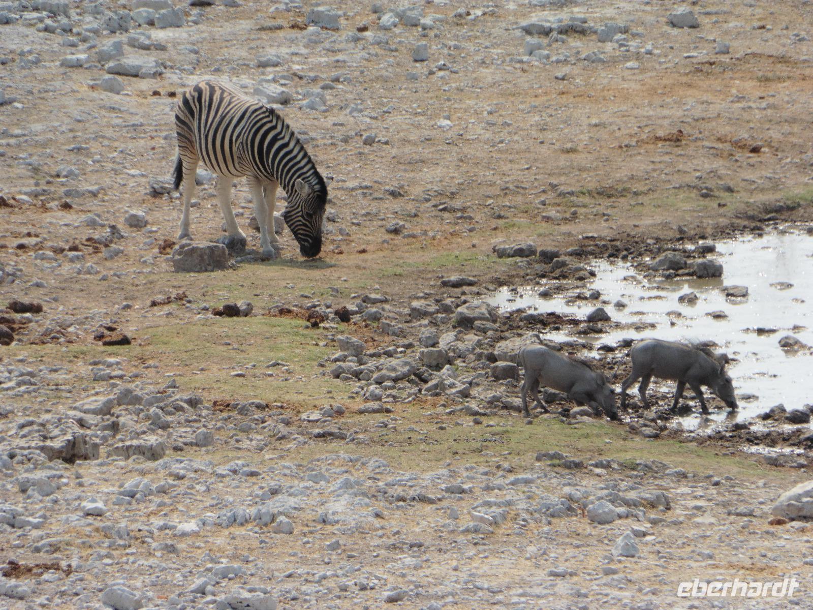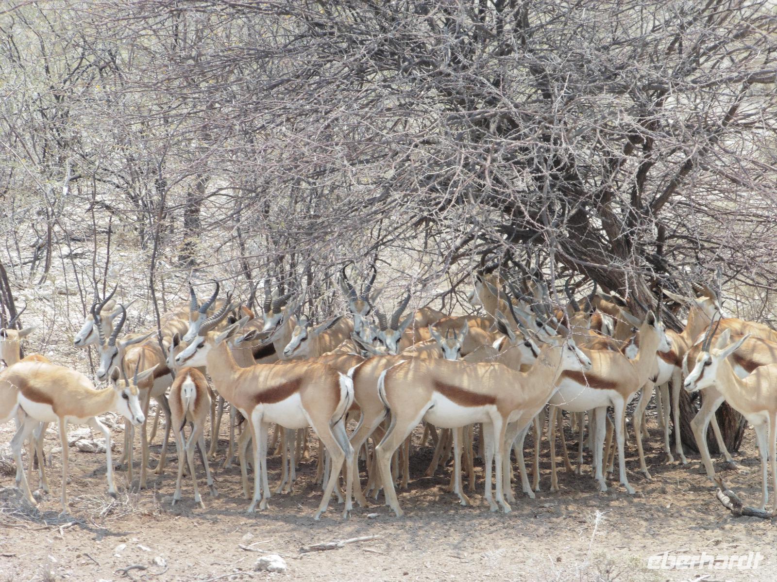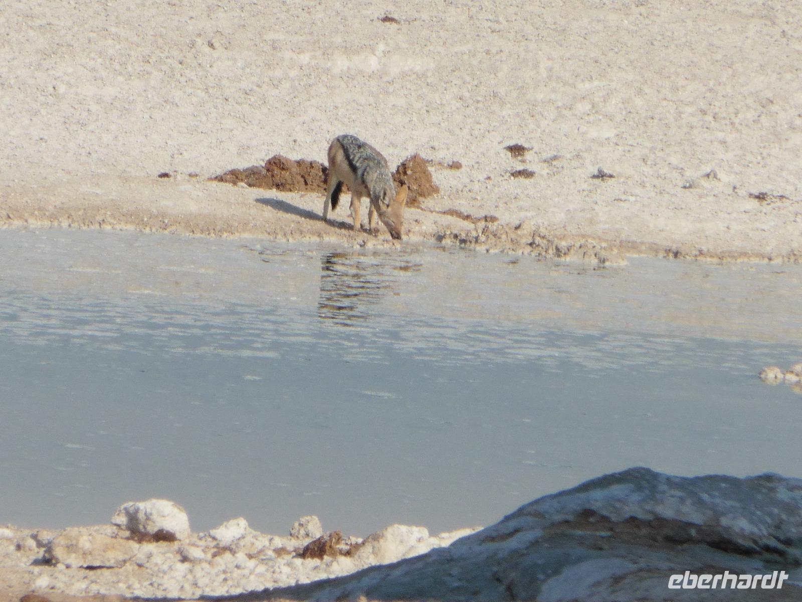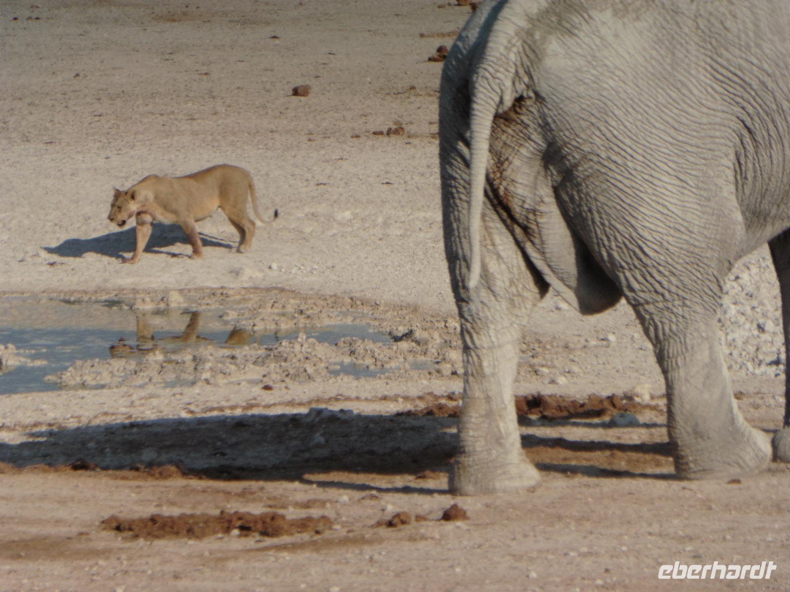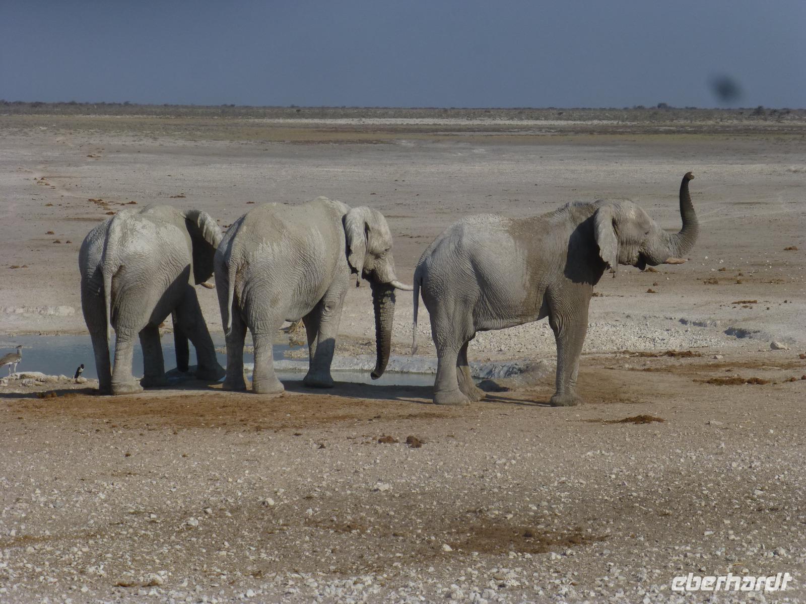 Jetzt haben wir aber Hunger, auf dem Parkplatz Lodge zum Nationalpark Eingang wollten wir picknicken. Der Platz unter einem großen, Schatten spendenden Baum war leider besetzt. Also rauf auf den Campingplatz und schattiges Plätzen suchen. Plötzlich steckte unser Truck im Sand fest. Mit vereinten Kräften schoben wir unser Gefährt aus dem Sandloch. Dann gab es endlich was zu essen. Der selbst gemachte frische Möhrensalat schmeckte bei den heißen Temperaturen besonders gut. Dann fahren wir zurück zu unserem Camp wo sich ein viele erst einmal ein kühles frischgezapftes Bier genießt. Den Nachmittag verbringt jeder nach eigenen Wünschen: das kühle Nass des Pools genießen, schlafen, lesen oder einfach die Stille der Wüste wirken lassen. Am frühen Abend wir wieder gemeinsam gekocht und gegessen. Nachdem die Dunkelheit hereingebrochen ist, erhalten wir von Ernst noch Unterricht in Sternenkunde. Er zeigt uns Milchstraße, Kreuz des Südens, Scorpion und andere Sternenbilder. Traumhaft schön...
