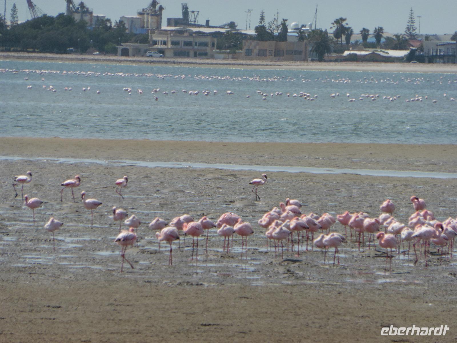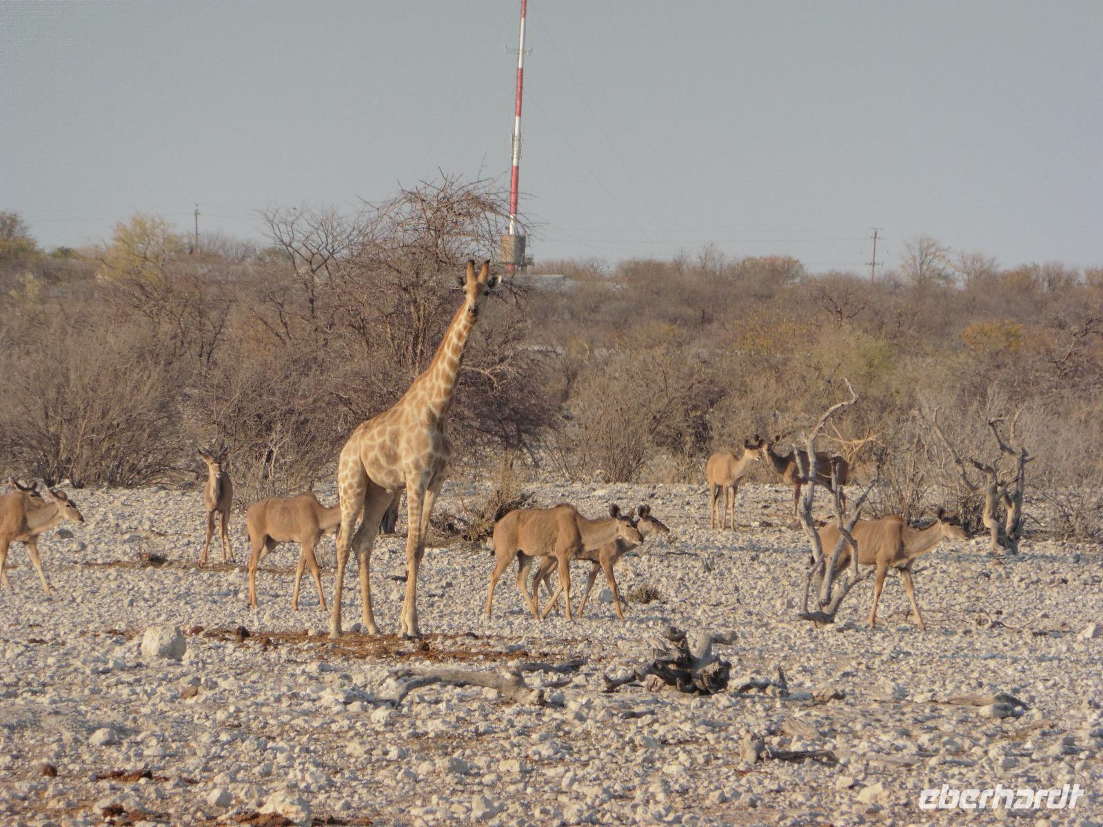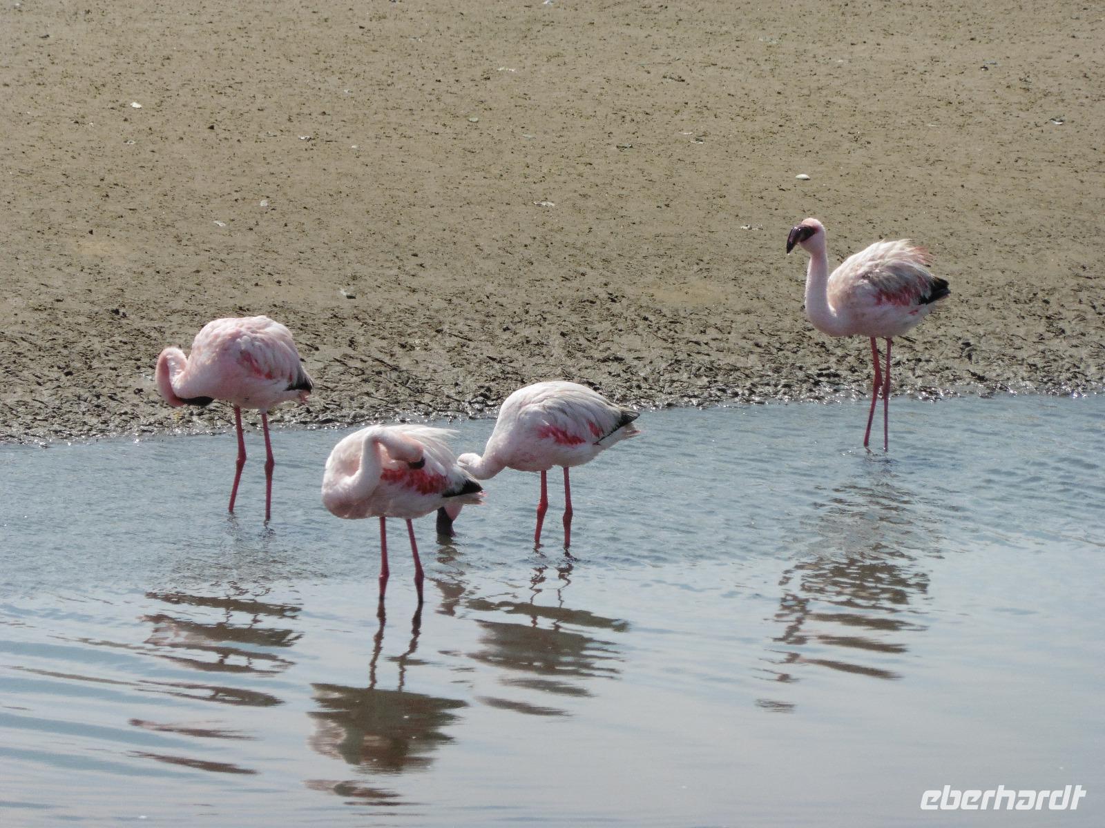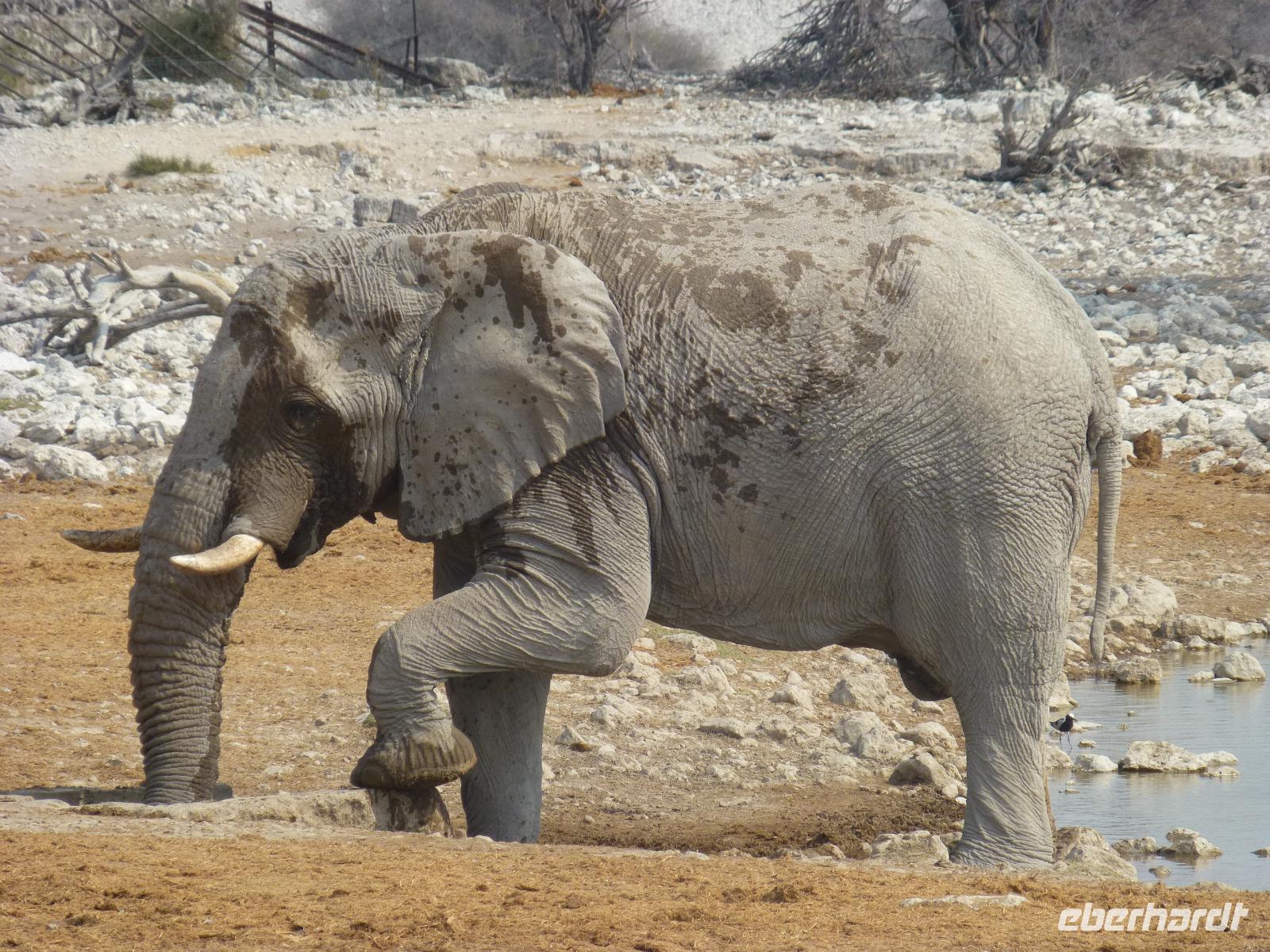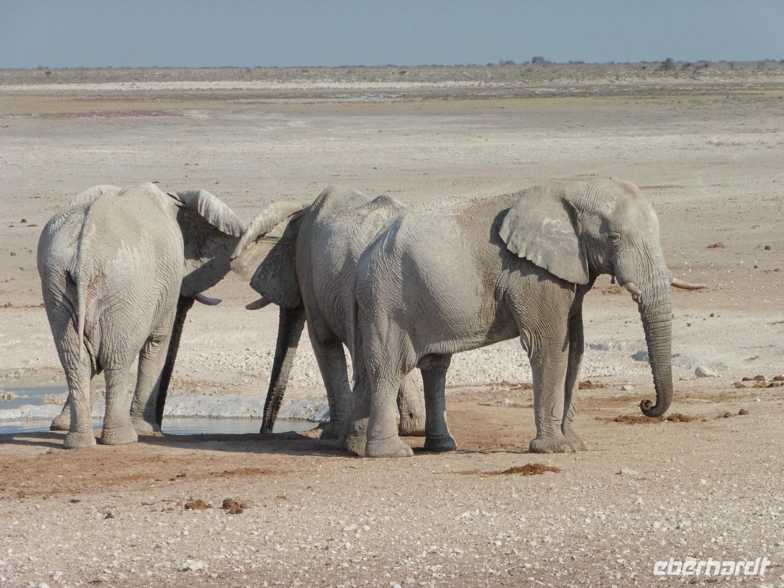 Jetzt haben wir aber Hunger, auf dem Parkplatz Lodge zum Nationalpark Eingang wollten wir picknicken. Der Platz unter einem großen, Schatten spendenden Baum war leider besetzt. Also rauf auf den Campingplatz und schattiges Plätzen suchen. Plötzlich steckte unser Truck im Sand fest. Mit vereinten Kräften schoben wir unser Gefährt aus dem Sandloch. Dann gab es endlich was zu essen. Der selbst gemachte frische Möhrensalat schmeckte bei den heißen Temperaturen besonders gut. Dann fahren wir zurück zu unserem Camp wo sich ein viele erst einmal ein kühles frischgezapftes Bier genießt. Den Nachmittag verbringt jeder nach eigenen Wünschen: das kühle Nass des Pools genießen, schlafen, lesen oder einfach die Stille der Wüste wirken lassen. Am frühen Abend wir wieder gemeinsam gekocht und gegessen. Nachdem die Dunkelheit hereingebrochen ist, erhalten wir von Ernst noch Unterricht in Sternenkunde. Er zeigt uns Milchstraße, Kreuz des Südens, Scorpion und andere Sternenbilder. Traumhaft schön...