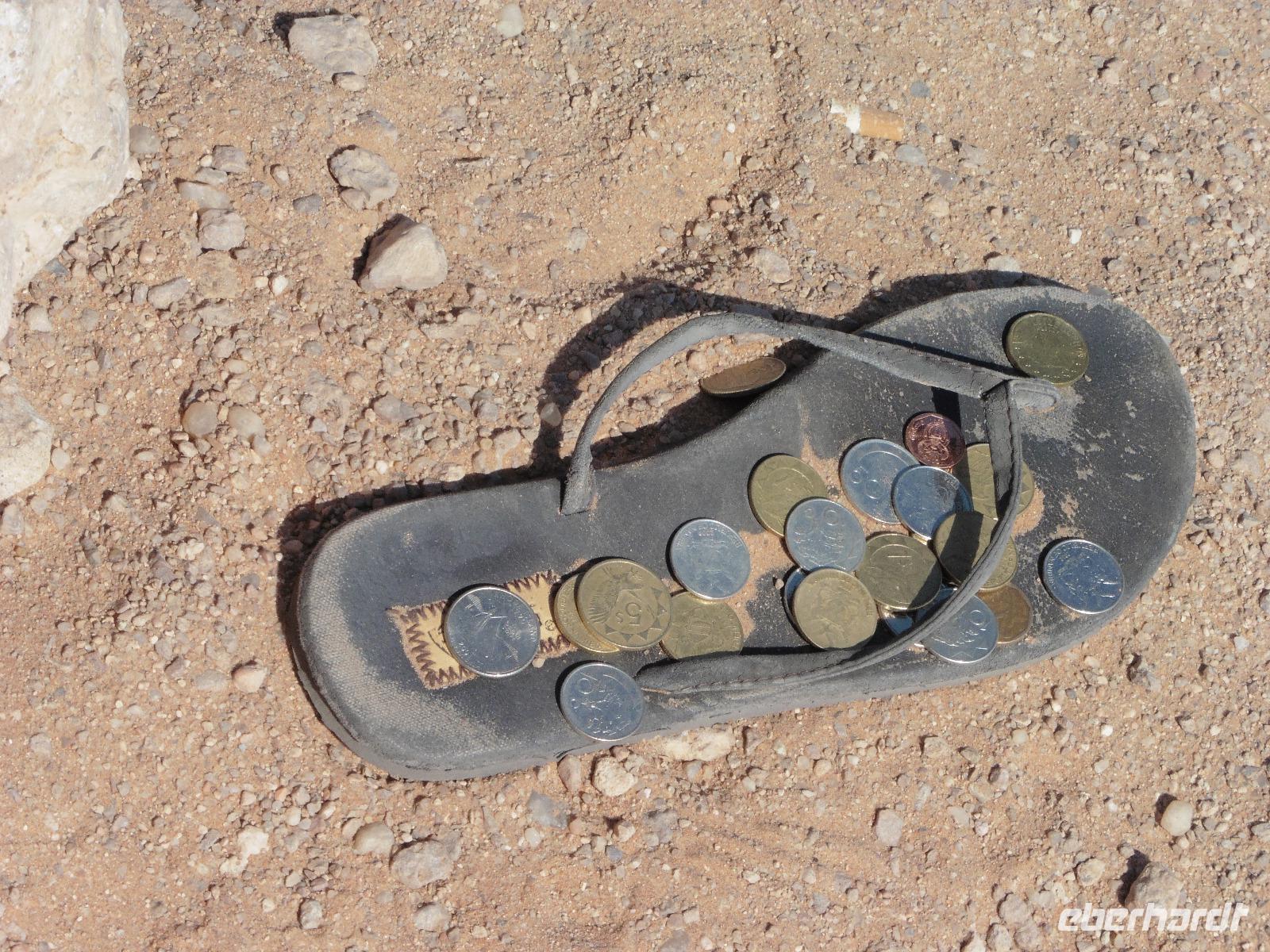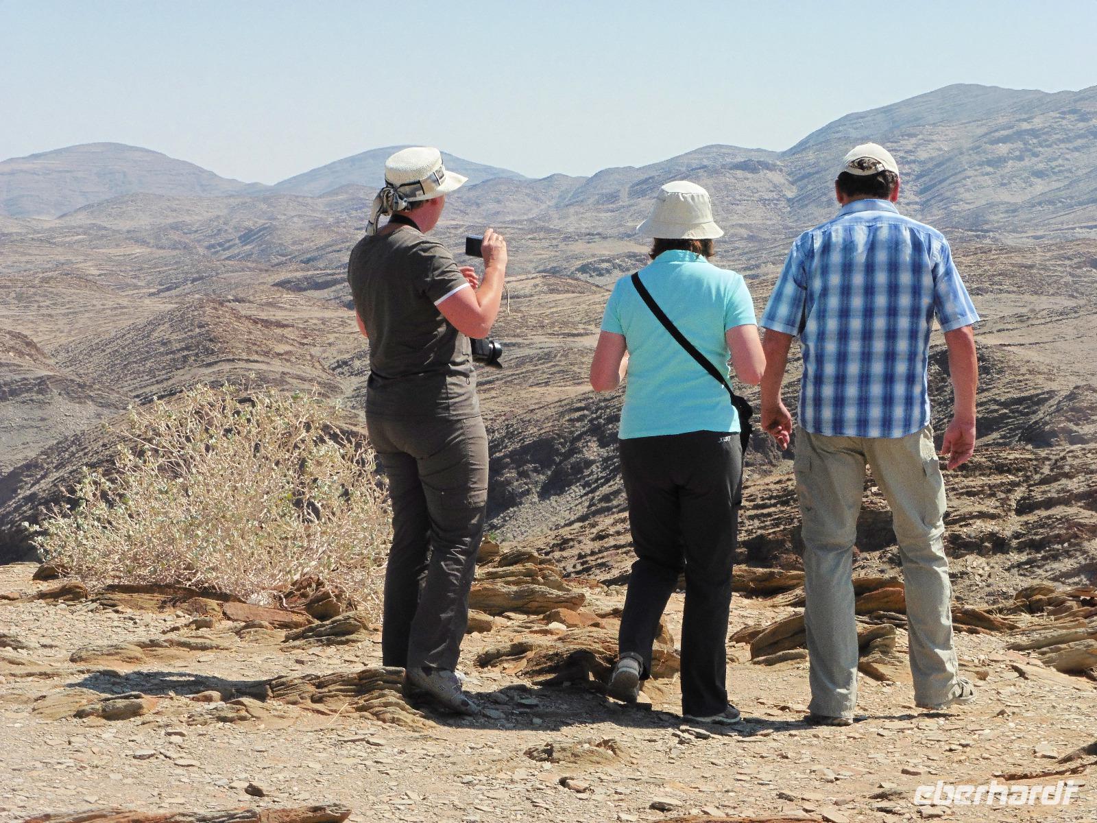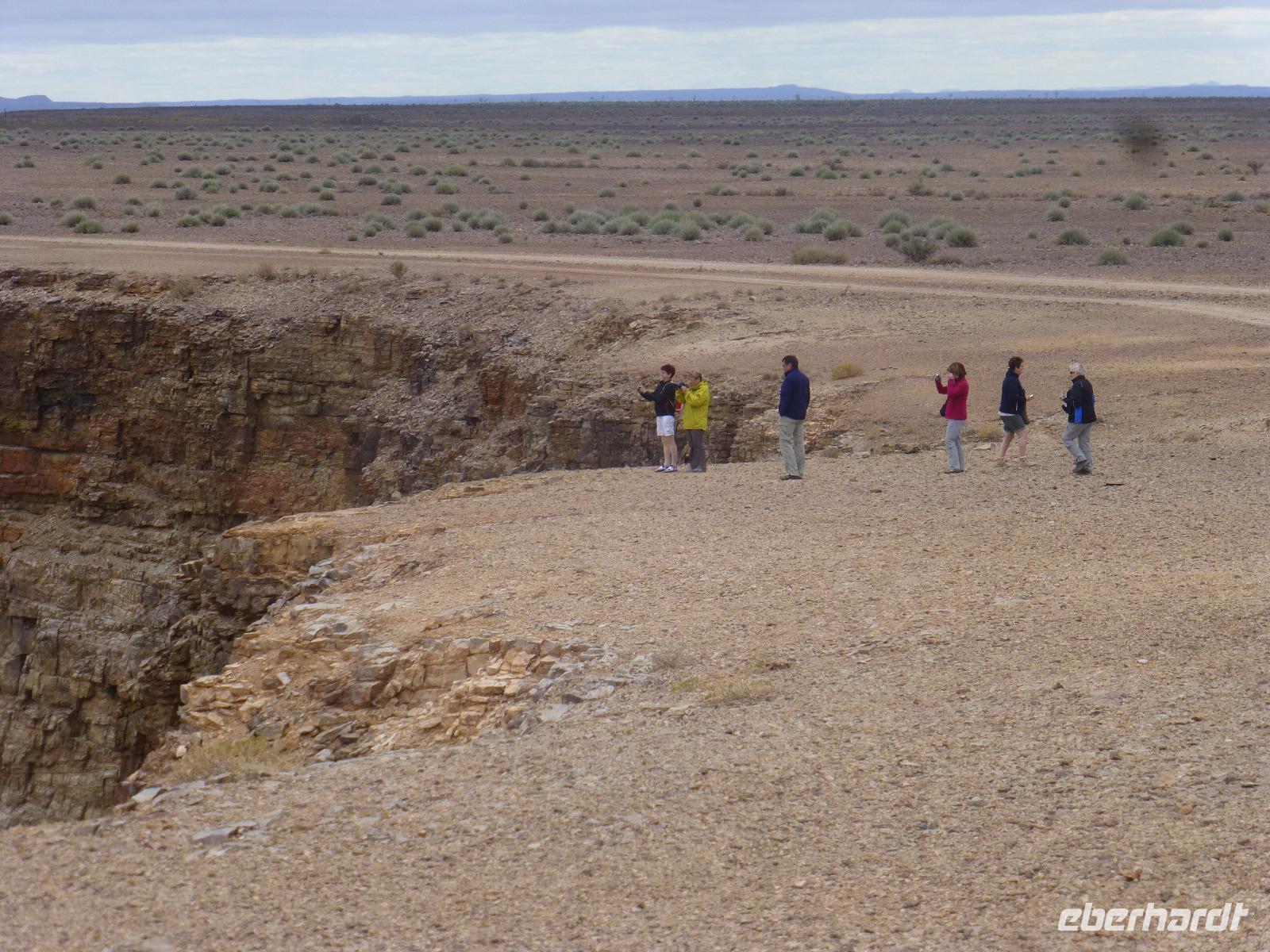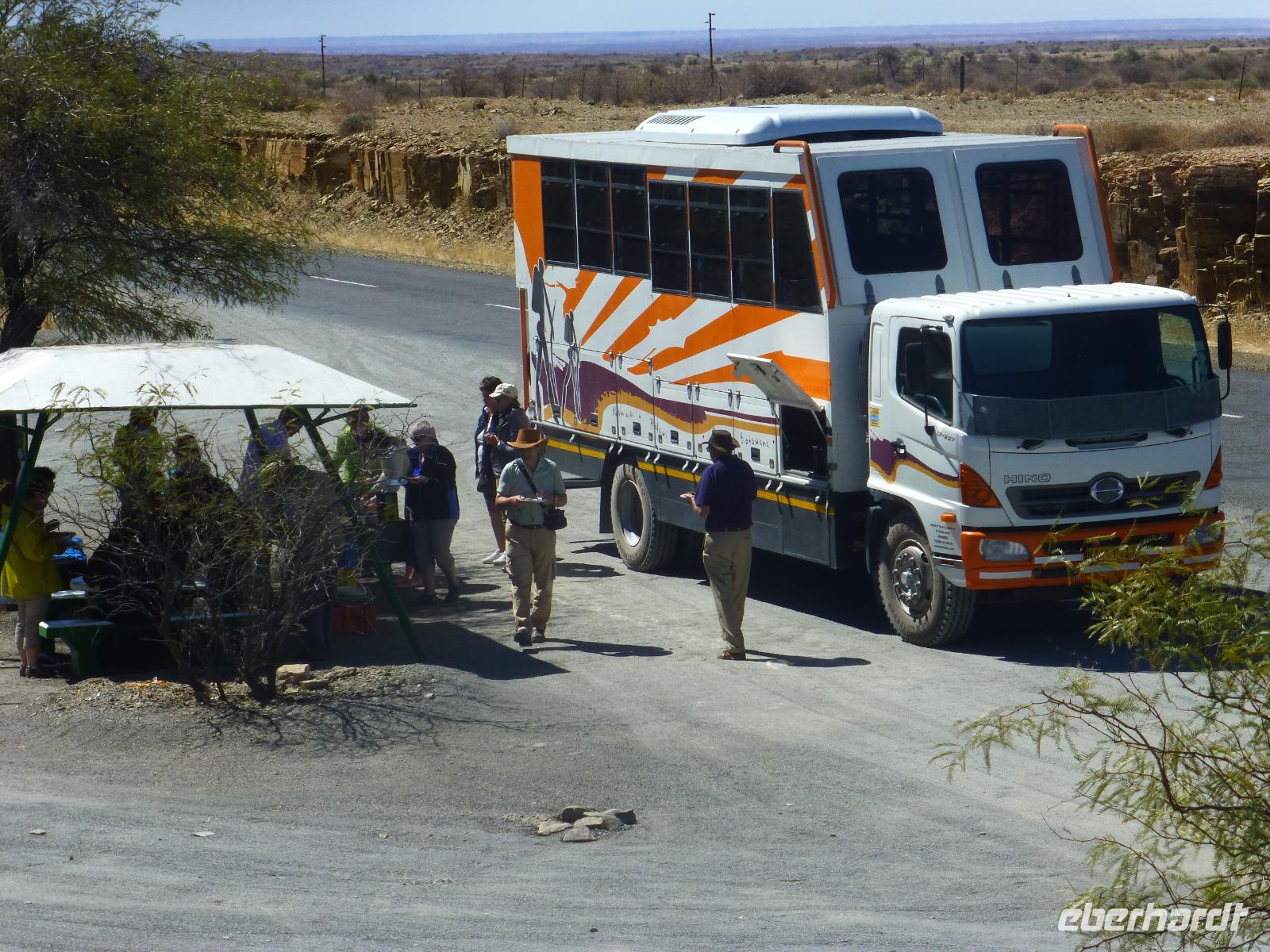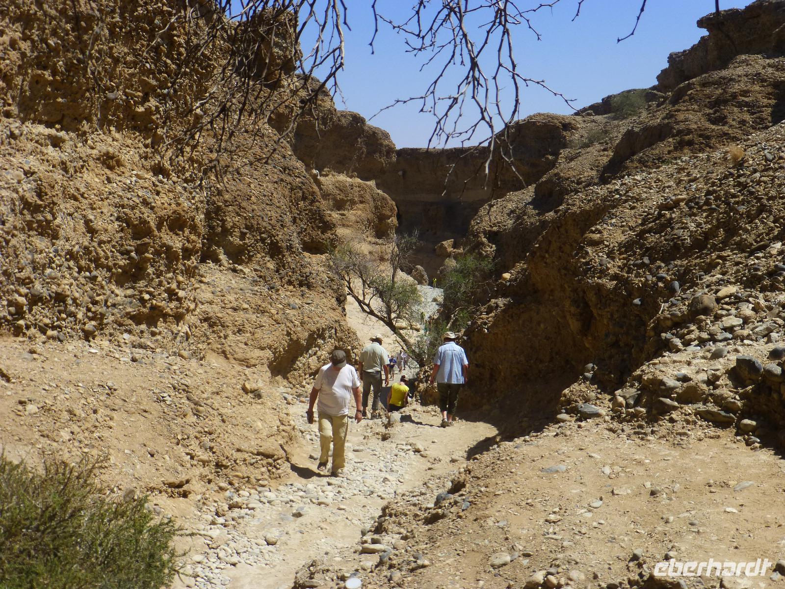 Vor der Mittagspause statten wir noch dem Sesriem Canyon einen Besuch ab. Einige Gäste unternehmen hier den Abstieg in den angenehm kühlen Canyon, wir anderen warten am Truck.