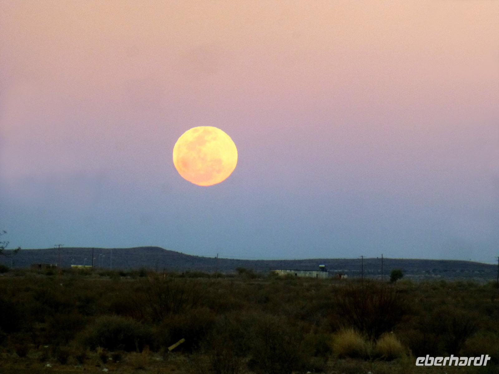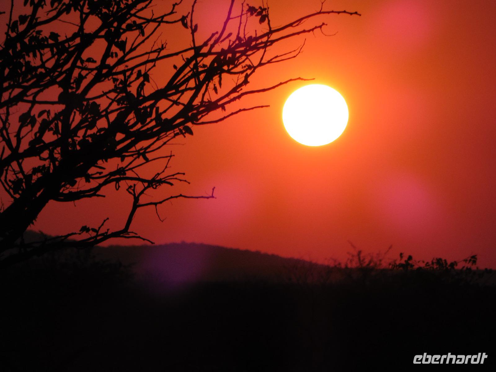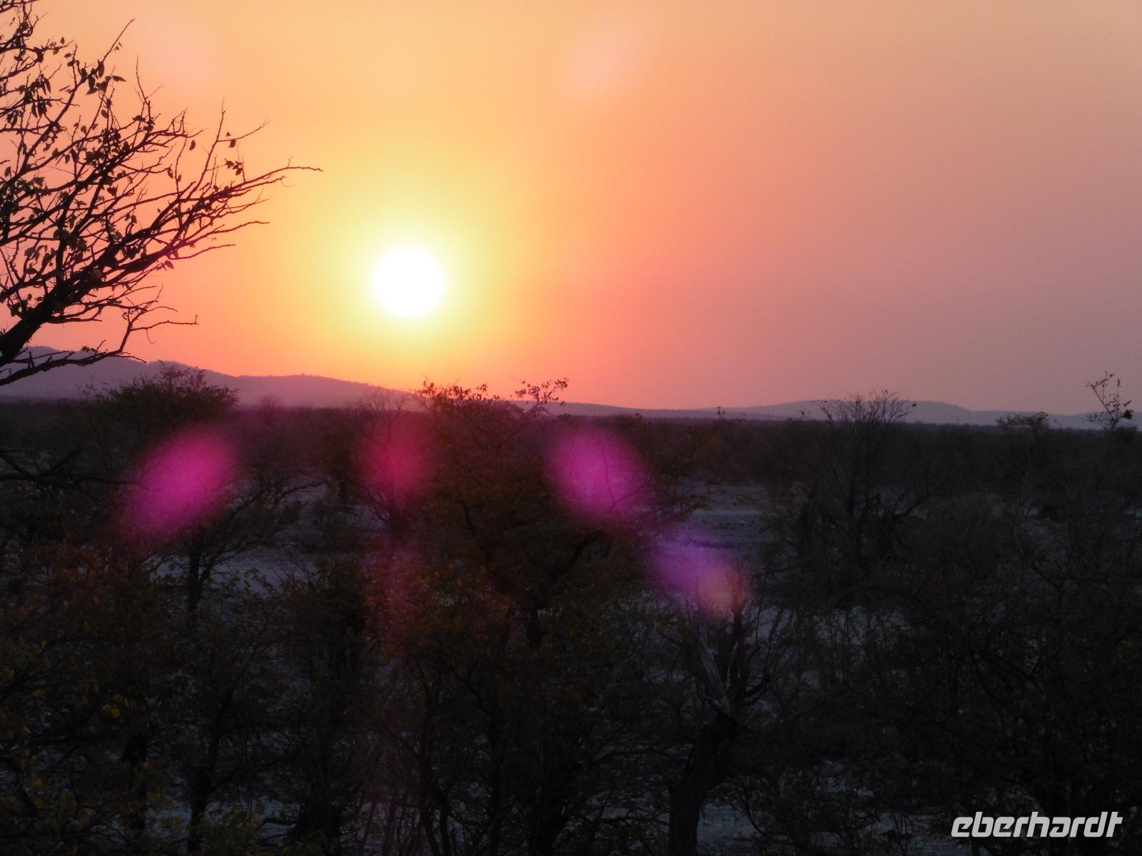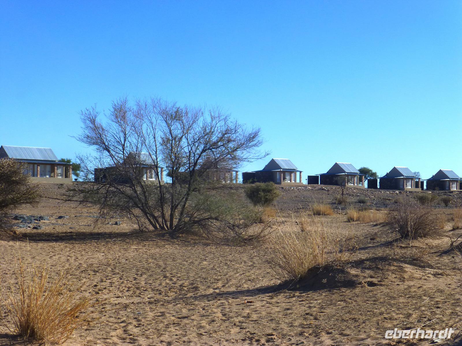 Noch völlig in Gedanken an Jörg, seine Familie und seine Farm starten wir in Richtung Naukluft Gebirge. Am Nachmittag erwartet uns in einsamer bergigen Wüstenlandschaft das Namib Naukluft Adventure Camp. Nun heisst es Truck entladen, denn für das Abendessen müssen wir, speziell aber Ernst selbst kochen. Vor dem Abendessen, nach dem wir uns in unseren Steinchalets häuslich eingerichtet , die herrliche Umgebung bestaunten und fotografiert und die Füße im kleinen Felsenpool gekühlt hatten, erwartete uns ein toller Sonnenuntergang inmitten der Wüste. Das Abendessen war lecker und nach einem kalten frischgezapften namibischen Bier, hieß es heute früh ins Körbchen, da morgen zeitiges aufstehen angesagt war.
