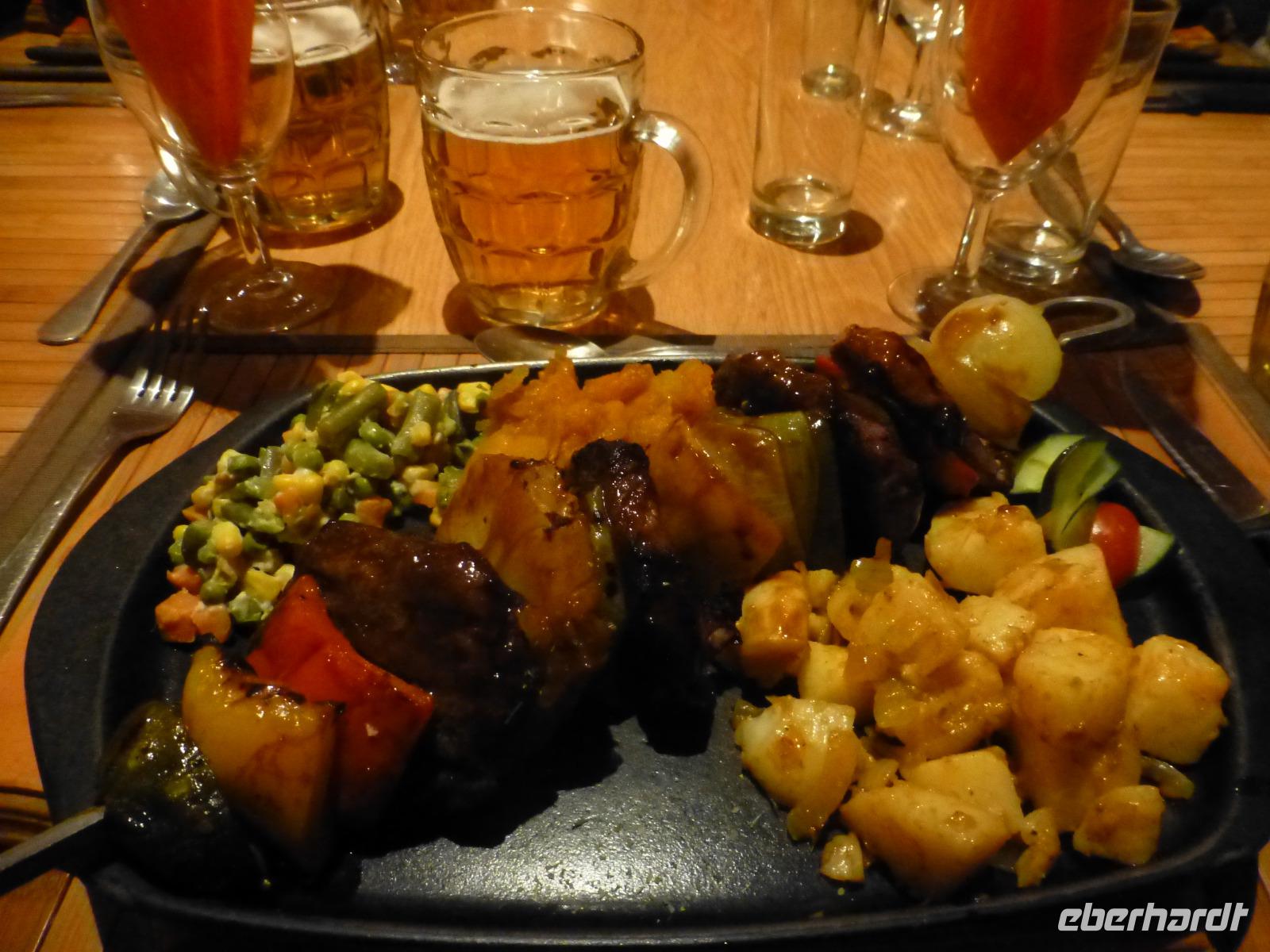 Das Abendessen a la Carte stand Dank der Bestellung schon beim Check In, zügig auf dem Tisch und ein erlebnisreicher, aber anstrengender Tag geht zu Ende.