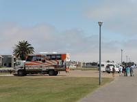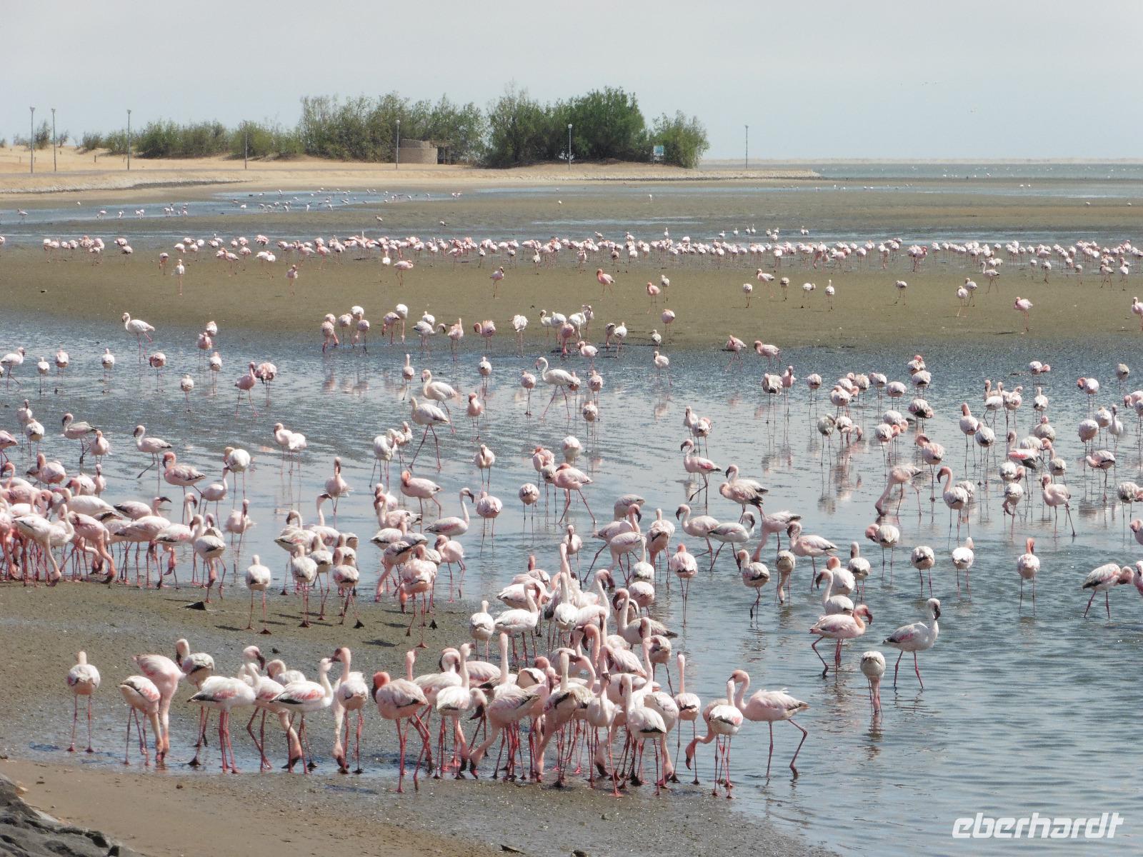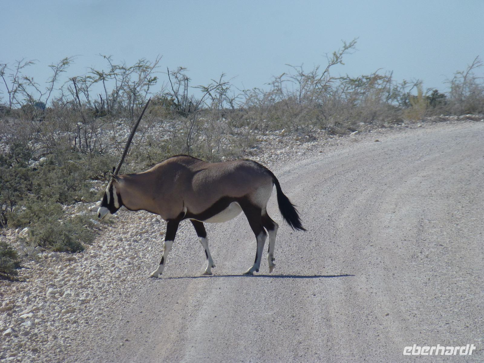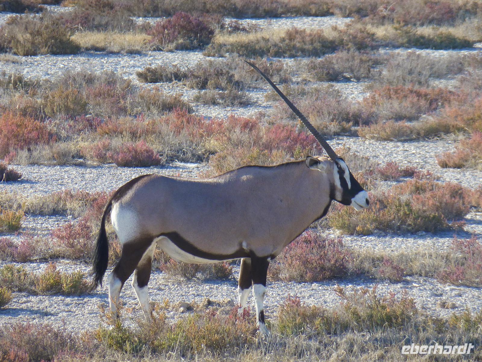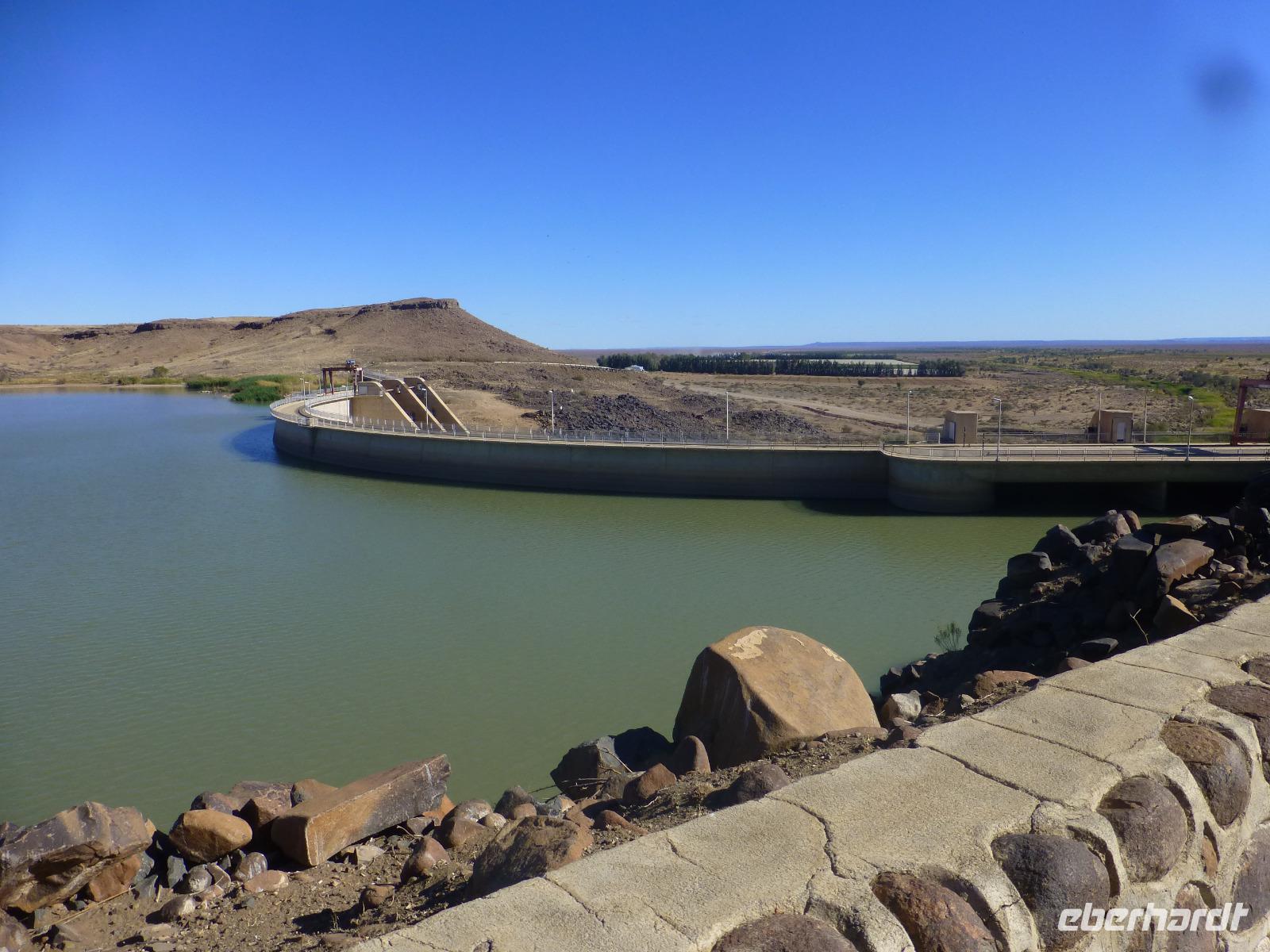 Nach dem Frühstück starteten wir weiter Richtung Süden. Wir sehen den Naute-Staudamm , der riesige Wasserspeicher versorgt die gesamte Region um Keetmanshoop mit dem kühlen Nass. Deshalb ist es nicht verwunderlich, dass hier, in unmittelbarer Umgebung ein kleines Paradies entstand: in der kargen, trockenen Landschaft eine grüne Oase mit Tafeltrauben und Datteln. Die weitere Route führte uns parallel der Eisenbahnstrecke und durch die Karoo bis zum Fish River Canyon. Unterwegs begegneten uns das erste, magische "Einhorn", auch alter Oryx genannt, Strauße und Springböcke. Schon von weitem konnten wir die gigantischen Ausfläufer des Canyons erahnen. Gigantische tauchte dieser plötzlich als „großes Loch im Boden" auf - eine spektakuläre Aussicht. Der Fish River windet sich im 550 Meter tiefen Bergmassiv und bildet somit die zweitgrößte Schluchtenlandschaft der Erde. Bei einem Spaziergang entlang der Canyon-Kante boten sich immer wieder neue Fotoperspektiven. Am Ende unseres Spazierganges, am Einstieg für Wanderungen wartete Filipo mit dem Truck auf uns. Unsere Mittagspause verbrachten wir im tollen Canon Roadhouse - eine herrliche Oase mitten in der Wüste, gespickt durch Allerlei zum Anschauen: alte, rostige Oldtimer, die zugleich Pflanzkübel für Kakteen sind, eine alte Tankstelle, die heute als Bar weiterhin ihren Zweck erfüllt.