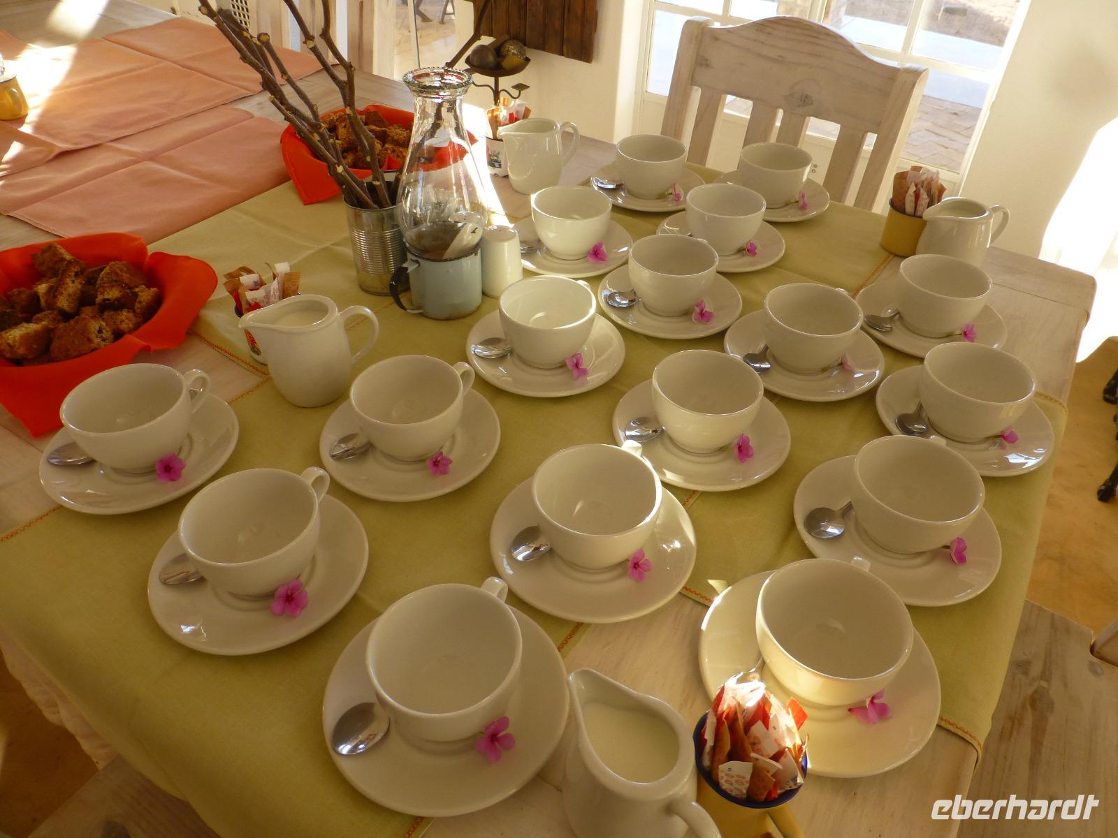 Wie beim Abendessen wurde uns auch zum Frühstück echte Hausmannskost (frisch gebackene Brötchen, leckere Marmelade und würziger Wildschinken und Rührei vom Feinsten) serviert.