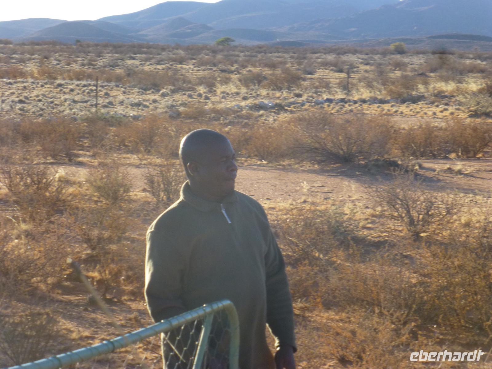 Ja, es war noch sehr früh und dunkel beim Aufstehen und die meisten von uns schlürften demzufolge still ihren Kaffee. Filipo sattelte den Truck und wir fahren durch den Namib-Naukluft-Nationalpark um heute die großen roten Dünen zu bewundern. Nach rund einer Stunde Fahrt erreichen wir den Eingang.