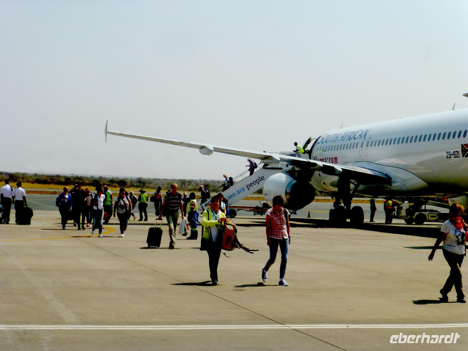 Am Abflug Gate war unsereTruppe, welche aus Dresden, Berlin, Leipzig, Hamburg und Frankfurt /M. angereist ist, komplett. Mit einer Maschine von South African Airways starteten wir in Richtung Johannesburg. Eine lange Nacht im Flugzeug stand uns bevor.