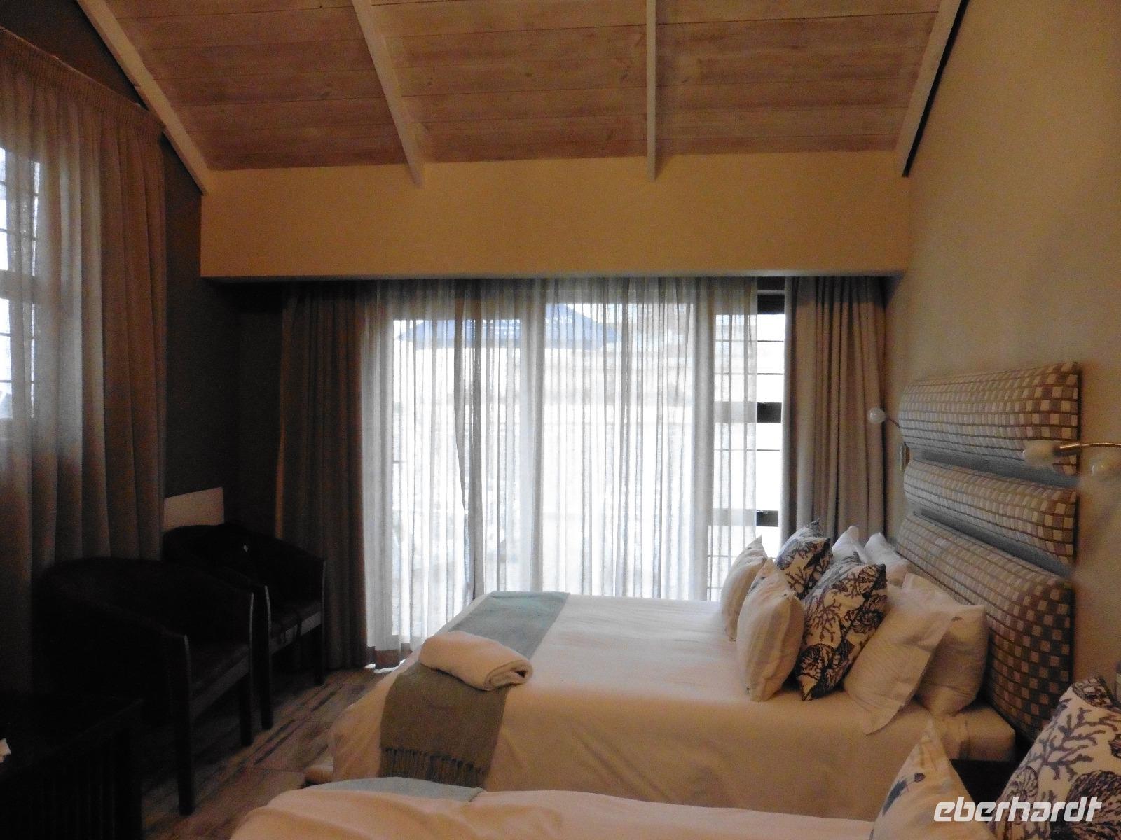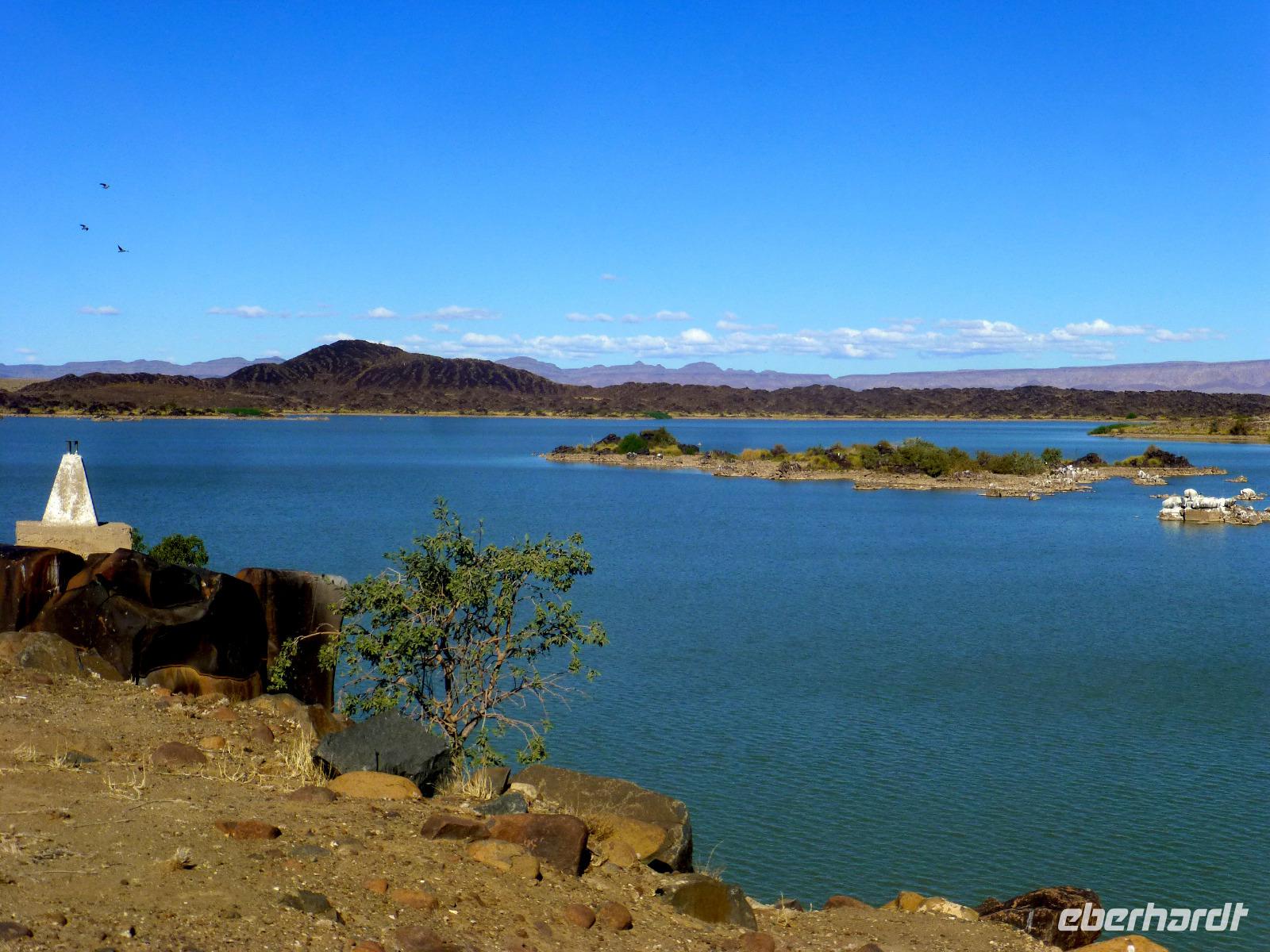 Nach einem kurzen Fotostopp am Naute Stausee, erreichen wir am späten Nachmittag, pünktlich zum beginnenden Sonnenuntergang die wunderschöne - Alte Kalköfe Logde. Uns erwarteten sehr geschmackvoll und „auf alt" eingerichtete Chalets und ein tolles Abendessen vom Buffet.