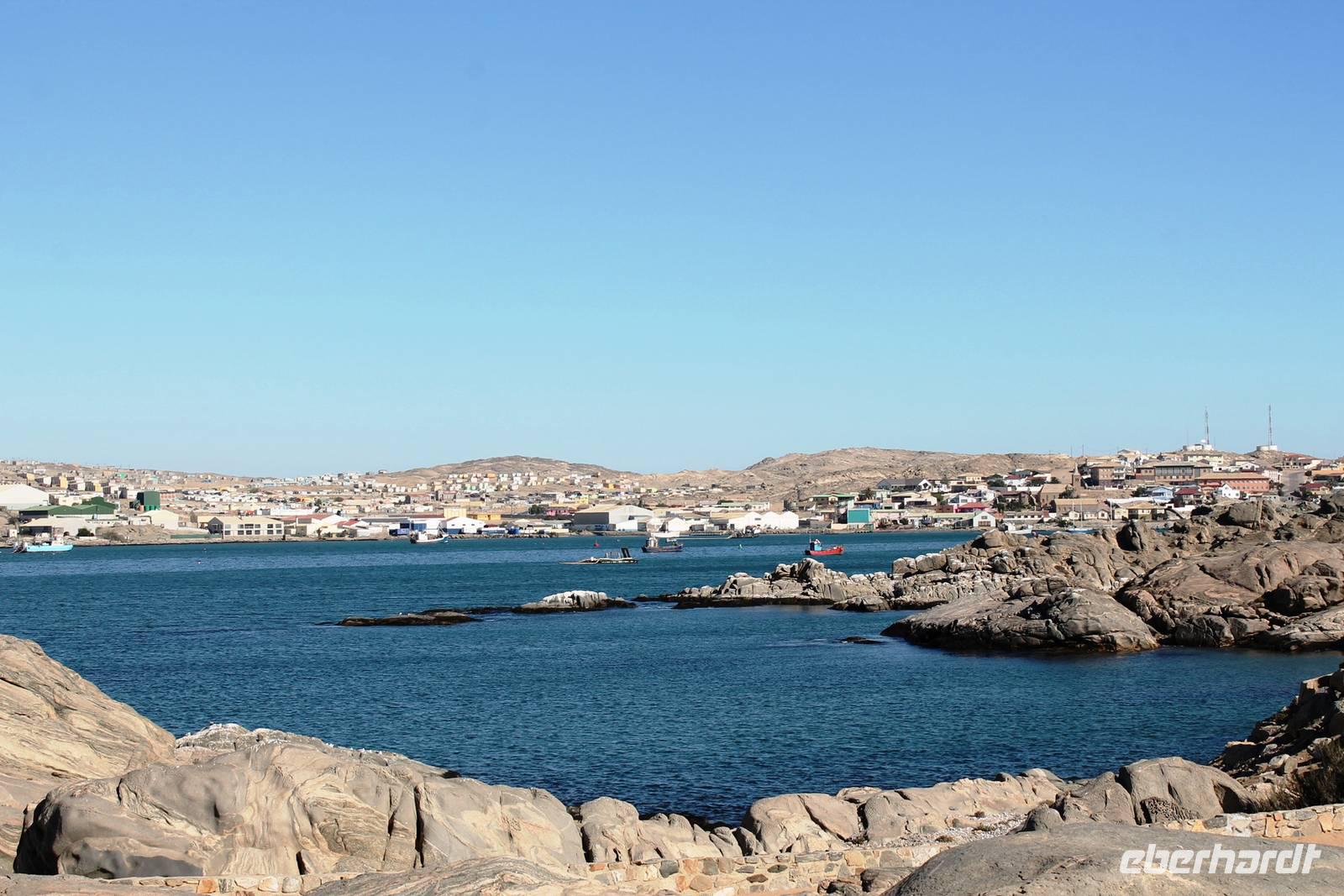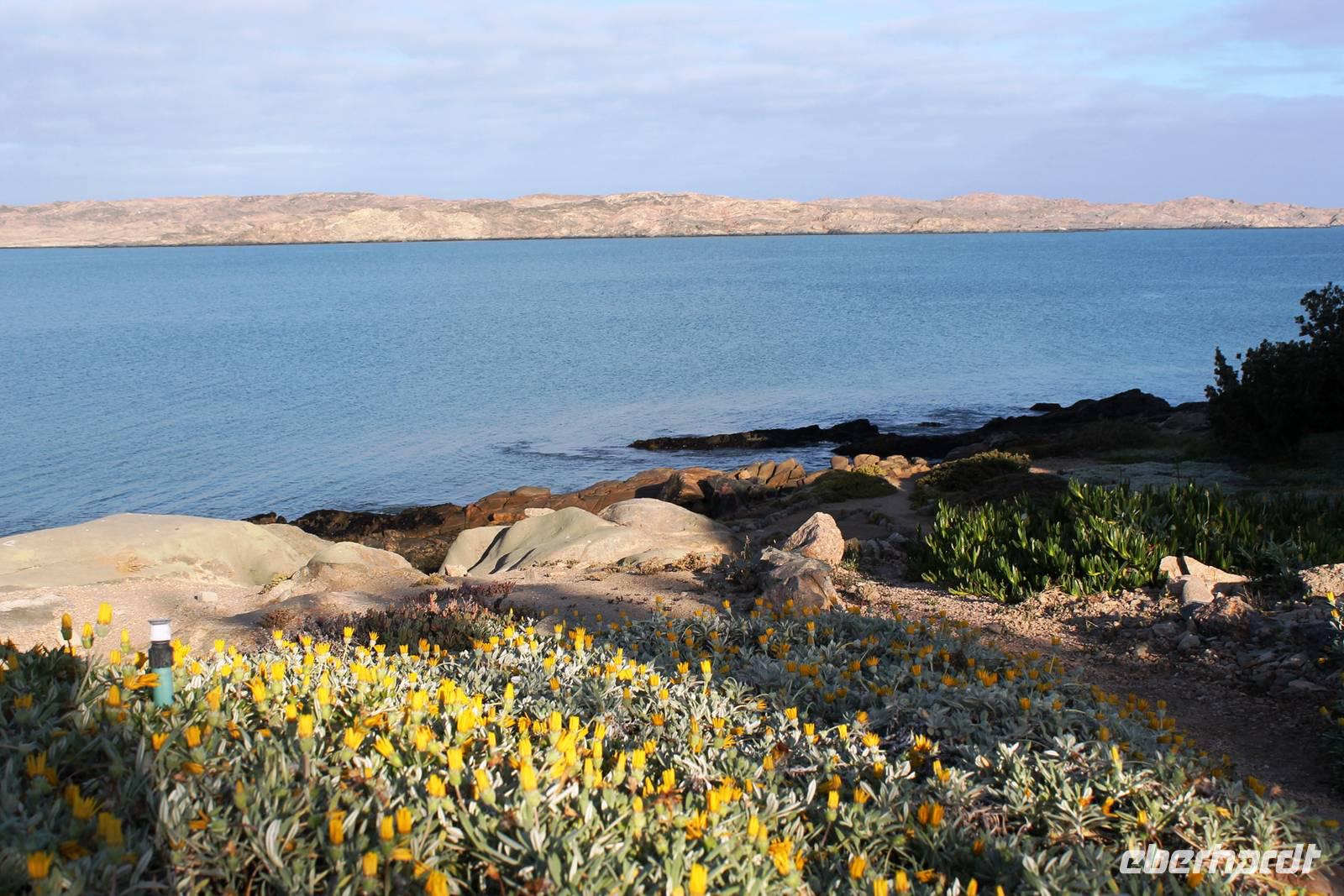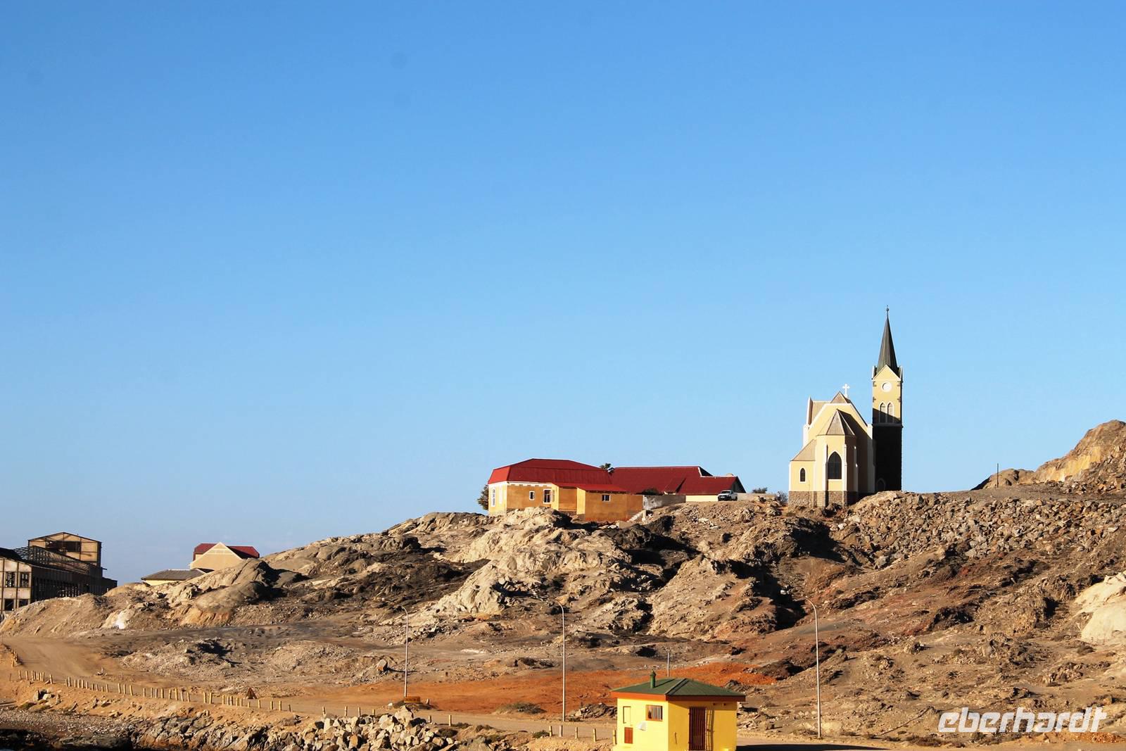 In Lüderitz angekommen unternahmen wir zunächst eine Buchtenrundfahrt, die uns zum Diaz-Point mit dem Diaz-Kreuz führt. Wir fuhren durch eine besonders karge Landschaft, vorbei an Salzfeldern, sahen Flamingos und immer wieder Hinweisschilder: Betreten verboten - Diamentensperrgebiet. Zum Diaz- Kreuz gingen wir über eine wacklige Brücke, die übrigens einige Tage nach uns in sich zusammen brach. An diesem Punkt landete im Jahr 1488 der portugisische Seefahrer Diaz bei seiner Erkundung des Seeweges nach dem Osten. Dem Diaz-Point ist im Meer eine kleine Insel mit einer Robbenkolonie vorgelagert. Bei herrlichstem Wetter, Sonnenschein und angenehmen Temperaturen lassen wir uns den Wind um die Nase wehen und genießen den Aufenthalt am Meer. Anschließend fuhren wir zur Haifisch-Insel nach Lüderitz, wo wir einen wunderbaren Blick auf Lüderitz hatten. Nach einer kleinen Rundfahrt durch das übersichtliche, farbenfrohe Lüderitz besichtigten wir die Felsenkirche, die als eines der Wahrzeichen der Stadt gilt. Das Nest-Hotel befindet sich direkt am Wasser und alle Zimmer haben Meerblick. Wir relaxten noch ein wenig beim Gin & Tonic auf der Terrasse, lauschten dem Meeresrauschen und beobachteten die Sky-Surfer. Da die Touristen in den letzten Jahren weniger wurden, suchte man Neues: Lüderitz gilt heute als Geheimtipp bei den Sky Surfern. Am Abend fuhren wir noch einmal an die Lüderitzer Waterfront, wo wir für das Abendessen im "Ritzis" Plätze reseriert hatten. Obwohl wir etwas länger auf die Speisen warteten, schmeckte es allen hervorragend und wir verlebten einen geselligen Abend, den einige noch an der Bar des Hotels ausklingen liessen.