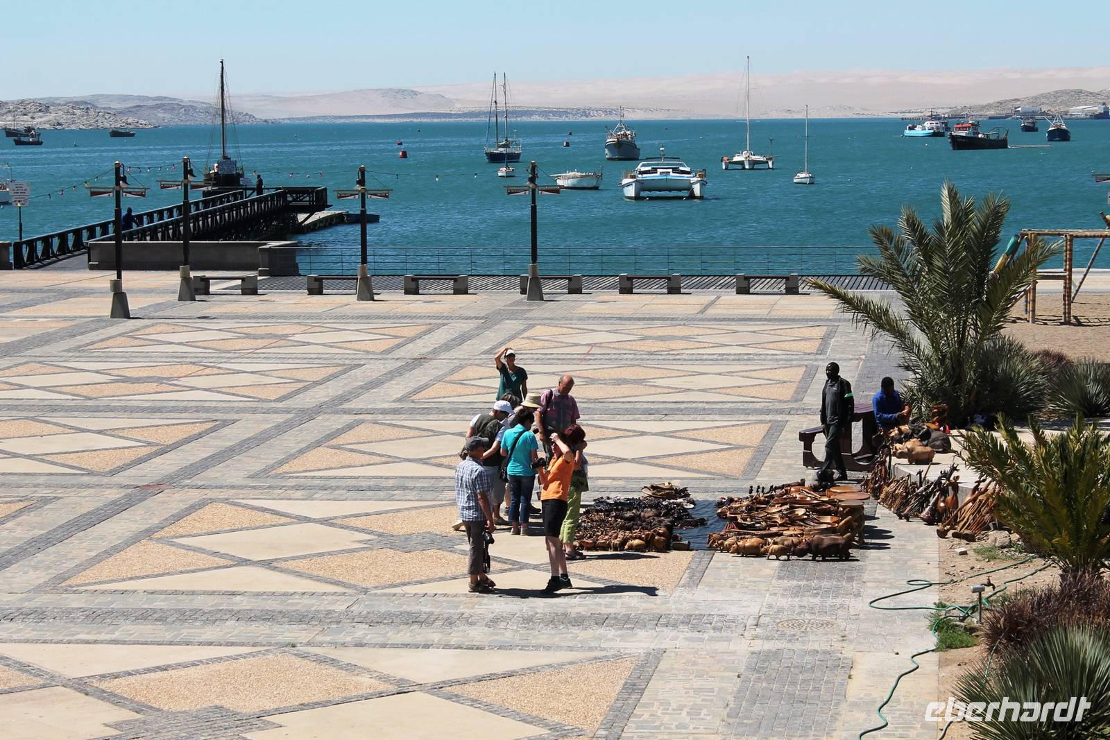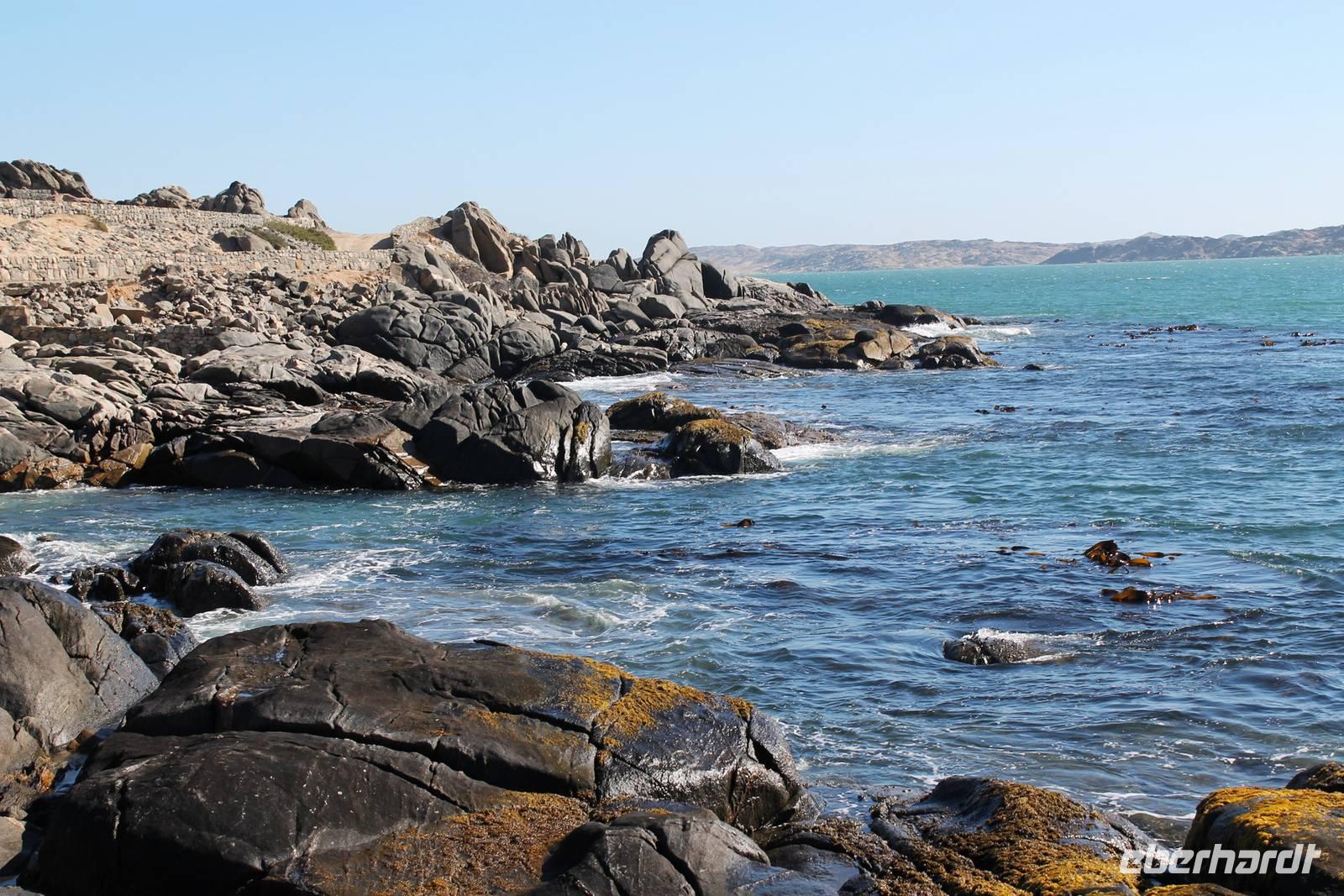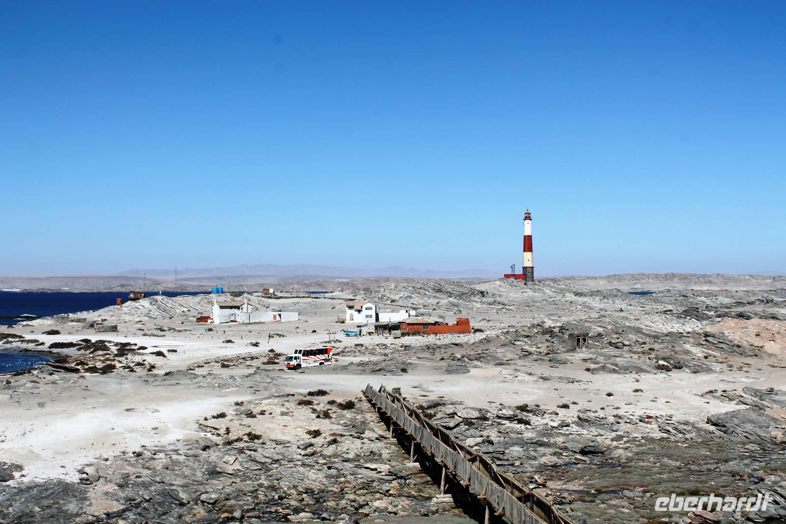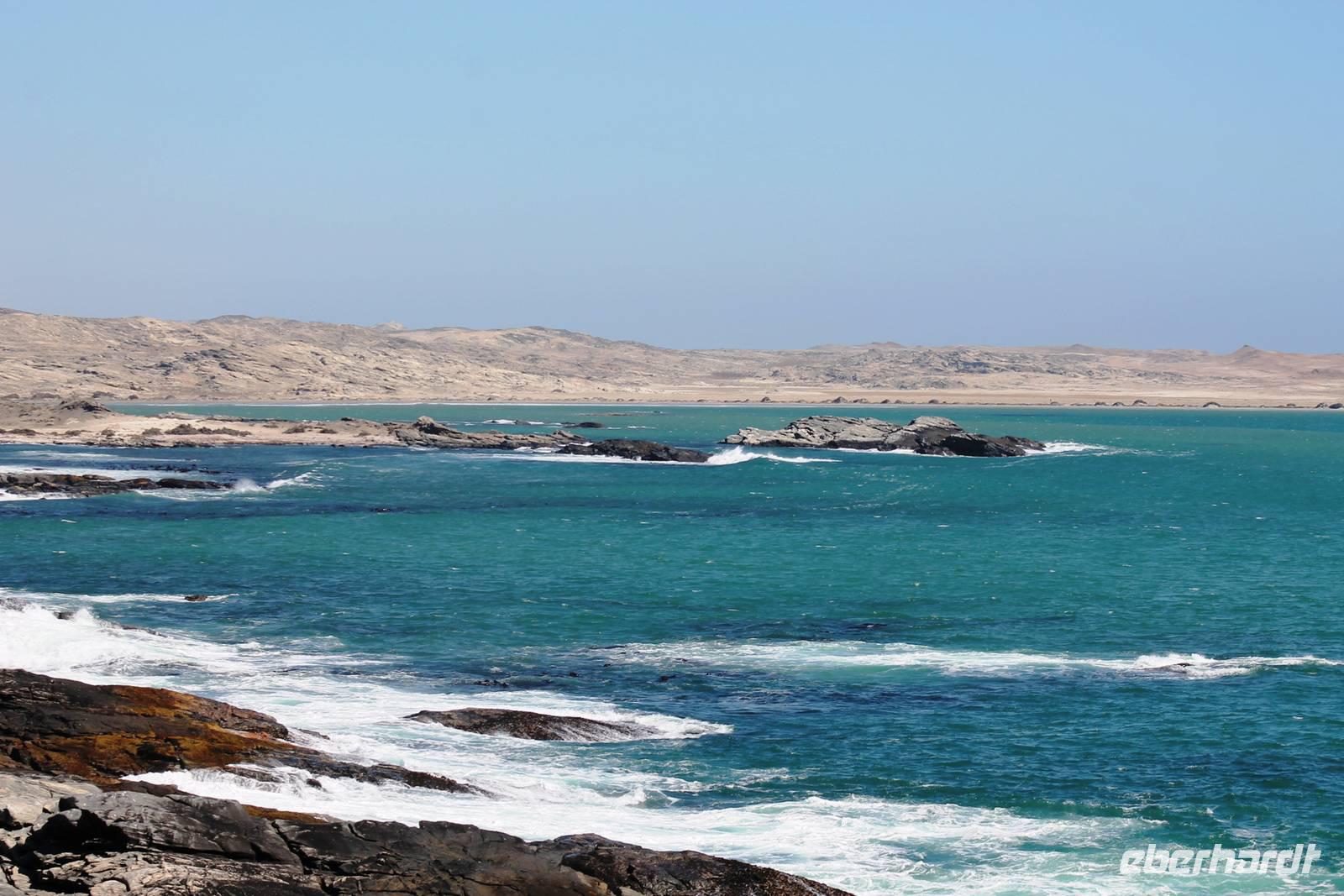 In Lüderitz angekommen unternahmen wir zunächst eine Buchtenrundfahrt, die uns zum Diaz-Point mit dem Diaz-Kreuz führt. Wir fuhren durch eine besonders karge Landschaft, vorbei an Salzfeldern, sahen Flamingos und immer wieder Hinweisschilder: Betreten verboten - Diamentensperrgebiet. Zum Diaz- Kreuz gingen wir über eine wacklige Brücke, die übrigens einige Tage nach uns in sich zusammen brach. An diesem Punkt landete im Jahr 1488 der portugisische Seefahrer Diaz bei seiner Erkundung des Seeweges nach dem Osten. Dem Diaz-Point ist im Meer eine kleine Insel mit einer Robbenkolonie vorgelagert. Bei herrlichstem Wetter, Sonnenschein und angenehmen Temperaturen lassen wir uns den Wind um die Nase wehen und genießen den Aufenthalt am Meer. Anschließend fuhren wir zur Haifisch-Insel nach Lüderitz, wo wir einen wunderbaren Blick auf Lüderitz hatten. Nach einer kleinen Rundfahrt durch das übersichtliche, farbenfrohe Lüderitz besichtigten wir die Felsenkirche, die als eines der Wahrzeichen der Stadt gilt. Das Nest-Hotel befindet sich direkt am Wasser und alle Zimmer haben Meerblick. Wir relaxten noch ein wenig beim Gin & Tonic auf der Terrasse, lauschten dem Meeresrauschen und beobachteten die Sky-Surfer. Da die Touristen in den letzten Jahren weniger wurden, suchte man Neues: Lüderitz gilt heute als Geheimtipp bei den Sky Surfern. Am Abend fuhren wir noch einmal an die Lüderitzer Waterfront, wo wir für das Abendessen im "Ritzis" Plätze reseriert hatten. Obwohl wir etwas länger auf die Speisen warteten, schmeckte es allen hervorragend und wir verlebten einen geselligen Abend, den einige noch an der Bar des Hotels ausklingen liessen.