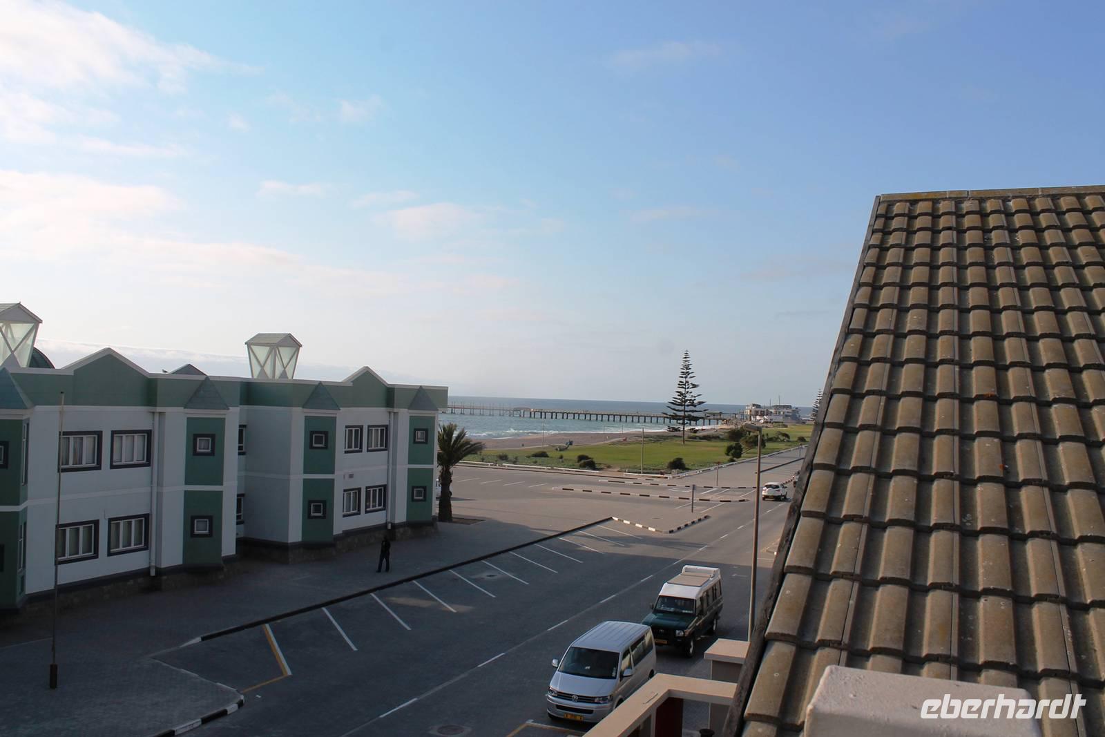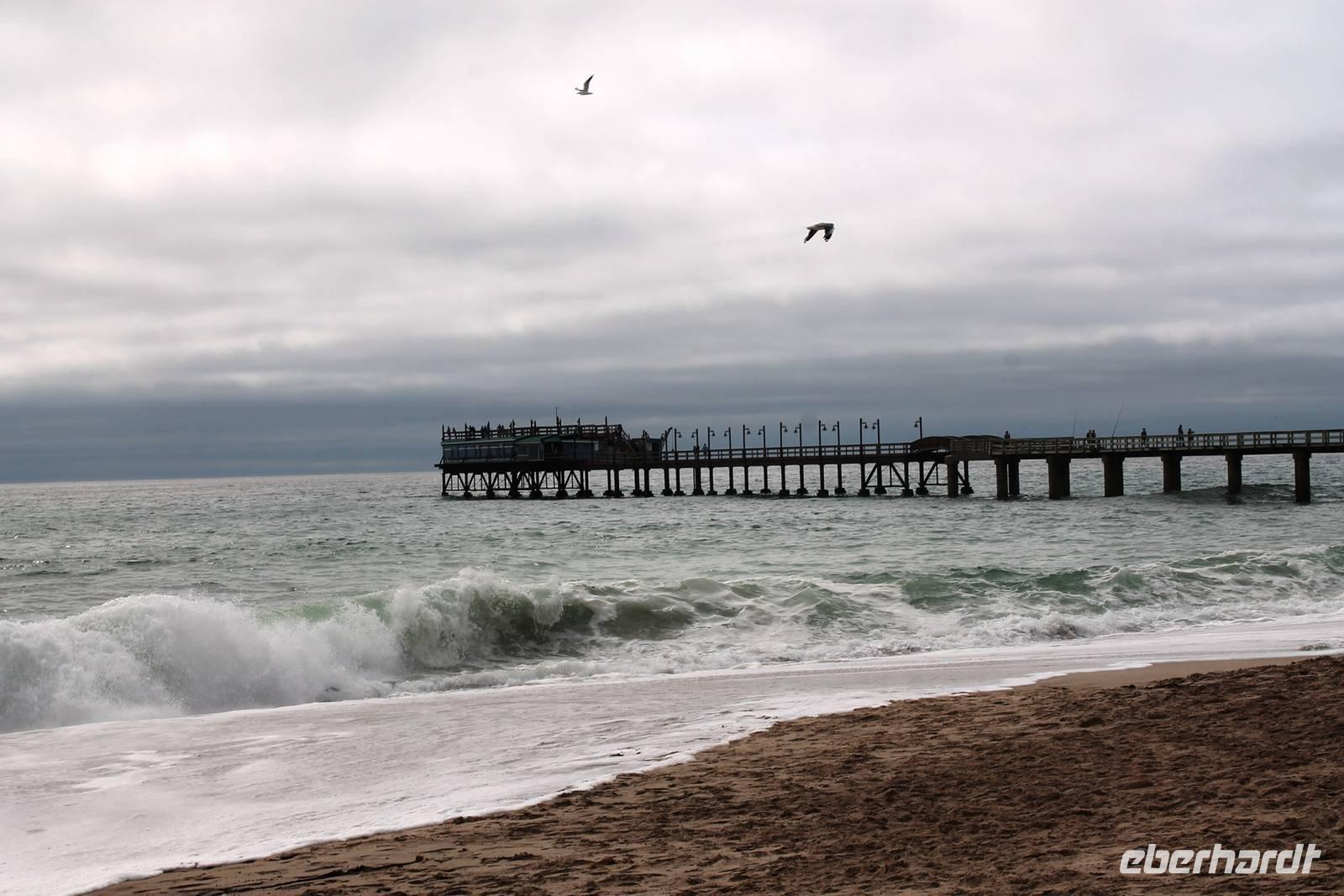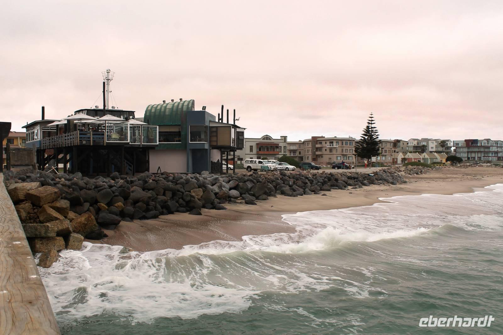 Unterwegs passierten wir zum 2. Mal den südlichen Wendekreis des Steinbocks (Tropic of capricorn), diesmal mit Fotostopp. An diesem Punkt strahlt die Sonne am 21. Dezember jeden Jahres senkrecht auf die Erde, dass kein Schatten entsteht. Eine landschaftlich rauhe, aber wunderschöne Strecke führte uns über den Gaub Pass (knapp 800 m hoch) und durch den Kuiseb Canyon, wo sich Prof. Dr. Henno Martin (Geologe und Autor des Bestsellers "Wenn es Krieg gibt, gehen wir in die Wüste") während des 2. Weltkriegs versteckt hielt. Schon am Mittag erreichten wir Swakopmund am Atlantik. Da unsere Zimmer im Swakop Sands Hotel noch nicht bezugsfertig waren, unternahmen wir einen Spaziergang/-fahrt durch die Stadt, dem Küstenstädtchen mit deutscher Vergangenheit: Prinzessin-Rupprecht-Haus, Alte Kaserne, Seebrücke "Jetty", Woermann-Haus mit Damaraturm, Leuchtturm, Kaiserliches Bezirksgericht, Altes Amtsgericht, Bahnhof, "Ritterburg" und das Hohenzollern-Haus. Zum Mittagssnack kehrten wir im Cafe Bojo ein, wo freundlich und schnell eine lange Tafel für uns eingedeckt wurde. Am Nachmittag hatten sich einige Gäste für einen 2stündigen Rundflug über die Namib entschieden und andere besuchten das Township Mondessa. Am Abend hatten wir vorsorglich Plätze in Kücki`s Pub reserviert, wo wir in geselliger Runde deftig und lecker, jeder nach seinem Geschmack al la carte zu Abend speisten.