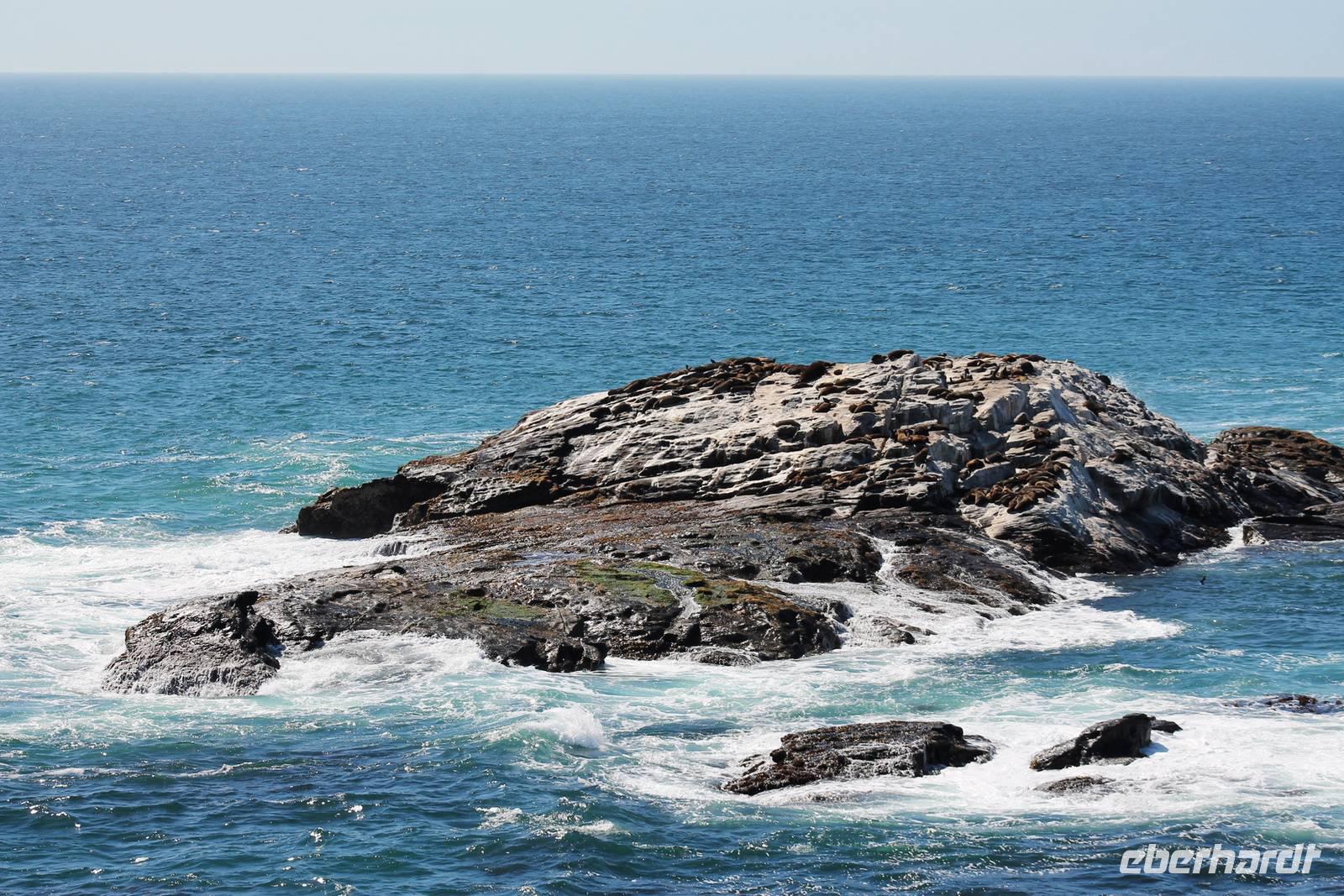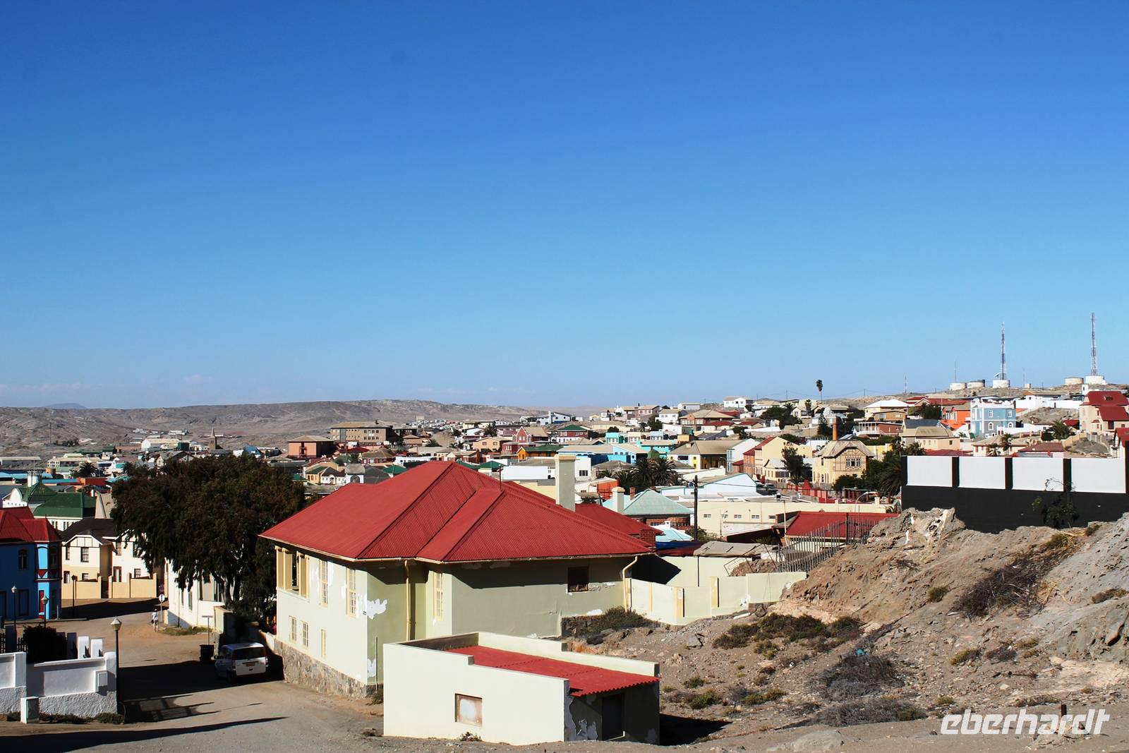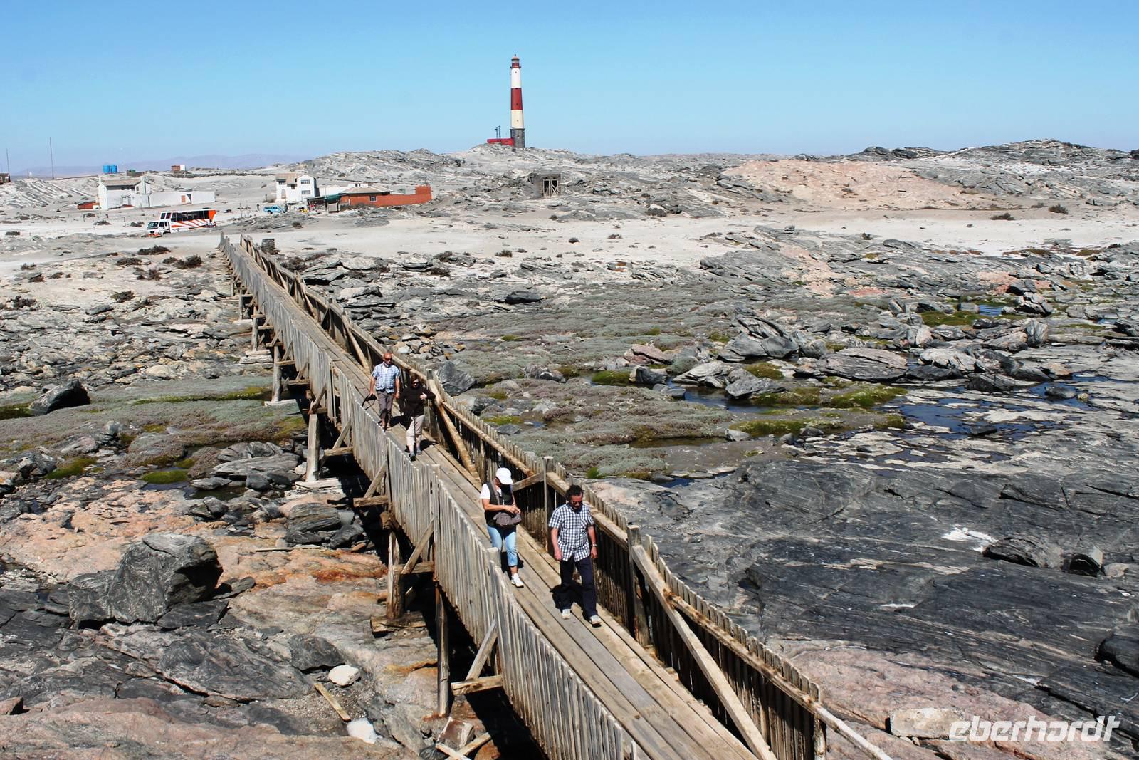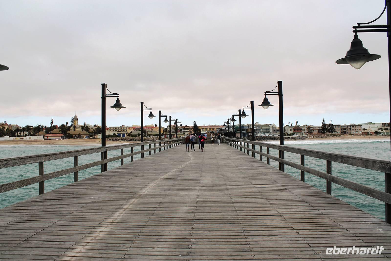 Unterwegs passierten wir zum 2. Mal den südlichen Wendekreis des Steinbocks (Tropic of capricorn), diesmal mit Fotostopp. An diesem Punkt strahlt die Sonne am 21. Dezember jeden Jahres senkrecht auf die Erde, dass kein Schatten entsteht. Eine landschaftlich rauhe, aber wunderschöne Strecke führte uns über den Gaub Pass (knapp 800 m hoch) und durch den Kuiseb Canyon, wo sich Prof. Dr. Henno Martin (Geologe und Autor des Bestsellers "Wenn es Krieg gibt, gehen wir in die Wüste") während des 2. Weltkriegs versteckt hielt. Schon am Mittag erreichten wir Swakopmund am Atlantik. Da unsere Zimmer im Swakop Sands Hotel noch nicht bezugsfertig waren, unternahmen wir einen Spaziergang/-fahrt durch die Stadt, dem Küstenstädtchen mit deutscher Vergangenheit: Prinzessin-Rupprecht-Haus, Alte Kaserne, Seebrücke "Jetty", Woermann-Haus mit Damaraturm, Leuchtturm, Kaiserliches Bezirksgericht, Altes Amtsgericht, Bahnhof, "Ritterburg" und das Hohenzollern-Haus. Zum Mittagssnack kehrten wir im Cafe Bojo ein, wo freundlich und schnell eine lange Tafel für uns eingedeckt wurde. Am Nachmittag hatten sich einige Gäste für einen 2stündigen Rundflug über die Namib entschieden und andere besuchten das Township Mondessa. Am Abend hatten wir vorsorglich Plätze in Kücki`s Pub reserviert, wo wir in geselliger Runde deftig und lecker, jeder nach seinem Geschmack al la carte zu Abend speisten.