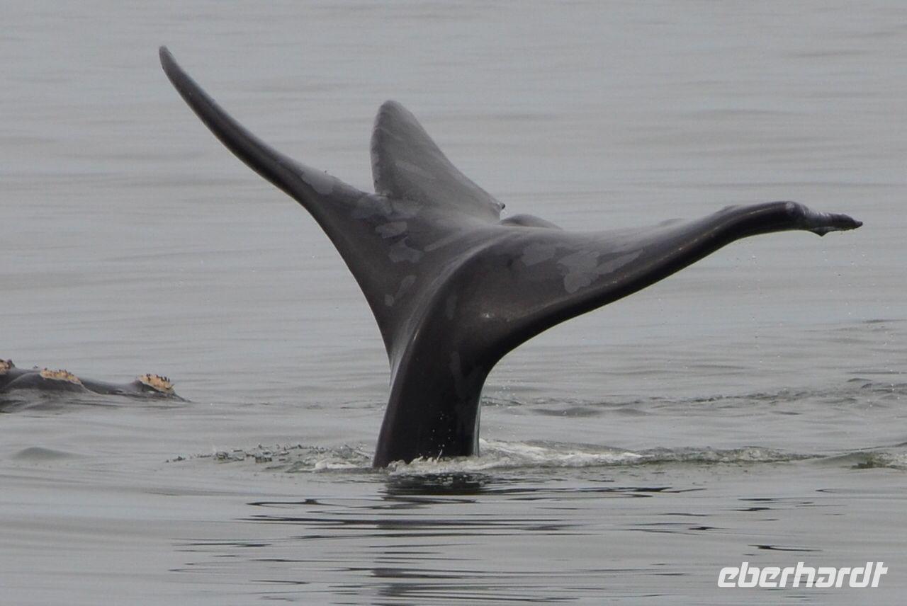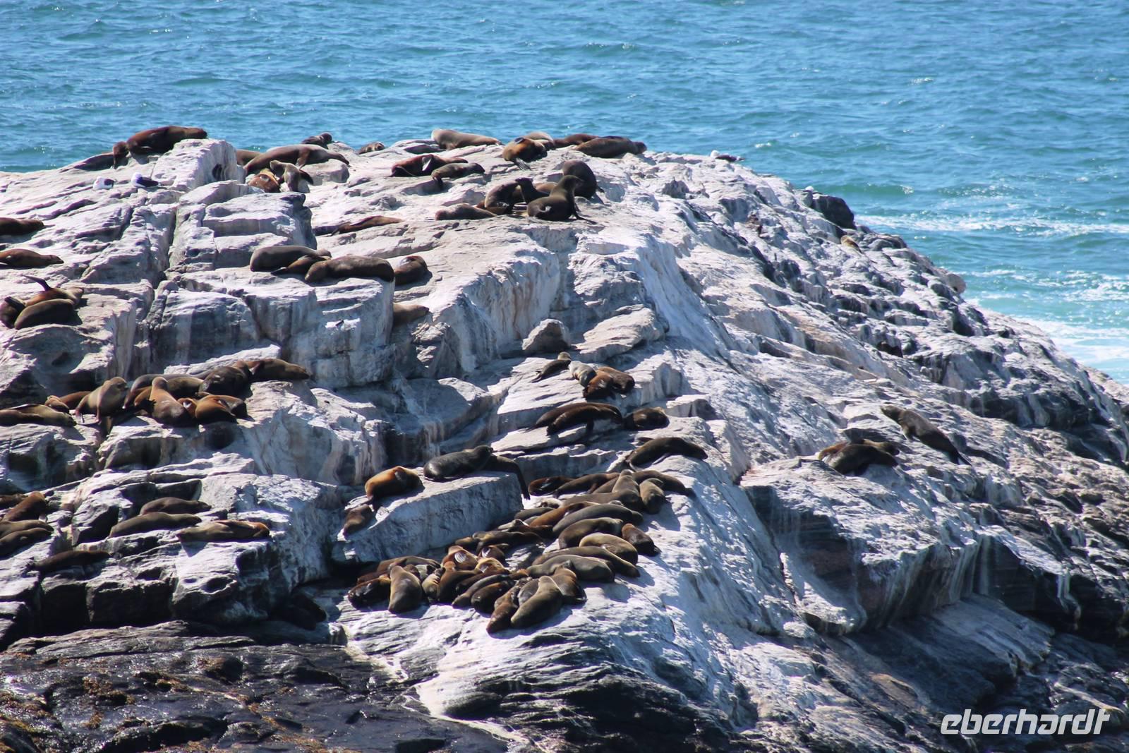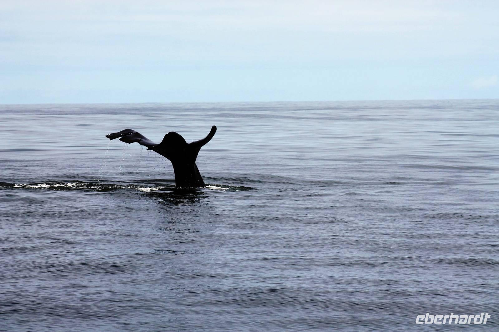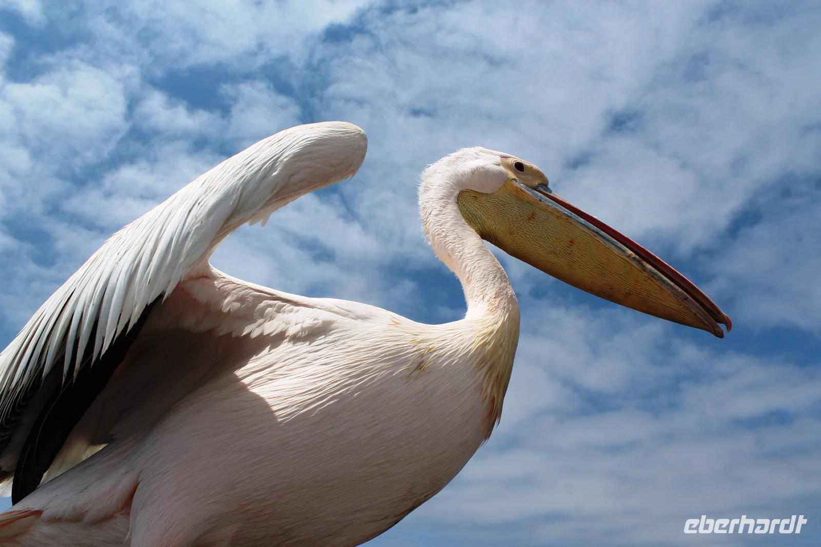Der nächste Tag stand im Zeichen von Walvis Bay. Am Vormittag unternahmen alle Gäste eine Ausfahrt mit dem Catamaran durch die Lagune von Walvis Bay inklusive "blinder" Passagiere an Bord. Mit viel Witz, Charme und Humor erzählte uns Mike Wissenwertes über die Bucht und seine "Bewohner". Auch Robbe "Google" kam an Bord und forderte ihr Frühstück ein. Mike erhielt bei der Fütterung die Unterstützung von Gästen. Da wir aber frischen Fisch nicht so mögen, wurden wir mit good "Old Brown" Sherry bewirtet, den wir aus "Alibi-Kaffeetassen" (es war noch Vormittag) tranken. Auch die Pelikane Nami und Bia statteten uns einen Besuch ab und forderten Annetts Platz am Bug des Schiffes ein. Vorbei an der Austernfarm schipperten wir zur Halbinsel, auf deren Spitze der schwarz-weiße Leuchtturm steht. Hier haben es sich Robbenkolonien bequem gemacht. Man sieht, dass sich die niedlichen Ohrenrobben sehr wohl fühlen. Und dann: Da, Da, Da!!! - Benguela Delfine, eben "Da-Da-Delfine", wie Mike erklärte. Und nun das Highlight, Wale! WOW! Ich war zwar schon einige Male da, aber das erste Mal, dass mir hier Wale vorbei schwimmen. Den einen tauften wir Franzi, wegen seiner markanten Schwanzflosse. Nun ließen Mike und seine Besatzung die Korken knallen und wir stießen mit südafrikanischen Sekt auf diesen perfekten Vormittag an. Anschließend schlemmten wir vom köstlichen Buffet mit Austern, Meeresfrüchten, Fisch, Fleisch und Süßem. Es war im wahrsten Sinne des Wortes ein „tierisch lekka" Ausflug. Wir machten die Bekanntschaft mit zutraulichen Ohrenrobben, Pelikanen, Komoranen, riesigen Möwen, Benguela Delphinen und Walen. Vielen lieben Dank wieder an die Crew und den extra Sherry für die Mädchenrunde.