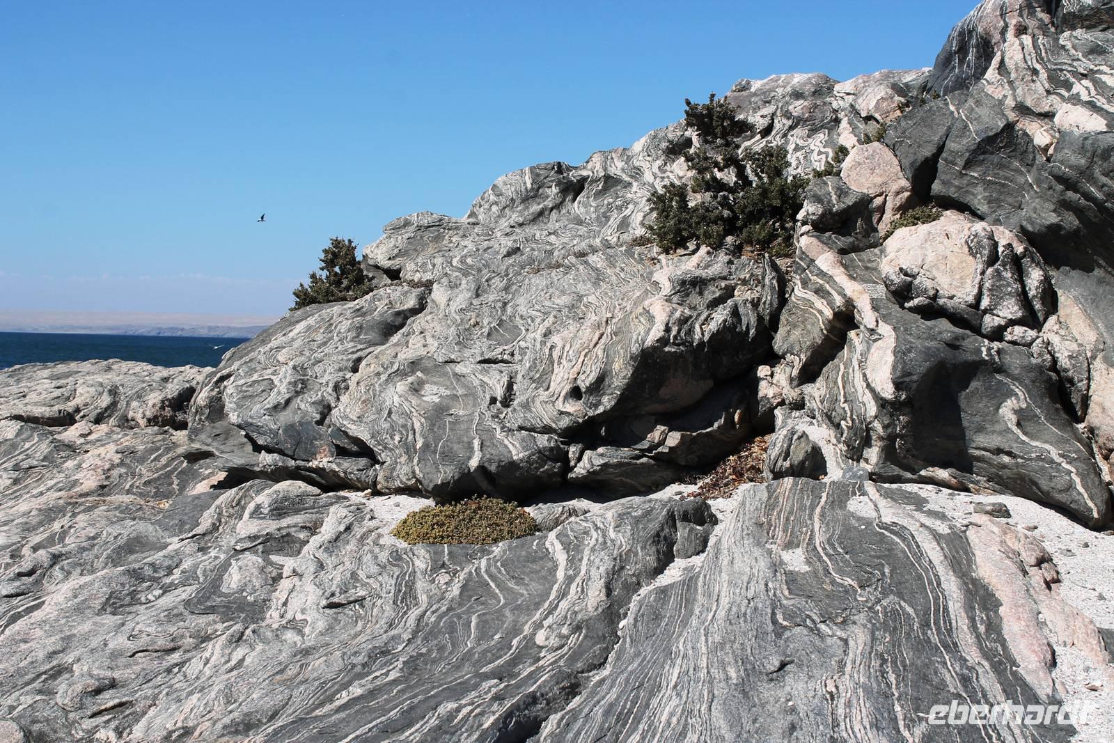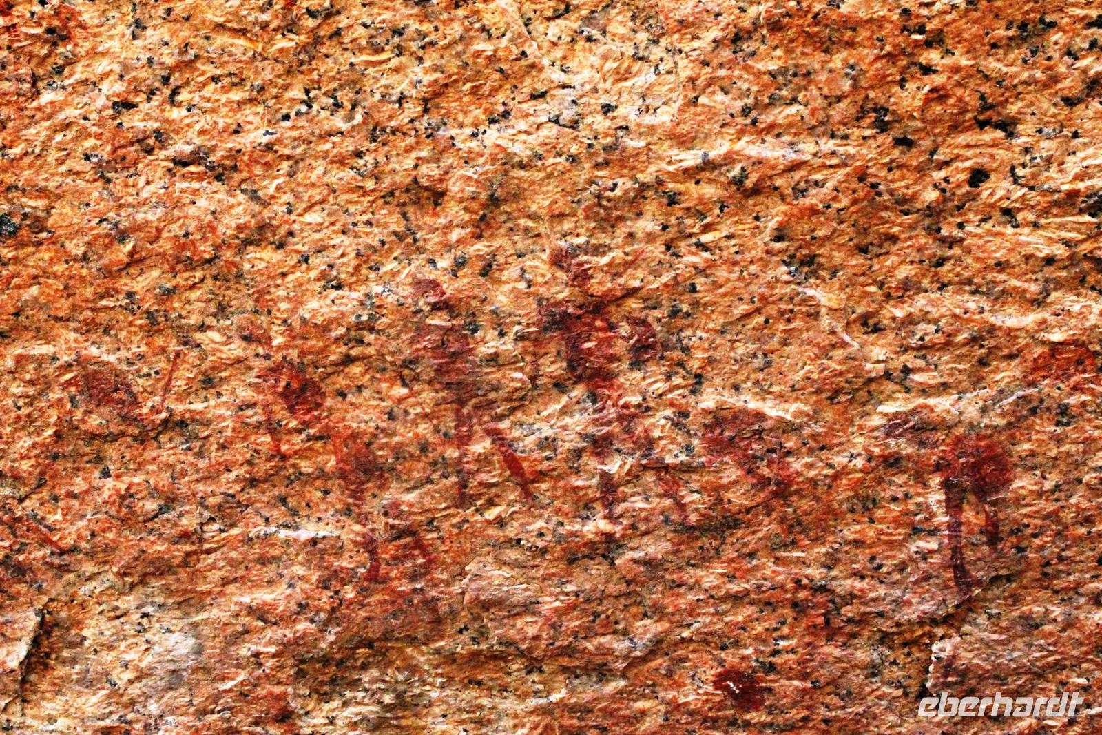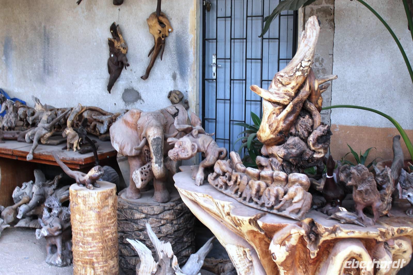 Entlang der Küste fuhren wir in nördliche Richtung. Unendlich viel wird hier gebaut, da in/bei Swakpmund immer mehr Menschen wohnen möchten und die Minen (Uran) in der Region boomen. Auf der B2 (Trans-Kalahari-Highway) kamen wir schnell voran. Später bogen wir wieder auf die "Pad" ab. Pads, die erstaunlich gut in Schuss sind, werden Sand- und Schotterpisten in Namibia genannt. Während es nur ca. 5.000 km Teerstraße im Land gibt, überwiegen klar die Pads mit ca. 40.000 km. Schon von Weitem sahen wir das markante Spitzkoppenmassiv. Die Spitzkoppe (ca. 1.728 m) ist ein Inselberg vulkanischen Ursprungs. Ein faszinierendes Szenario: ringsum nicht als weite, trockene Ebene und plötzlich diese Felstürme! Die Spitzkoppe wird auch das "Matterhorn" von Namibia genannt. In dieser kargen Region leben vorrangig Damaras, die früher von Hereros und Namas in ihrem Lebensraum starkt eingeschränkt wurden. Später erhielten sie von der deutschen Kolonialverwaltung ein Homeland zugewiesen, was später erweitert wurde: das "Damaraland" erstreckt sich heute von der Spitzkoppe in nordwestliche Richtung bis nach Sesfontein. Das Gebiet um die Spitzkoppe wurde noch nicht zum Naturschutzgebiet erklärt, leider. Aber ein besonderes "Hegeprojekt" gibt hier zahlreichen Damaras Arbeit. Sie unterhalten die Campingplätze und einige Wanderwege, die zu den Bushman-Felszeichnungen führen. An diesem malerischen Ort verbrachten wir den sonnigen Tag. Nach einem Spaziergang zum "Rock Arch", dem riesigen Felsbogen, den einzig und allein die Natur geschaffen hat und der Besichtigung der Felsmalereien picknickten wir unterm Schattenbaum, bevor wir unsere Reise nach Omaruru fortsetzten. Unterwegs hielten wir an den Verkaufsständen der Damaras am Straßenrand, wo uns wunderschöne Halbedelsteine (Rosenquarz, Amethyst, Turmaline, Aquamarin) für kleines Geld angeboten wurden und einige zuschlugen. Nach einer Pause in einem kleinen Cafe erreichten wir Omaruru und stöberten zunächst in einem Holzschnitzermarkt, der sich auf wundervolle Skulpturen aus Wurzelholz spezialisiert hat. Im Omaruru Guesthouse bezogen wir unsere Zimmer und freuten uns auf ein erfrischendes Bad im Pool. Doch leider hatte dieser kein Wasser. Also flanierten einige Gäste über die Main Road des kleinen Ortes zur kleinen Kirche und zurück und machten die Bekanntschaft einer stolzen, farbenfroh gekleideteten Herero-Lady. Das Abendessen wurde uns im Guesthouse serviert.