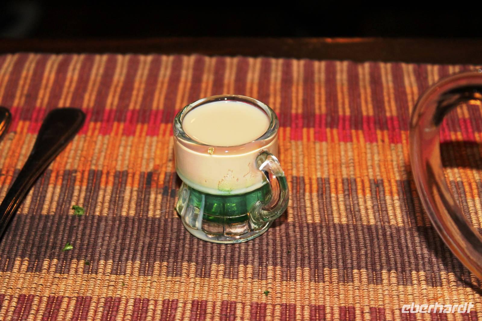 "Hör auf", sagt er, "wer soll die Brühe trinken,