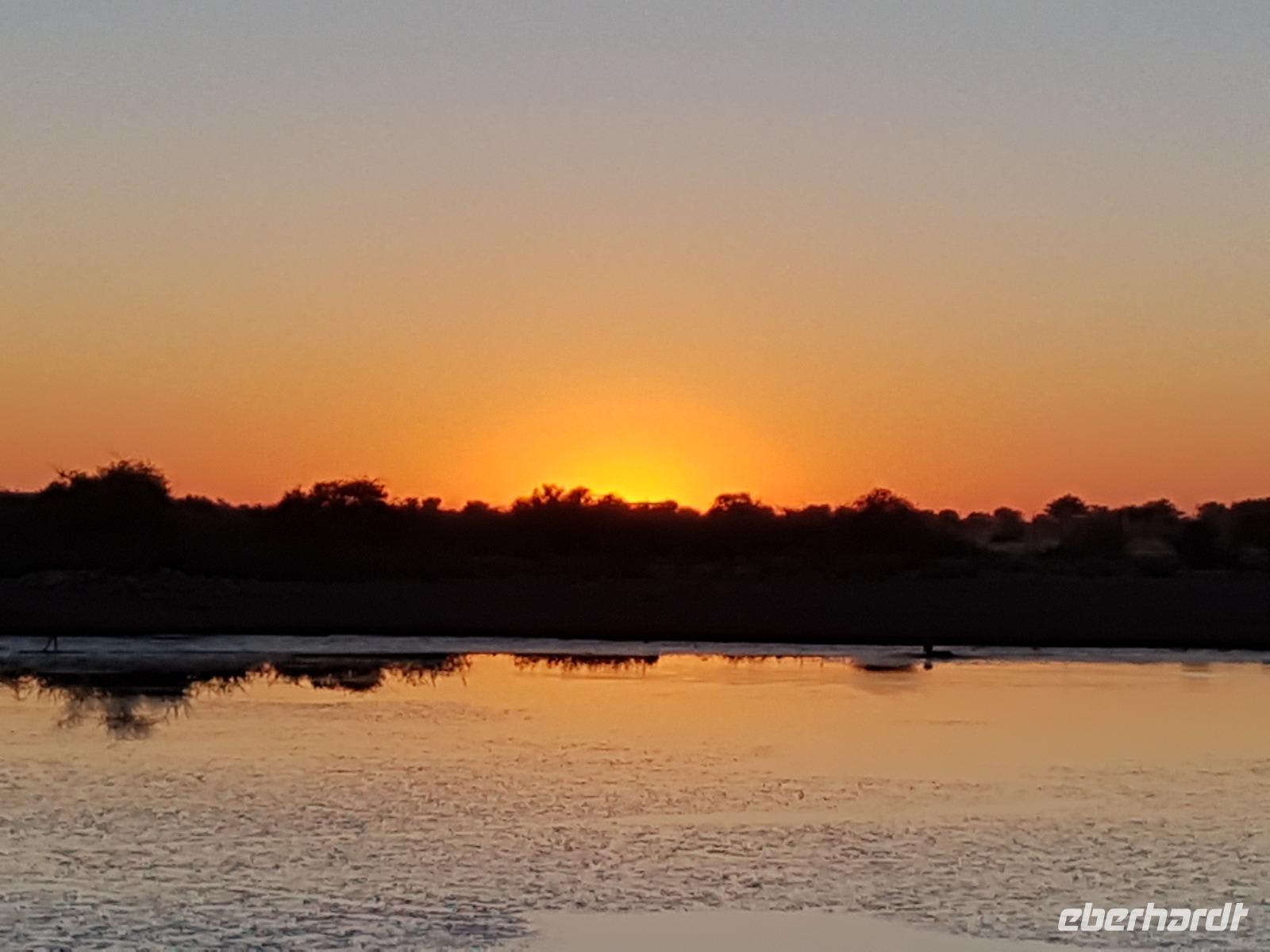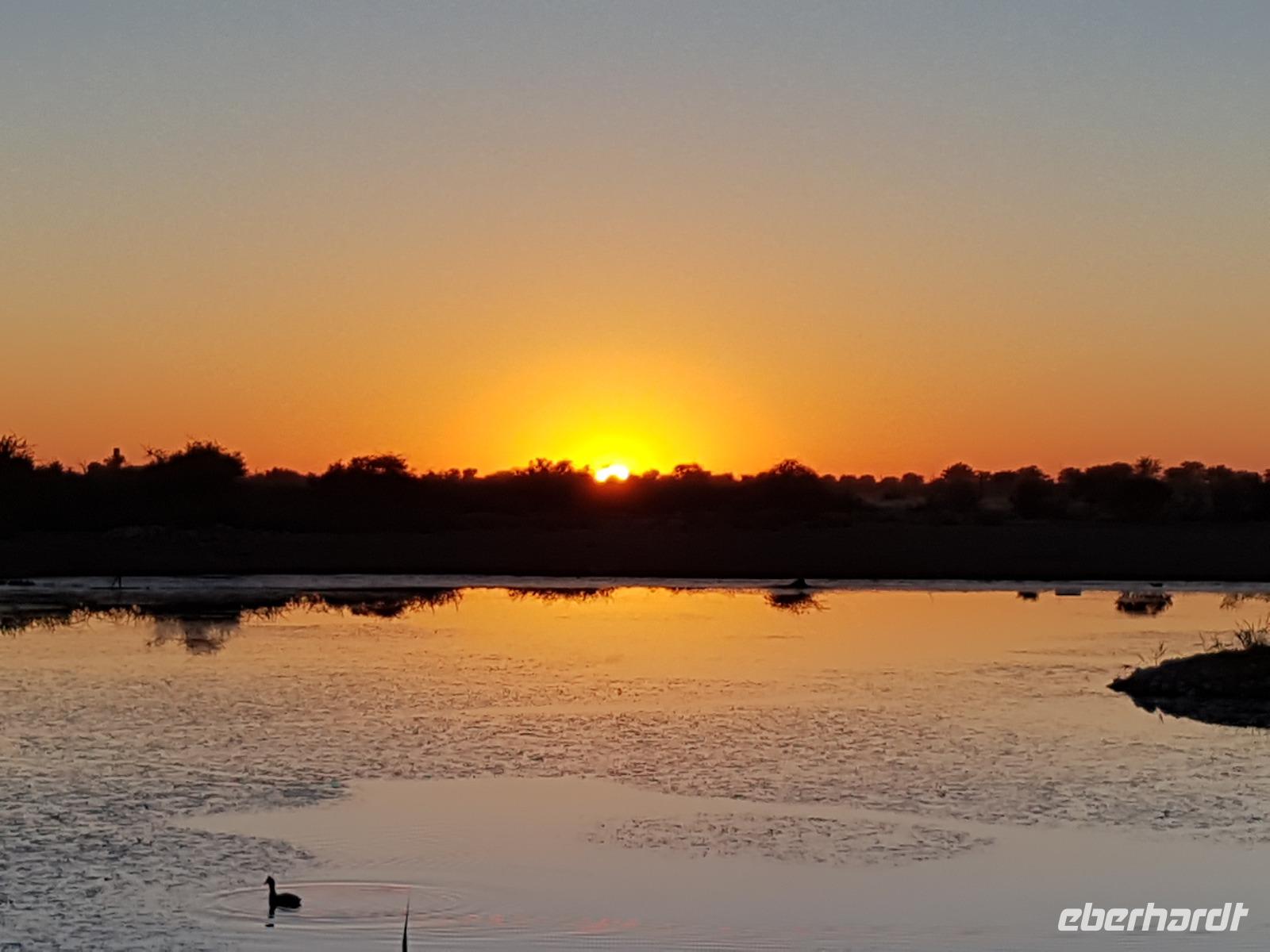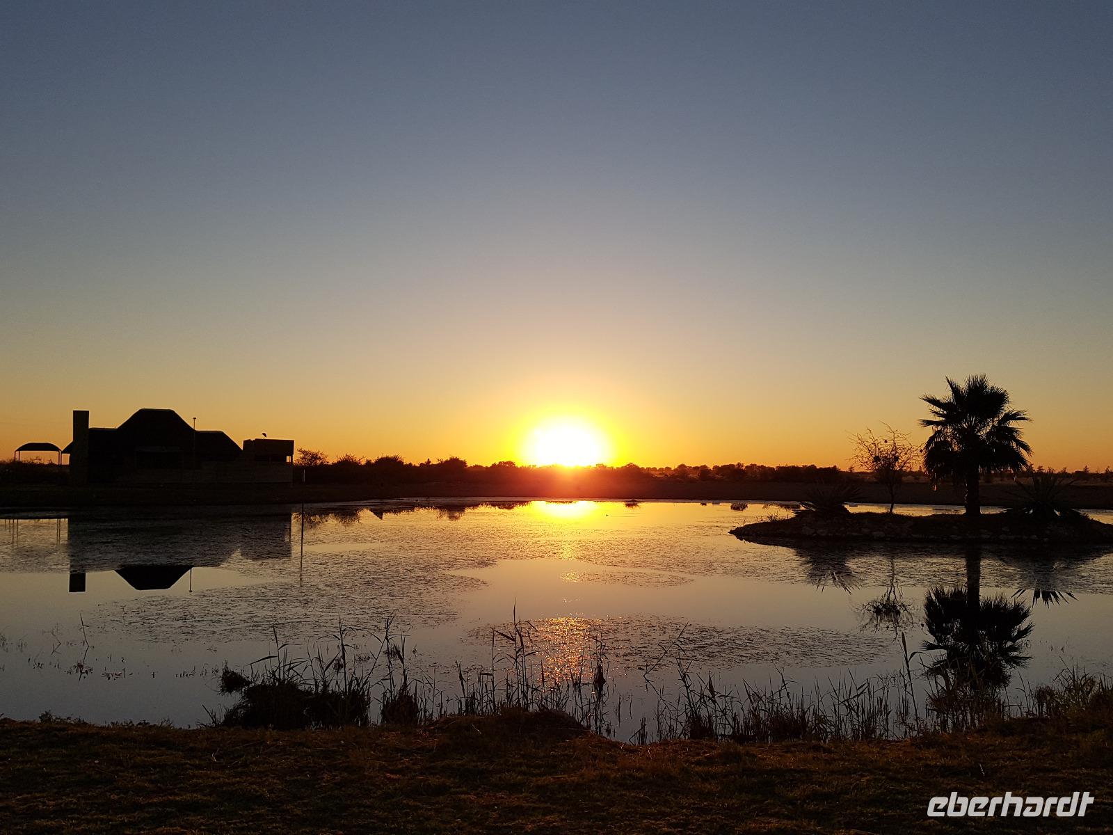 Heute um 6:23Uhr ging die Sonne auf und obwohl Frühstück erst um 7:30Uhr geplant war, ging Benjamin im Pyjama durch den Garten der Lodge bis zum See um einen unvergesslichen Sonnenaufgang für seine Gäste zu fotografieren.