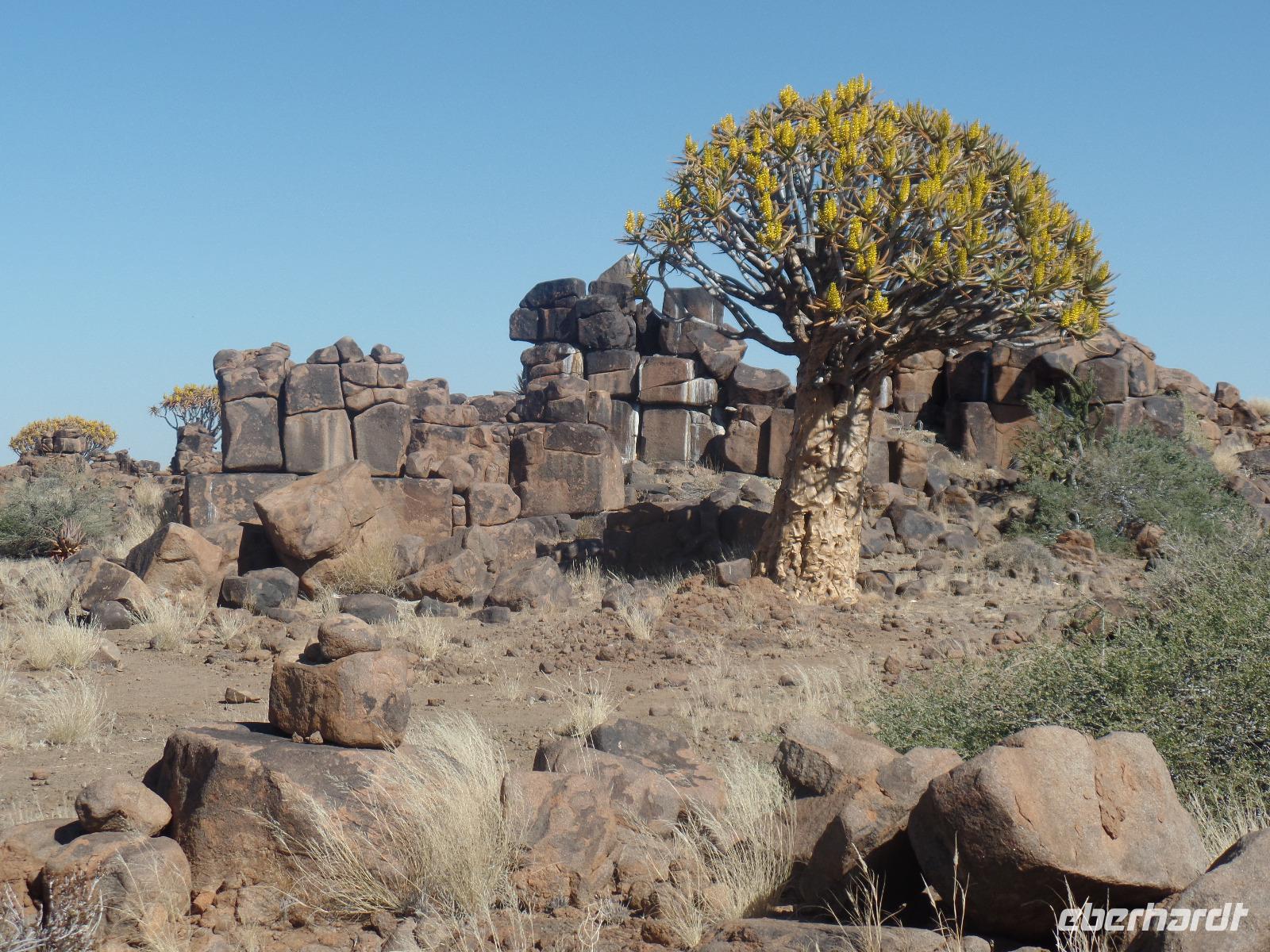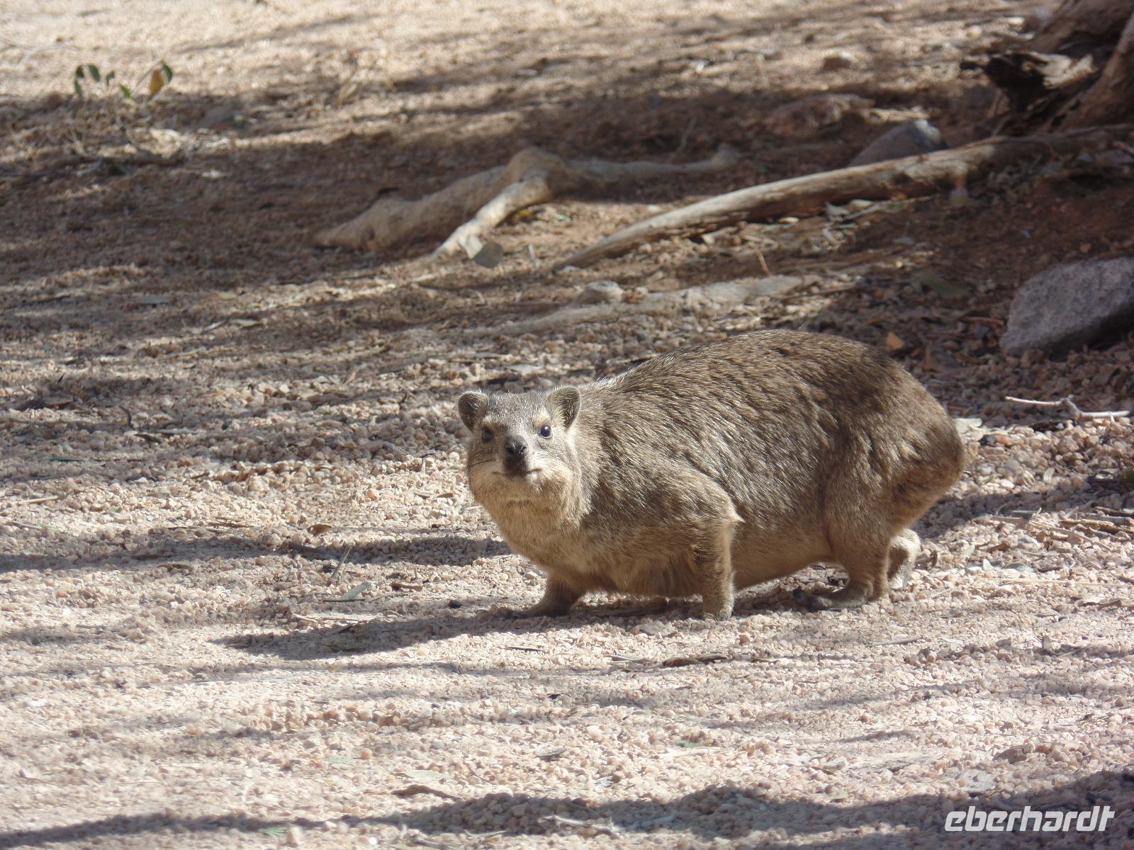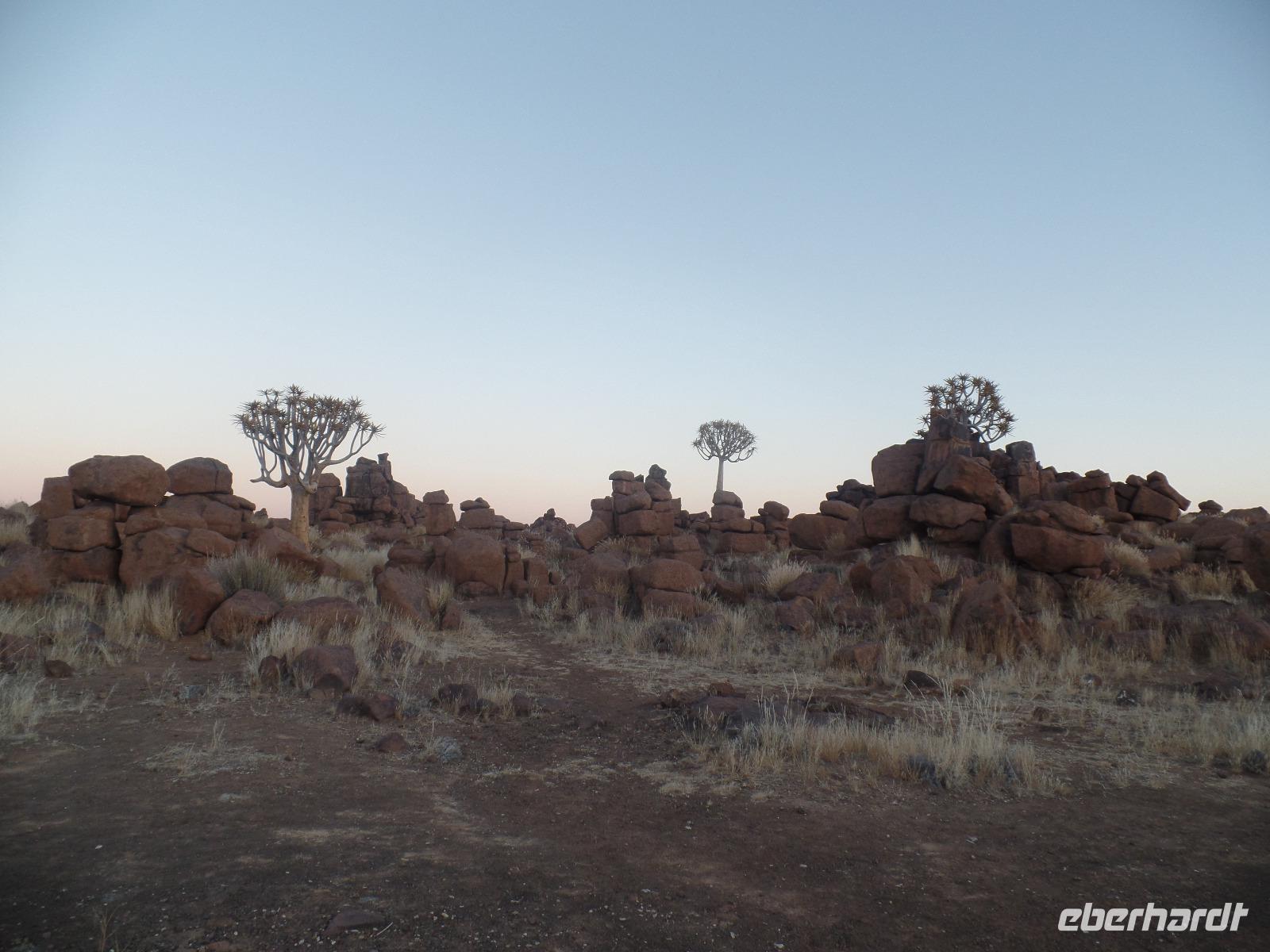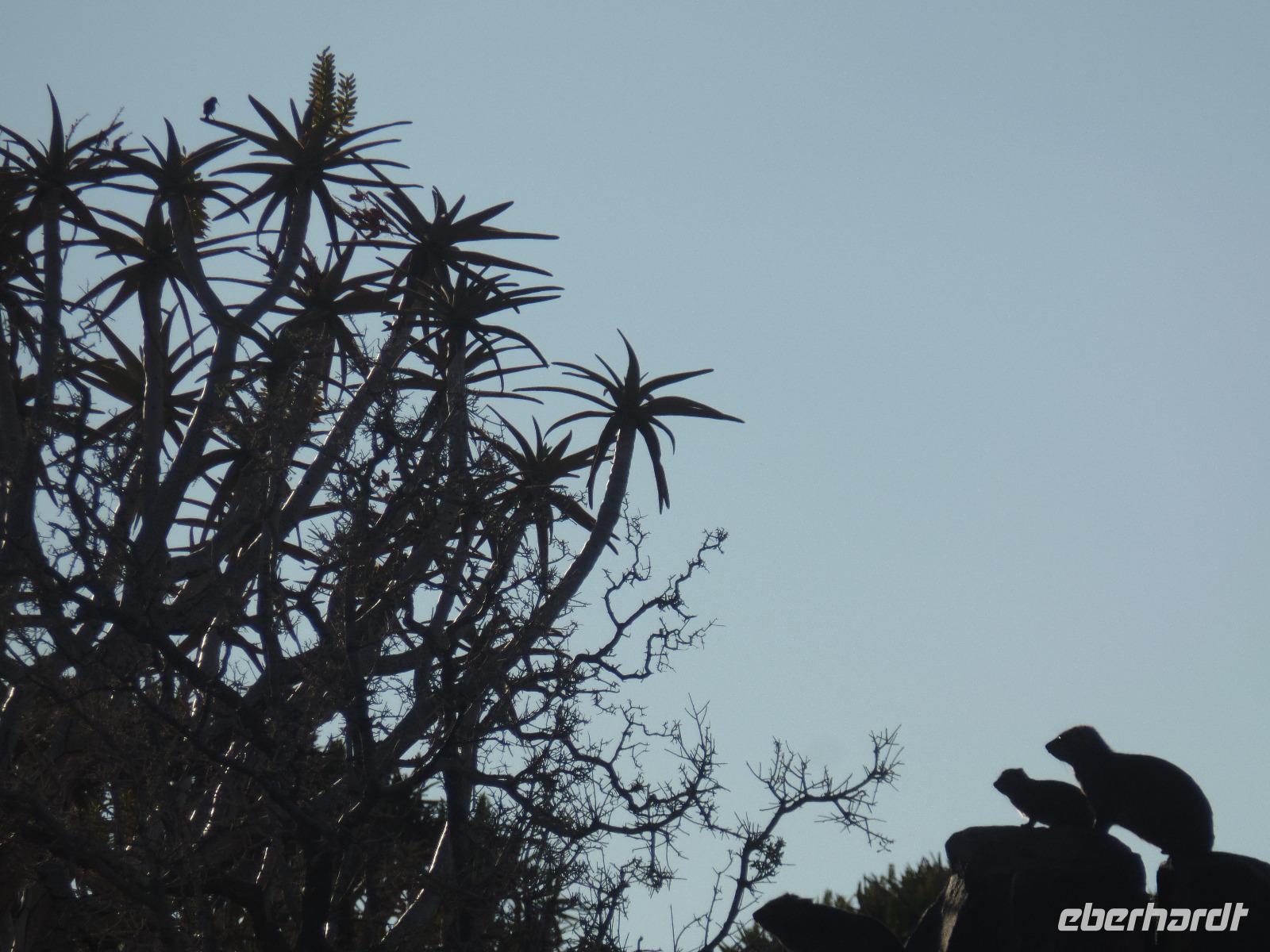 Nachdem wir unsere Koffer im Hotel ließen und unsere Zimmer bezogen, fuhren wir zum nahegelegen Quiver Tree Forest (Köcherbaumwald) mit seinen seltsam anmutenden Bäumen. Hier machten wir einen kleinen Spaziergang und trafen ab und zu die kleinen Mummeltiere, oder hier Klippschliefern genannt. Sehr lustige Tiere.