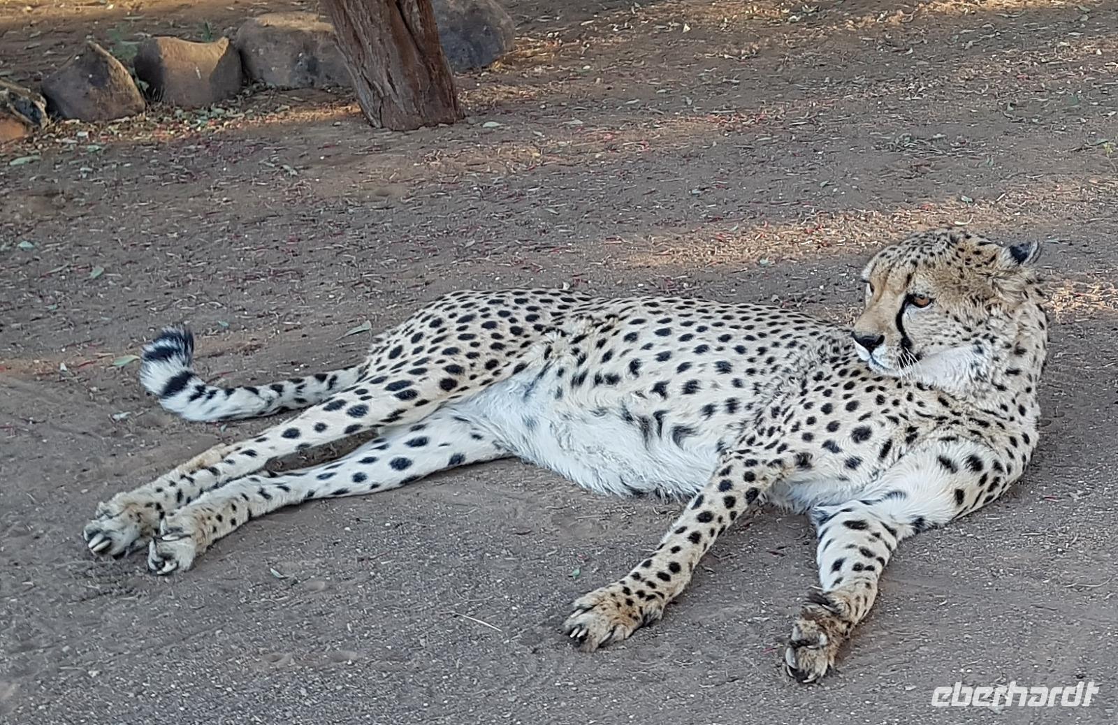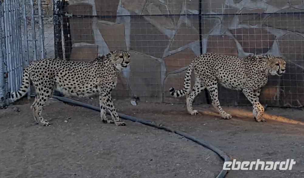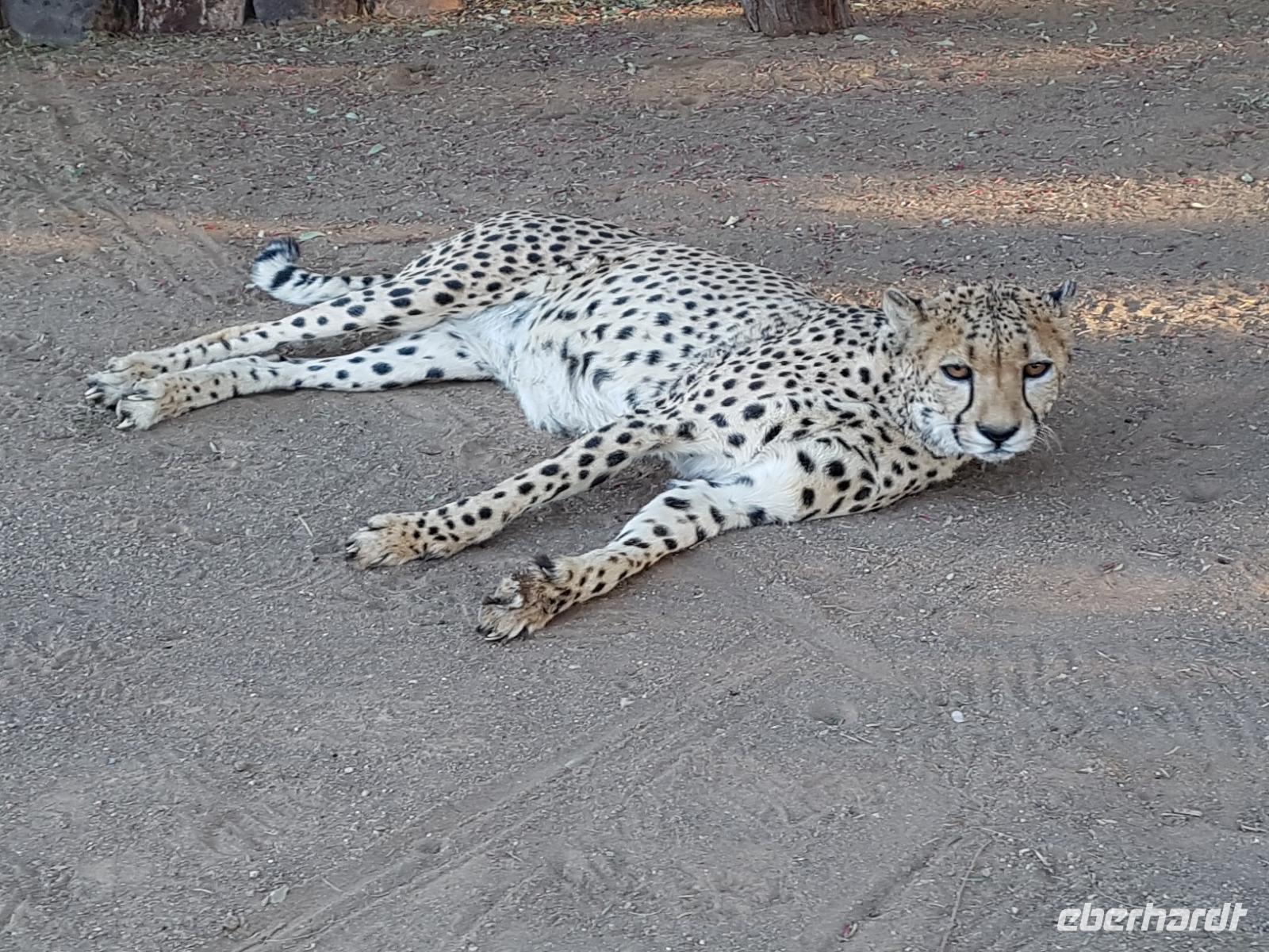 Hier hatte Ernst eine Überraschung für uns. Wir hielten an einem Gepardengehege und waren ohne Gitter mit zwei Gepardenbrüdern zusammen und gemeinsam in einem Lebensraum! Ein Erlebnis!