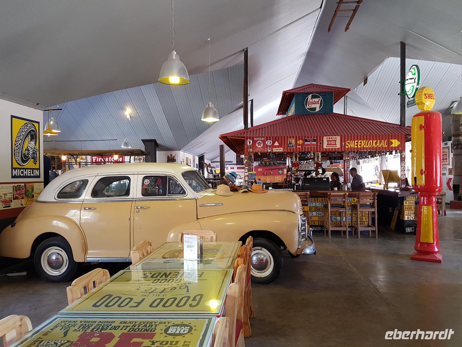 Mittagessen gab es in der Canyon Lodge, wo der Besitzer alles mit Oldtimern und Antiquitäten vollgesammelt hat. Man konnte sich mit einem Chevrolet 1949 oder an einer alten Tankstelle fotografieren lassen. Herrlich!!
