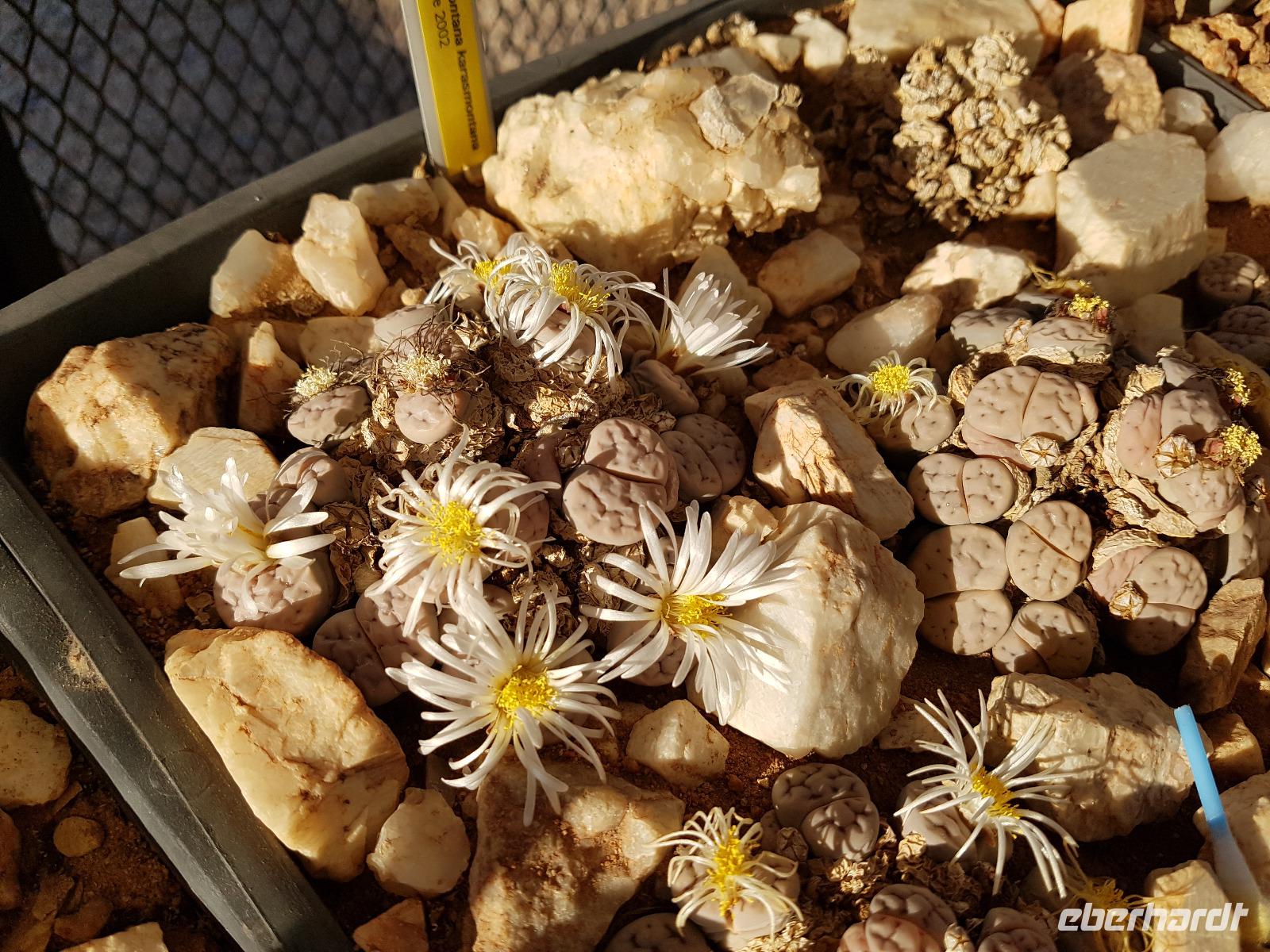 Die meisten Gäste standen heute früh auf, um den Sonnenaufgang um 6.23Uhr zu sehen. Wieder voller Liebe zubereitet, bekamen wir ein herrliches Frühstück. Vorher hatten wir noch eine kleine Führung im „ Lebendigen Steingarten". Wir sahen etwas, von dem niemand wusste, dass es so etwas überhaupt gibt. Ja! Lebendige Steine! Eigentlich sind es Pflanzen, aber wenn man sie betrachtet, könnte man denken, dass es Steine sind, sie haben sogar Blätter. Diese lebendigen Steine können monatelang ohne Wasser gut weiter leben, da sie es innerlich speichern.