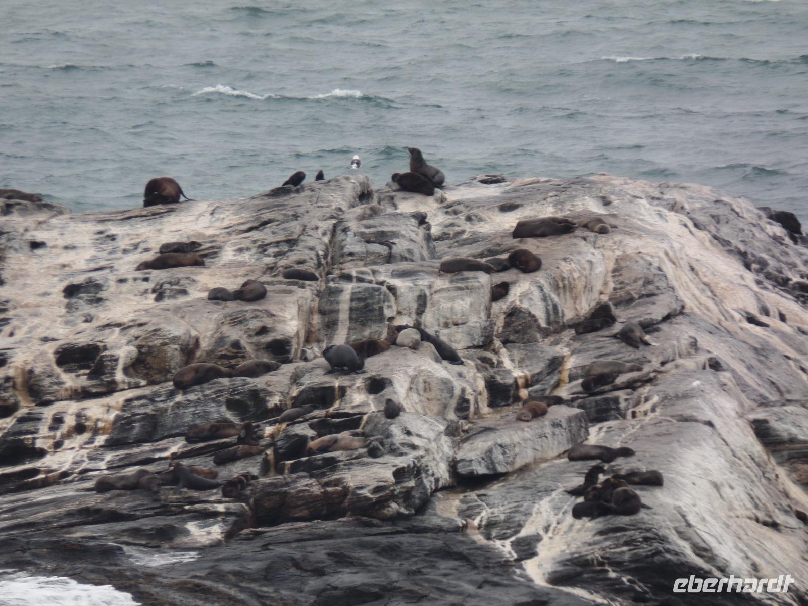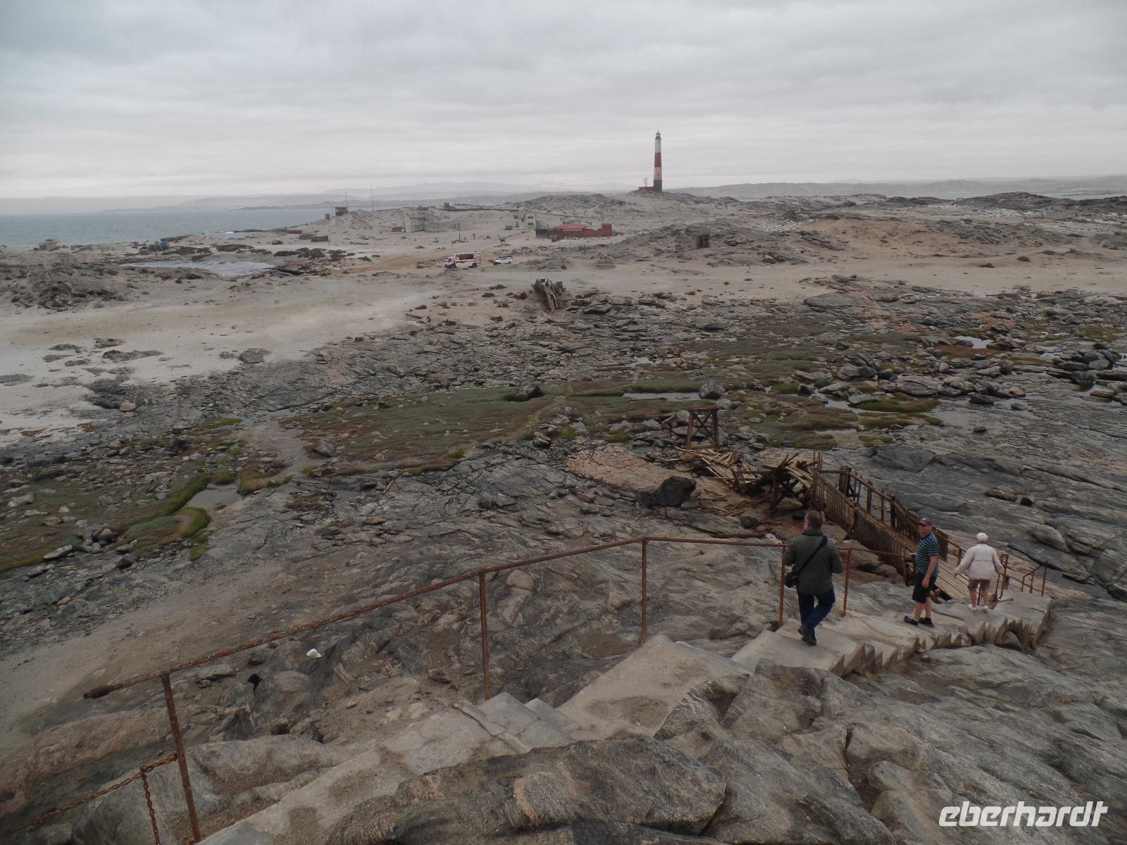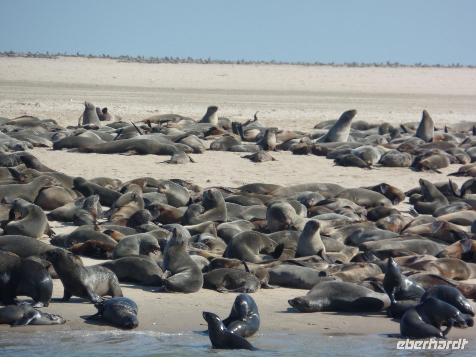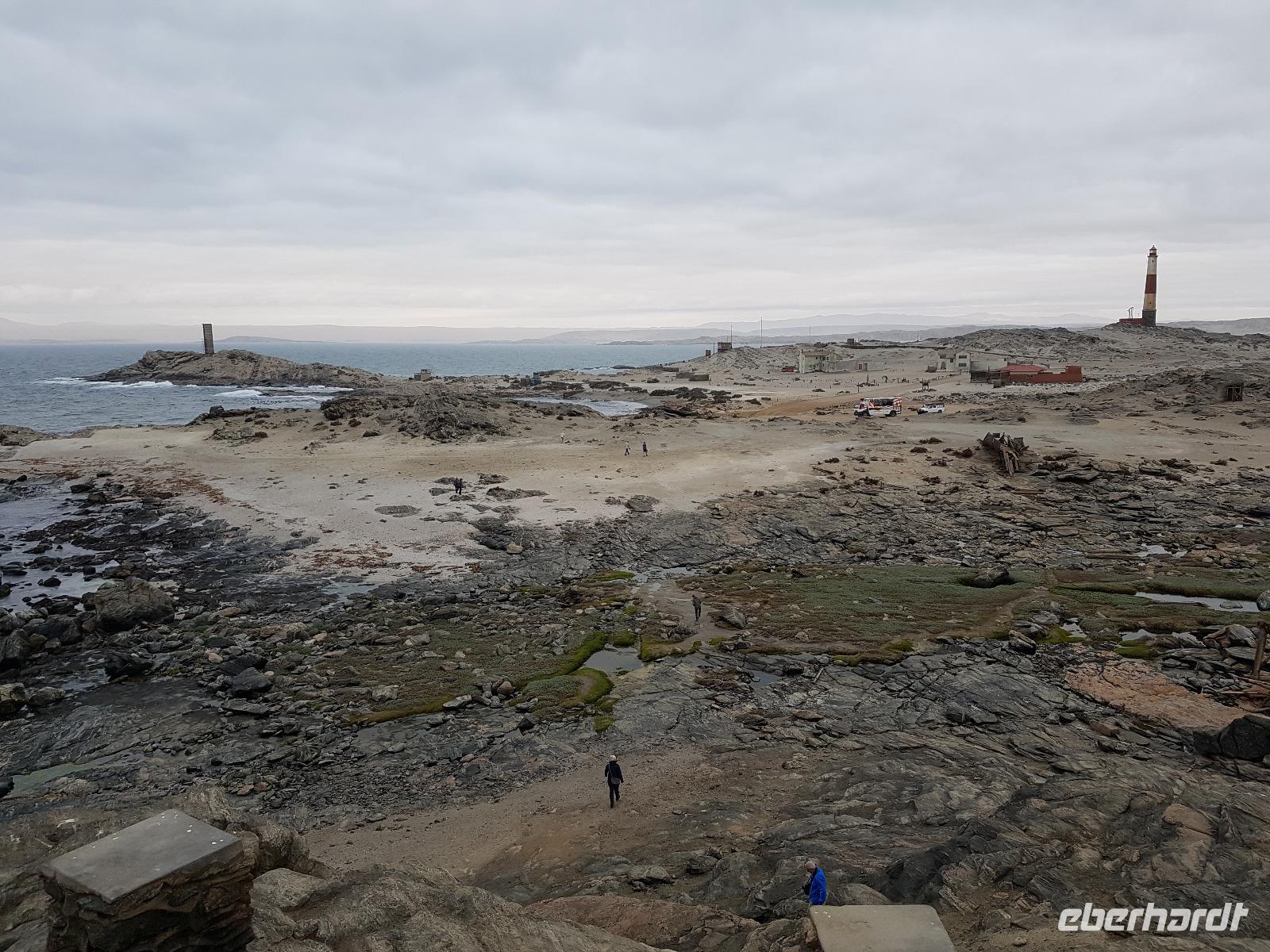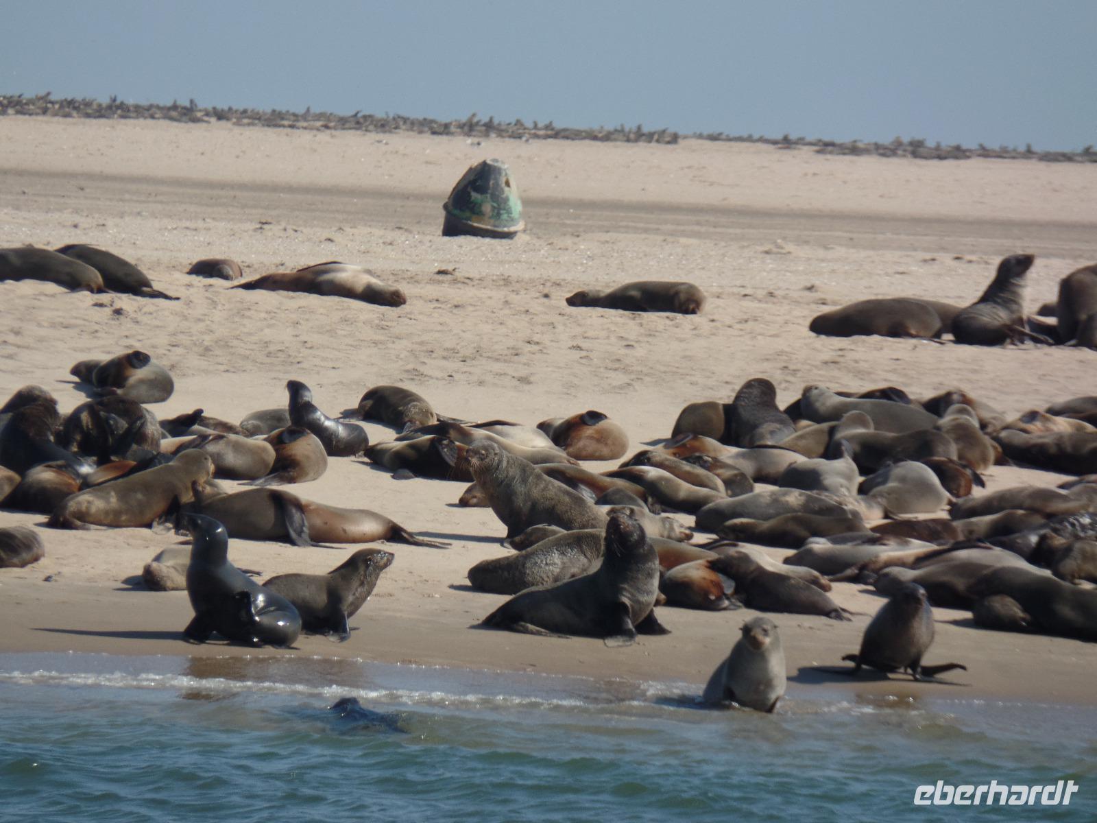Bald erreichten wir unser heutiges Ziel, das nostalgische Lüderitz am Atlantik, deren Bewohner hauptsächlich vom Fischfang leben. Zum Mittag gab es eine leckere Kürbissuppe. Mit Kraft im Körper unternahmen wir eine Buchtenrundfahrt, die uns zum Diaz Point mit dem Diaz Kreuz führte. Genau hier an diesem Punkt landete im Jahr 1488 der portugiesische Seefahrer Diaz bei seiner Erkundung des Seeweges Richtung Osten. Gegenüber im Meer gibt es eine kleine Insel mit einer Robbenkolonie. Toll. Voll mit Robben. Nicht weit von hier konnten wir Pinguine mit dem Fernglas beobachten. Herrlich!!