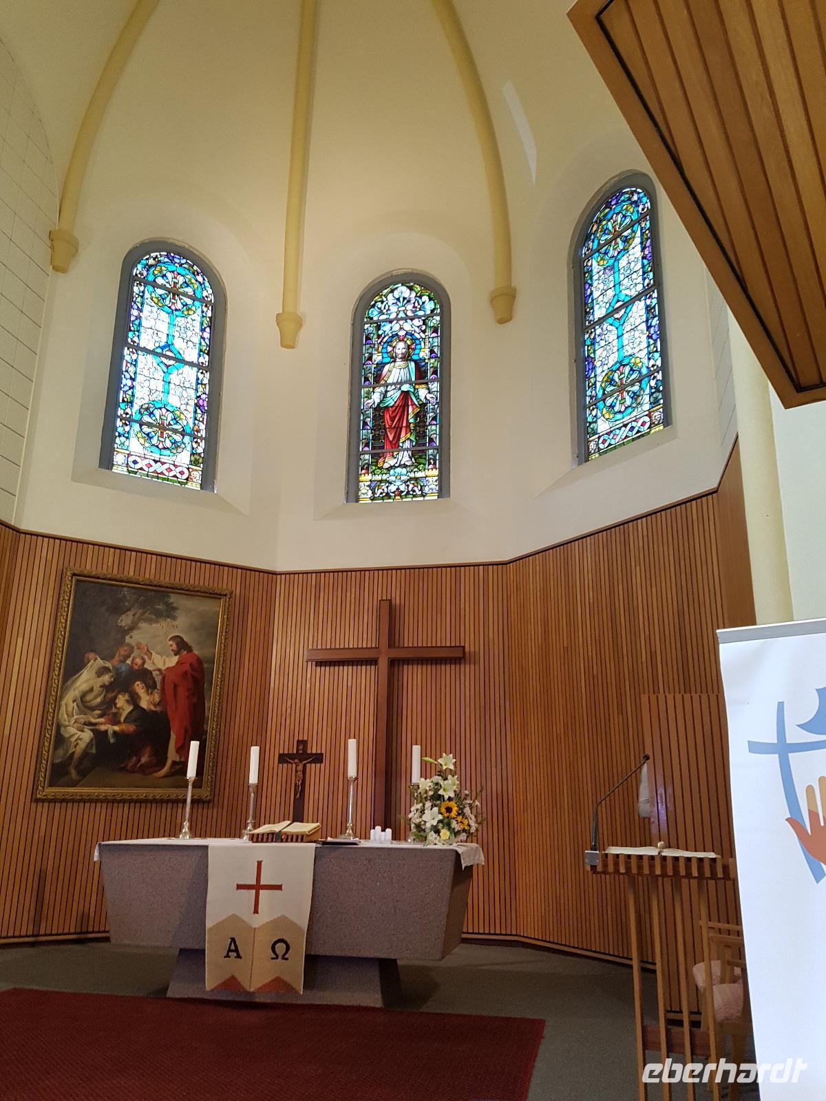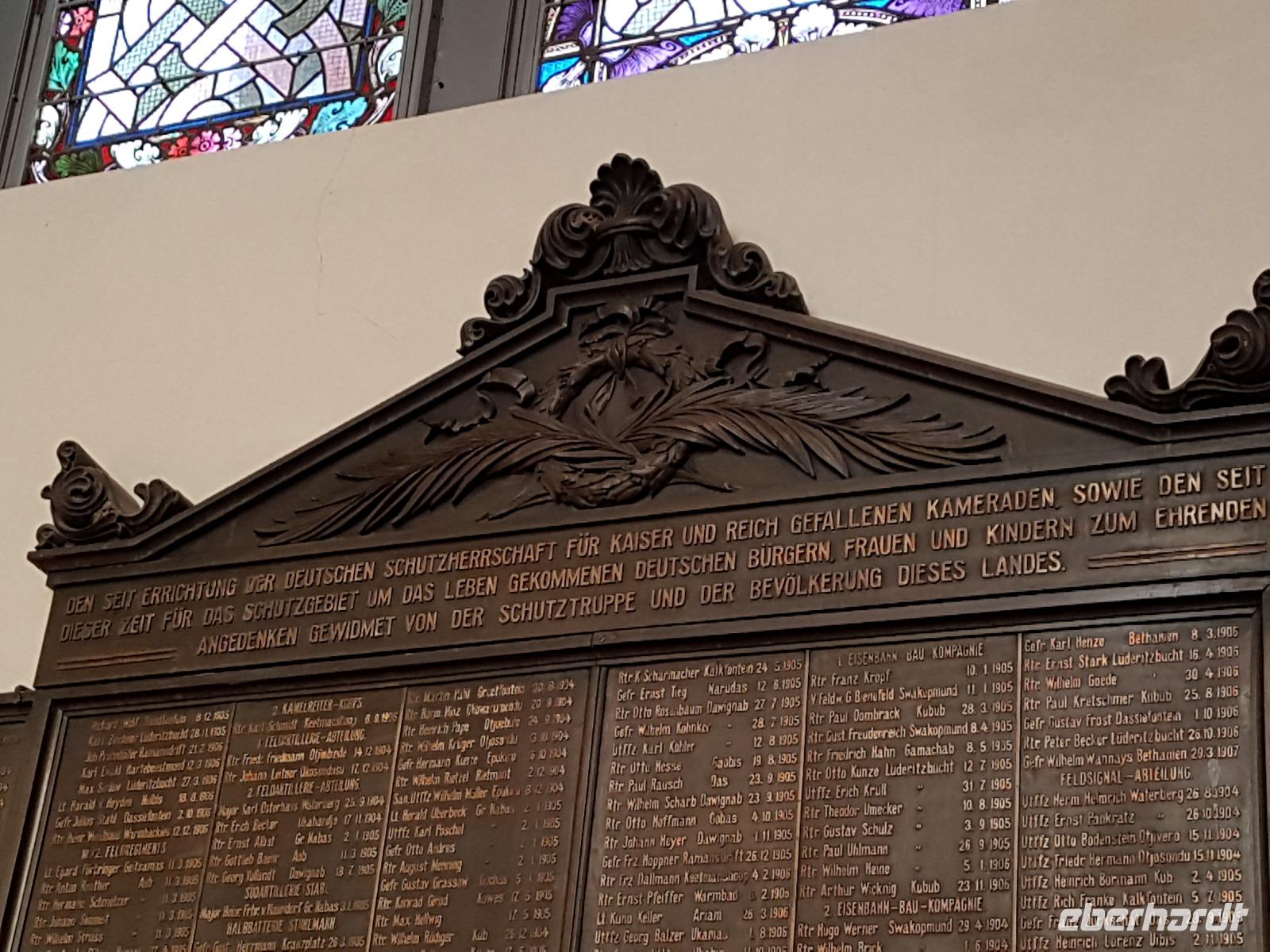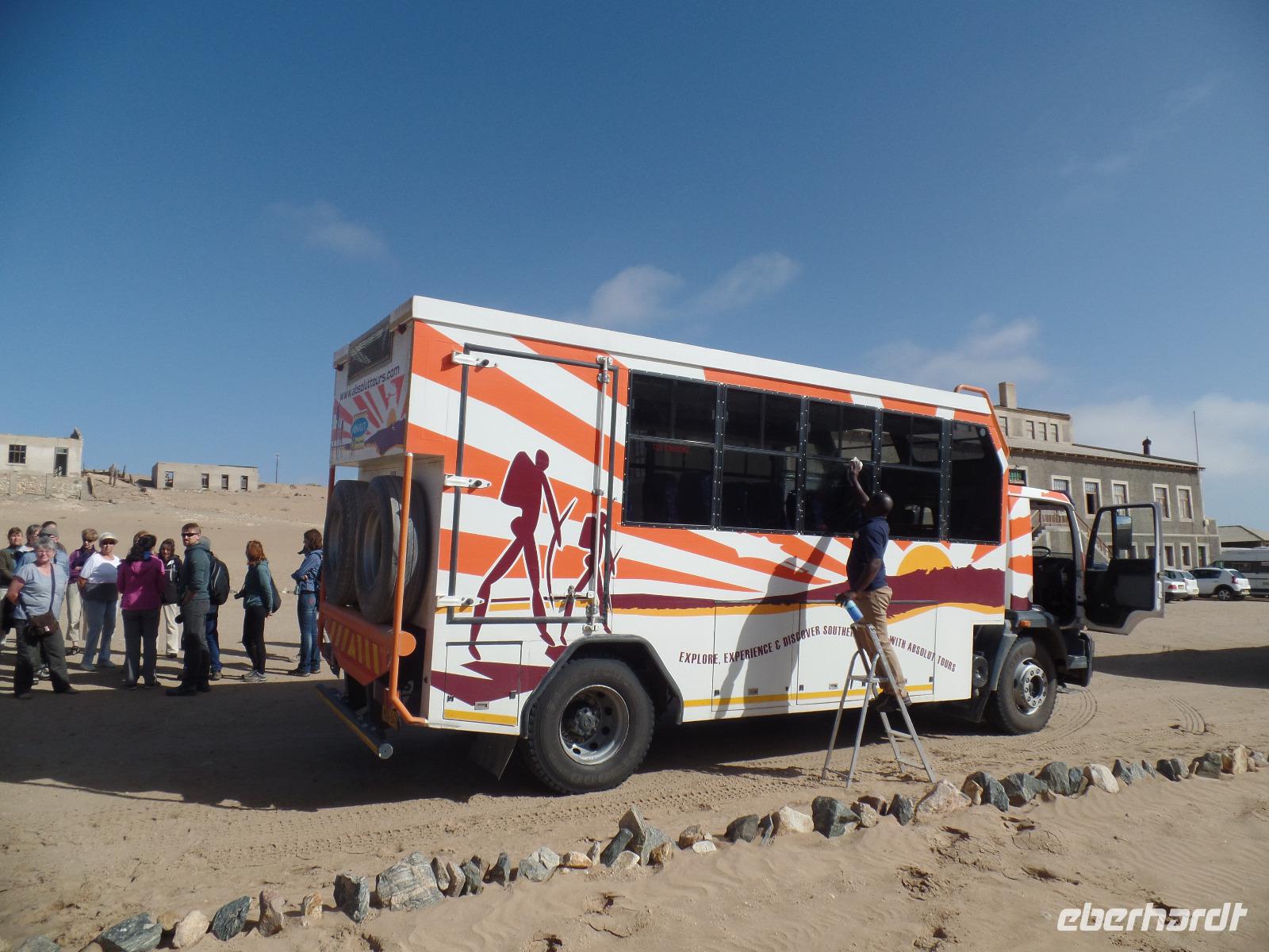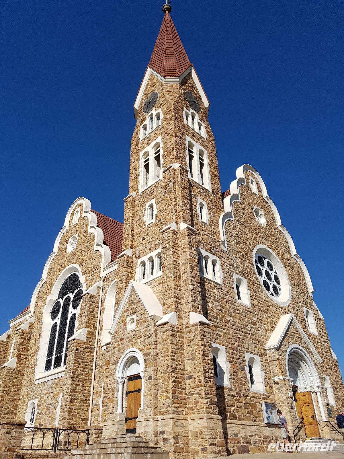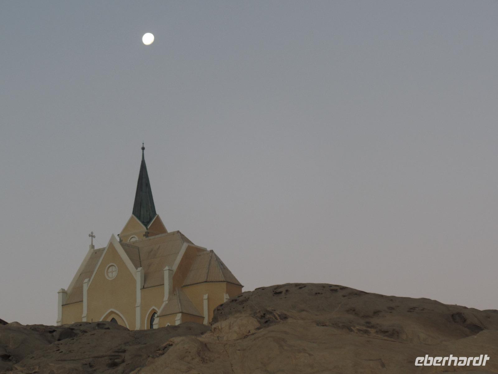 Nach einer kleinen Rundfahrt durch das übersichtliche, farbenfrohe Lüderitz besichtigten wir die Felsenkirche, die als eines der Wahrzeichen der Stadt gilt. Benjamin nutzte die tolle Akustik und sang ein paar Lieder.