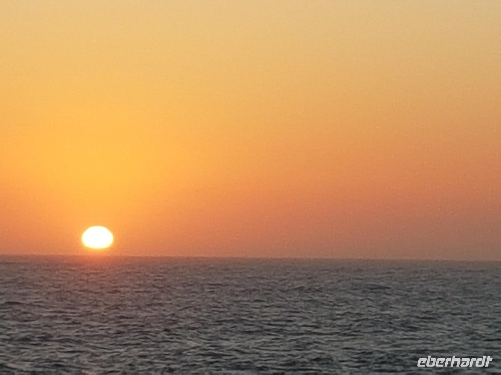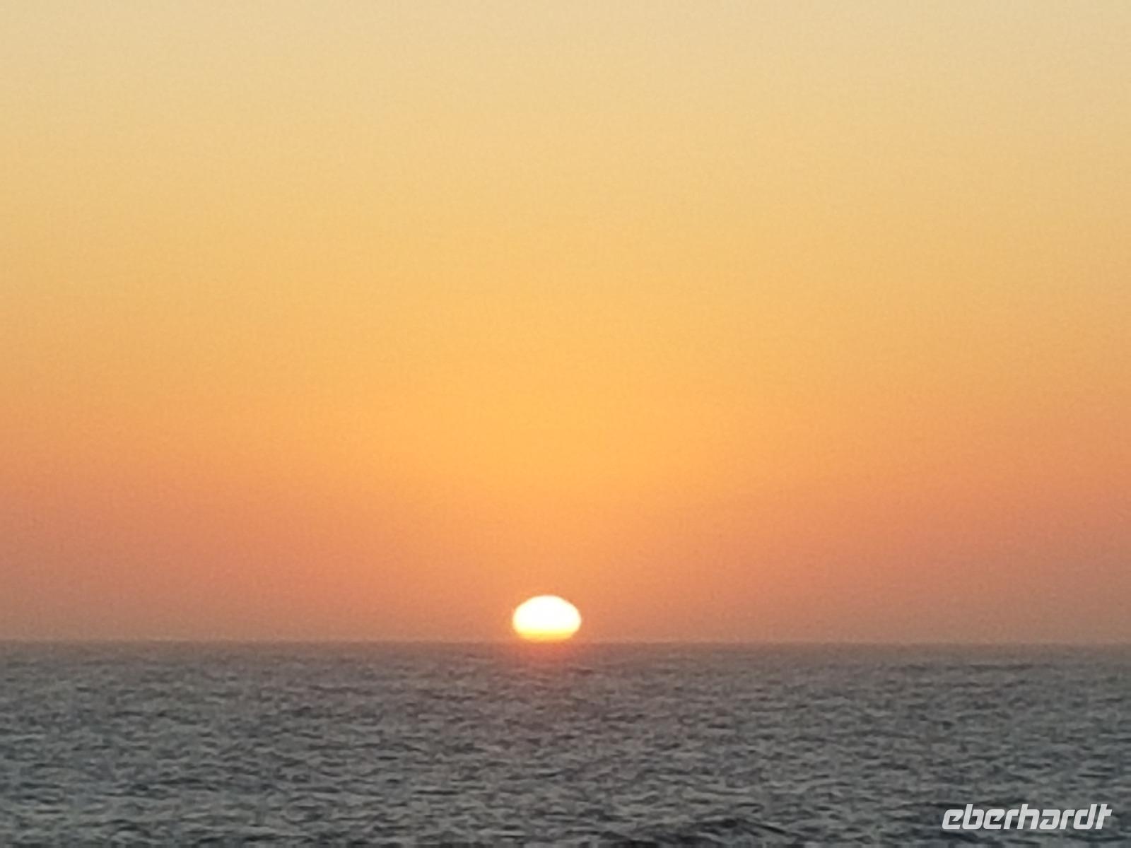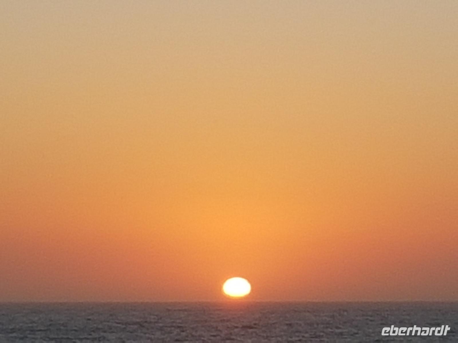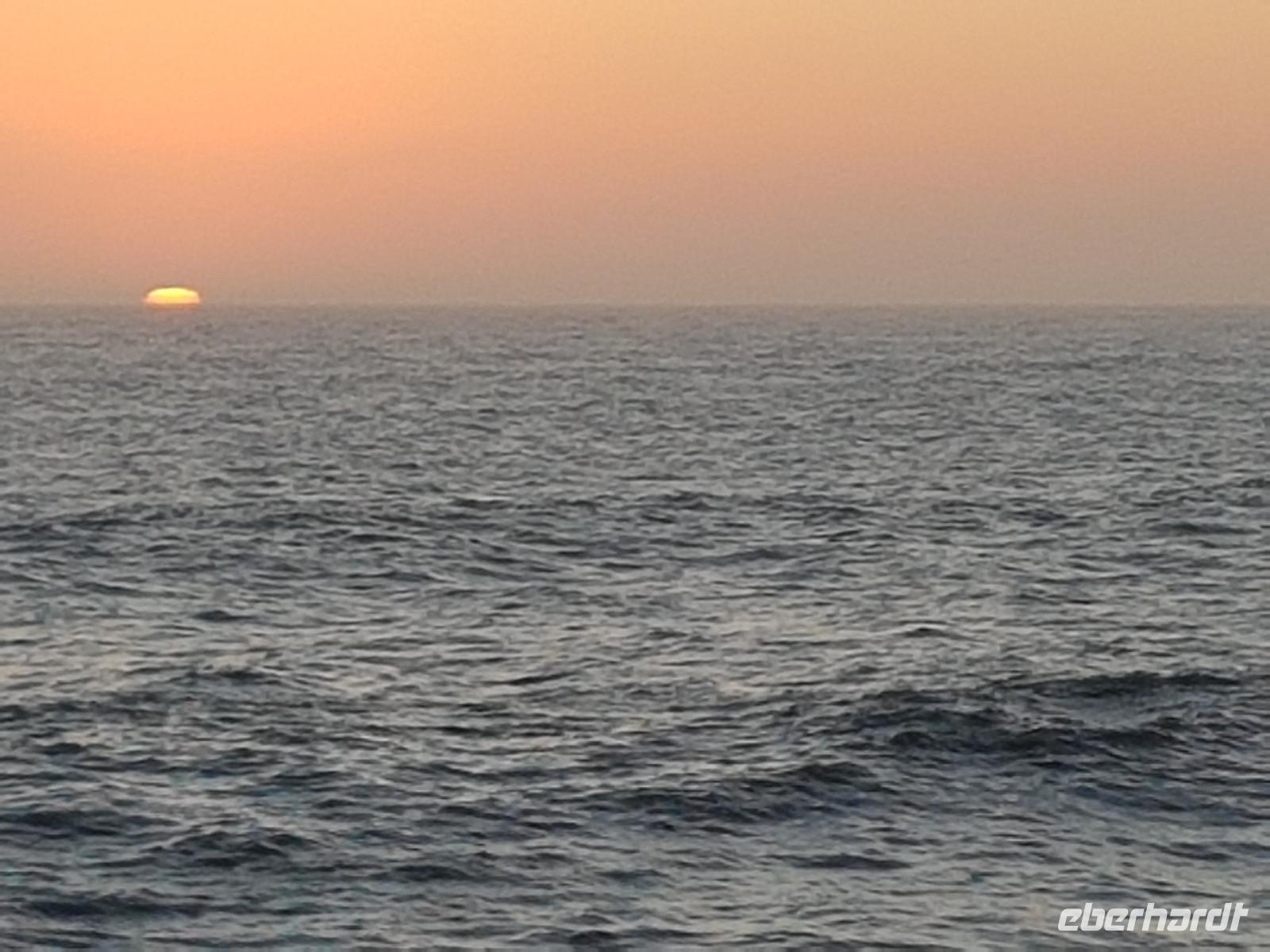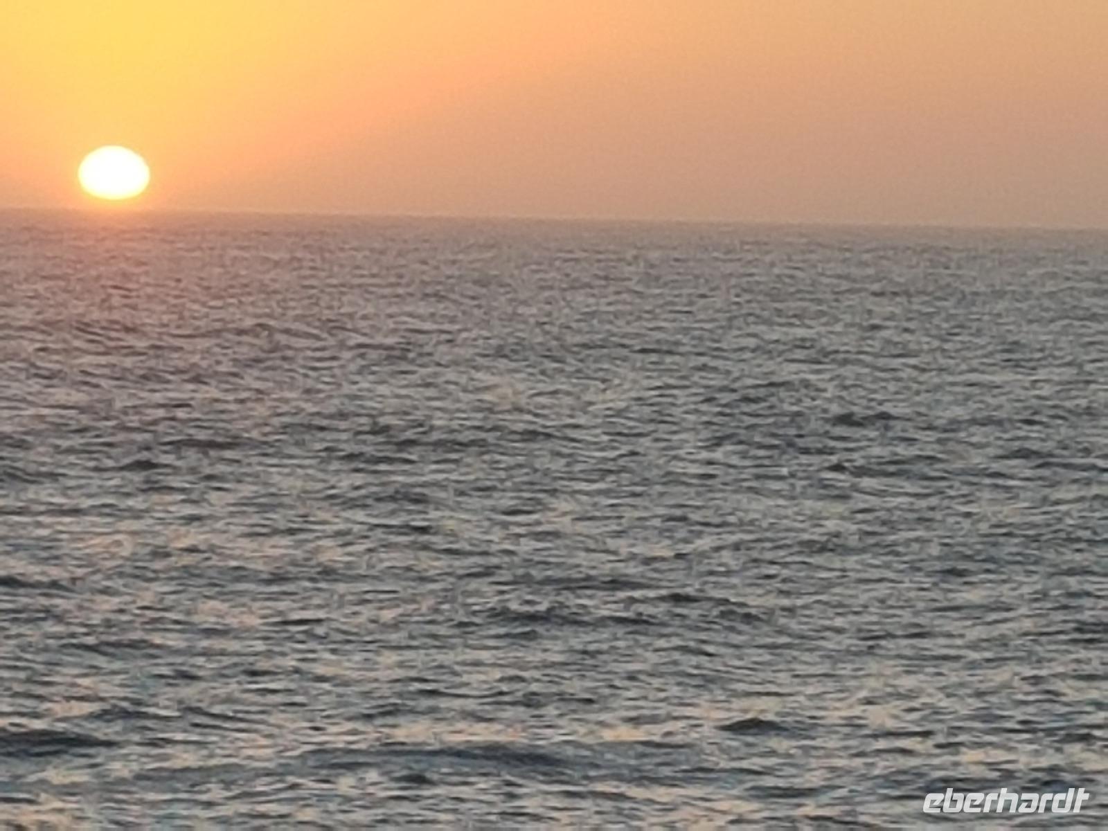 Auf der einen Seite kam die Nacht mit dem Schatten von der Erde und auf der anderen Seite waren orange und rote Farben, um uns mit der Sonne für die ersten tollen Tag zu bedanken. Für mich war es der wunderschönste Himmel beim Sonnenuntergang, den ich jemals gesehen habe. Die Farben!!! Der Schatten der Erde auf der anderen Seite. Unvergesslich!! 5 Minuten Stille und Ruhe. Die Seele könnte von allein beten -wie Irmgard sagte- und wir könnten nur dankbar sein.