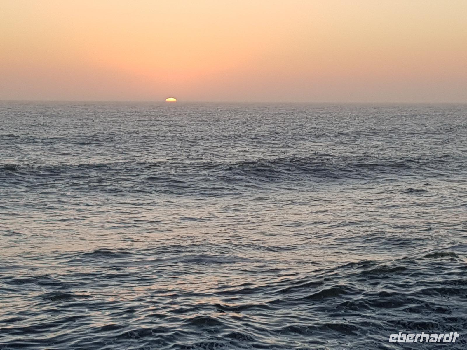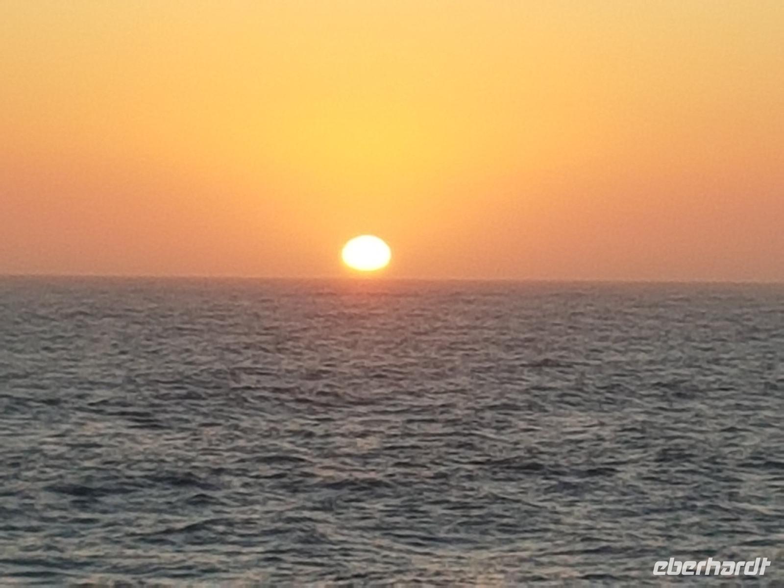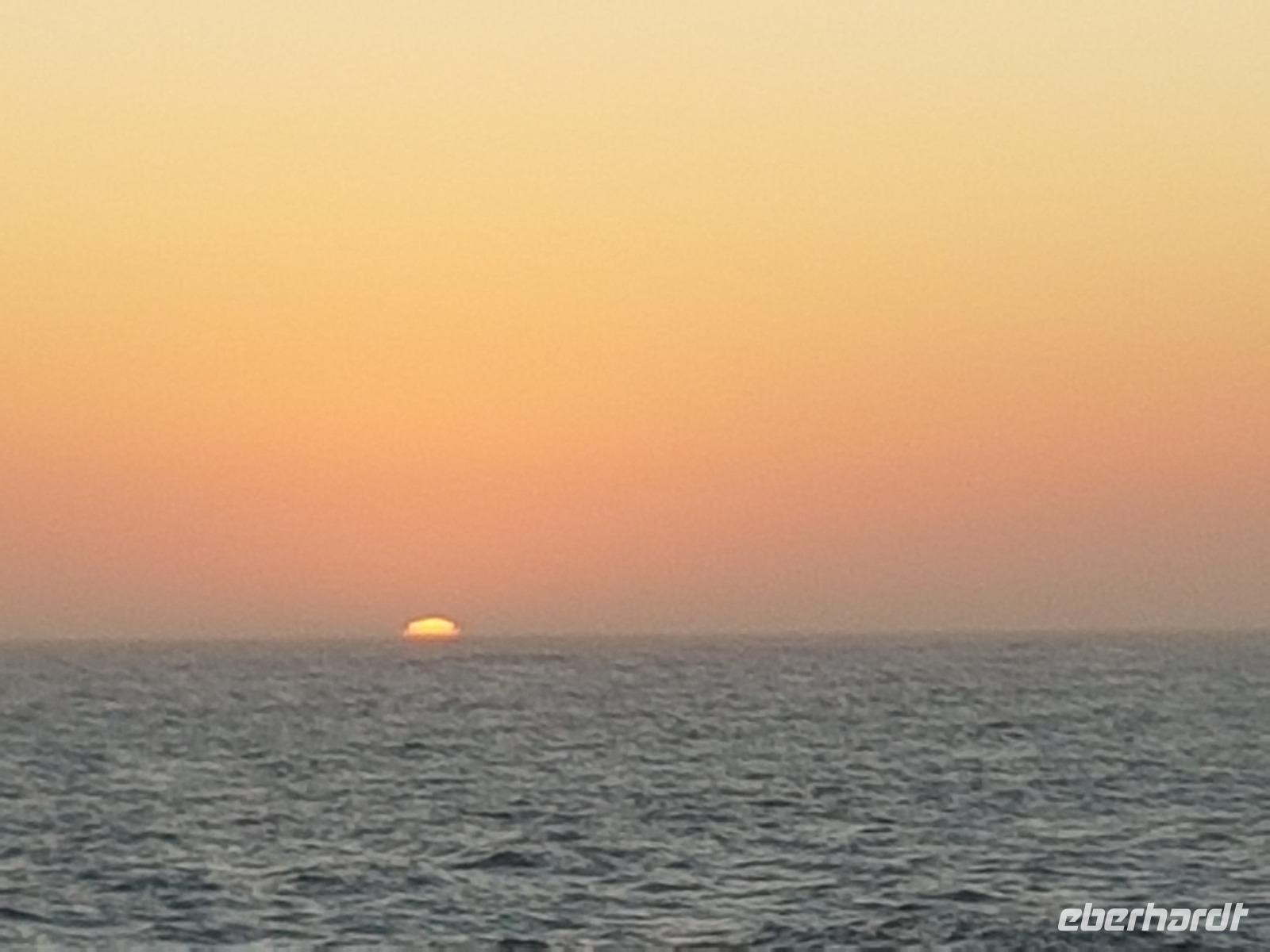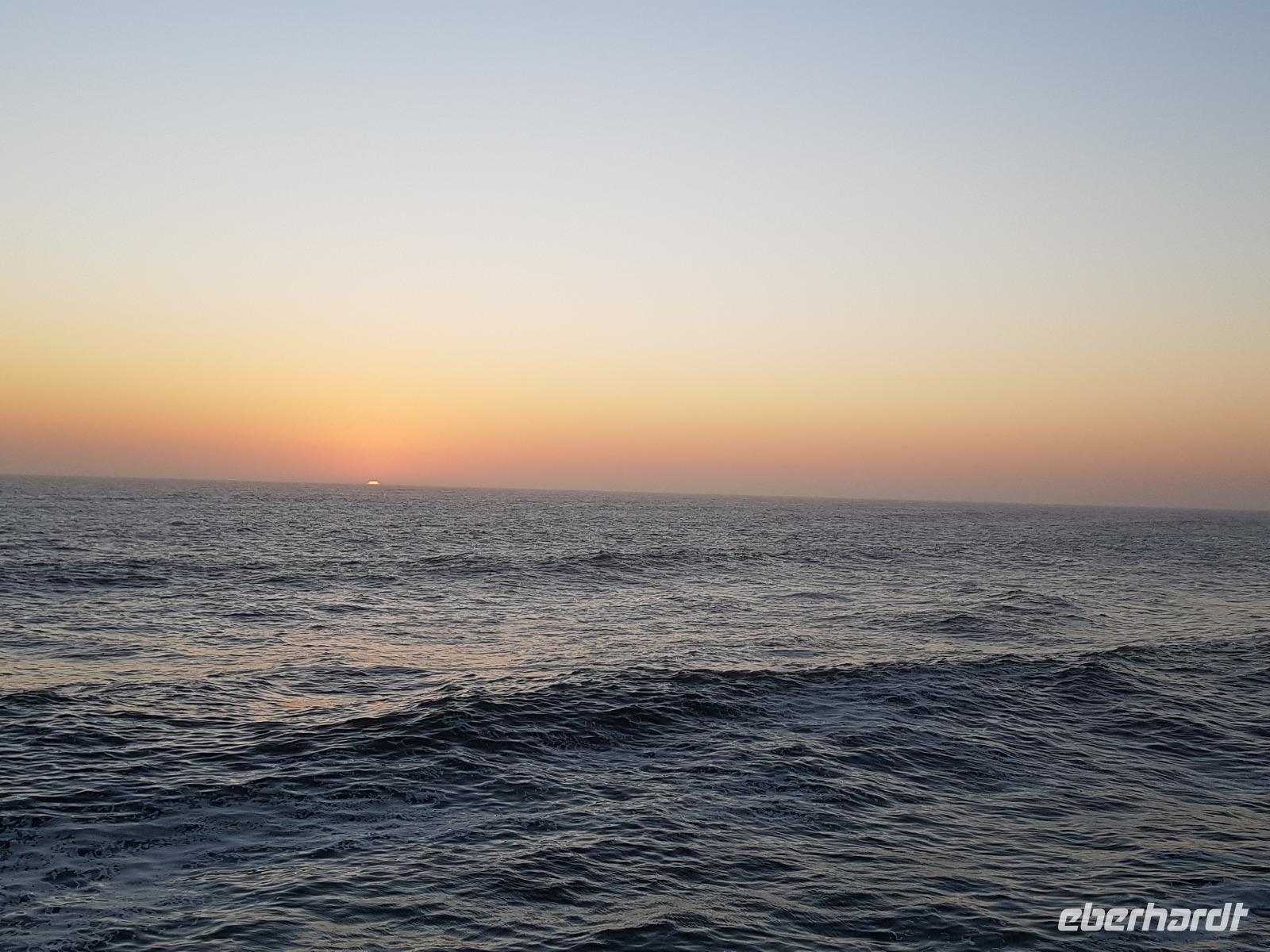 Auf der einen Seite kam die Nacht mit dem Schatten von der Erde und auf der anderen Seite waren orange und rote Farben, um uns mit der Sonne für die ersten tollen Tag zu bedanken. Für mich war es der wunderschönste Himmel beim Sonnenuntergang, den ich jemals gesehen habe. Die Farben!!! Der Schatten der Erde auf der anderen Seite. Unvergesslich!! 5 Minuten Stille und Ruhe. Die Seele könnte von allein beten -wie Irmgard sagte- und wir könnten nur dankbar sein.