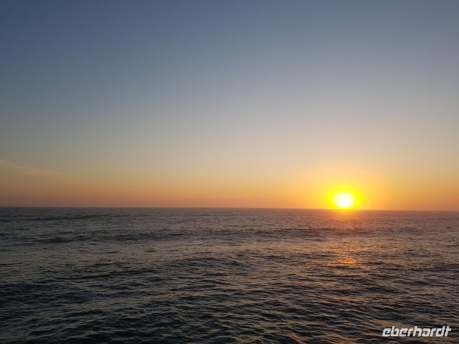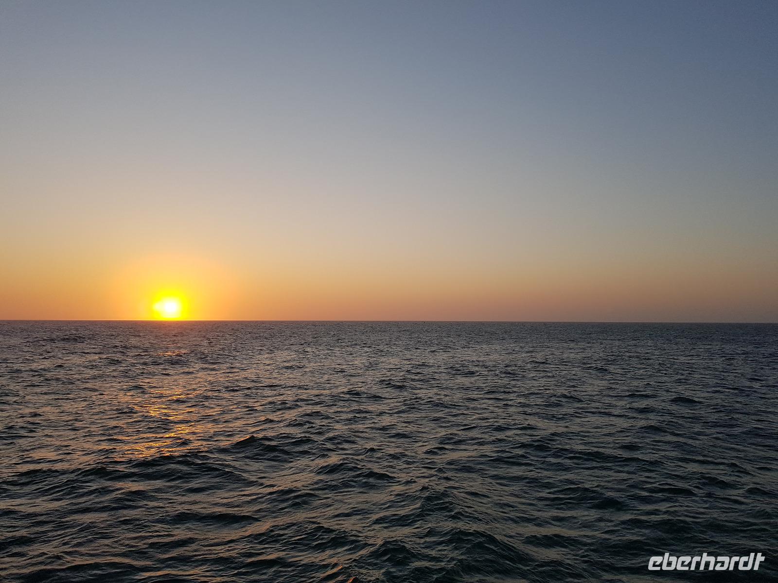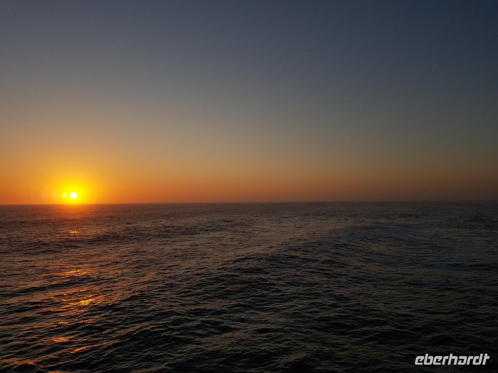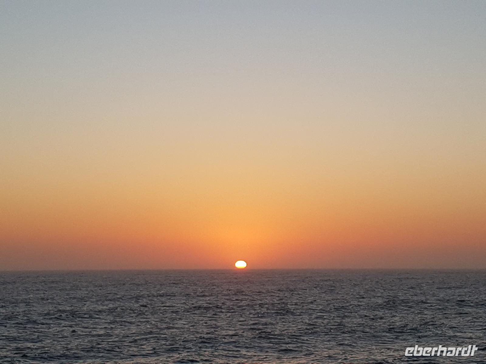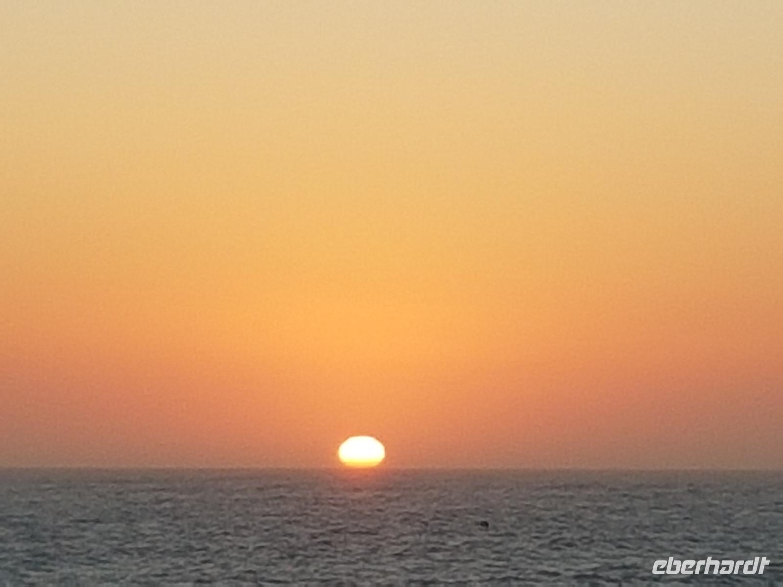 Auf der einen Seite kam die Nacht mit dem Schatten von der Erde und auf der anderen Seite waren orange und rote Farben, um uns mit der Sonne für die ersten tollen Tag zu bedanken. Für mich war es der wunderschönste Himmel beim Sonnenuntergang, den ich jemals gesehen habe. Die Farben!!! Der Schatten der Erde auf der anderen Seite. Unvergesslich!! 5 Minuten Stille und Ruhe. Die Seele könnte von allein beten -wie Irmgard sagte- und wir könnten nur dankbar sein.