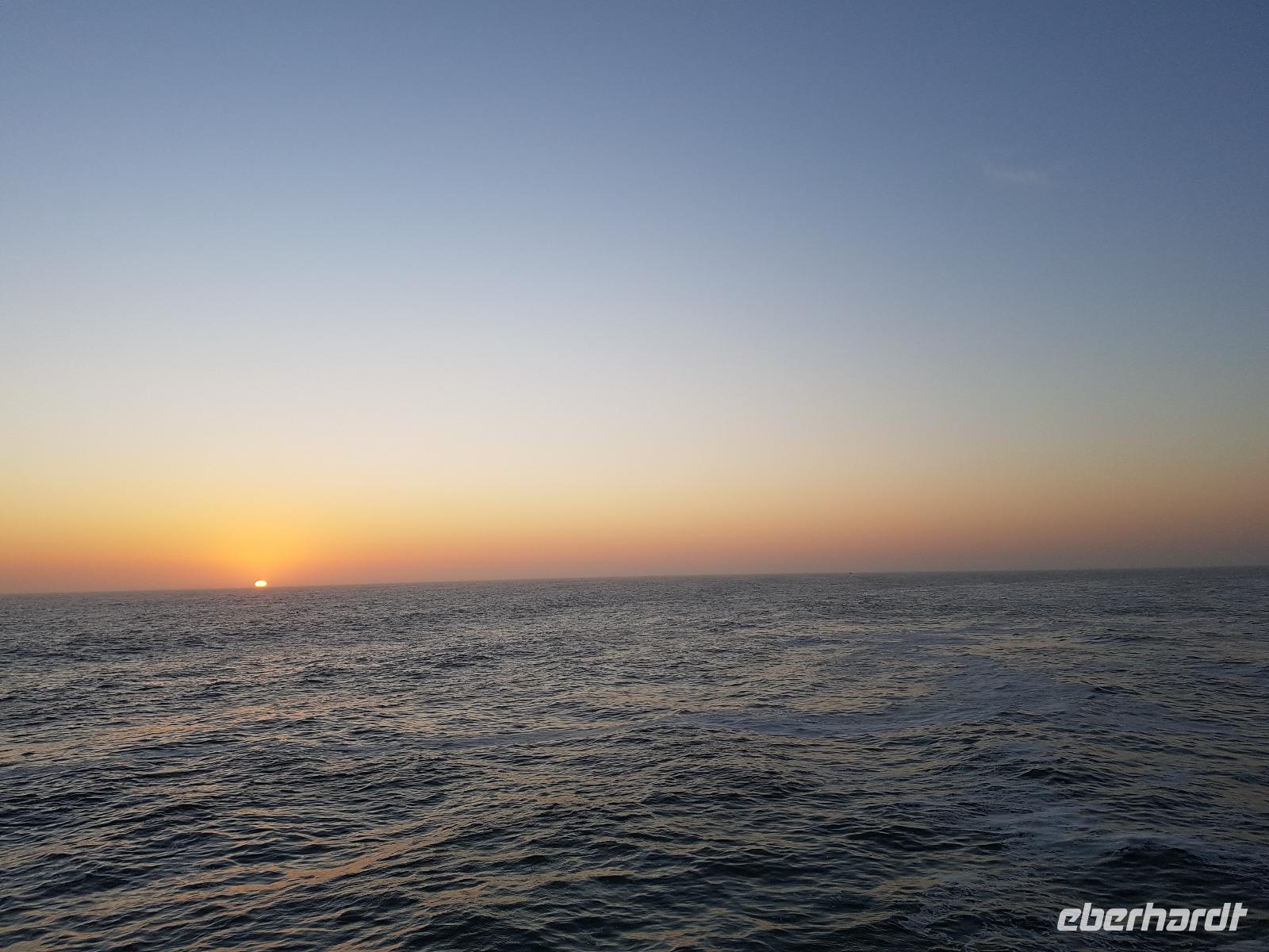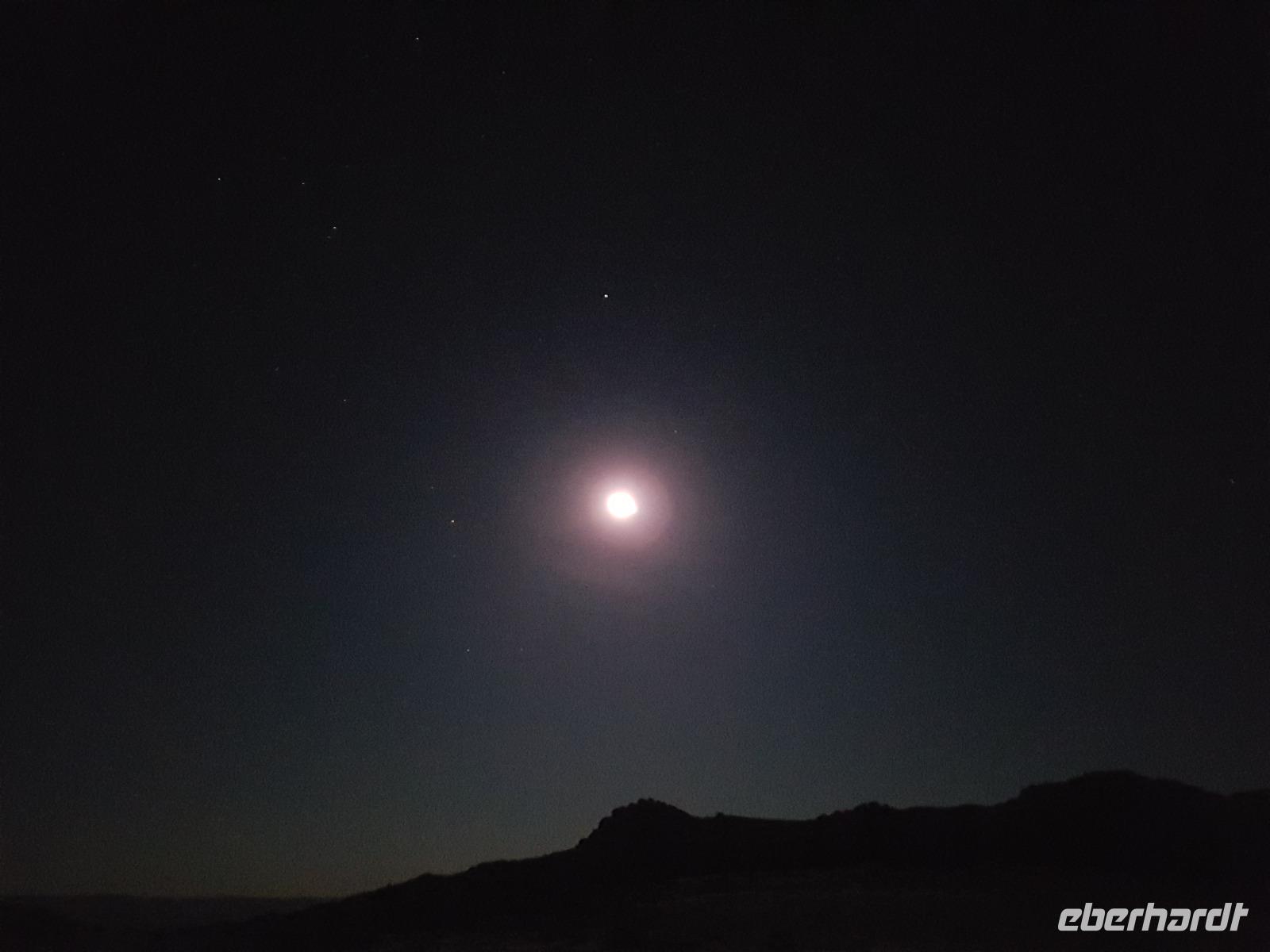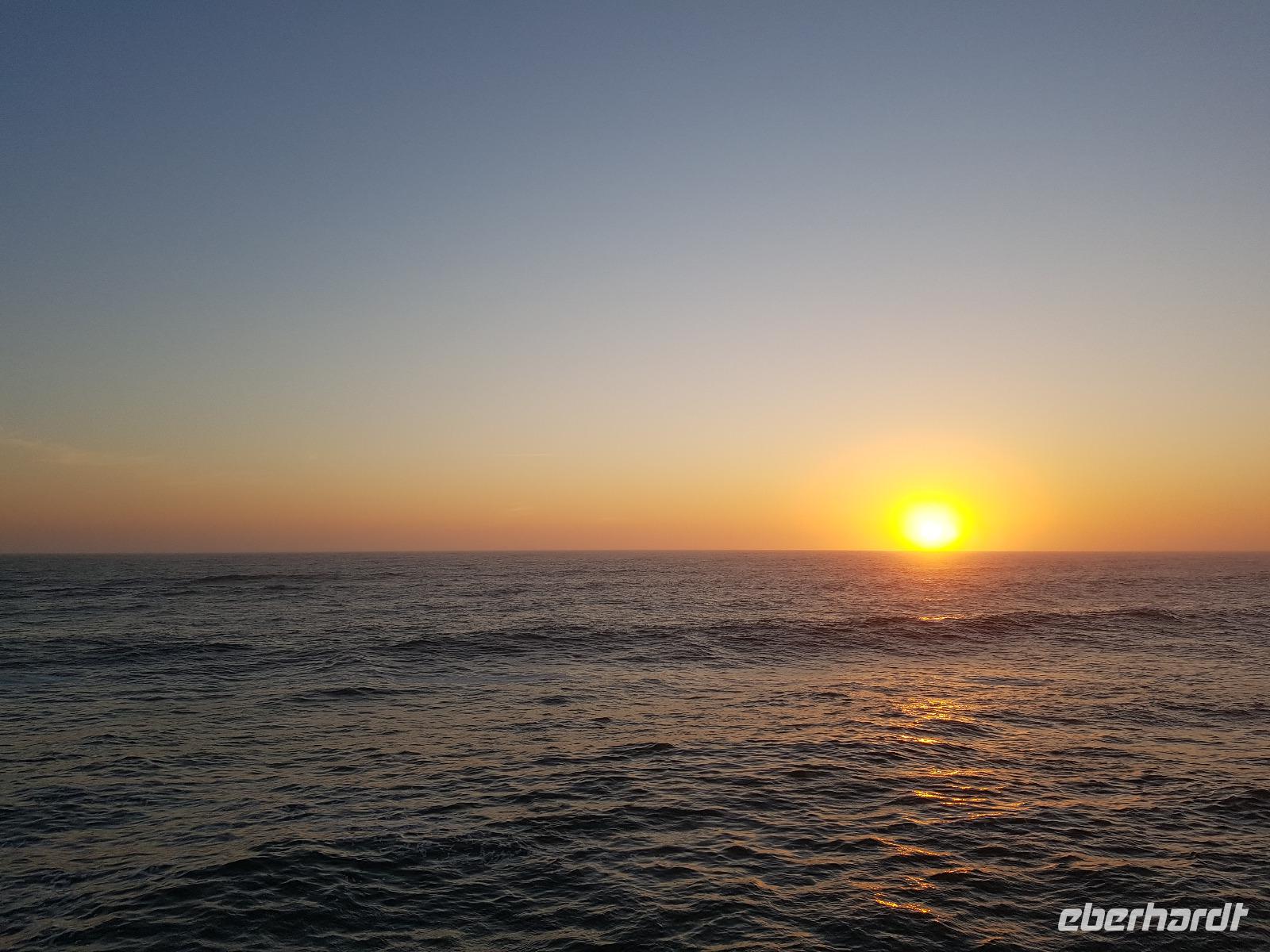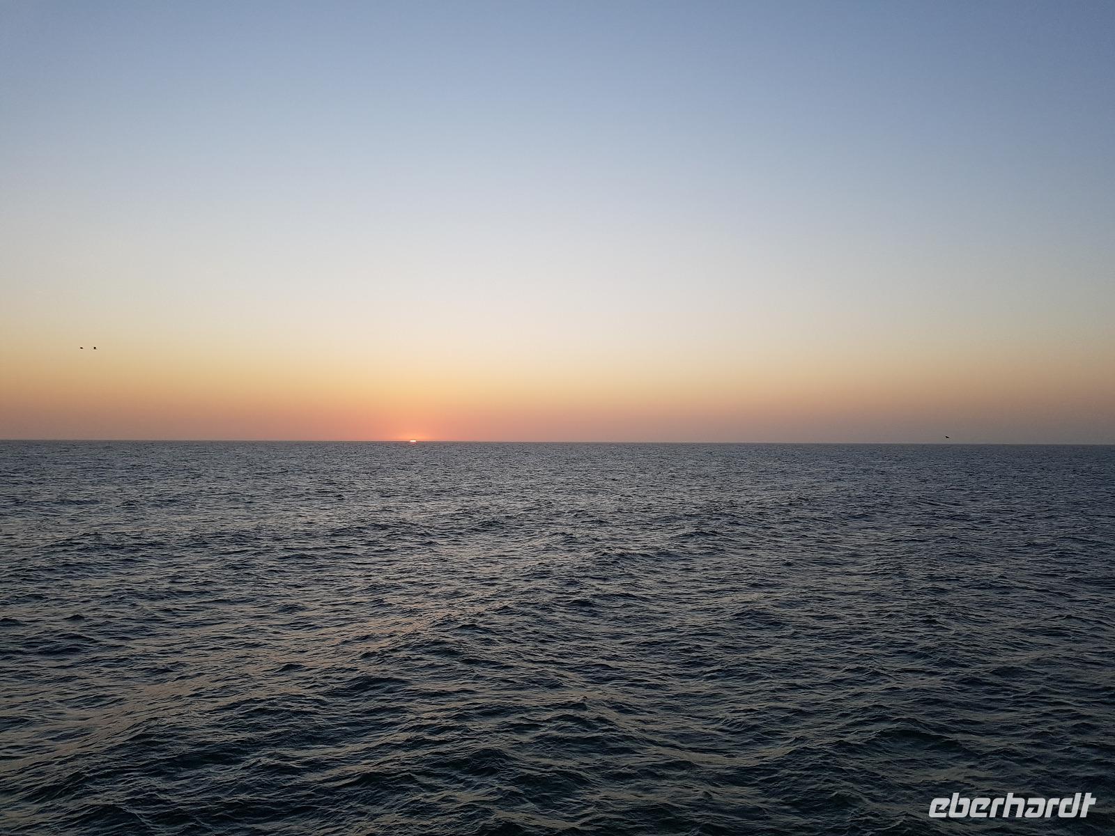 Auf der einen Seite kam die Nacht mit dem Schatten von der Erde und auf der anderen Seite waren orange und rote Farben, um uns mit der Sonne für die ersten tollen Tag zu bedanken. Für mich war es der wunderschönste Himmel beim Sonnenuntergang, den ich jemals gesehen habe. Die Farben!!! Der Schatten der Erde auf der anderen Seite. Unvergesslich!! 5 Minuten Stille und Ruhe. Die Seele könnte von allein beten -wie Irmgard sagte- und wir könnten nur dankbar sein.