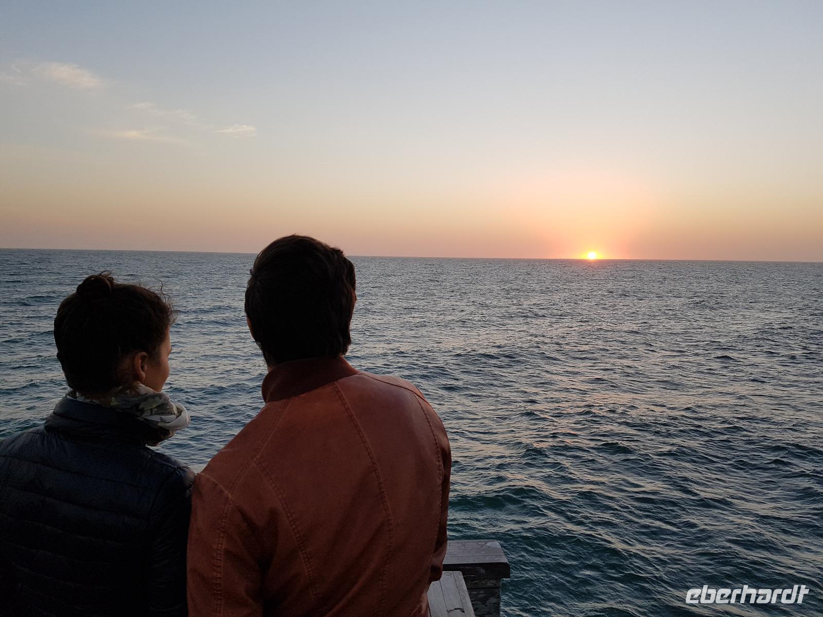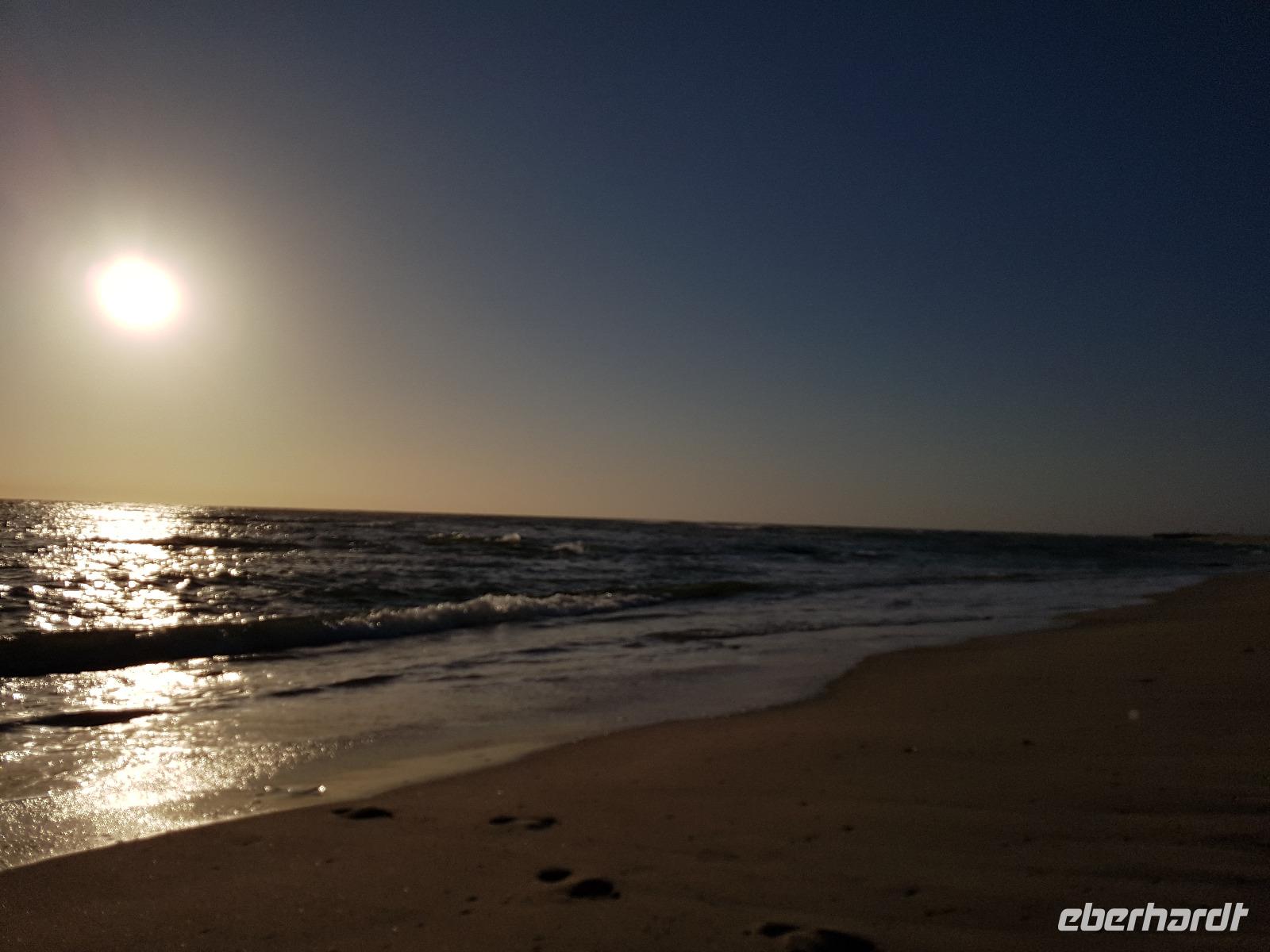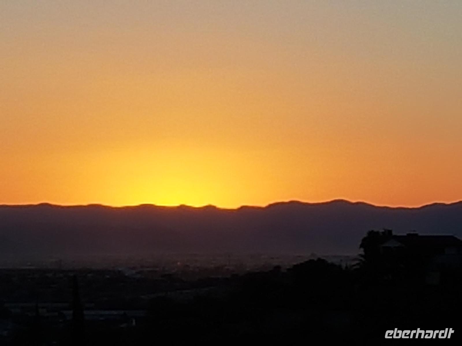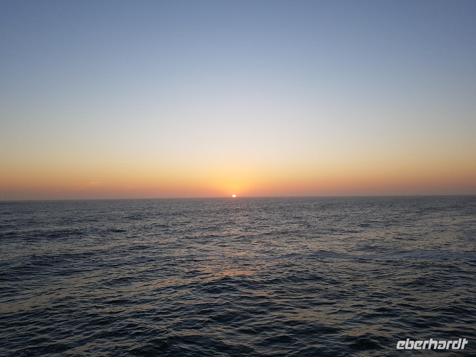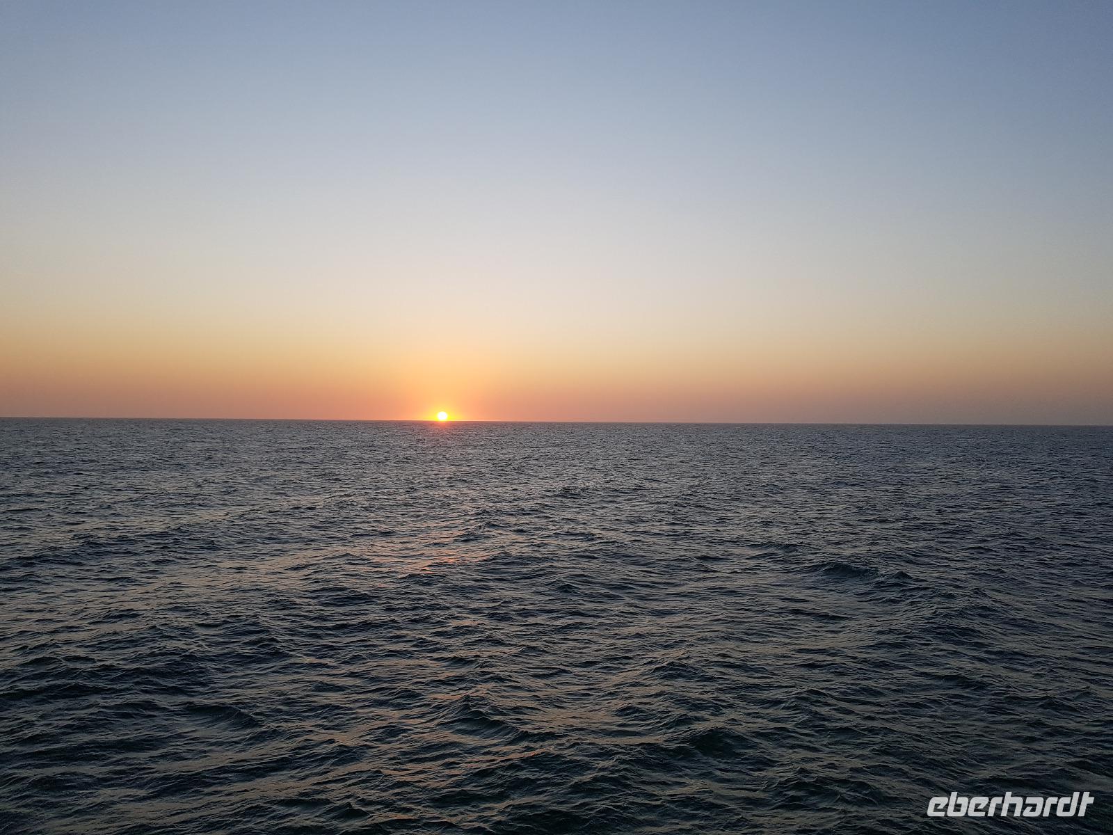 Auf der einen Seite kam die Nacht mit dem Schatten von der Erde und auf der anderen Seite waren orange und rote Farben, um uns mit der Sonne für die ersten tollen Tag zu bedanken. Für mich war es der wunderschönste Himmel beim Sonnenuntergang, den ich jemals gesehen habe. Die Farben!!! Der Schatten der Erde auf der anderen Seite. Unvergesslich!! 5 Minuten Stille und Ruhe. Die Seele könnte von allein beten -wie Irmgard sagte- und wir könnten nur dankbar sein.