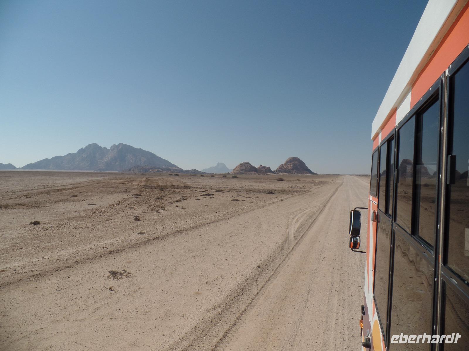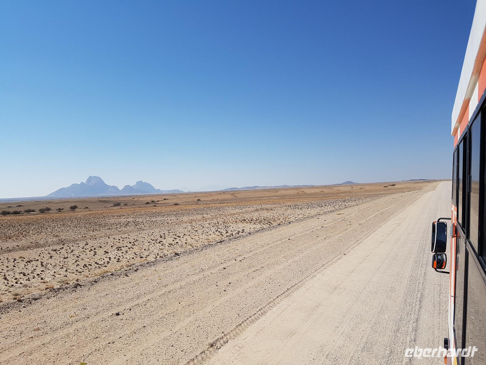 Frühstück war wieder toll und wir machten uns weiter auf die Fahrt immer am „ Weisse Rand Gebirge von Namibia entlang.