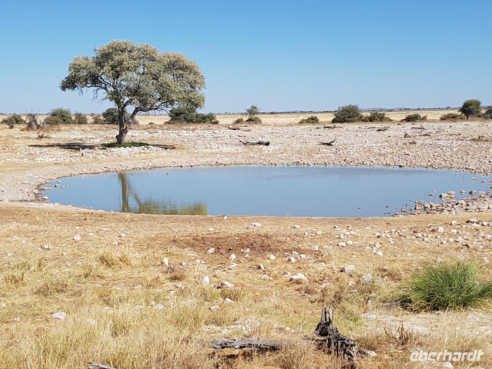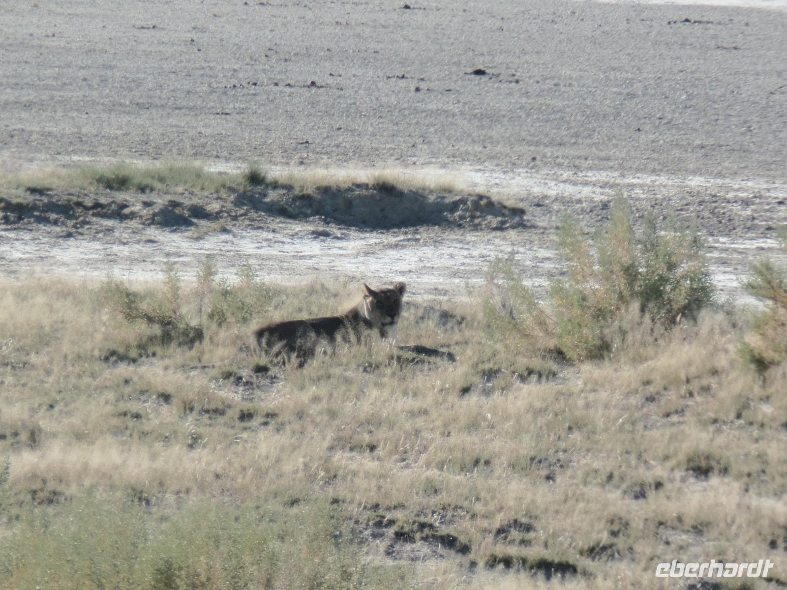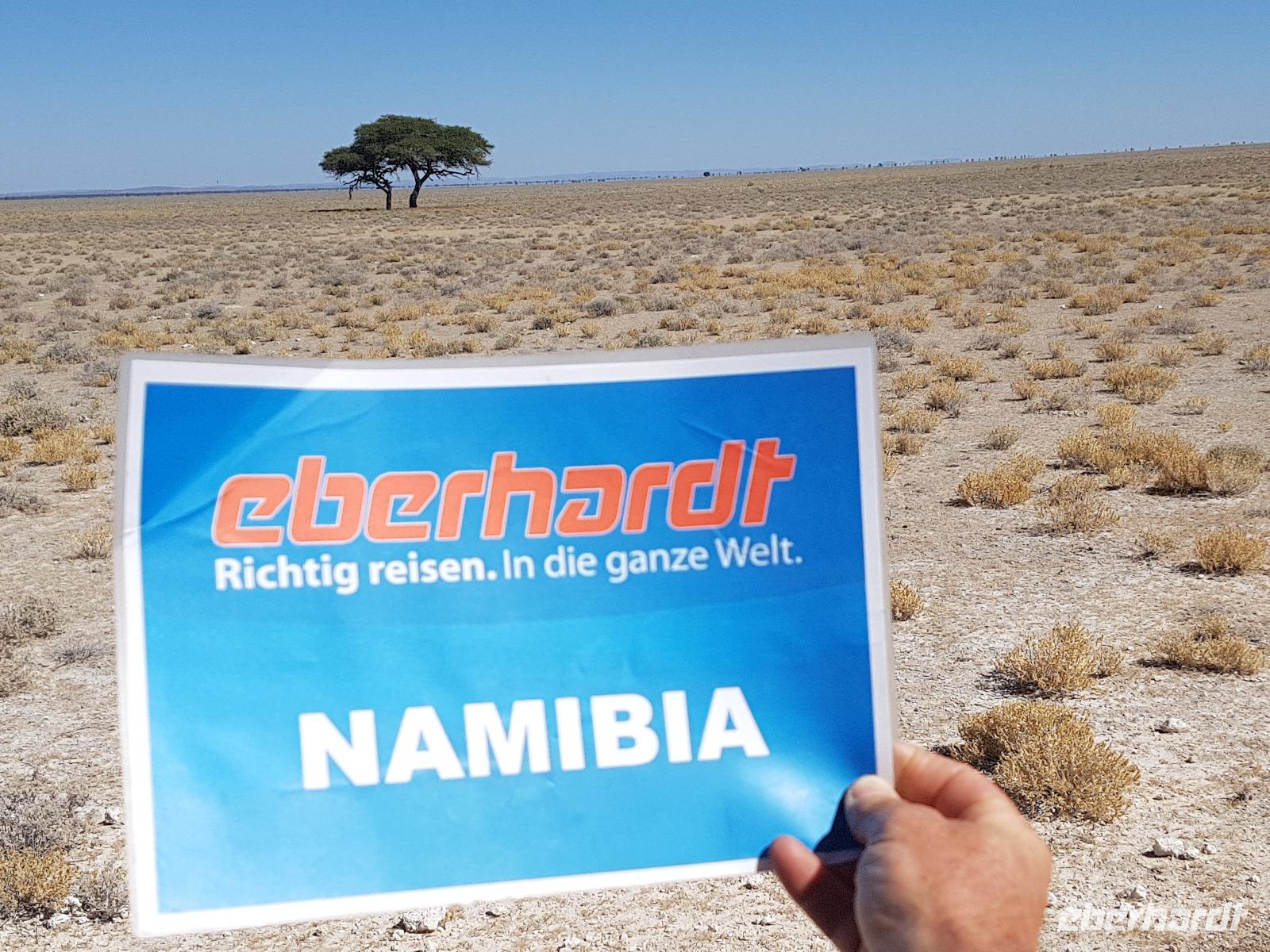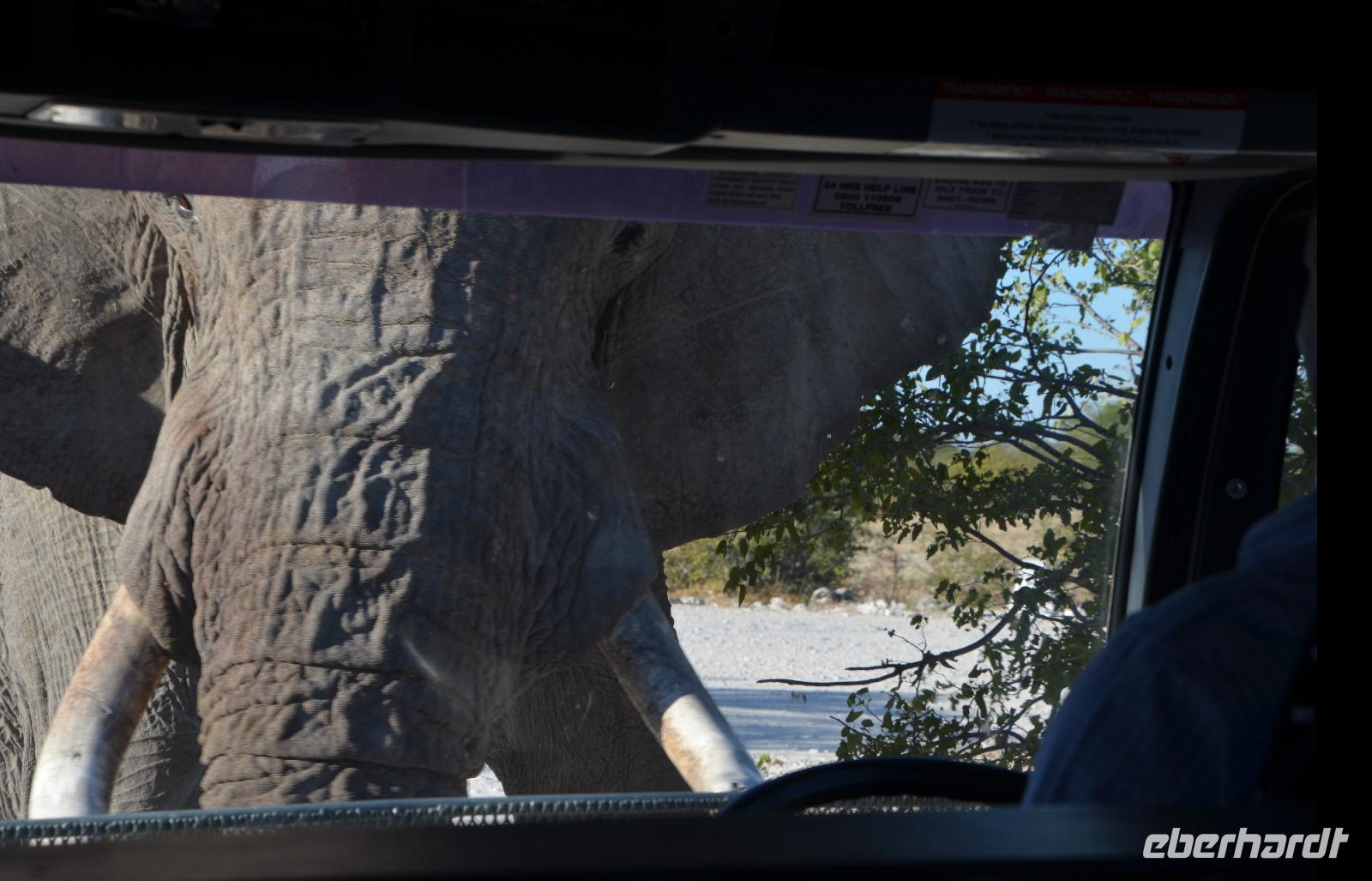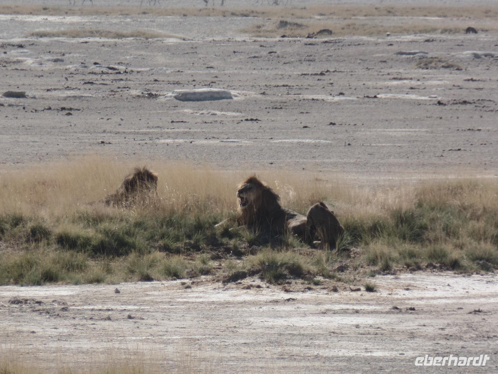 So wie gestern verbrachten wir die Mittagstunden beim gemütlichen Picknick in einem schattigen Camp direkt im Park. Hier konnte man sich was zum Essen bestellen oder zum Wasserloch laufen, um Tiere zu beobachten. Eberhardt Travel lud heute alle Gäste zum Eis ein. War eine gute Idee, oder? Am frühenNachmittag fuhren wir direkt am Rand von dem Herzstück des Parks, die 100 Kilometer lange Etosha-Pfanne. Eine große, weiße Fläche, wie der Name aus der Sansprache bedeutet, breitet sich ins Unendliche aus. Die weiße, nichtgreifbare Weite zieht uns alle magisch in ihren Bann.