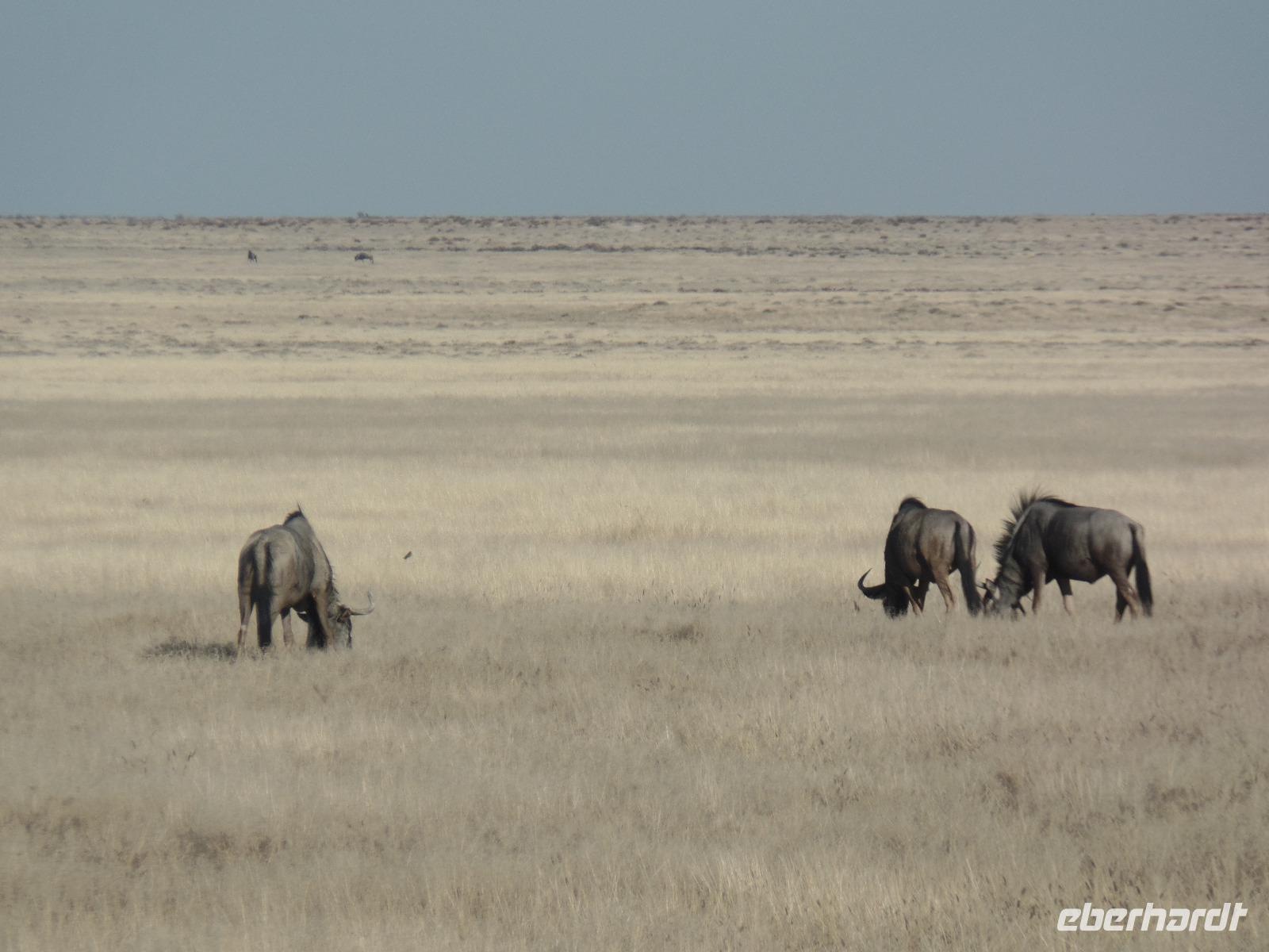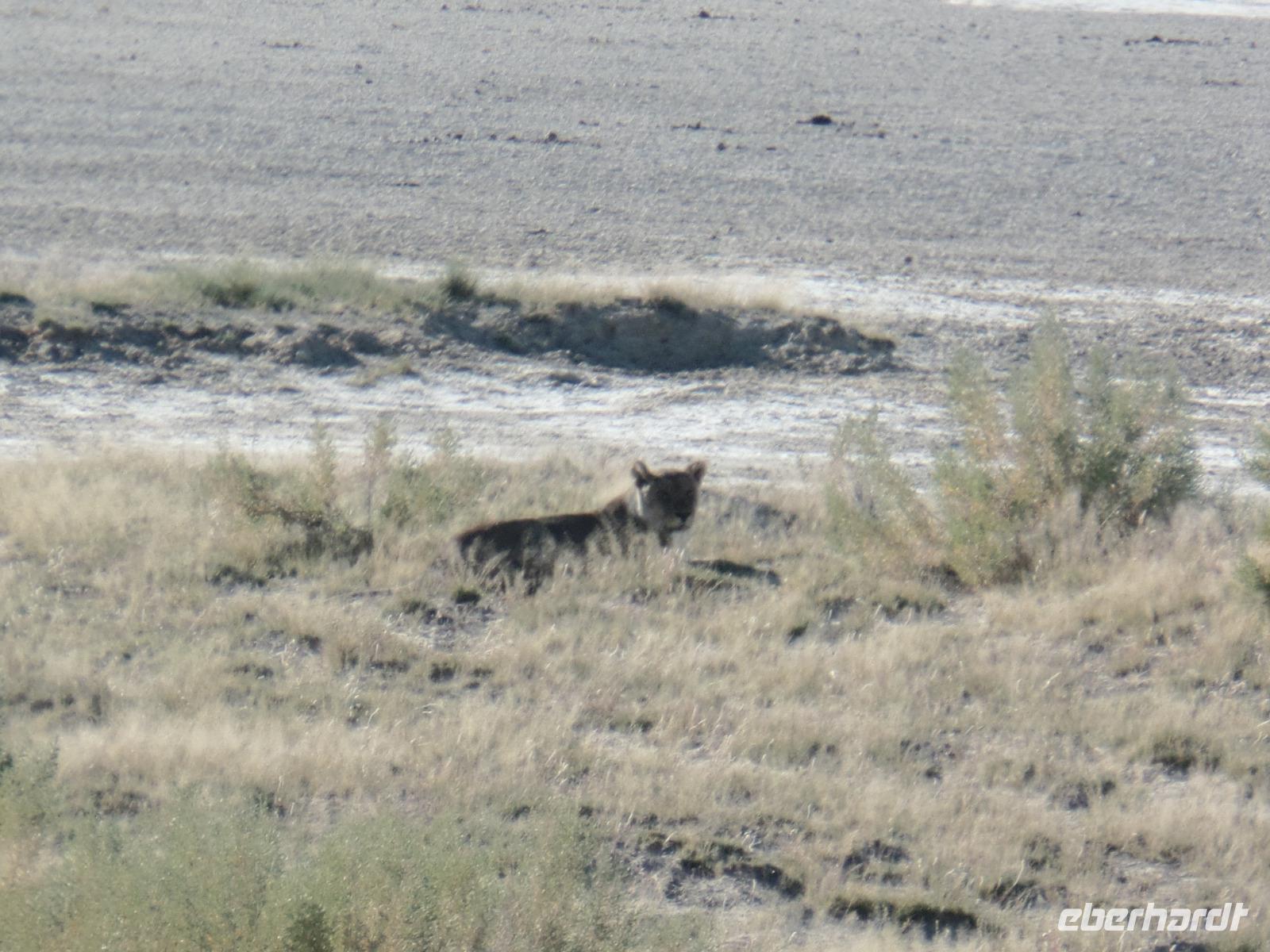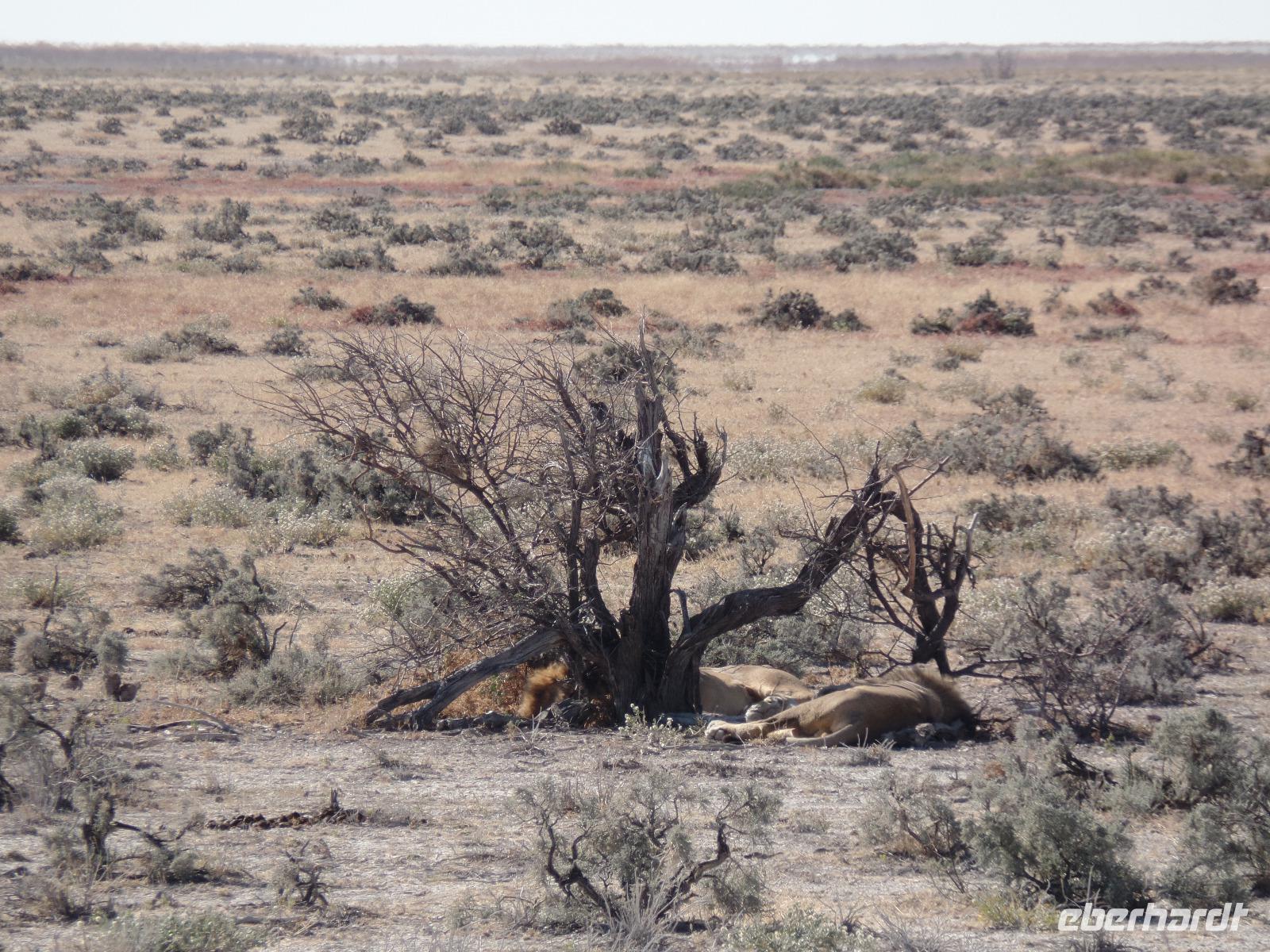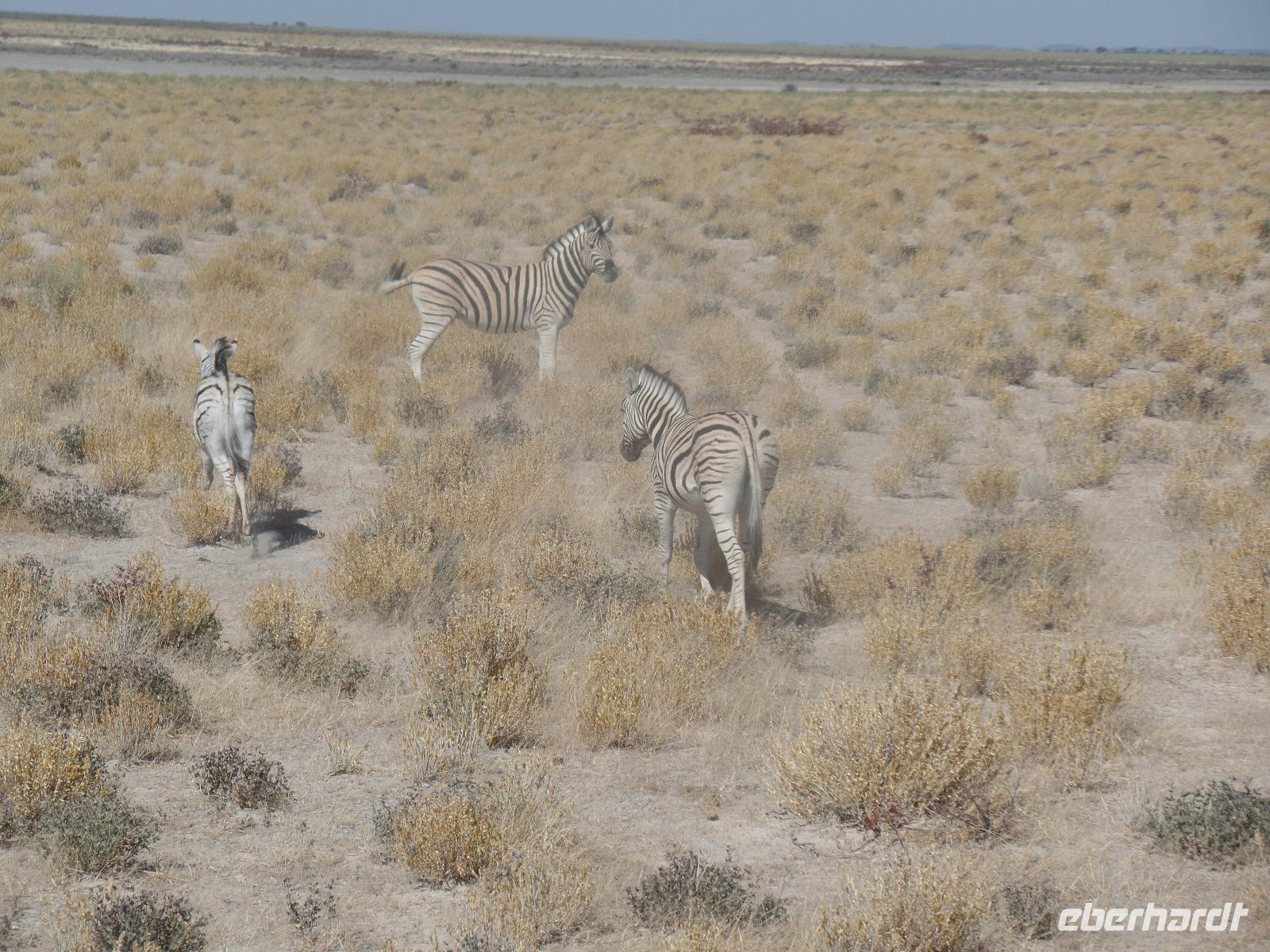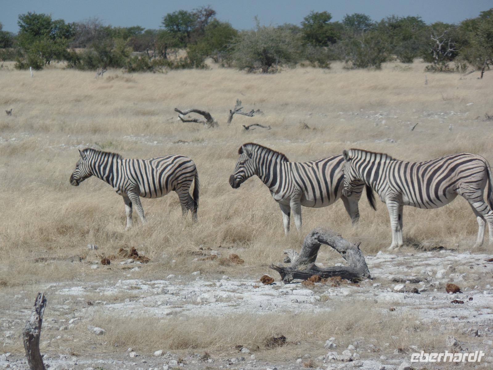 So wie gestern verbrachten wir die Mittagstunden beim gemütlichen Picknick in einem schattigen Camp direkt im Park. Hier konnte man sich was zum Essen bestellen oder zum Wasserloch laufen, um Tiere zu beobachten. Eberhardt Travel lud heute alle Gäste zum Eis ein. War eine gute Idee, oder? Am frühenNachmittag fuhren wir direkt am Rand von dem Herzstück des Parks, die 100 Kilometer lange Etosha-Pfanne. Eine große, weiße Fläche, wie der Name aus der Sansprache bedeutet, breitet sich ins Unendliche aus. Die weiße, nichtgreifbare Weite zieht uns alle magisch in ihren Bann.