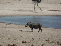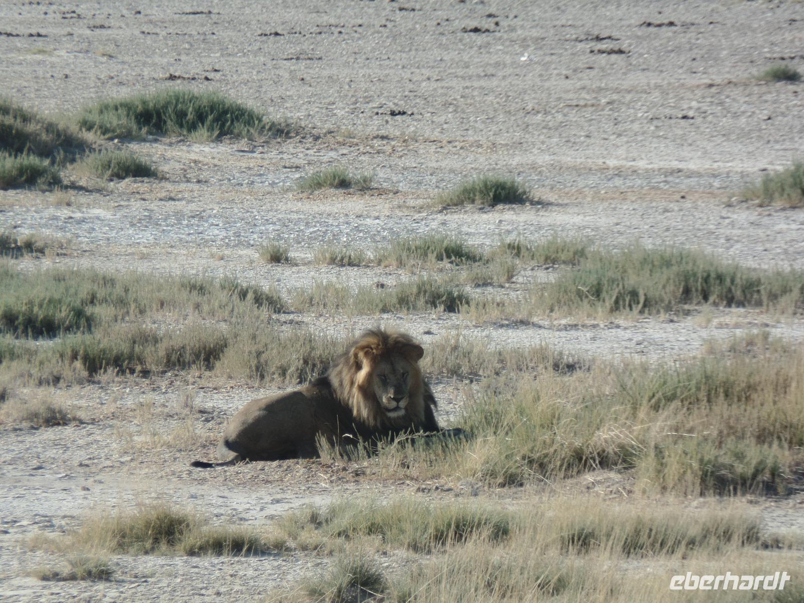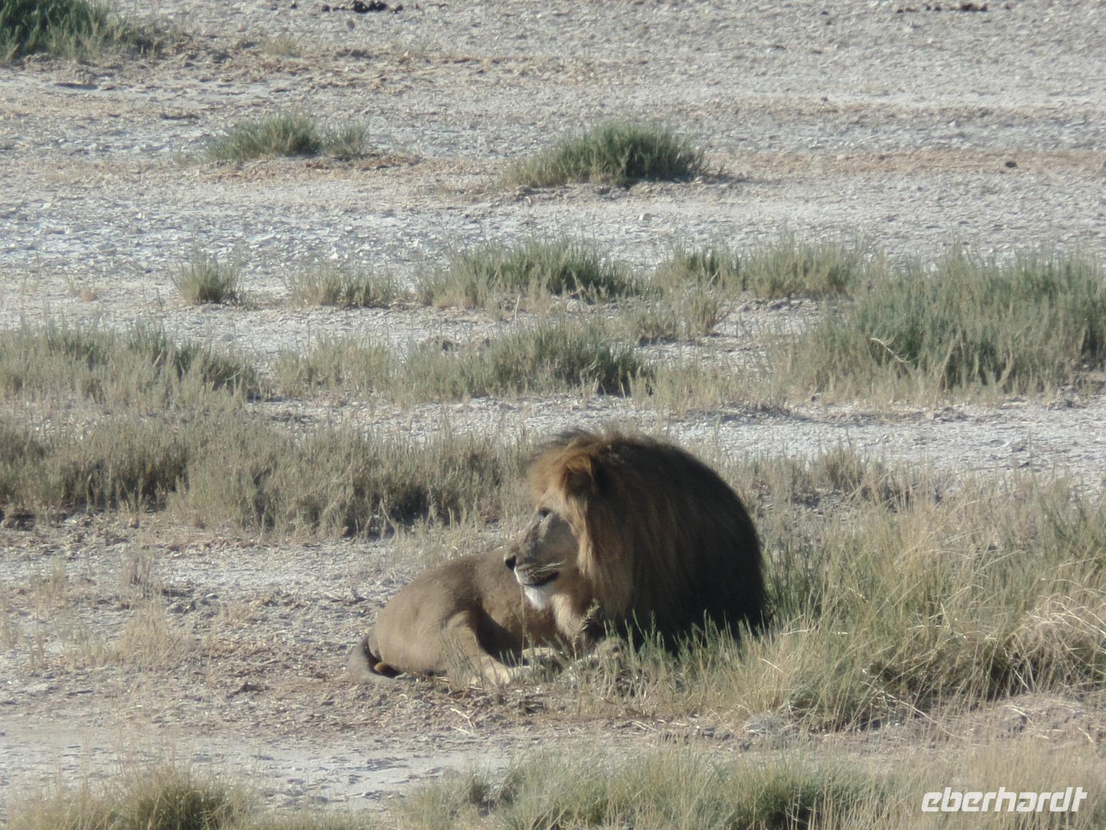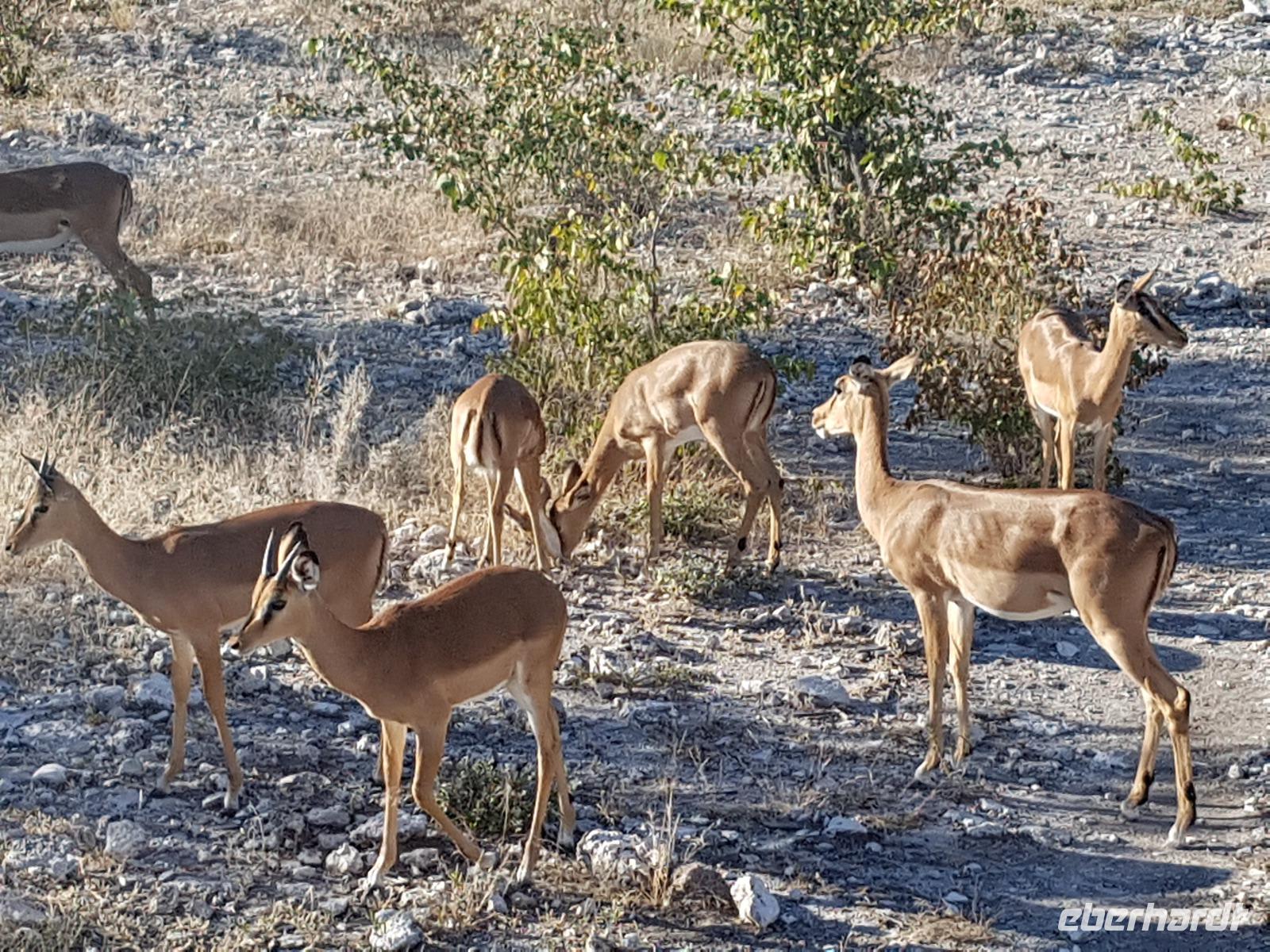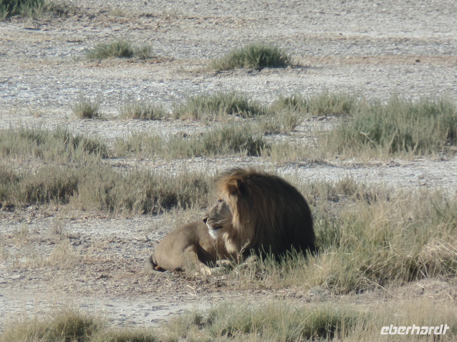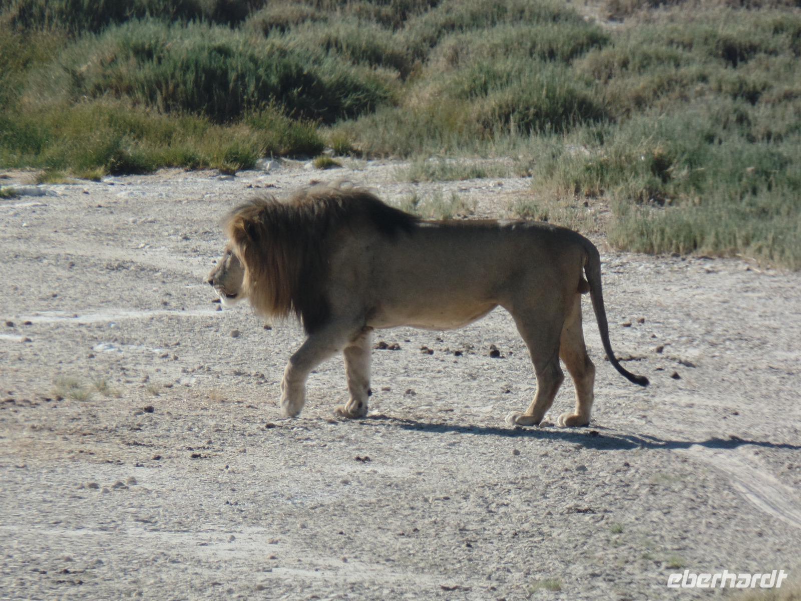 Ernst hat immer so ein Bauchgefühl und mit Hilfe auch von einer WhatsApp Gruppe wusste er manchmal, wo die besten Chancen waren und die Tiere sich aufhielten. Woran wir alle nicht glaubten war, dass wir Löwen begegnen. Doch sie waren da!! Für uns!! In Ruhe! König der Löwe!! Unsere Augen wollten es nicht glauben. Unfassbar, dass wir so etwas schönes erleben durften. Mit voller Dankbarkeit;) Wir konnten sie in Ruhe beobachten und die Zeit ging so langsam, dass wir eine Ewigkeit bei ihnen verbrachten. Es sind tolle Bilder entstanden Weiter fuhren wir zu einem Wasserloch wo ganz Afrika war. Ja, wirklich!! Wenn ich sage, ganz Afrika, meine ich: alle gemeinsam und friedlich die Giraffen, die Elefanten, die Onyx und Strauße, die Springböcke, Zebras, Gnus, der Schakal und 2 ganz lustige Warzenschweine. So friedlich müsste auch unsere Welt aussehen, wenn man die Nachrichten manchmal im Fernsehen sieht. Wunderschön!! Ab und zu kam auch ein Adler geflogen und so war die Natur in Ordnung. Und nicht nur Tiere sahen wir in Etosha, wie Elenantilope, Wasserbock. Kudu oder Schwarzgesicht-Impala wir sahen auch viele Vögel in den 2 Tagen: Sekretär, Schreiseeadler, Graureiher, Swainsonfrankolin sowie Riesentrappe und selbstverständlich den Strauß.
