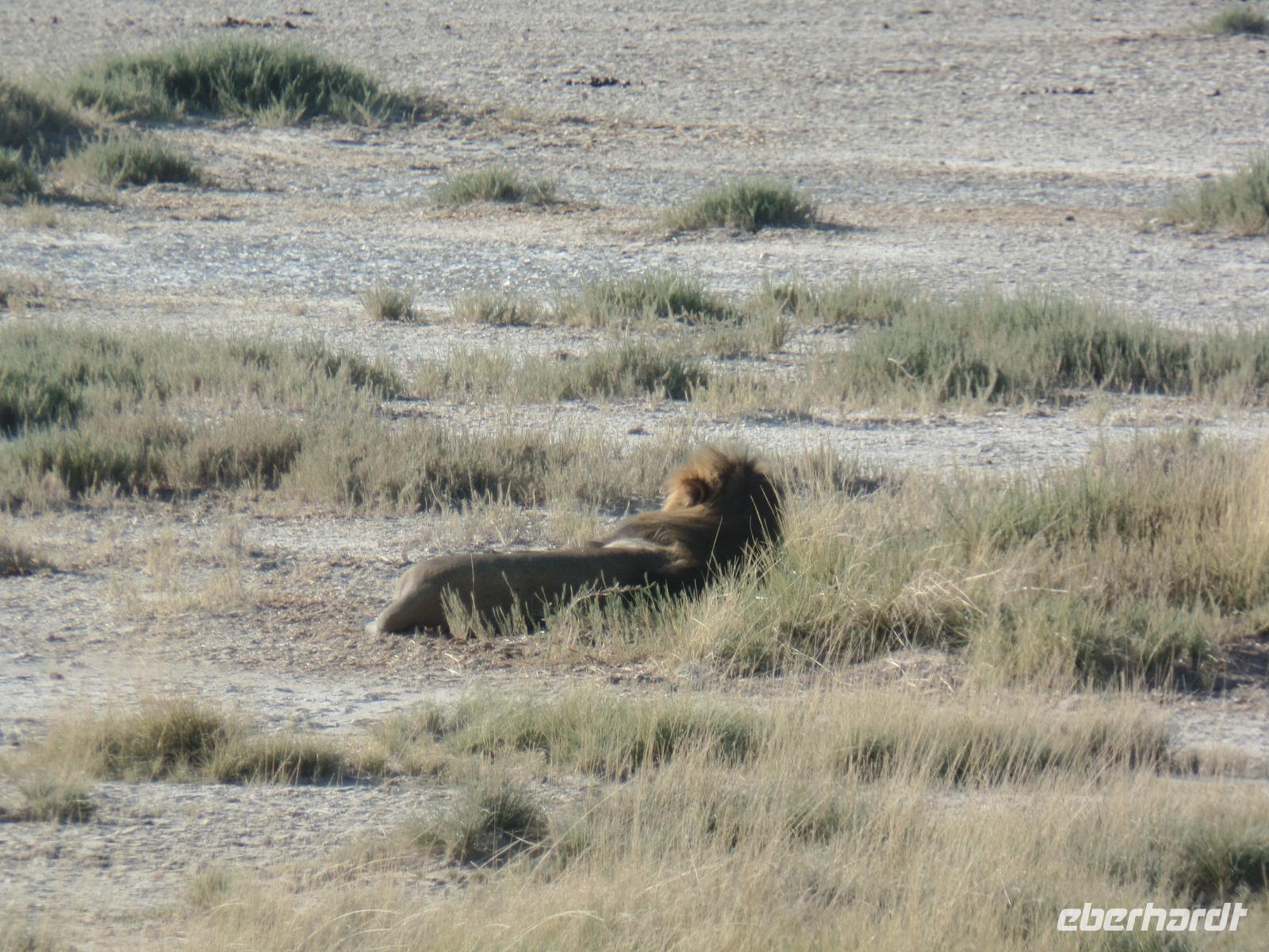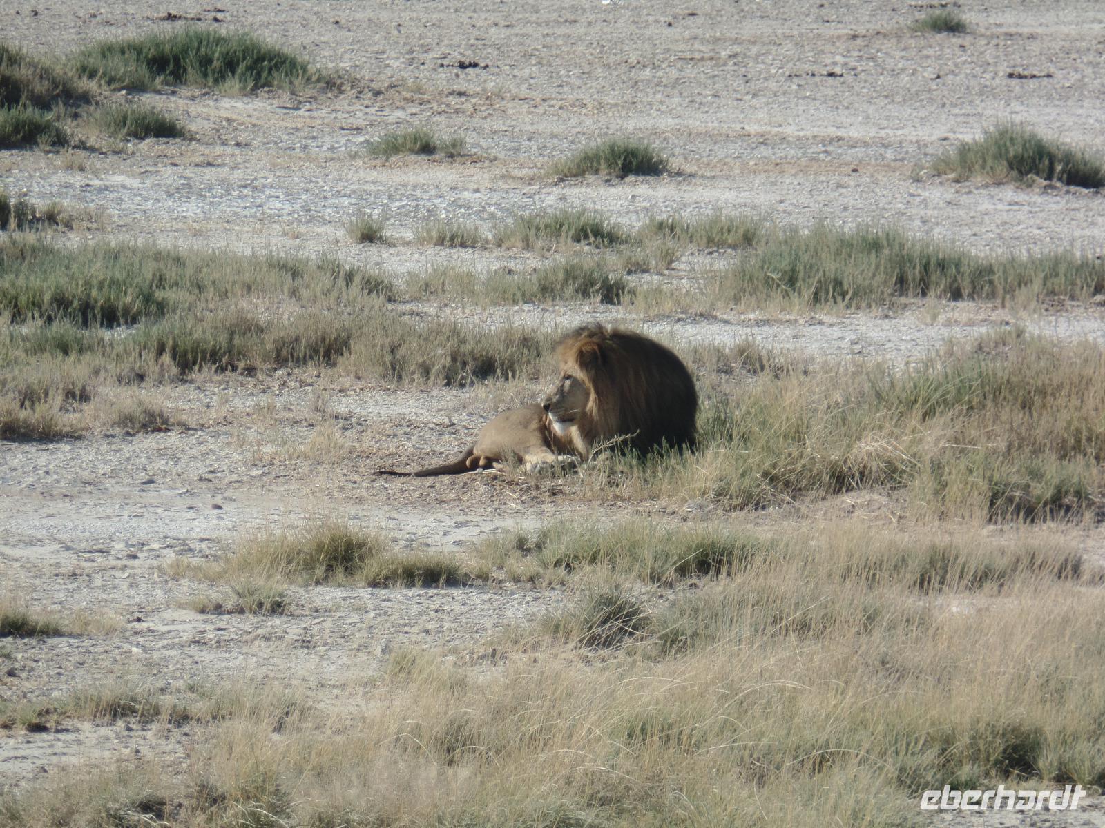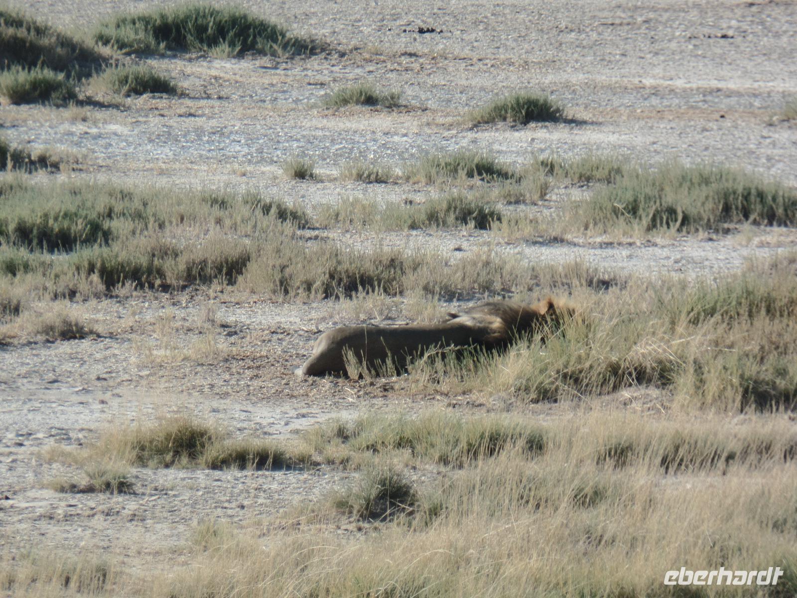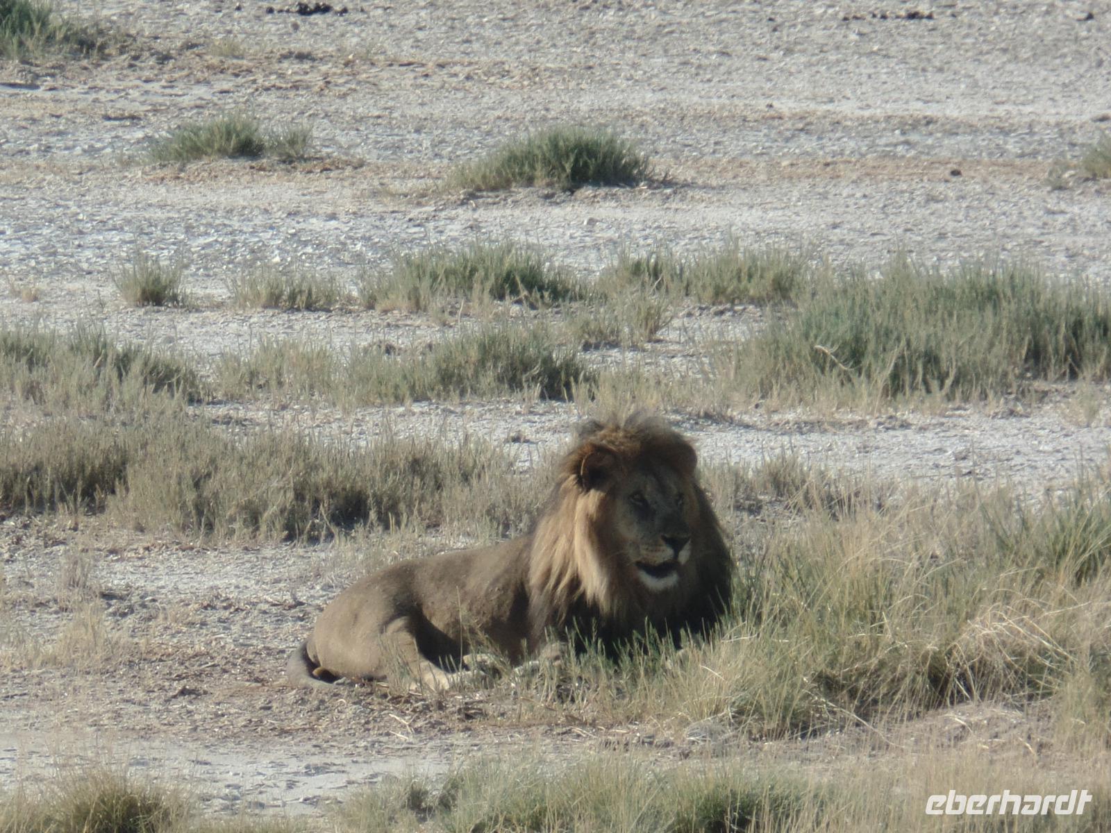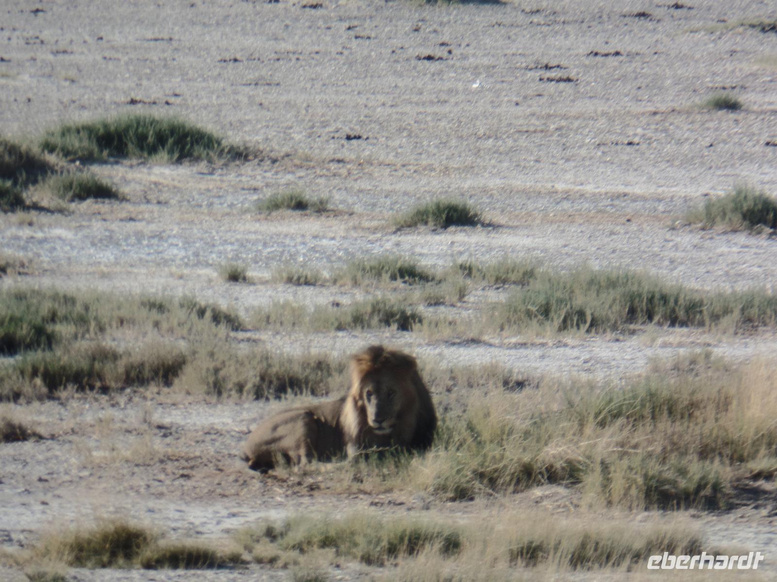 Ernst hat immer so ein Bauchgefühl und mit Hilfe auch von einer WhatsApp Gruppe wusste er manchmal, wo die besten Chancen waren und die Tiere sich aufhielten. Woran wir alle nicht glaubten war, dass wir Löwen begegnen. Doch sie waren da!! Für uns!! In Ruhe! König der Löwe!! Unsere Augen wollten es nicht glauben. Unfassbar, dass wir so etwas schönes erleben durften. Mit voller Dankbarkeit;) Wir konnten sie in Ruhe beobachten und die Zeit ging so langsam, dass wir eine Ewigkeit bei ihnen verbrachten. Es sind tolle Bilder entstanden Weiter fuhren wir zu einem Wasserloch wo ganz Afrika war. Ja, wirklich!! Wenn ich sage, ganz Afrika, meine ich: alle gemeinsam und friedlich die Giraffen, die Elefanten, die Onyx und Strauße, die Springböcke, Zebras, Gnus, der Schakal und 2 ganz lustige Warzenschweine. So friedlich müsste auch unsere Welt aussehen, wenn man die Nachrichten manchmal im Fernsehen sieht. Wunderschön!! Ab und zu kam auch ein Adler geflogen und so war die Natur in Ordnung. Und nicht nur Tiere sahen wir in Etosha, wie Elenantilope, Wasserbock. Kudu oder Schwarzgesicht-Impala wir sahen auch viele Vögel in den 2 Tagen: Sekretär, Schreiseeadler, Graureiher, Swainsonfrankolin sowie Riesentrappe und selbstverständlich den Strauß.