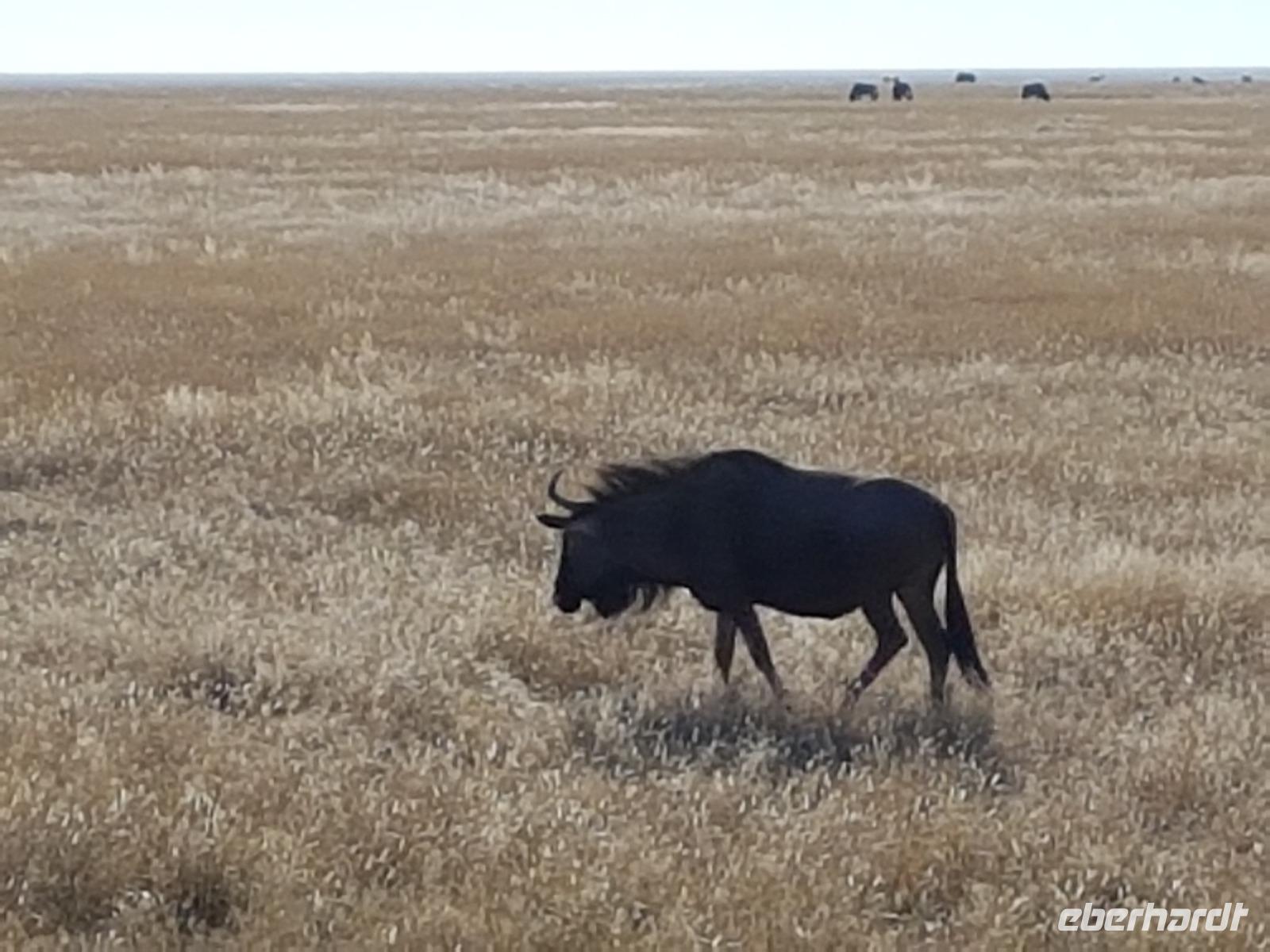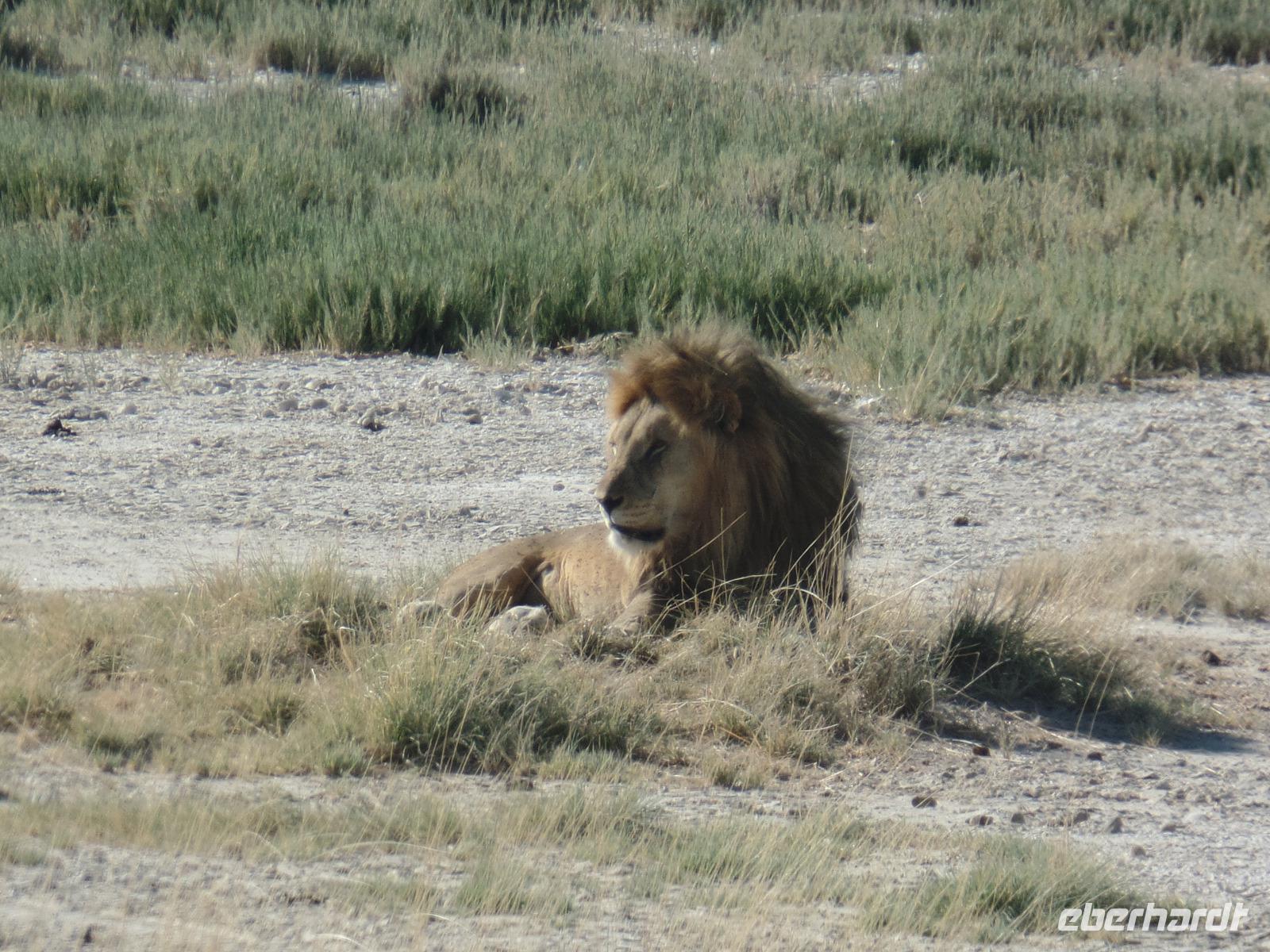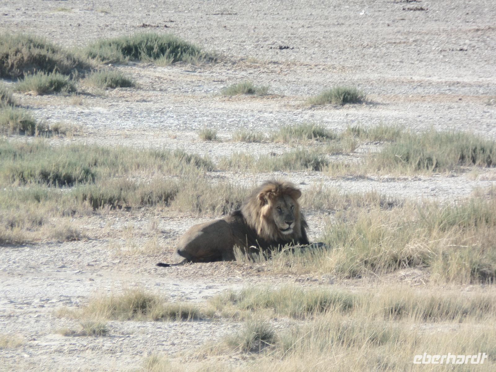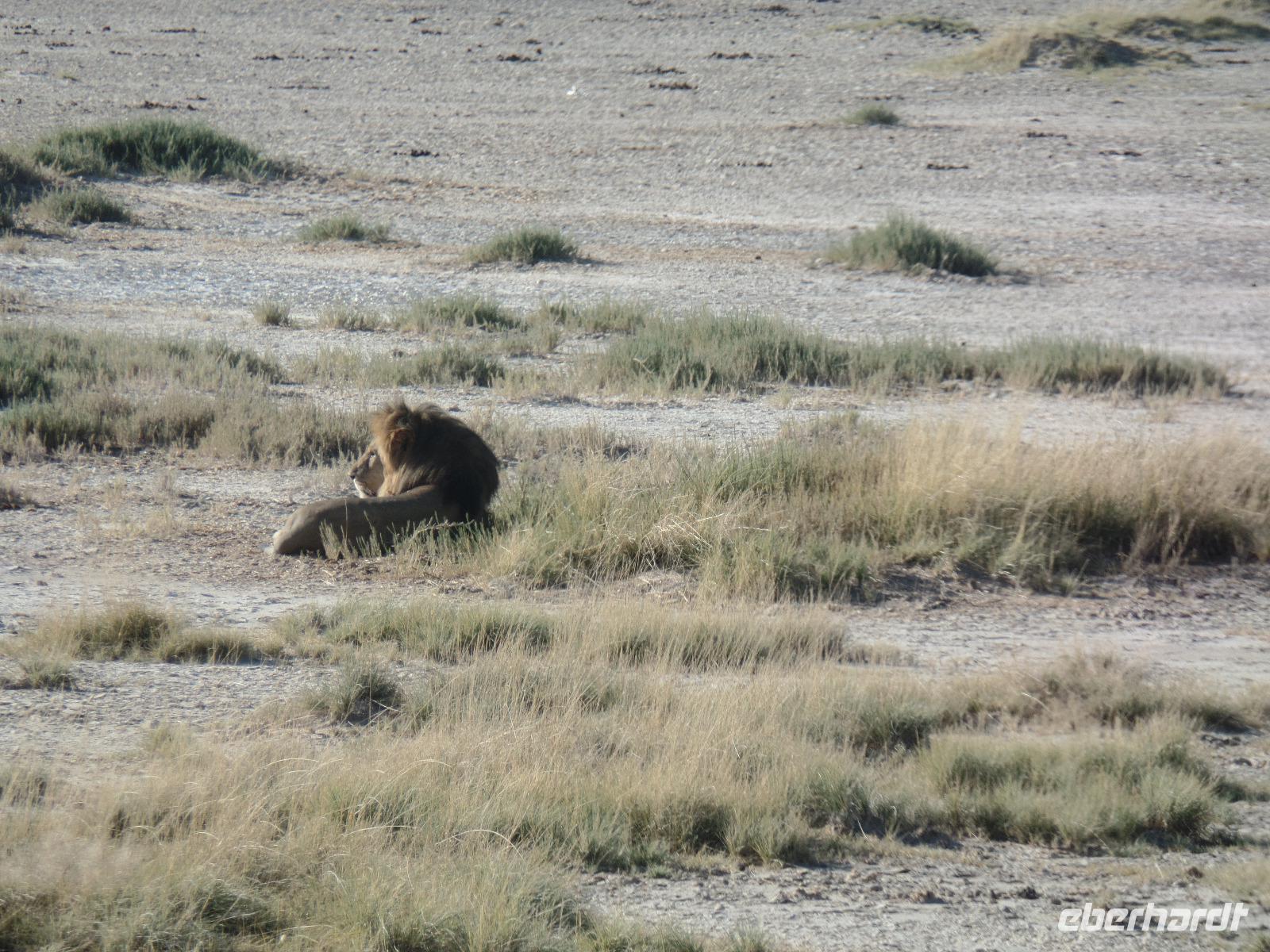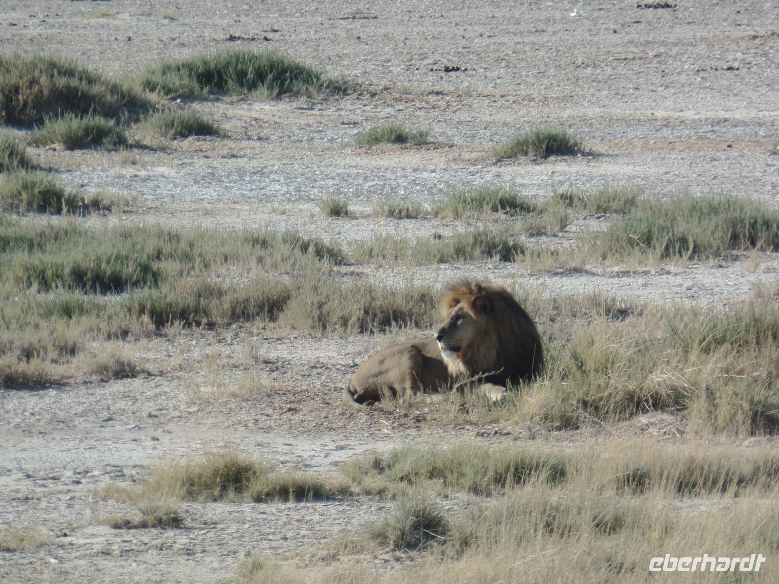 Ernst hat immer so ein Bauchgefühl und mit Hilfe auch von einer WhatsApp Gruppe wusste er manchmal, wo die besten Chancen waren und die Tiere sich aufhielten. Woran wir alle nicht glaubten war, dass wir Löwen begegnen. Doch sie waren da!! Für uns!! In Ruhe! König der Löwe!! Unsere Augen wollten es nicht glauben. Unfassbar, dass wir so etwas schönes erleben durften. Mit voller Dankbarkeit;) Wir konnten sie in Ruhe beobachten und die Zeit ging so langsam, dass wir eine Ewigkeit bei ihnen verbrachten. Es sind tolle Bilder entstanden Weiter fuhren wir zu einem Wasserloch wo ganz Afrika war. Ja, wirklich!! Wenn ich sage, ganz Afrika, meine ich: alle gemeinsam und friedlich die Giraffen, die Elefanten, die Onyx und Strauße, die Springböcke, Zebras, Gnus, der Schakal und 2 ganz lustige Warzenschweine. So friedlich müsste auch unsere Welt aussehen, wenn man die Nachrichten manchmal im Fernsehen sieht. Wunderschön!! Ab und zu kam auch ein Adler geflogen und so war die Natur in Ordnung. Und nicht nur Tiere sahen wir in Etosha, wie Elenantilope, Wasserbock. Kudu oder Schwarzgesicht-Impala wir sahen auch viele Vögel in den 2 Tagen: Sekretär, Schreiseeadler, Graureiher, Swainsonfrankolin sowie Riesentrappe und selbstverständlich den Strauß.