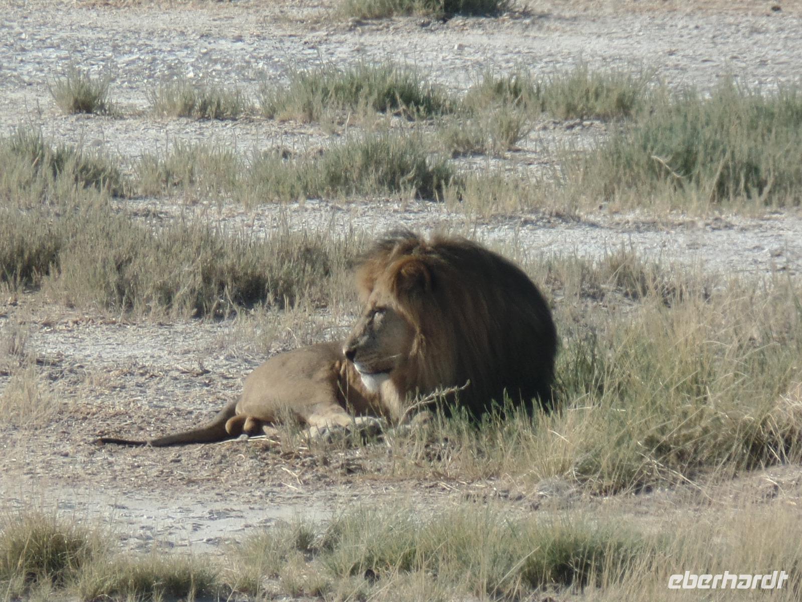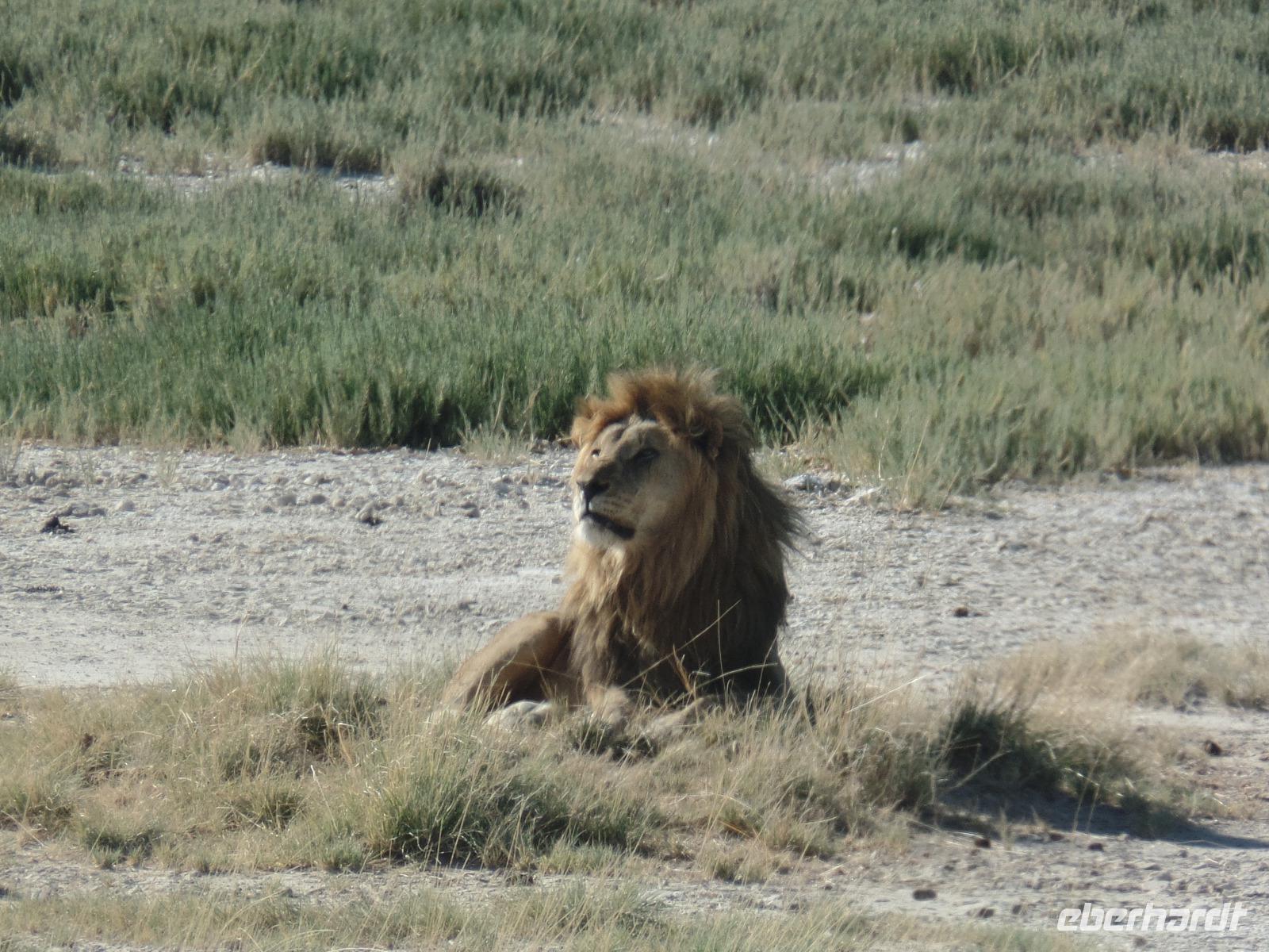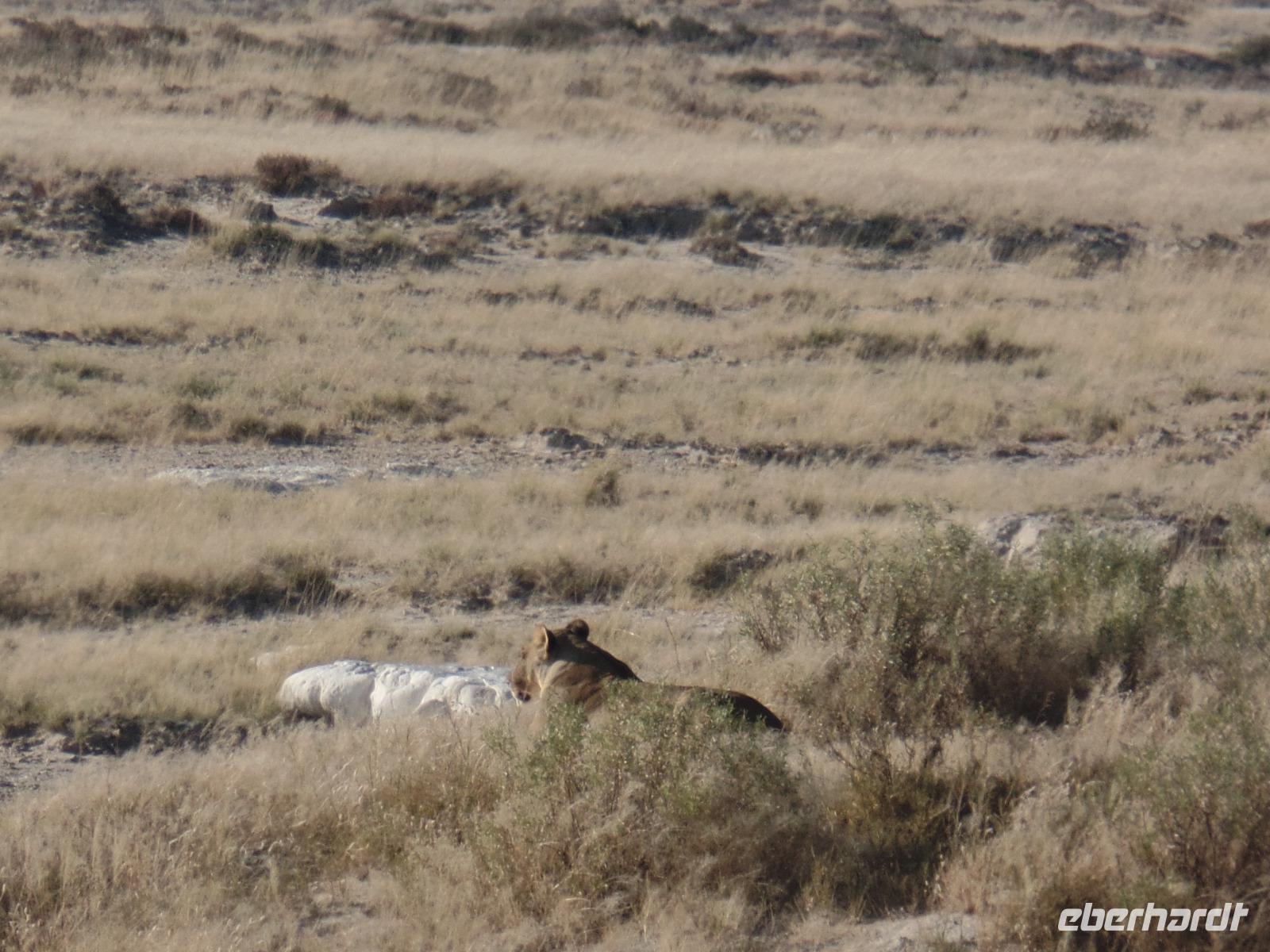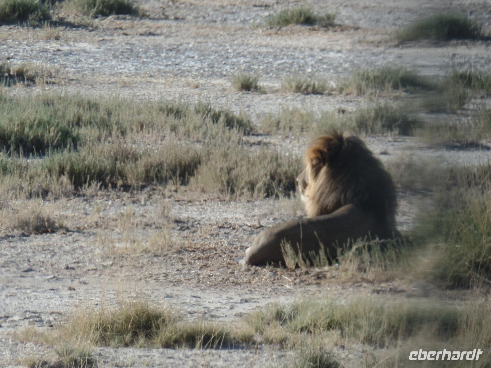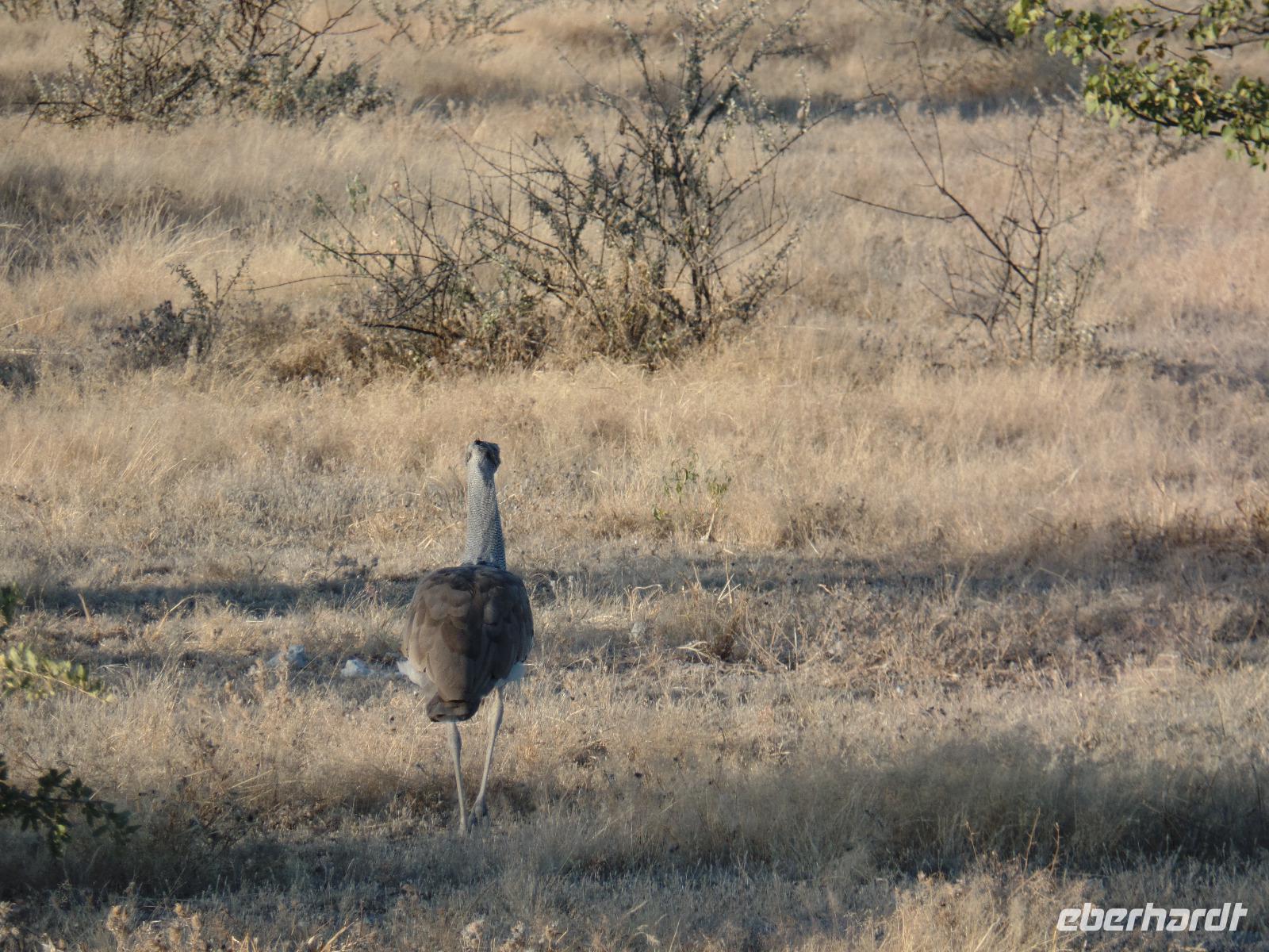 Ernst hat immer so ein Bauchgefühl und mit Hilfe auch von einer WhatsApp Gruppe wusste er manchmal, wo die besten Chancen waren und die Tiere sich aufhielten. Woran wir alle nicht glaubten war, dass wir Löwen begegnen. Doch sie waren da!! Für uns!! In Ruhe! König der Löwe!! Unsere Augen wollten es nicht glauben. Unfassbar, dass wir so etwas schönes erleben durften. Mit voller Dankbarkeit;) Wir konnten sie in Ruhe beobachten und die Zeit ging so langsam, dass wir eine Ewigkeit bei ihnen verbrachten. Es sind tolle Bilder entstanden Weiter fuhren wir zu einem Wasserloch wo ganz Afrika war. Ja, wirklich!! Wenn ich sage, ganz Afrika, meine ich: alle gemeinsam und friedlich die Giraffen, die Elefanten, die Onyx und Strauße, die Springböcke, Zebras, Gnus, der Schakal und 2 ganz lustige Warzenschweine. So friedlich müsste auch unsere Welt aussehen, wenn man die Nachrichten manchmal im Fernsehen sieht. Wunderschön!! Ab und zu kam auch ein Adler geflogen und so war die Natur in Ordnung. Und nicht nur Tiere sahen wir in Etosha, wie Elenantilope, Wasserbock. Kudu oder Schwarzgesicht-Impala wir sahen auch viele Vögel in den 2 Tagen: Sekretär, Schreiseeadler, Graureiher, Swainsonfrankolin sowie Riesentrappe und selbstverständlich den Strauß.