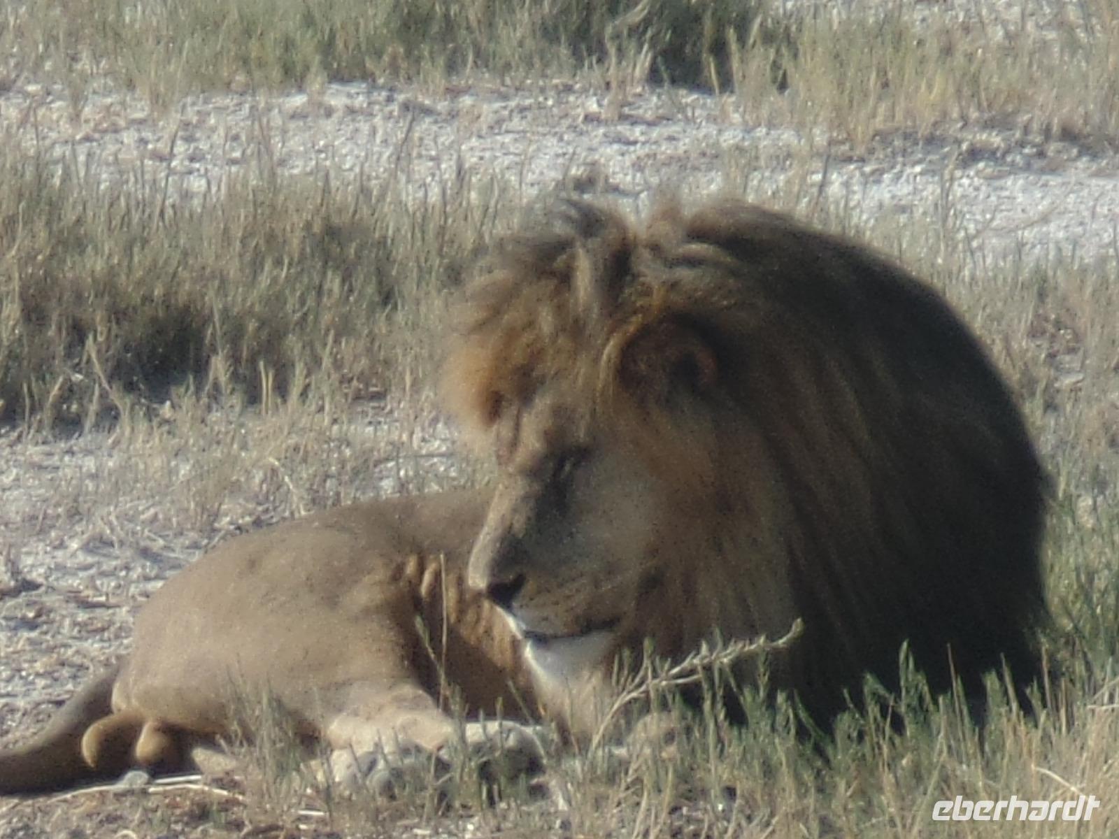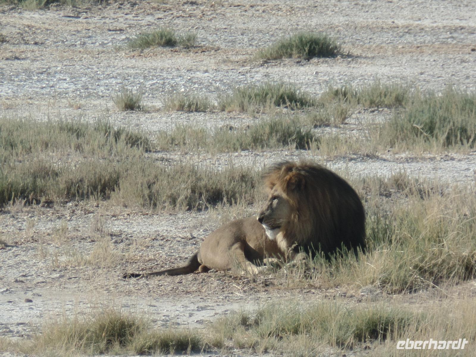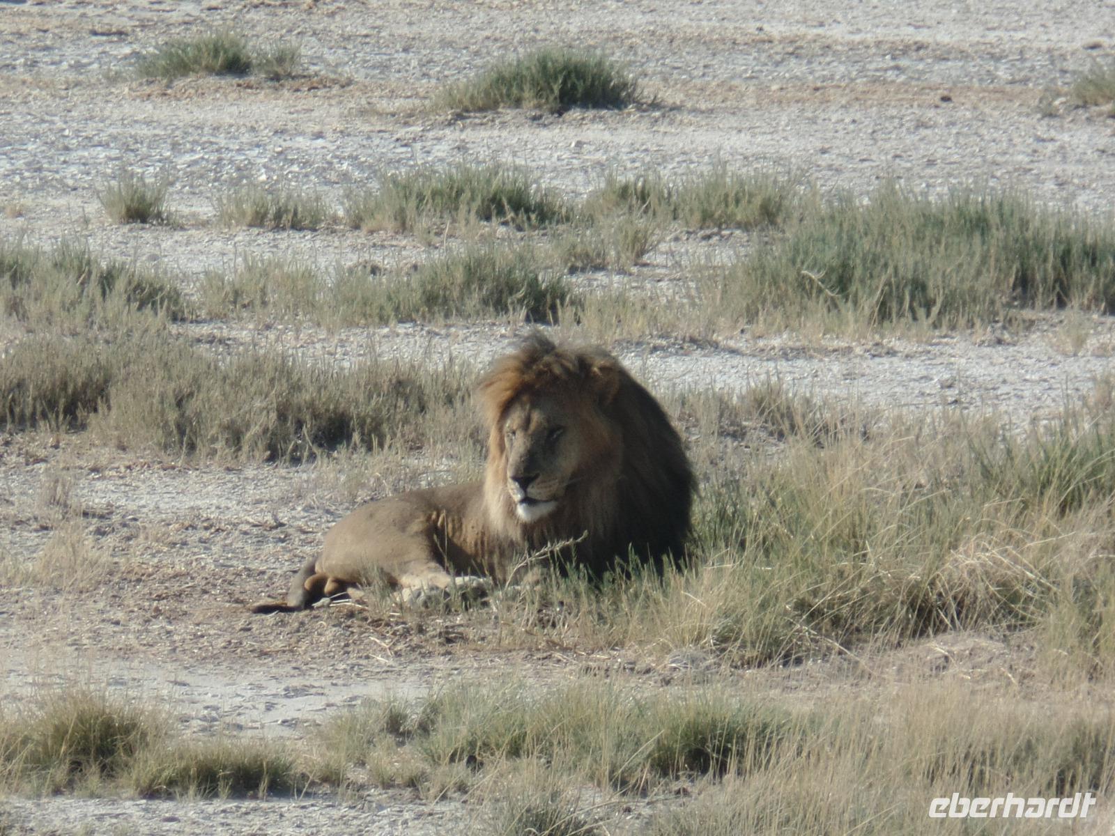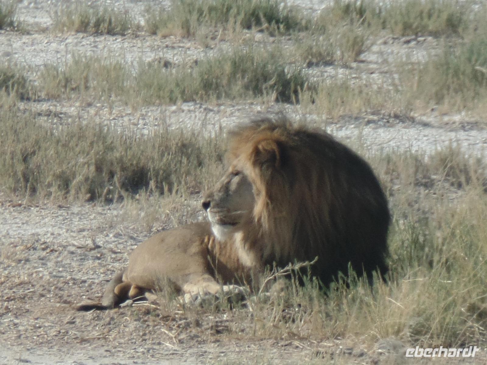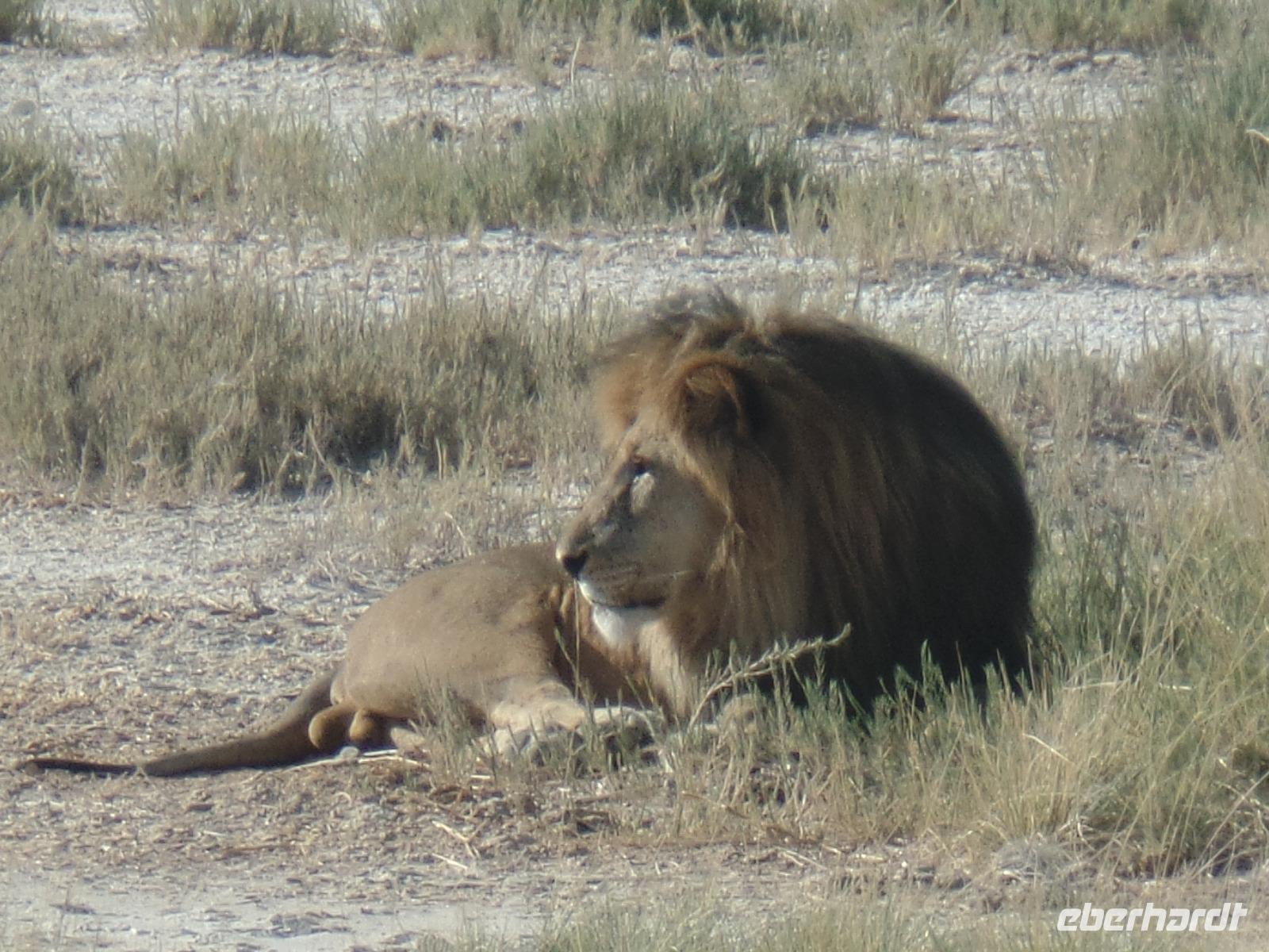 Ernst hat immer so ein Bauchgefühl und mit Hilfe auch von einer WhatsApp Gruppe wusste er manchmal, wo die besten Chancen waren und die Tiere sich aufhielten. Woran wir alle nicht glaubten war, dass wir Löwen begegnen. Doch sie waren da!! Für uns!! In Ruhe! König der Löwe!! Unsere Augen wollten es nicht glauben. Unfassbar, dass wir so etwas schönes erleben durften. Mit voller Dankbarkeit;) Wir konnten sie in Ruhe beobachten und die Zeit ging so langsam, dass wir eine Ewigkeit bei ihnen verbrachten. Es sind tolle Bilder entstanden Weiter fuhren wir zu einem Wasserloch wo ganz Afrika war. Ja, wirklich!! Wenn ich sage, ganz Afrika, meine ich: alle gemeinsam und friedlich die Giraffen, die Elefanten, die Onyx und Strauße, die Springböcke, Zebras, Gnus, der Schakal und 2 ganz lustige Warzenschweine. So friedlich müsste auch unsere Welt aussehen, wenn man die Nachrichten manchmal im Fernsehen sieht. Wunderschön!! Ab und zu kam auch ein Adler geflogen und so war die Natur in Ordnung. Und nicht nur Tiere sahen wir in Etosha, wie Elenantilope, Wasserbock. Kudu oder Schwarzgesicht-Impala wir sahen auch viele Vögel in den 2 Tagen: Sekretär, Schreiseeadler, Graureiher, Swainsonfrankolin sowie Riesentrappe und selbstverständlich den Strauß.