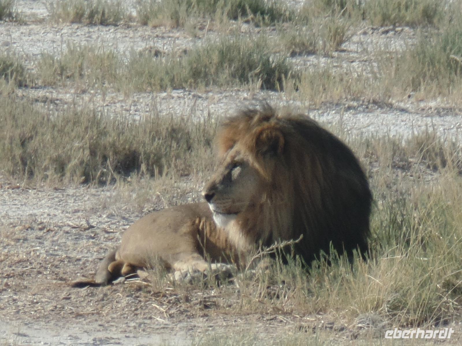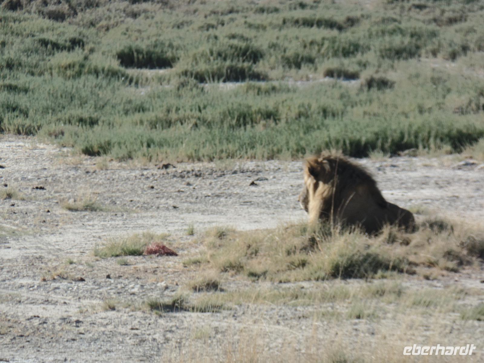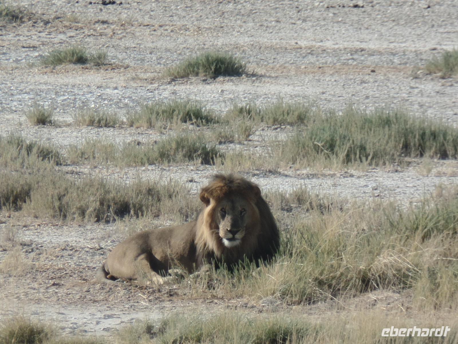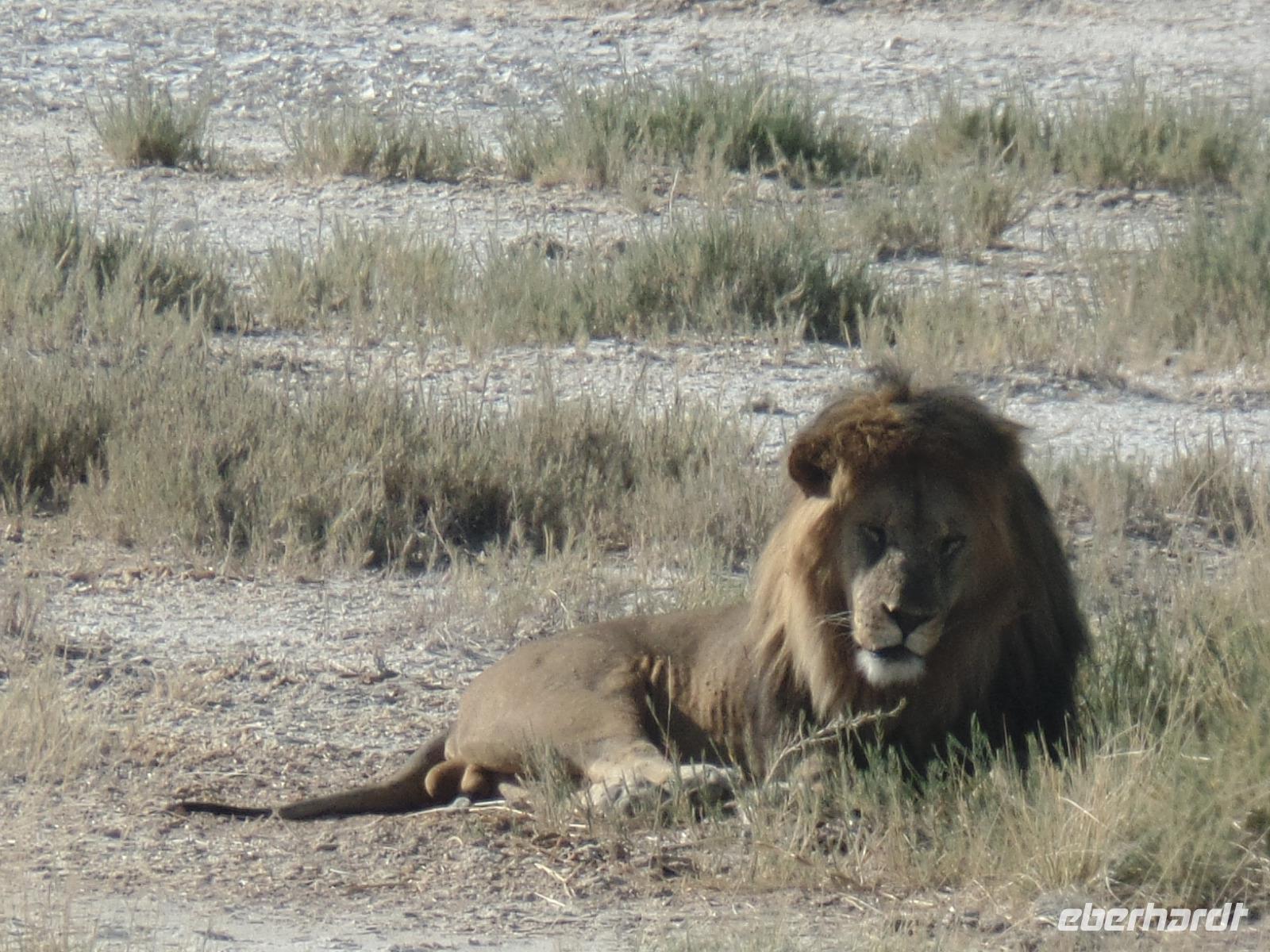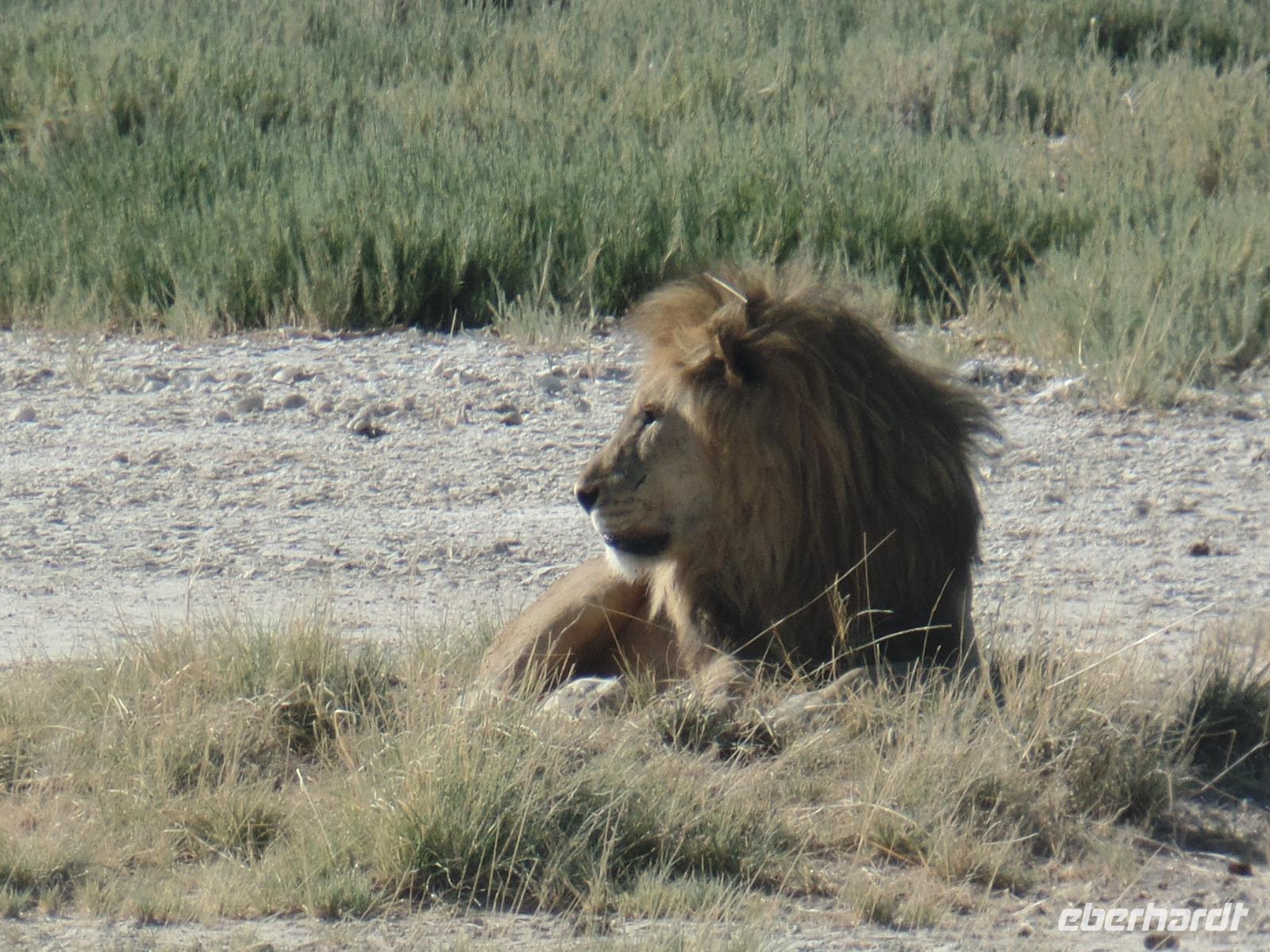 Ernst hat immer so ein Bauchgefühl und mit Hilfe auch von einer WhatsApp Gruppe wusste er manchmal, wo die besten Chancen waren und die Tiere sich aufhielten. Woran wir alle nicht glaubten war, dass wir Löwen begegnen. Doch sie waren da!! Für uns!! In Ruhe! König der Löwe!! Unsere Augen wollten es nicht glauben. Unfassbar, dass wir so etwas schönes erleben durften. Mit voller Dankbarkeit;) Wir konnten sie in Ruhe beobachten und die Zeit ging so langsam, dass wir eine Ewigkeit bei ihnen verbrachten. Es sind tolle Bilder entstanden Weiter fuhren wir zu einem Wasserloch wo ganz Afrika war. Ja, wirklich!! Wenn ich sage, ganz Afrika, meine ich: alle gemeinsam und friedlich die Giraffen, die Elefanten, die Onyx und Strauße, die Springböcke, Zebras, Gnus, der Schakal und 2 ganz lustige Warzenschweine. So friedlich müsste auch unsere Welt aussehen, wenn man die Nachrichten manchmal im Fernsehen sieht. Wunderschön!! Ab und zu kam auch ein Adler geflogen und so war die Natur in Ordnung. Und nicht nur Tiere sahen wir in Etosha, wie Elenantilope, Wasserbock. Kudu oder Schwarzgesicht-Impala wir sahen auch viele Vögel in den 2 Tagen: Sekretär, Schreiseeadler, Graureiher, Swainsonfrankolin sowie Riesentrappe und selbstverständlich den Strauß.