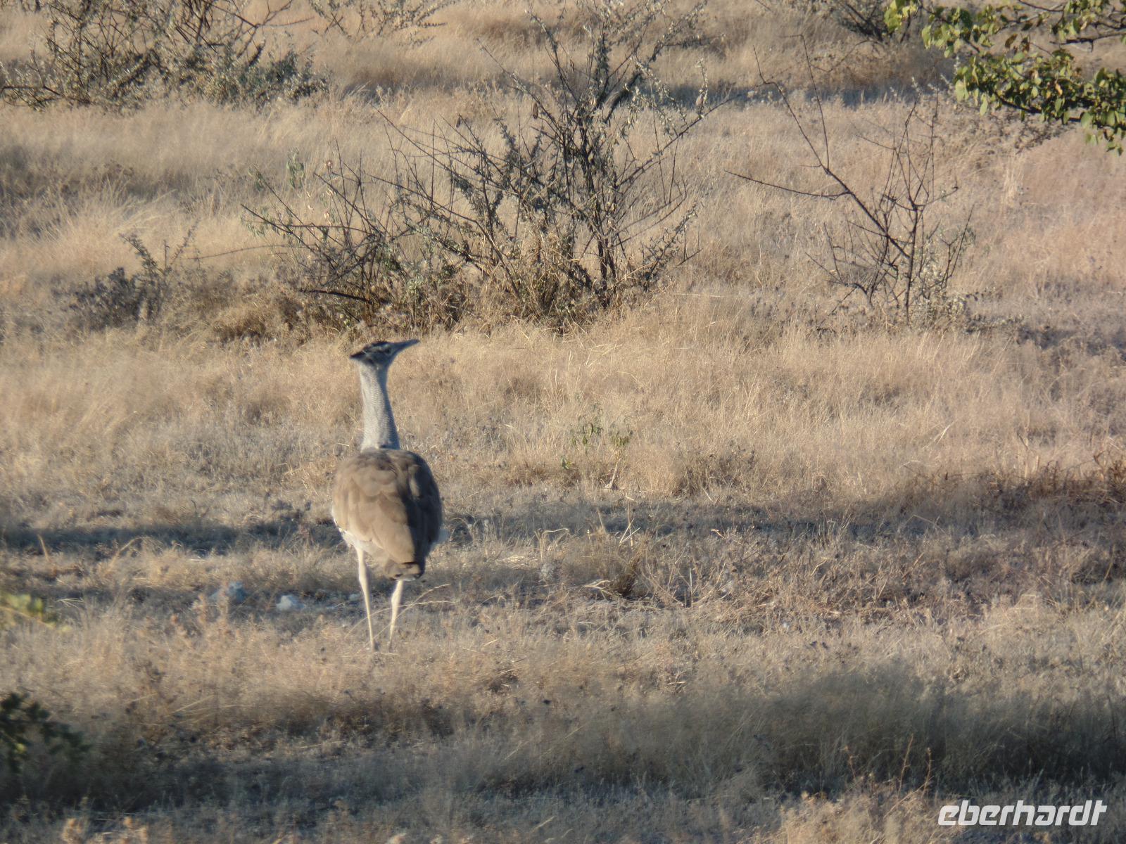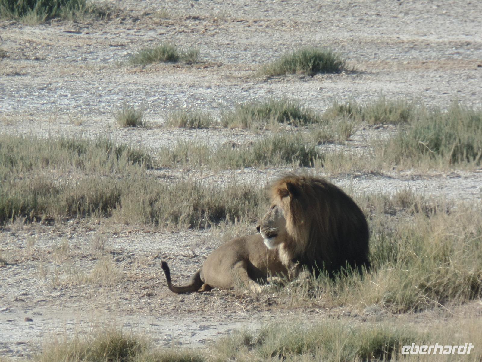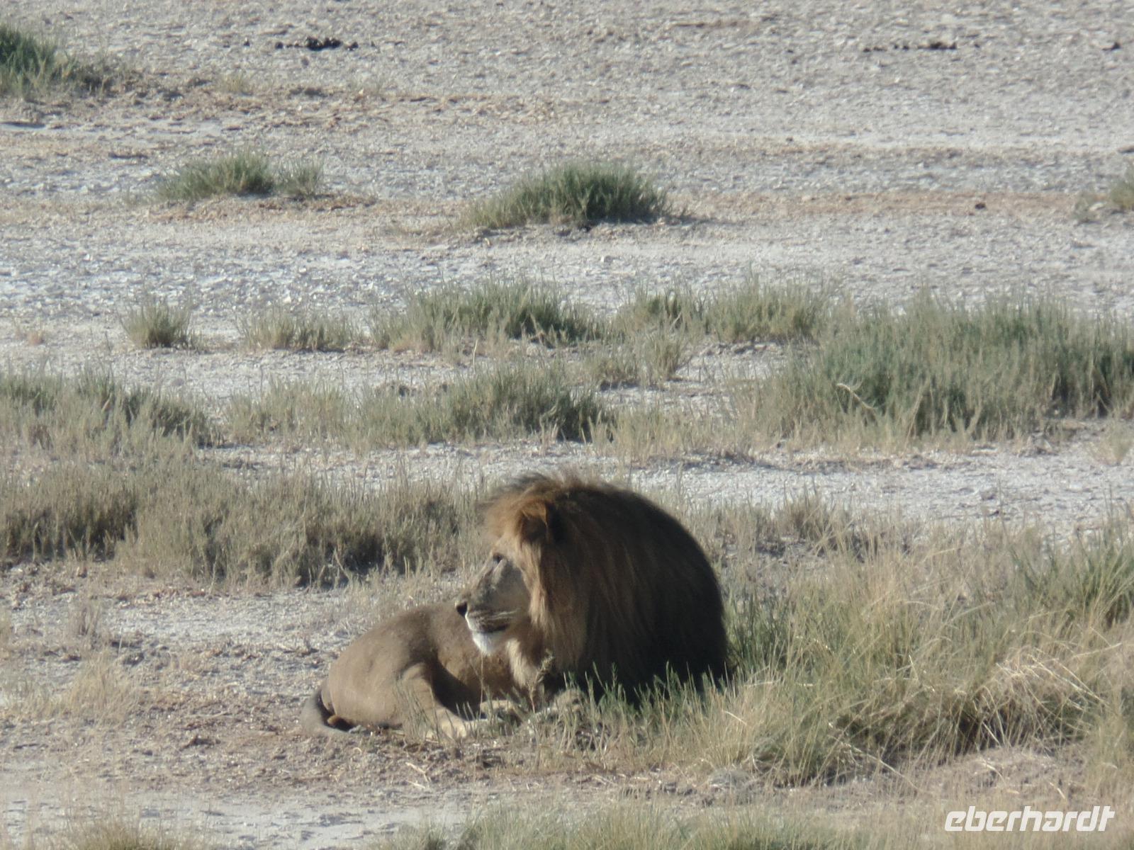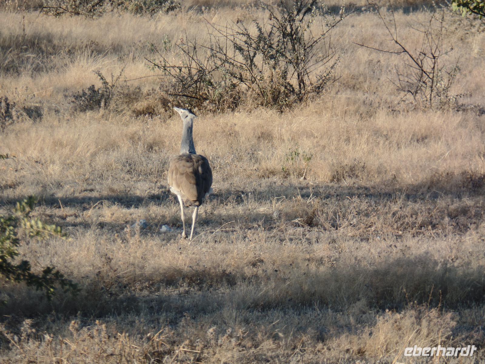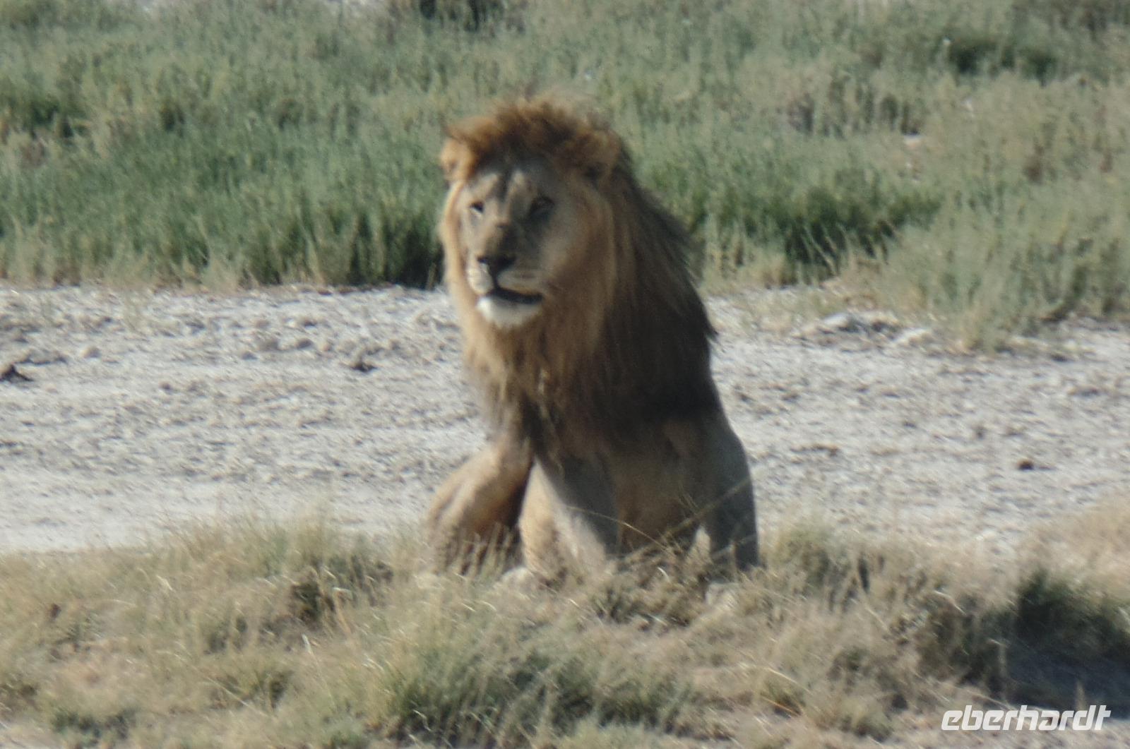 Ernst hat immer so ein Bauchgefühl und mit Hilfe auch von einer WhatsApp Gruppe wusste er manchmal, wo die besten Chancen waren und die Tiere sich aufhielten. Woran wir alle nicht glaubten war, dass wir Löwen begegnen. Doch sie waren da!! Für uns!! In Ruhe! König der Löwe!! Unsere Augen wollten es nicht glauben. Unfassbar, dass wir so etwas schönes erleben durften. Mit voller Dankbarkeit;) Wir konnten sie in Ruhe beobachten und die Zeit ging so langsam, dass wir eine Ewigkeit bei ihnen verbrachten. Es sind tolle Bilder entstanden Weiter fuhren wir zu einem Wasserloch wo ganz Afrika war. Ja, wirklich!! Wenn ich sage, ganz Afrika, meine ich: alle gemeinsam und friedlich die Giraffen, die Elefanten, die Onyx und Strauße, die Springböcke, Zebras, Gnus, der Schakal und 2 ganz lustige Warzenschweine. So friedlich müsste auch unsere Welt aussehen, wenn man die Nachrichten manchmal im Fernsehen sieht. Wunderschön!! Ab und zu kam auch ein Adler geflogen und so war die Natur in Ordnung. Und nicht nur Tiere sahen wir in Etosha, wie Elenantilope, Wasserbock. Kudu oder Schwarzgesicht-Impala wir sahen auch viele Vögel in den 2 Tagen: Sekretär, Schreiseeadler, Graureiher, Swainsonfrankolin sowie Riesentrappe und selbstverständlich den Strauß.